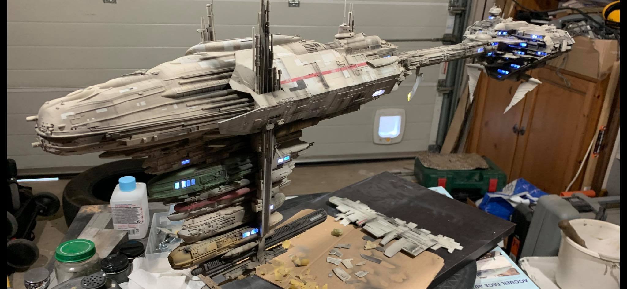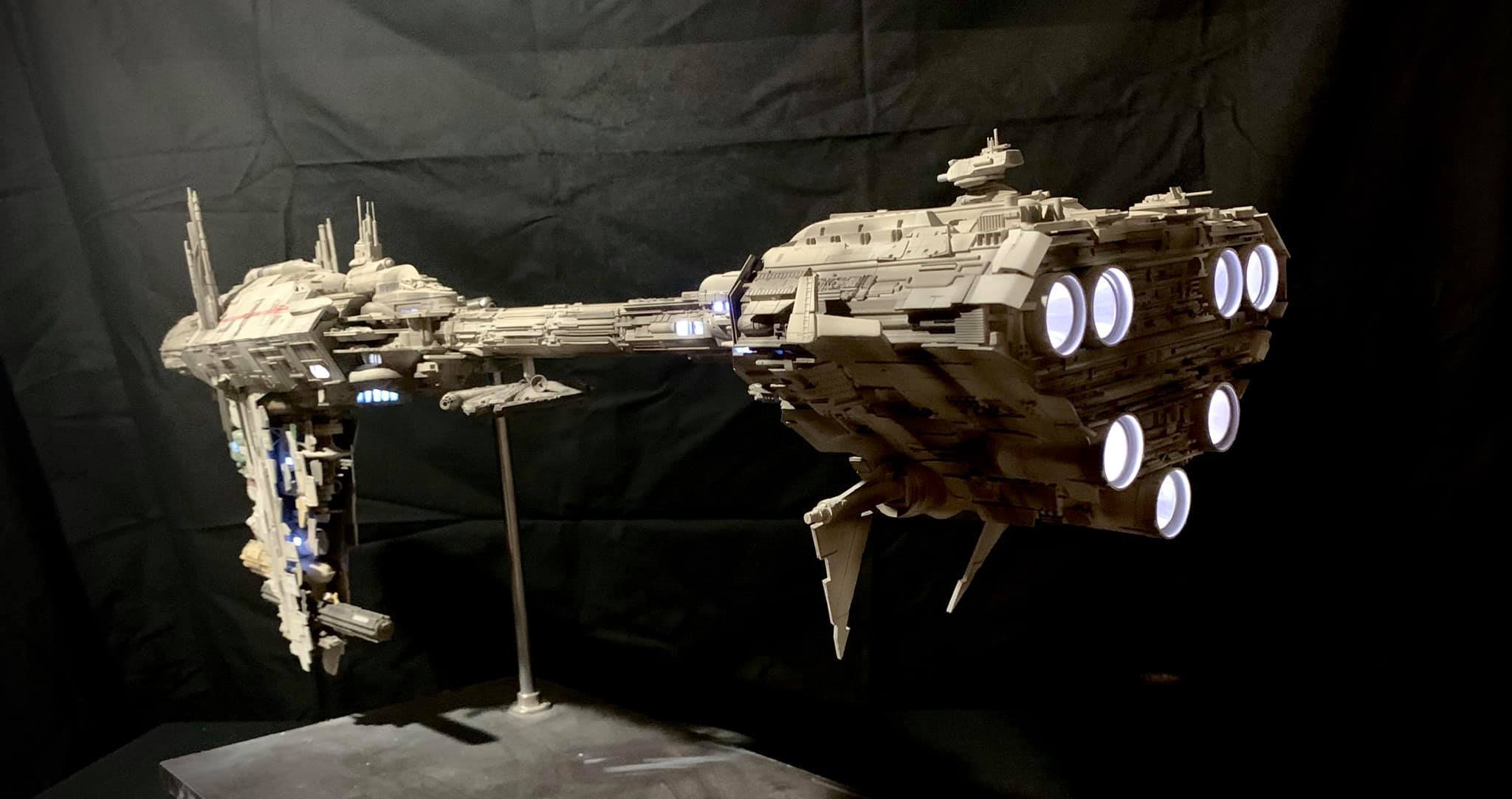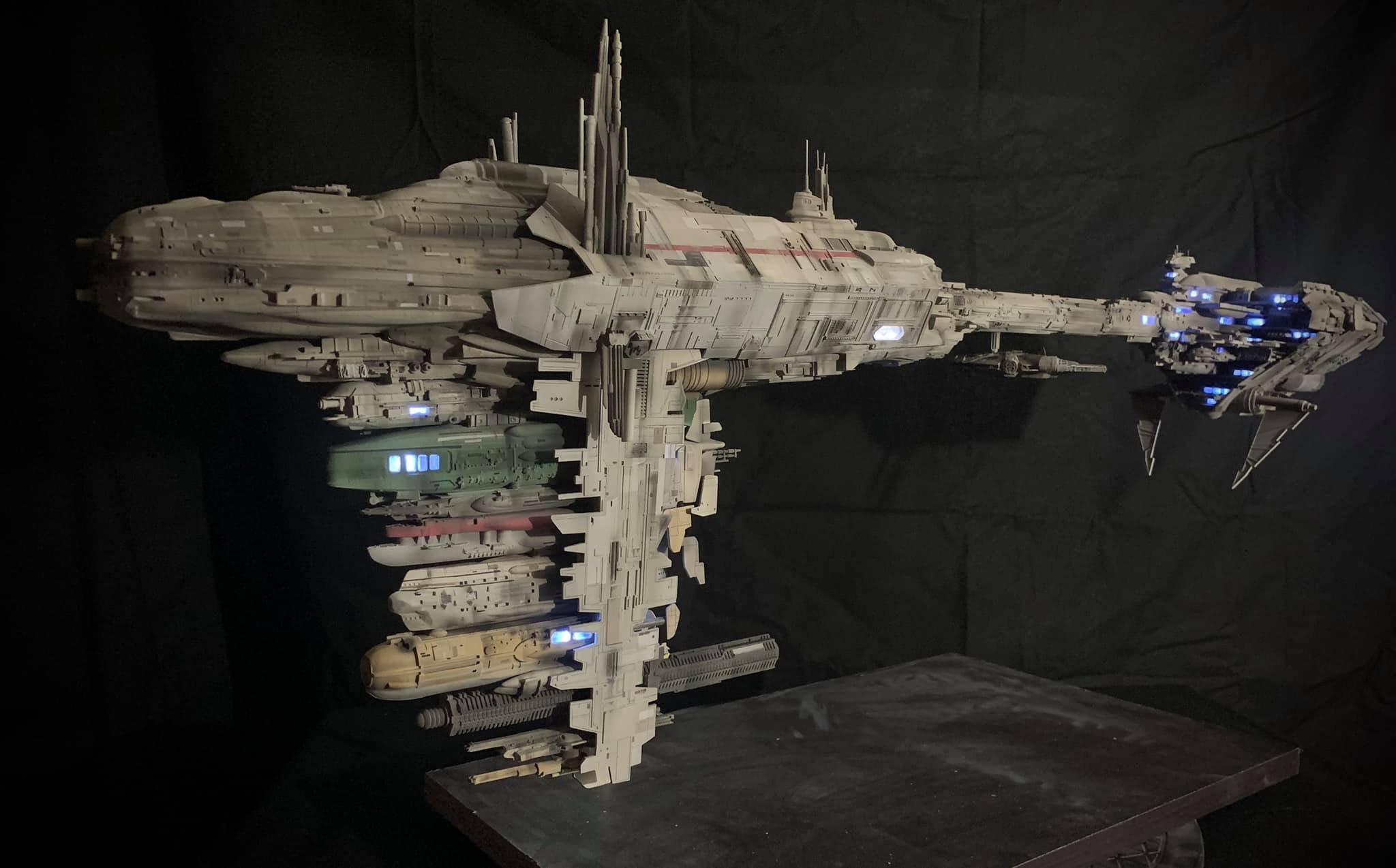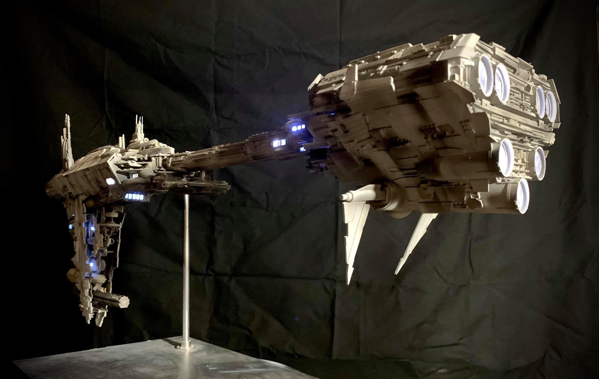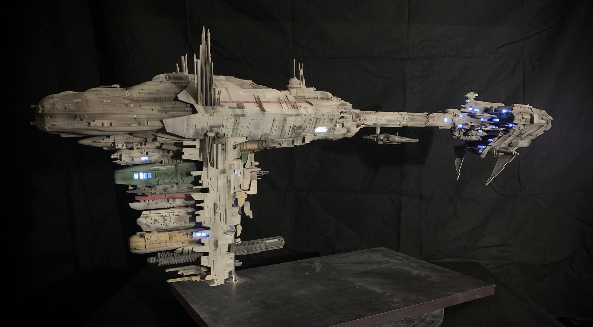 I present to you my latest creation, the 1: 350 scale Rebel Medical Frigate seen for the first time in the Empire Strikes Back. It is a model edited by jpg-productions and designed by Nicholas Sagan. I built, improved, lit and painted it with my usual “Archive-X” paints. You may view more images on my Facebook page: “The niko’s STAR WARS scale models” and on Instagram: “niko.scalemodels”.