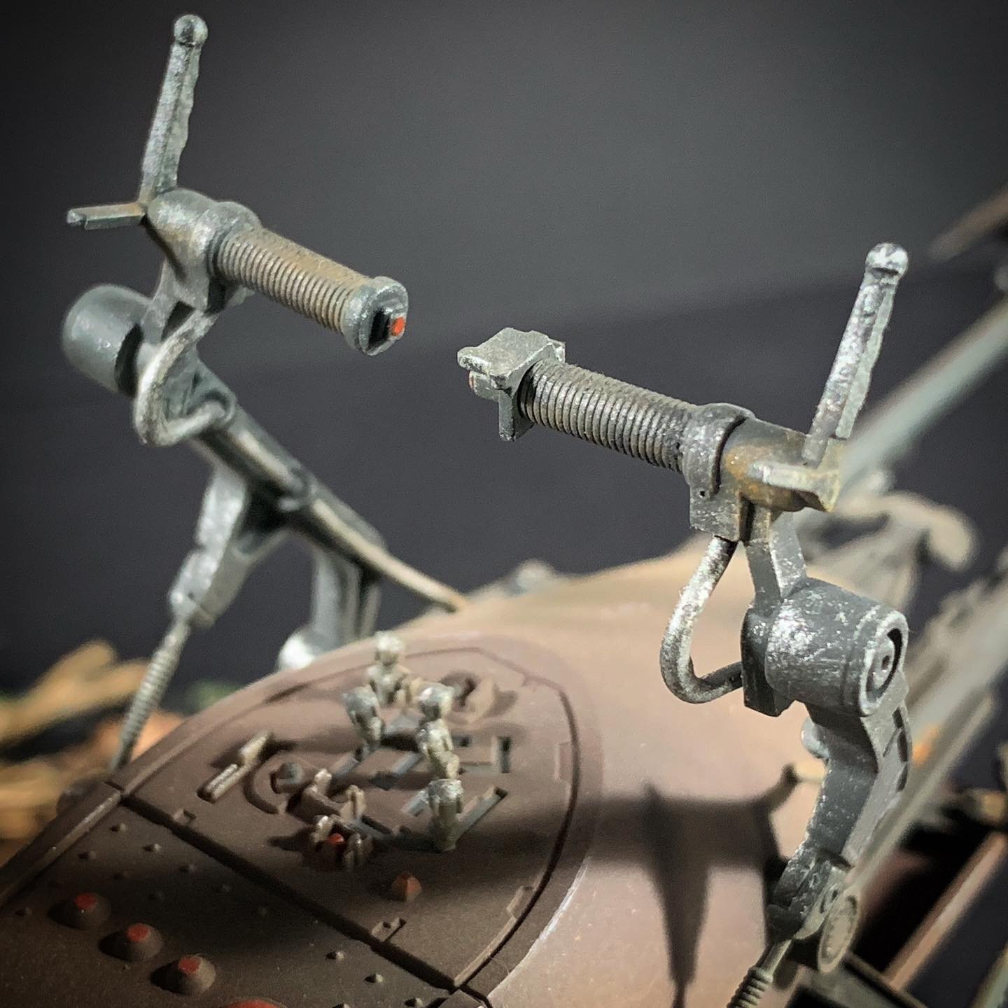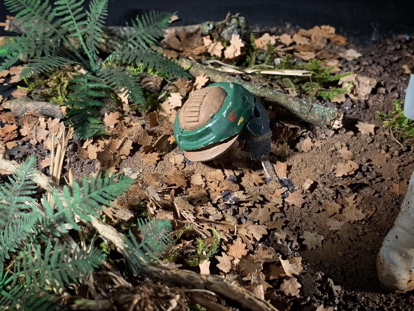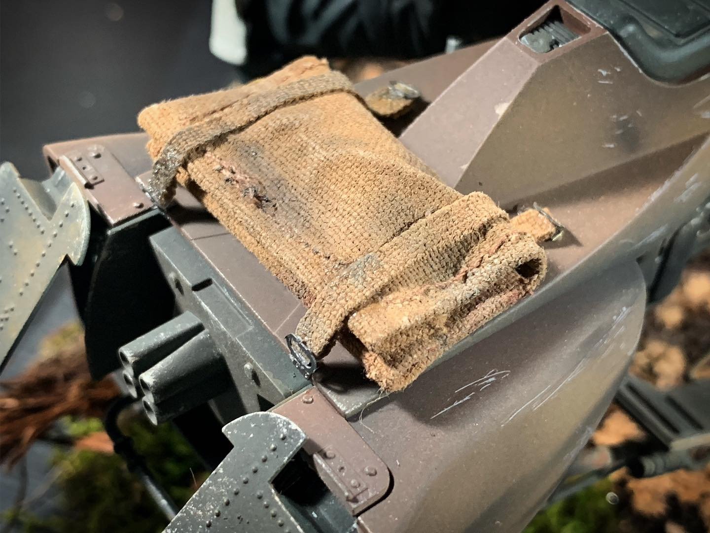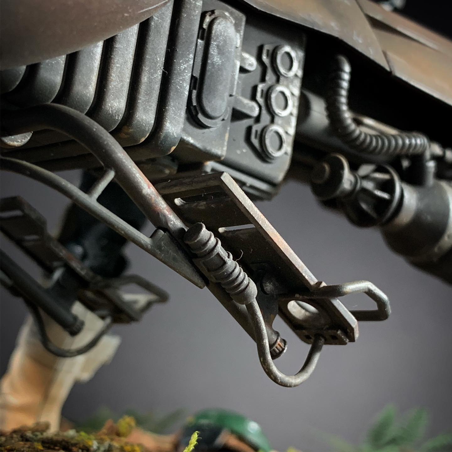 Here’s my BanDai model SpeederBike in 1/12. I used the Archive-X paintings. The trooper is held on the ground with 2 metal rods in the feet, and the speeder with 2 metal rods in the lower back. The dead leaves are cut from real tree leaves and the wood and moss are 100% natural. The Rebel helmet is made of scratch.