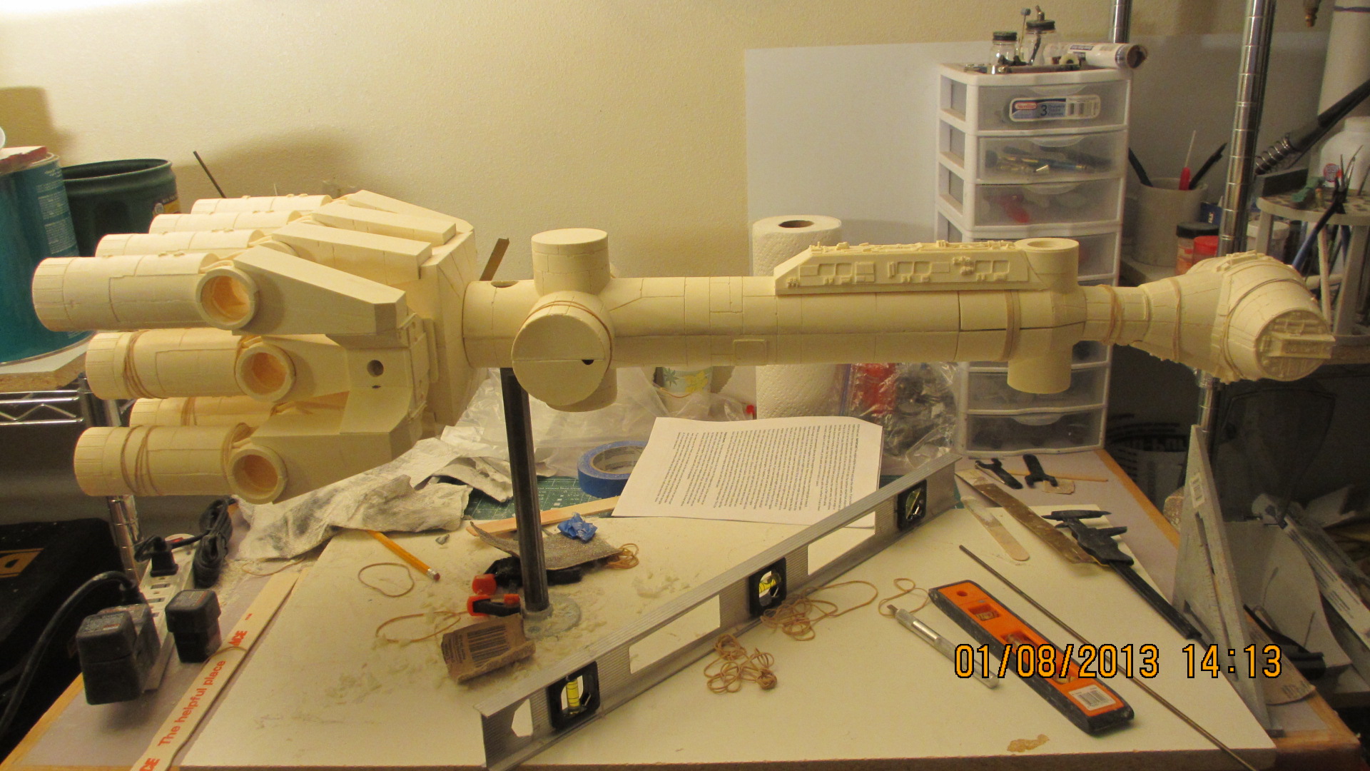 I bought one of Chris Kelly’s 41″ ROTJ BR kits a couple months ago. I had just started working on the kit and I have only the basic ( no details ) engine section built so far as it took me a whole day from start to finish. It was very tough to get all the engines to line up perfectly, but I am now working on wiring it up.