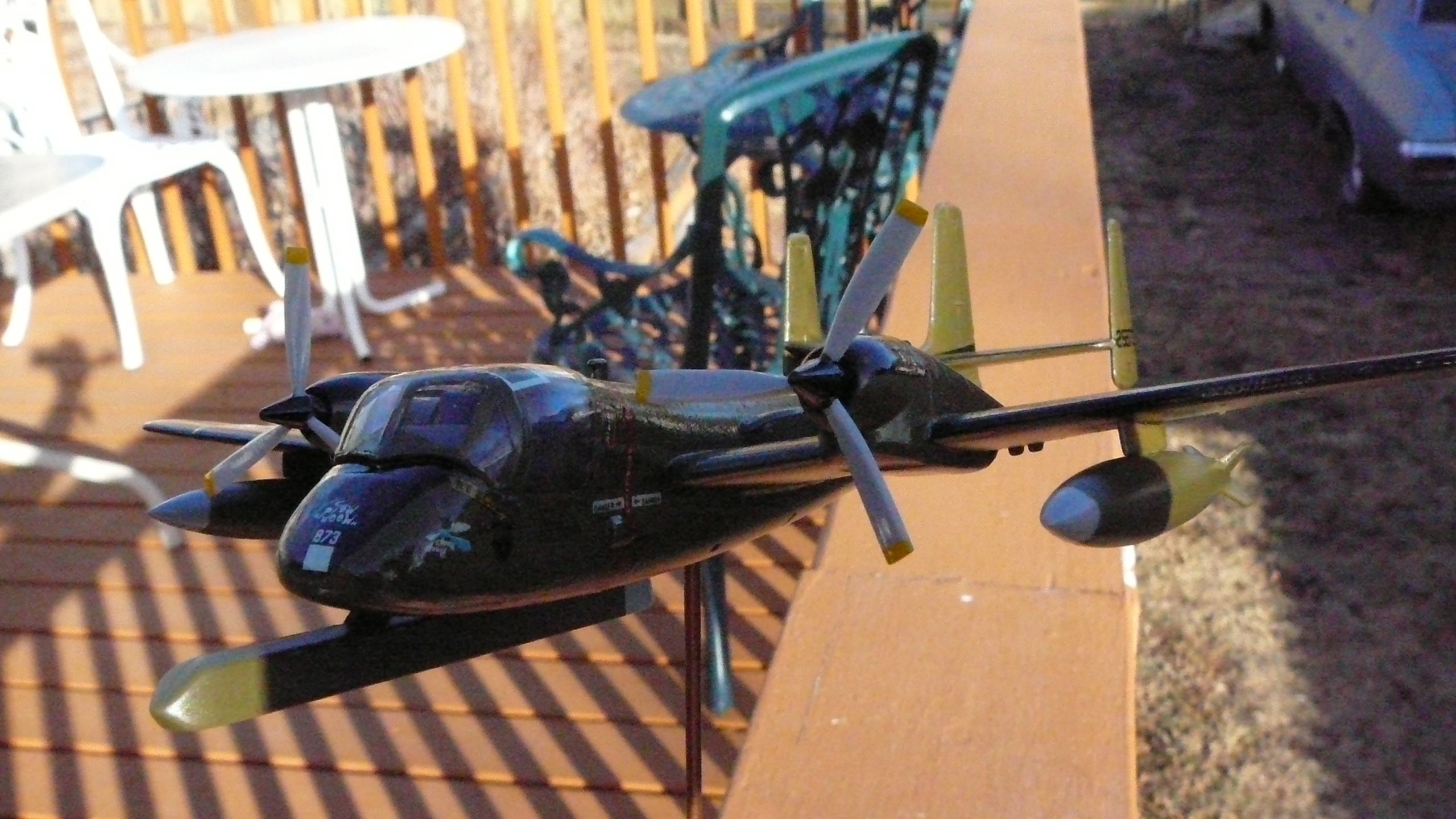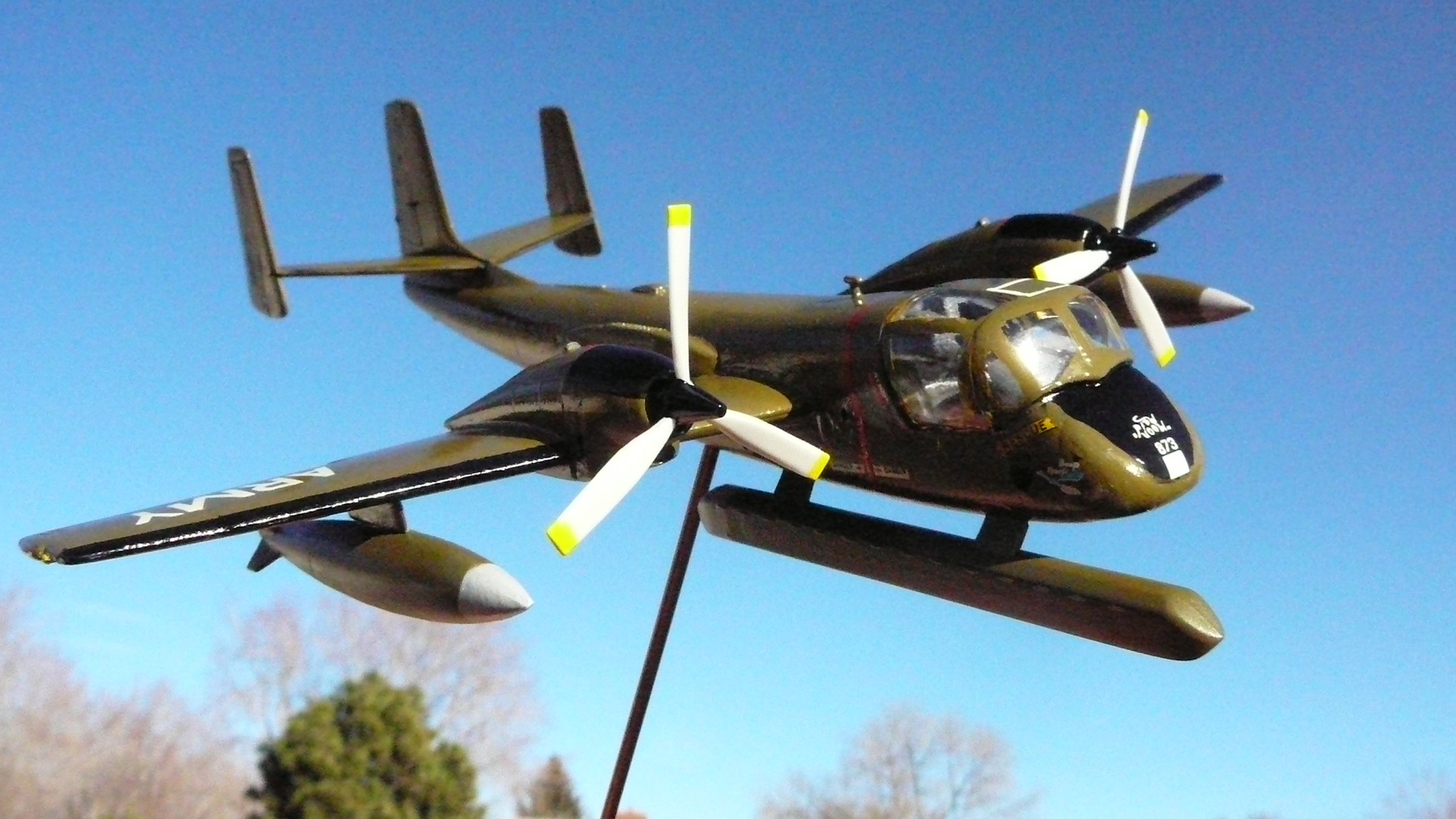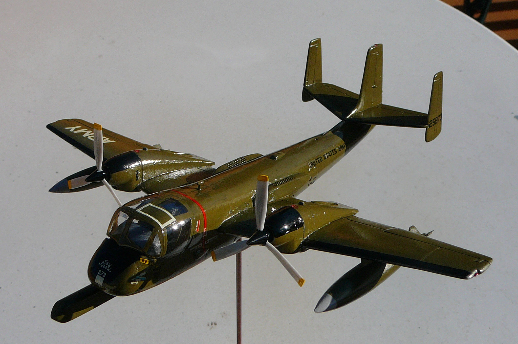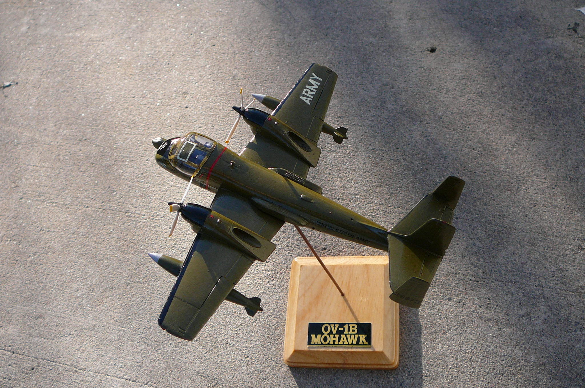 I built this OV- 1B MOHAWK (US Army Reconnaissance/Attacker aircraft) airplane for David Spruil.  His dad Flew it or North Vietnam 1969. He had the models kit for years and wanted something to remember his Father by honoring his country The USA! So I decided to build it for him! The kit is a classic Hasegawa made in 1987 It went together very easy in fact I finished in one weekend!