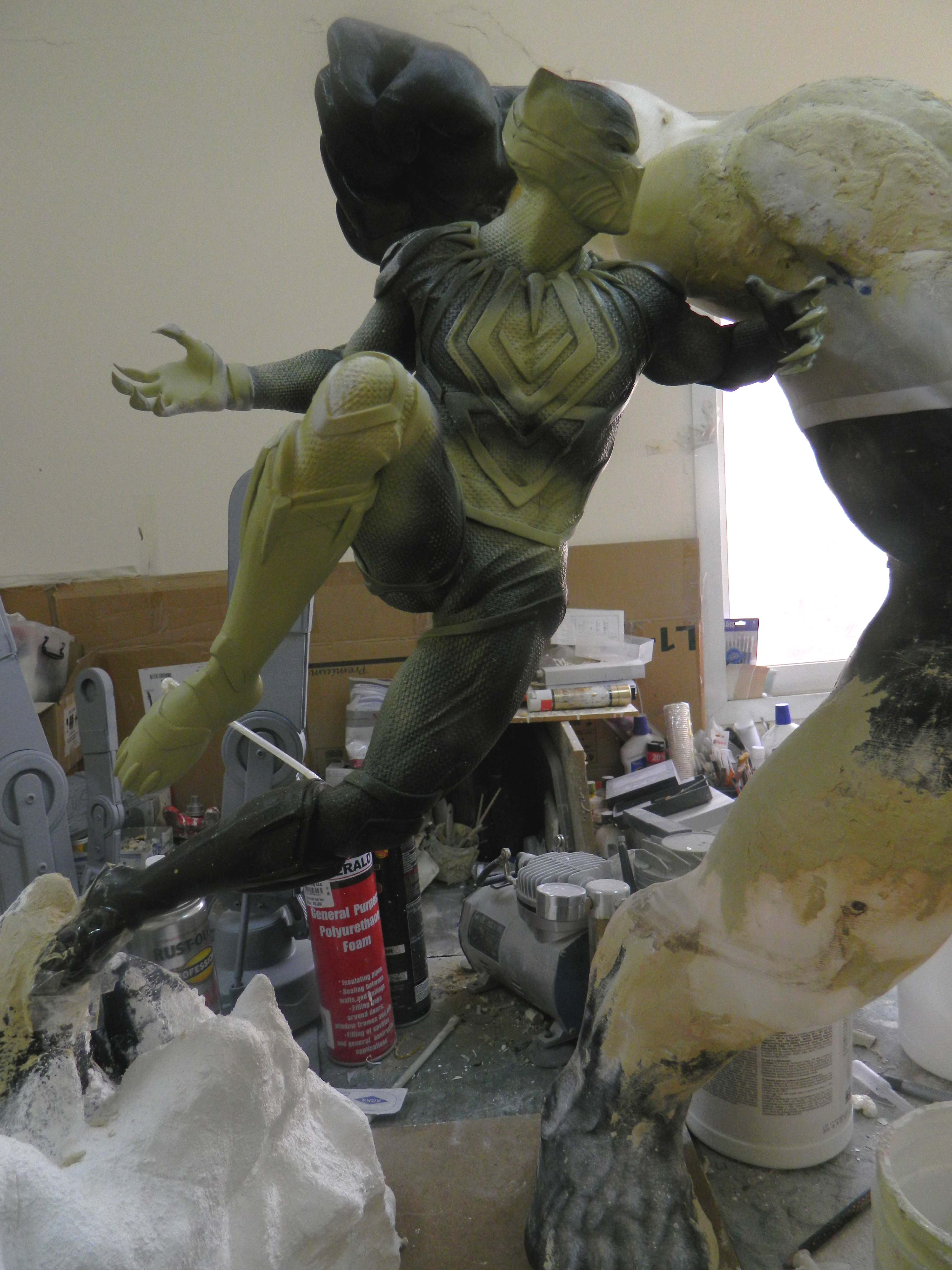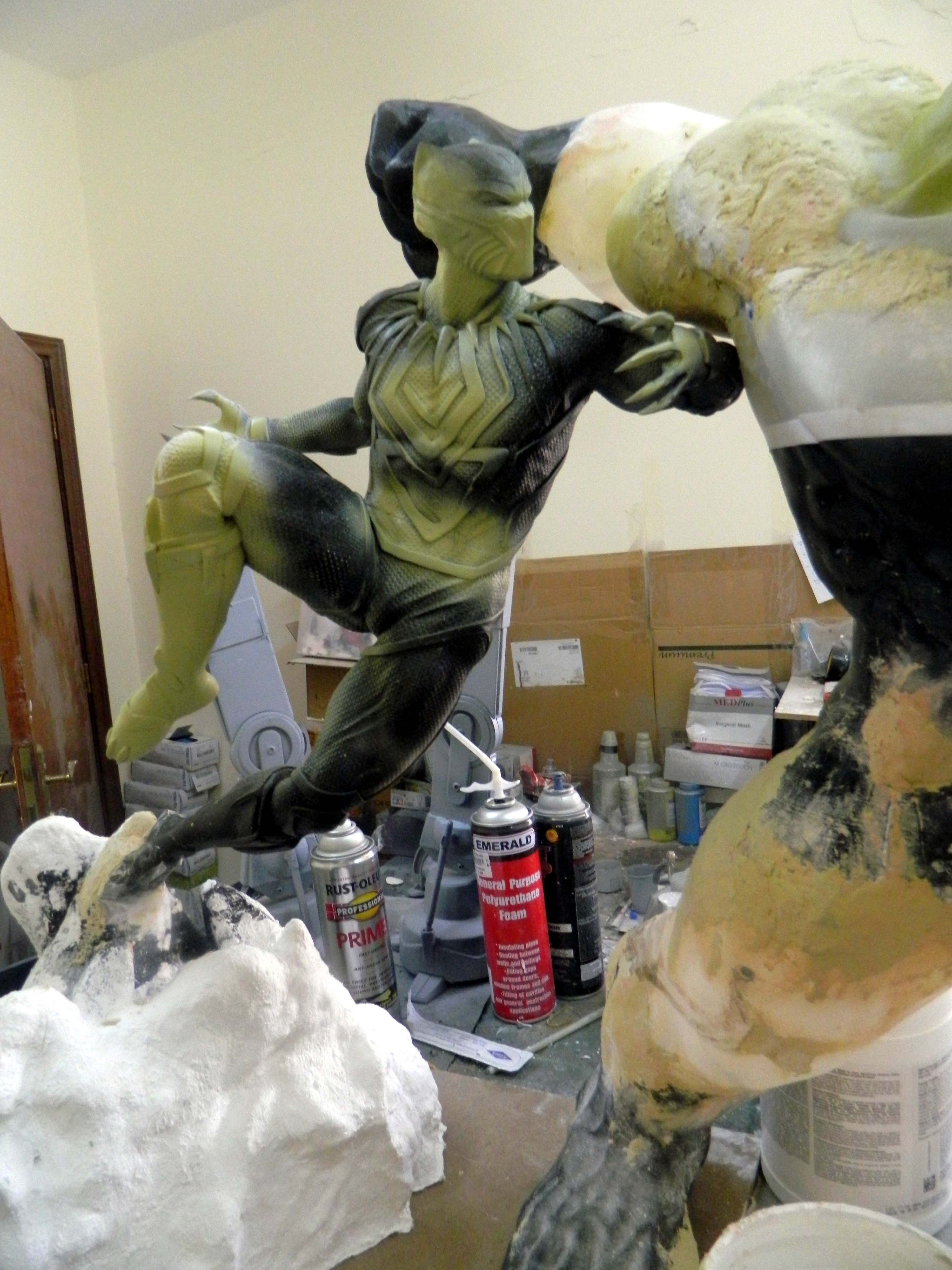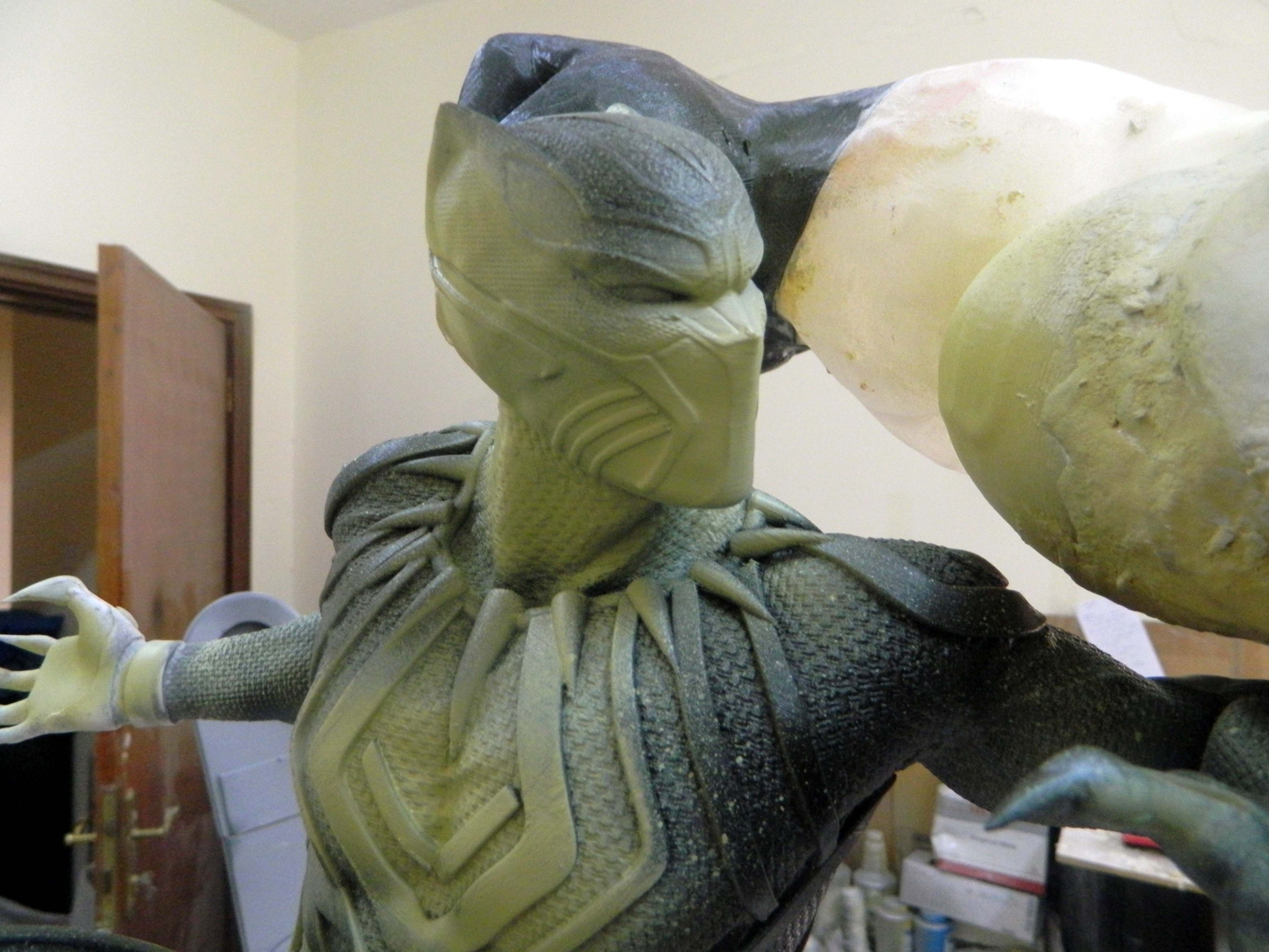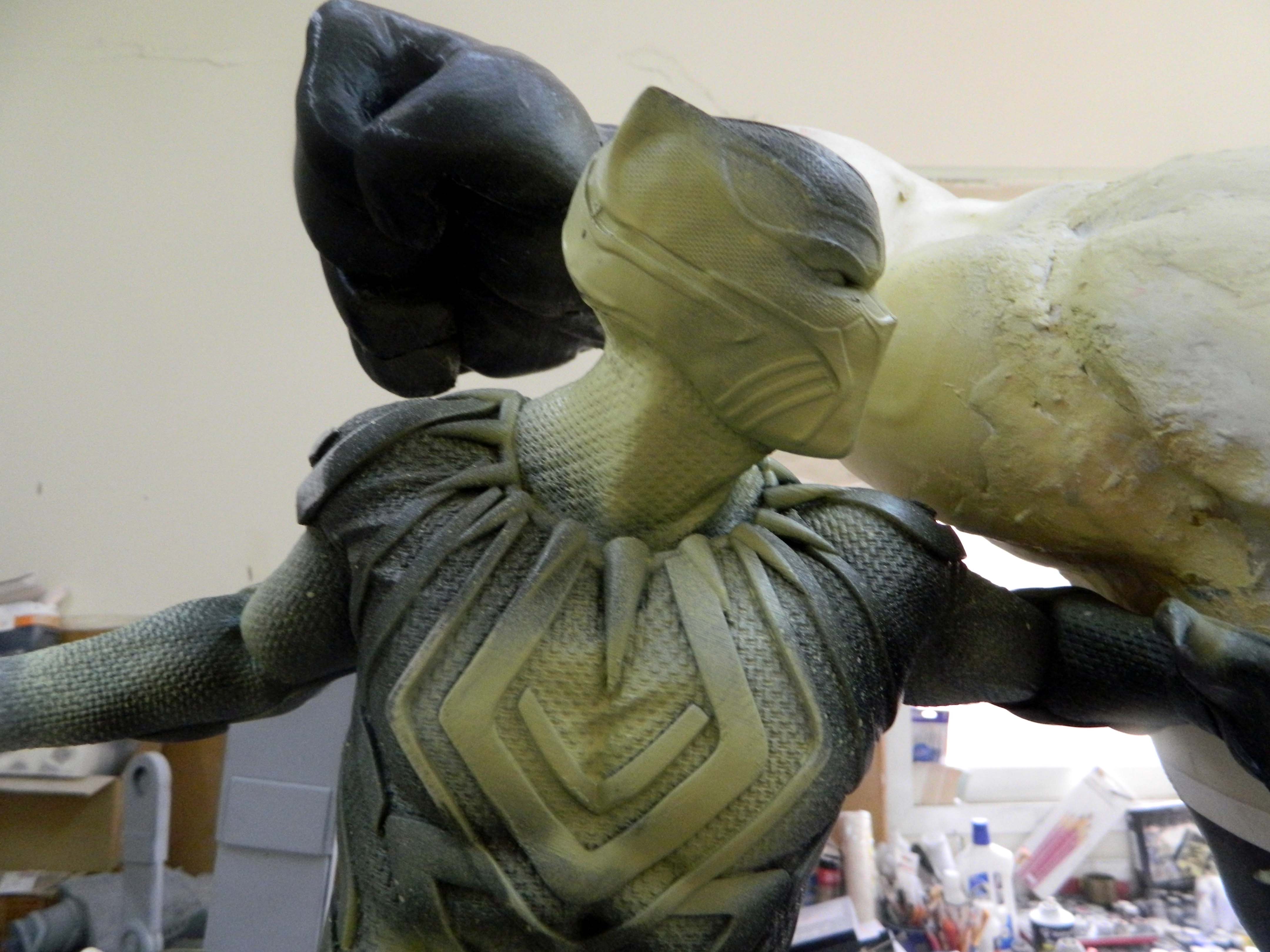 I thought I would show you all my latest finished sculpt… Marvel’s Black Panther in 1/4 scale. You can also see the 1/4 scale Hulk that is also in progress!