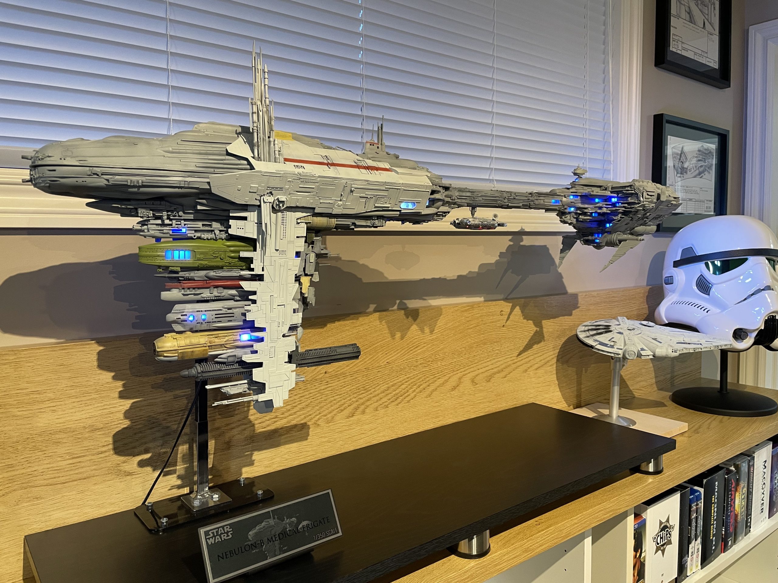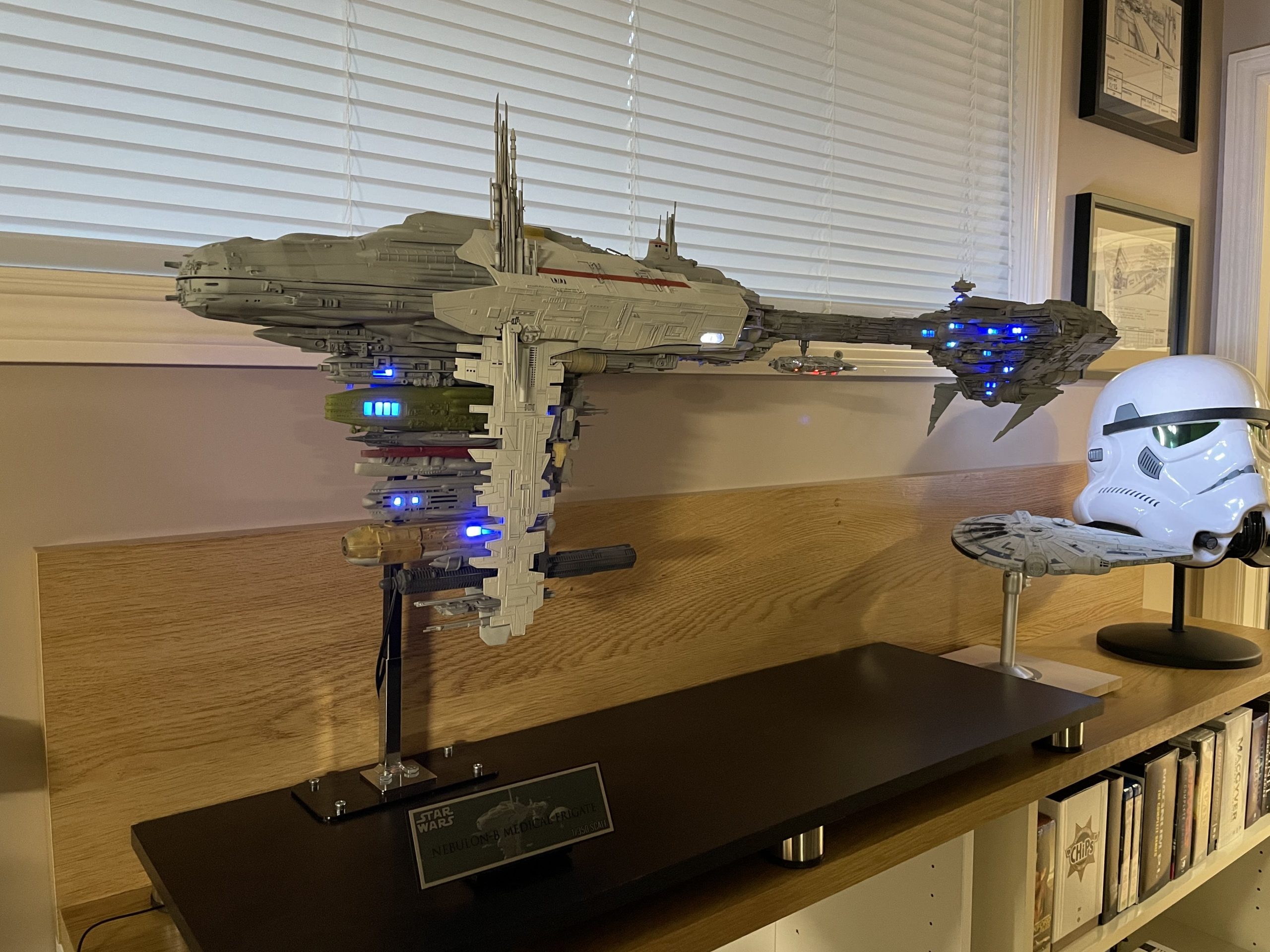 I just took some pictures of my Neb B sitting on the shelf. It just needs to be glued up and some pieces reattached that fell/broke off from the LED repair job. More paint and weathering is all that is left. The LED issue is now fixed.