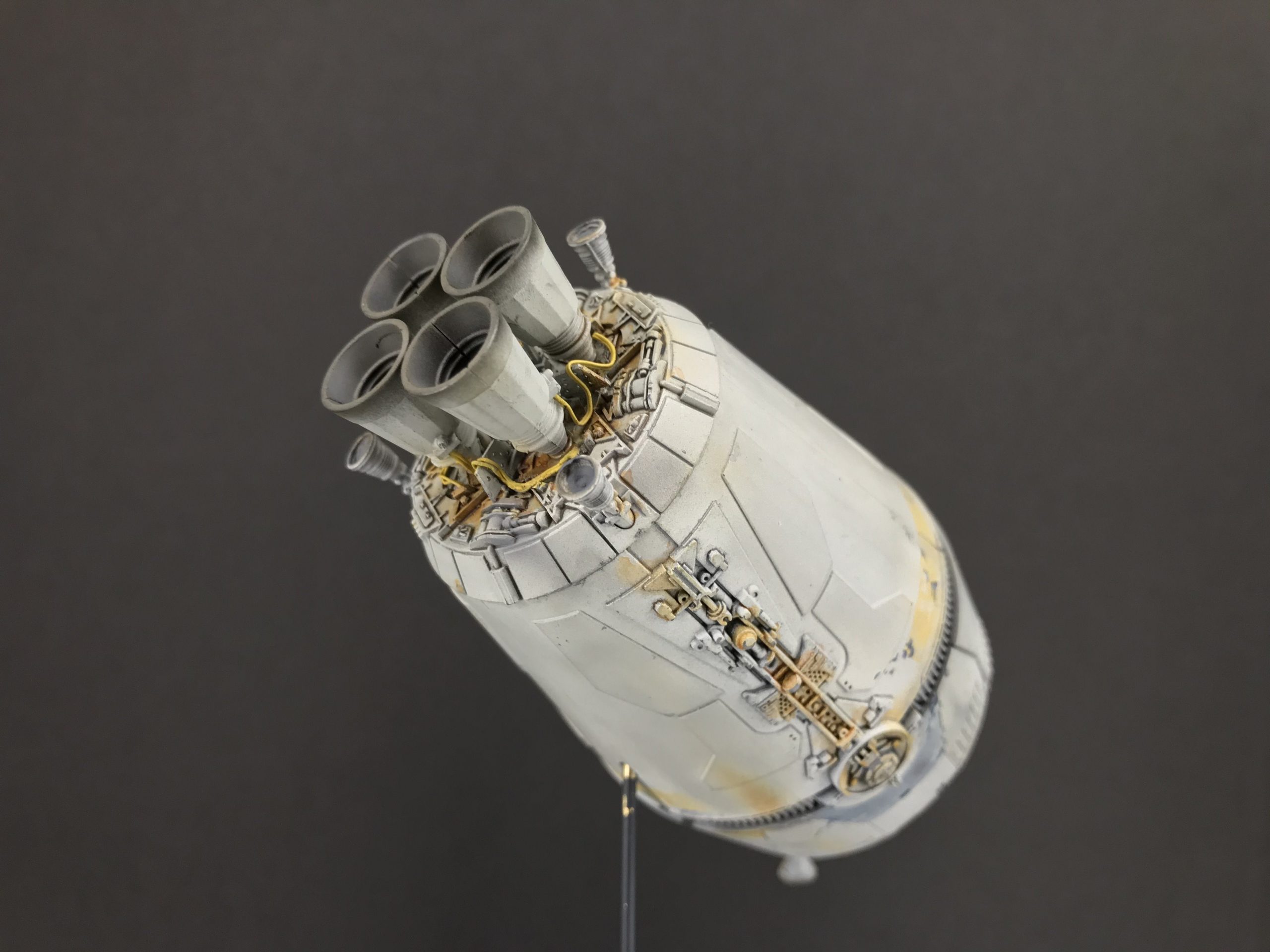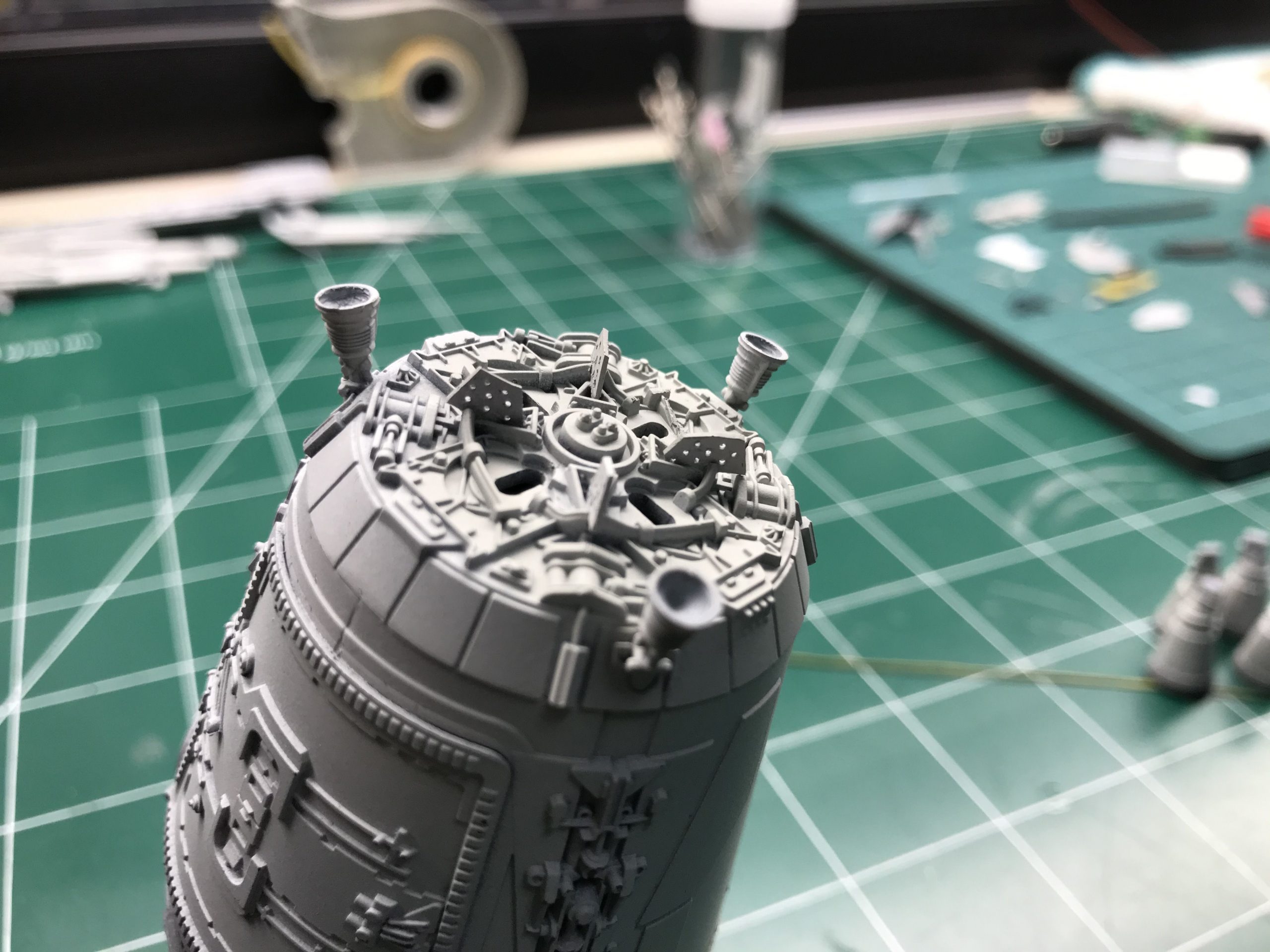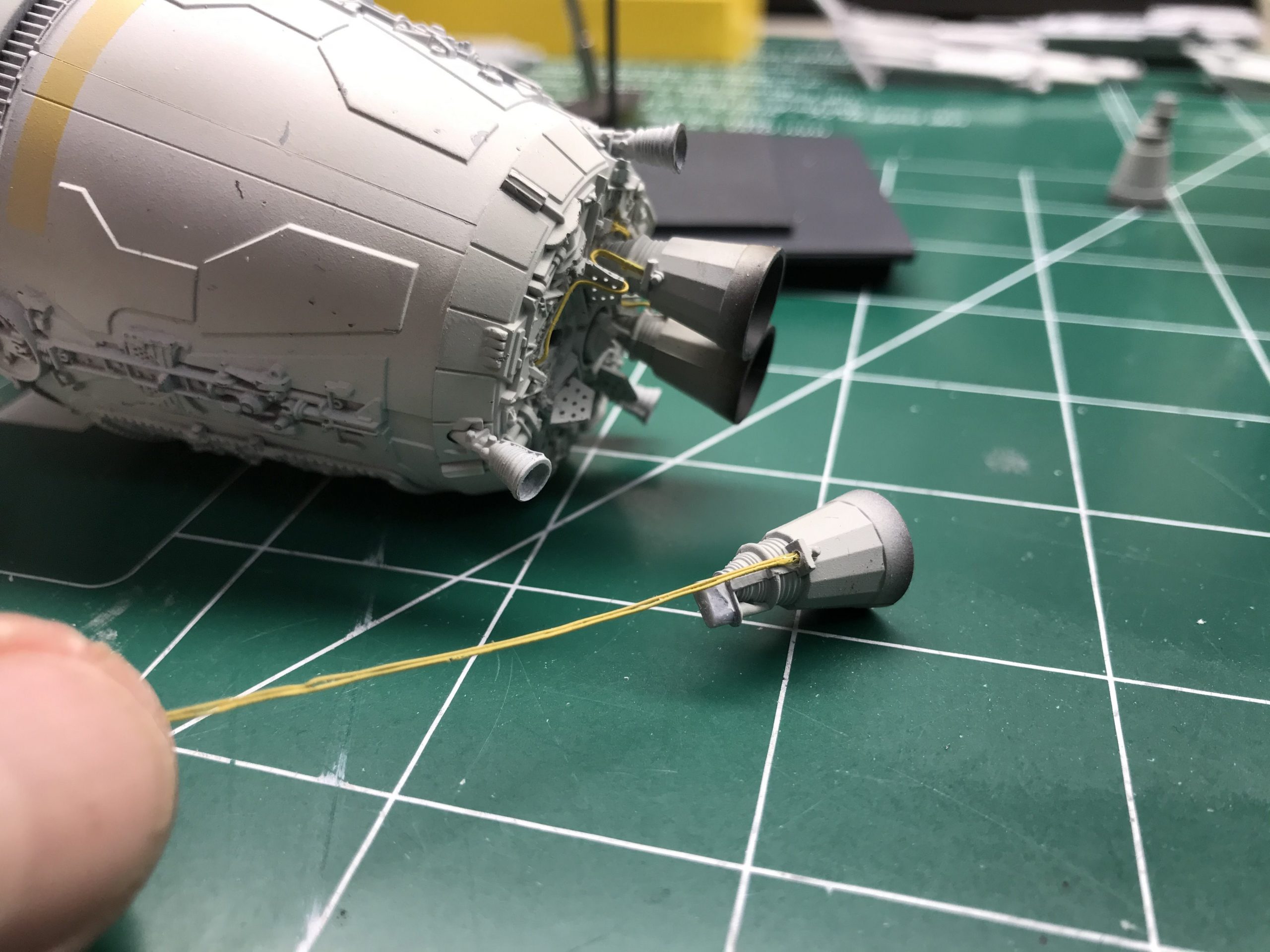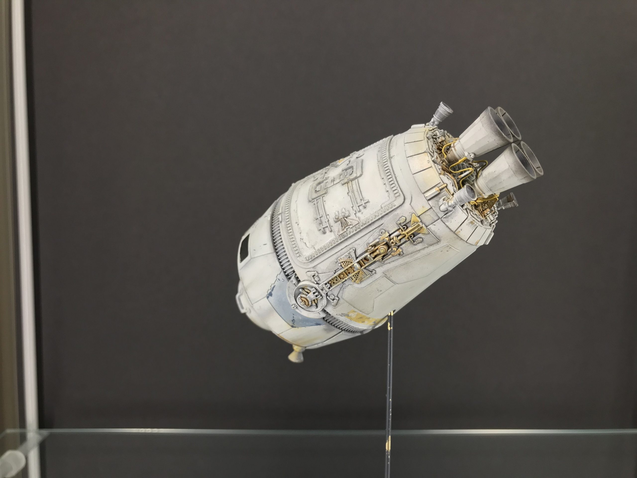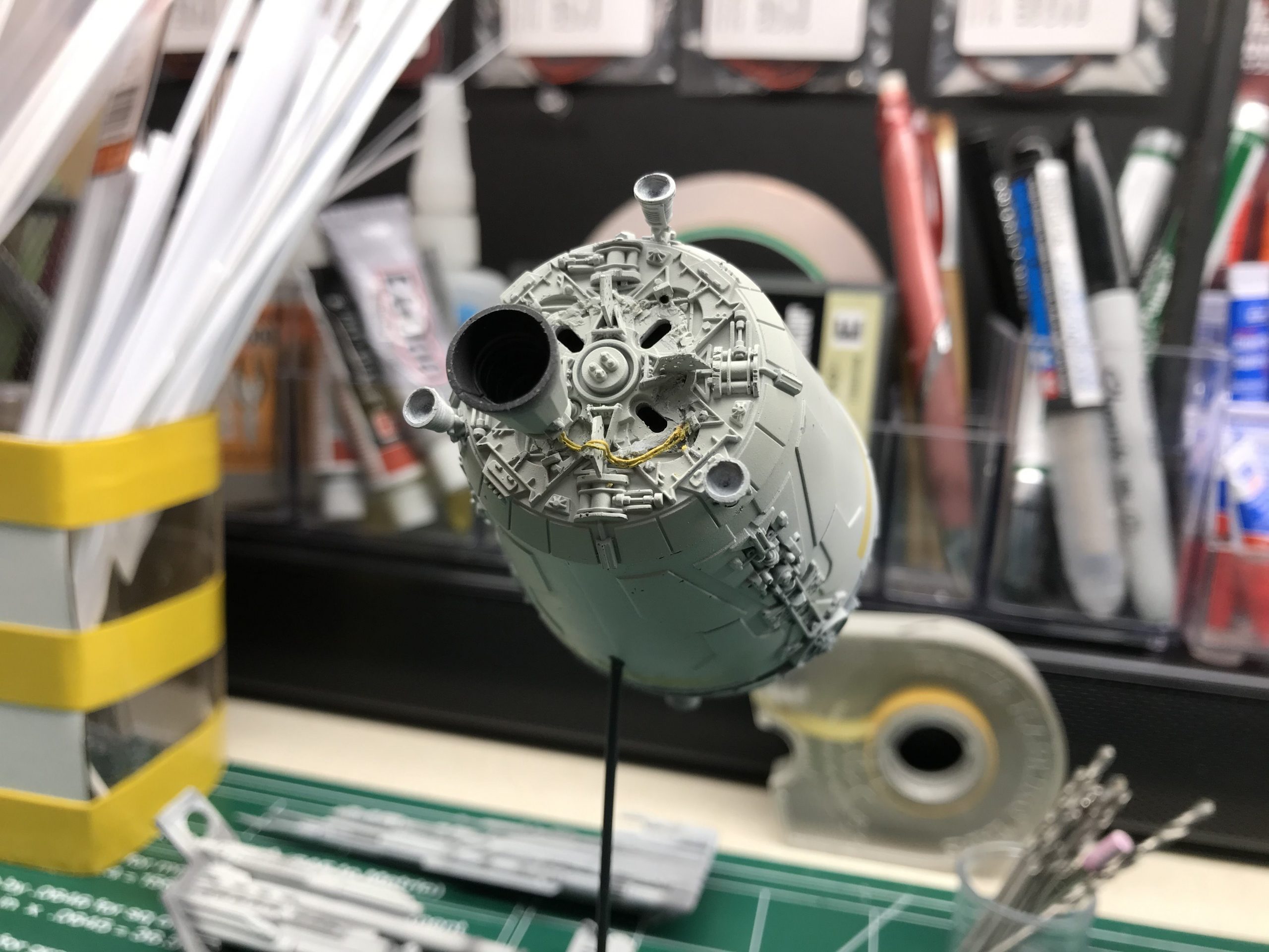 I did a little small Escape Pod build that was fun and quick. It’s from the Star Wars Legion game which I don’t play but my buddy next door does and he bought one. so I bought one to see what I could do with it! To my surprise it’s filled with detail and not bad for being only 5 inches long (tiny I know), but with a good paint job and some special mods it came out looking pretty cool. I added the triangular heat sink things between the engine bells, and cut out the molded wire/cables that were attached to the engine pan/ bells (they looked awful), then cut some magnet wire, painted and glued them to the bells, and wrapped the over the heat sink thingy. Even though it’s not perfect you can do magic with a little ingenuity and styrene. I hope you enjoy it. Given the paint job and it’s size it looks big.