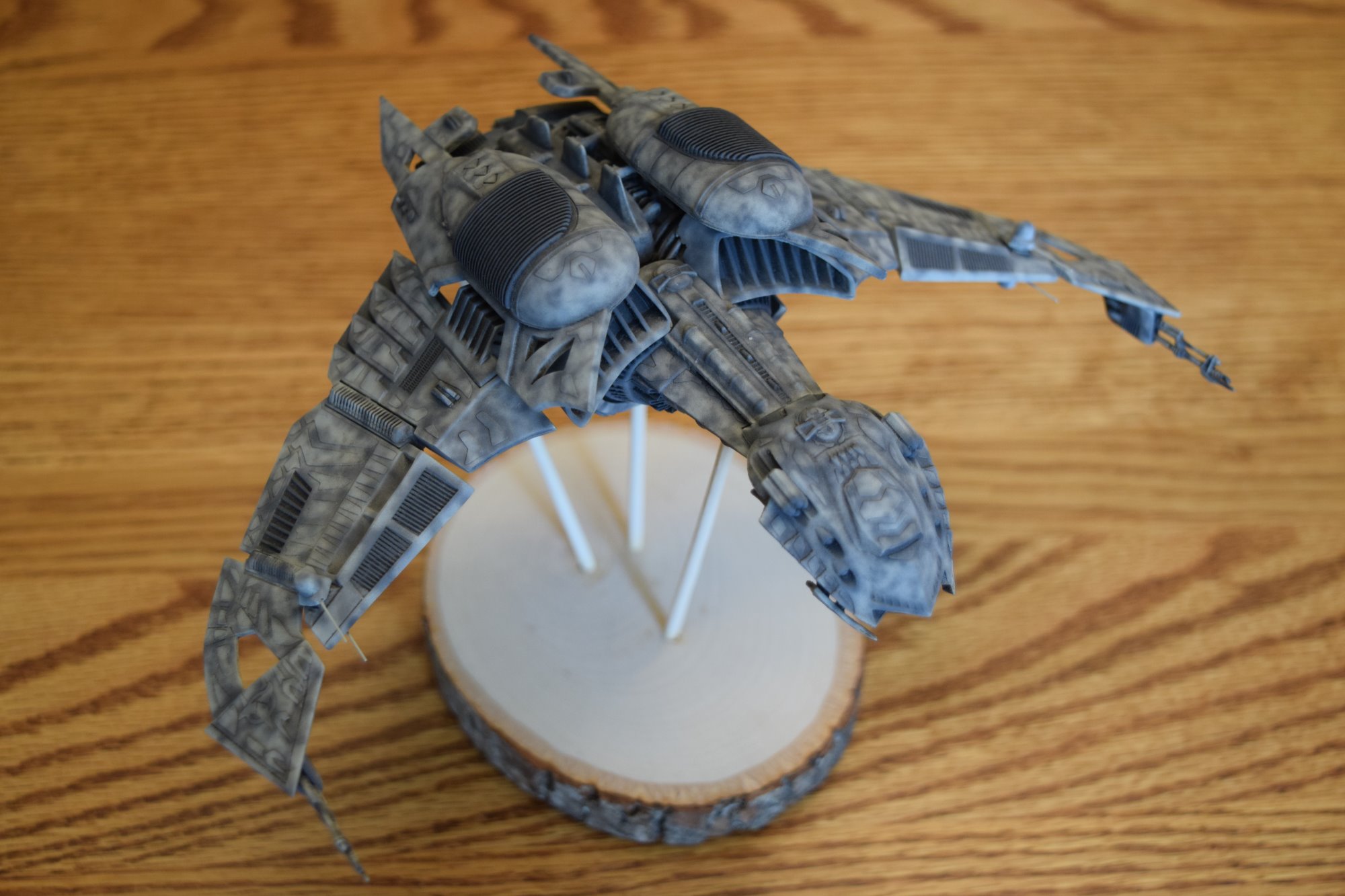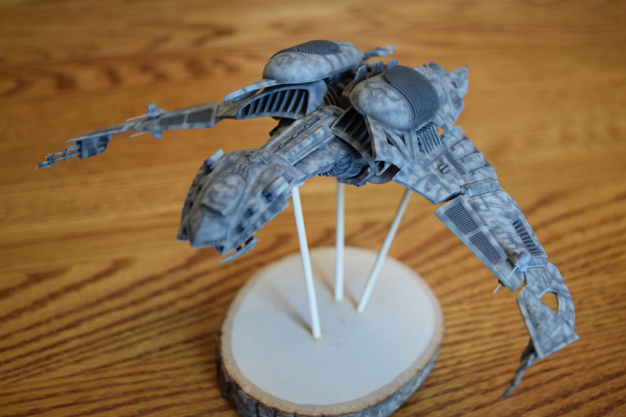 This is a model of a bird of prey concept that Pierre Drolet created for Star Trek Into Darkness. Ultimately, this concept wasn’t used; but, so many people liked it that Pierre finished the CGI model, and had master mold maker Kip Hart produce it as a kit. I picked up one of these at last year’s Wonderfest, built it, entered it in this year’s Wonderfest show. I really wish they had used this concept (instead of what they ended up using) for the BOP in ST – Into Darkness…