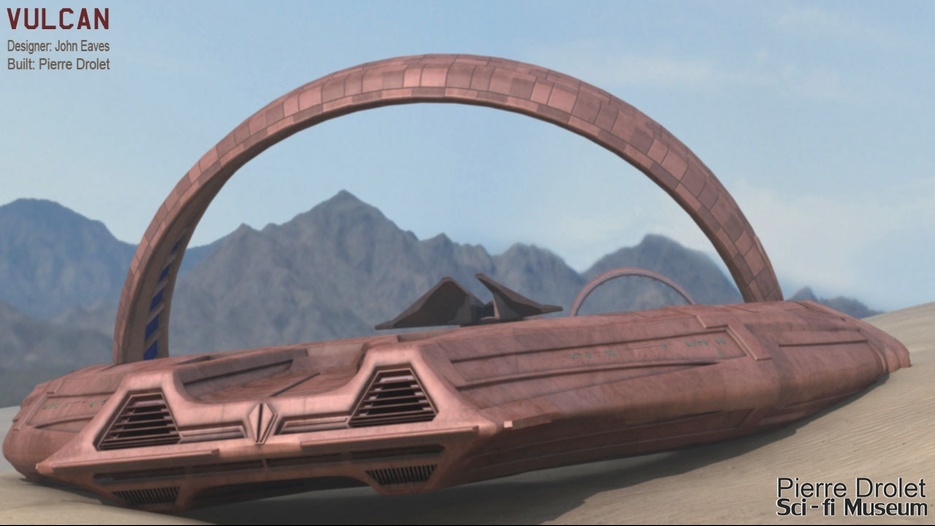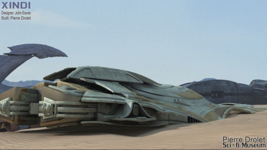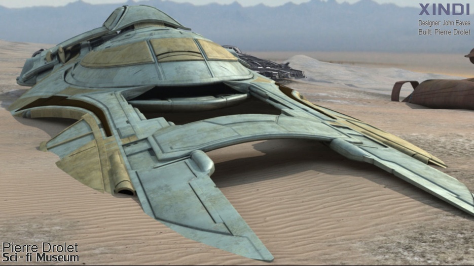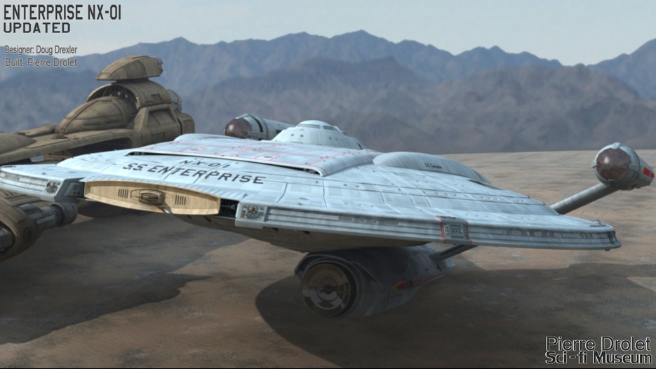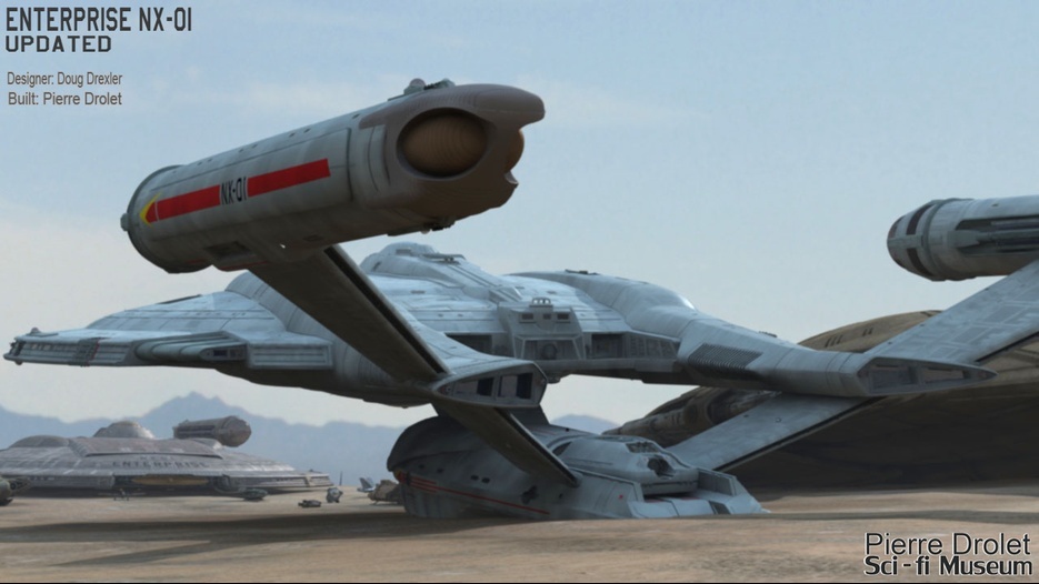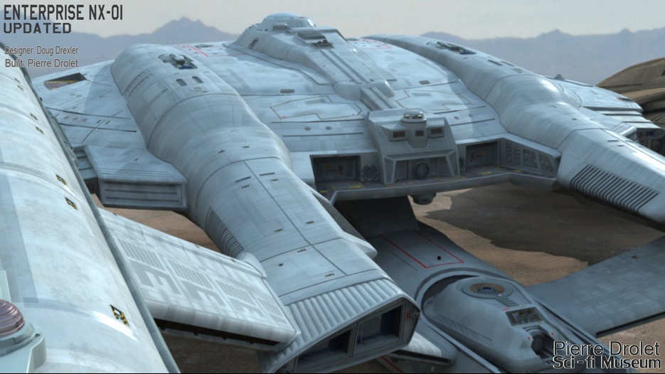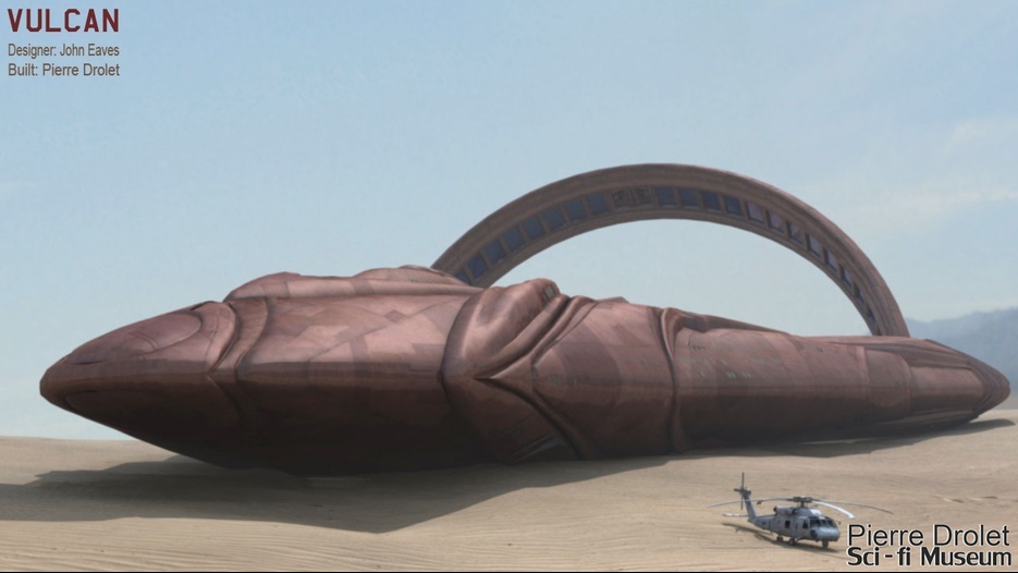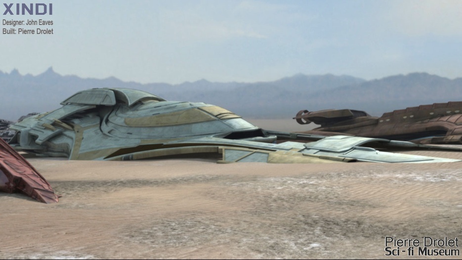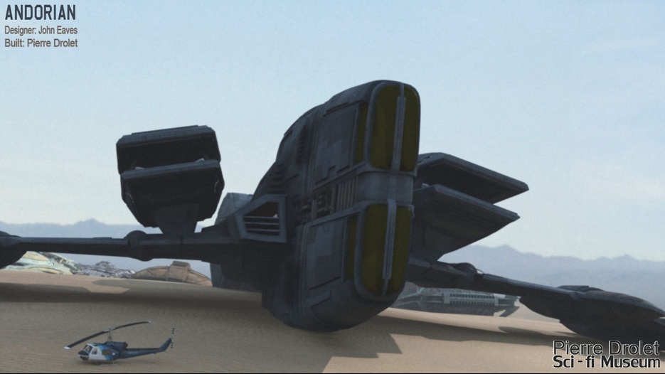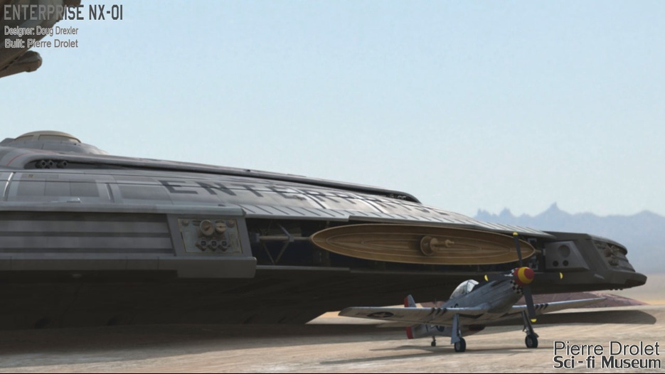Pierre Drolet’s talents are well noted in both the industry and the art form. His choice to take all the fantastic CG builds of Starship designs and place them in a desert looking environment really gave me chills. It is completely reminiscent of today’s retired aircraft boneyards, but on the huge scale they are. I can’t even imagine being able to walk among something like this should they have been real! Absolutely fantastic! Plus, you will notice great designs from Doug Drexler, John Eaves, and even Matt Jeffries among these works of Pierre’s! OUTSTANDING!!