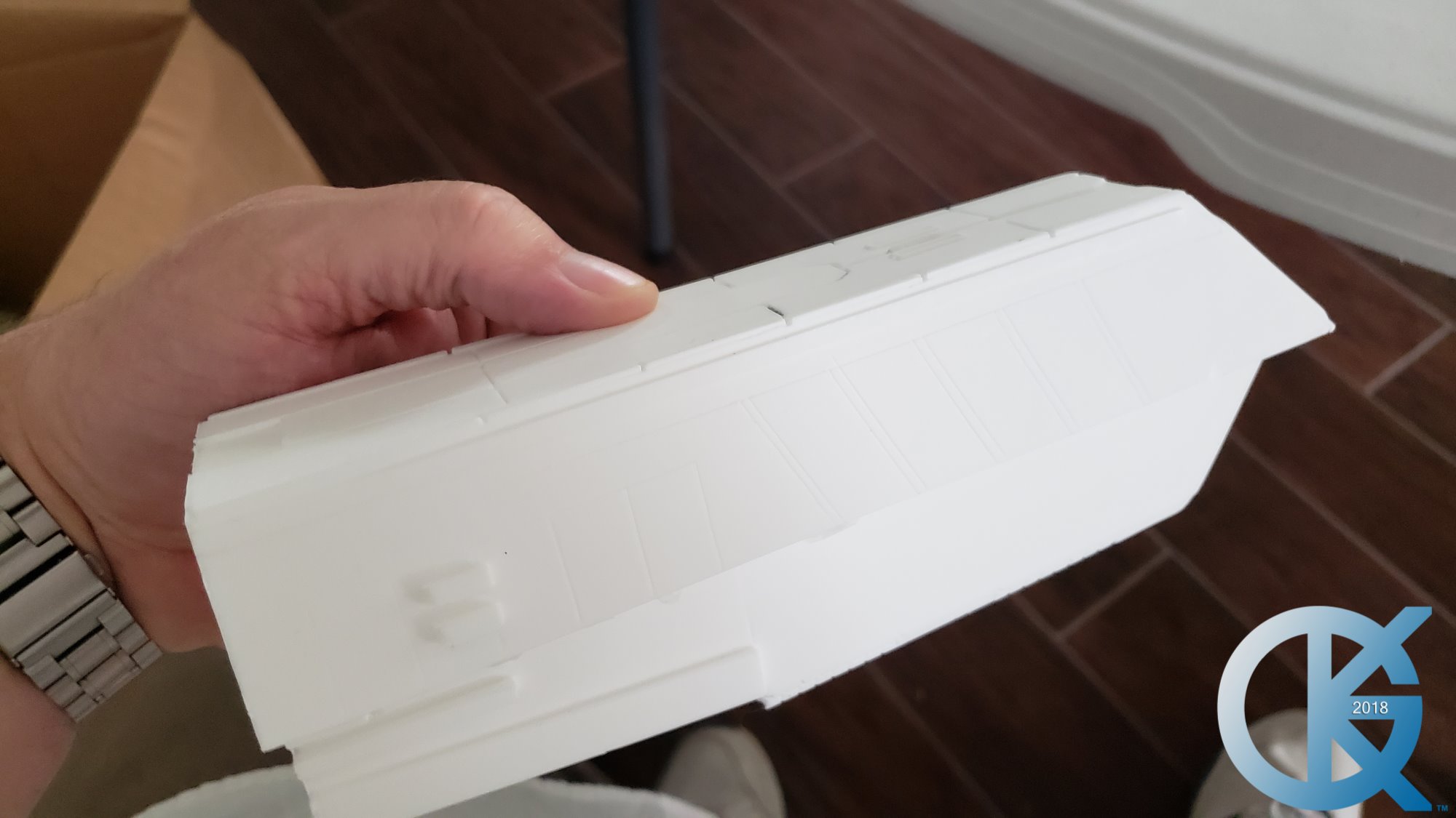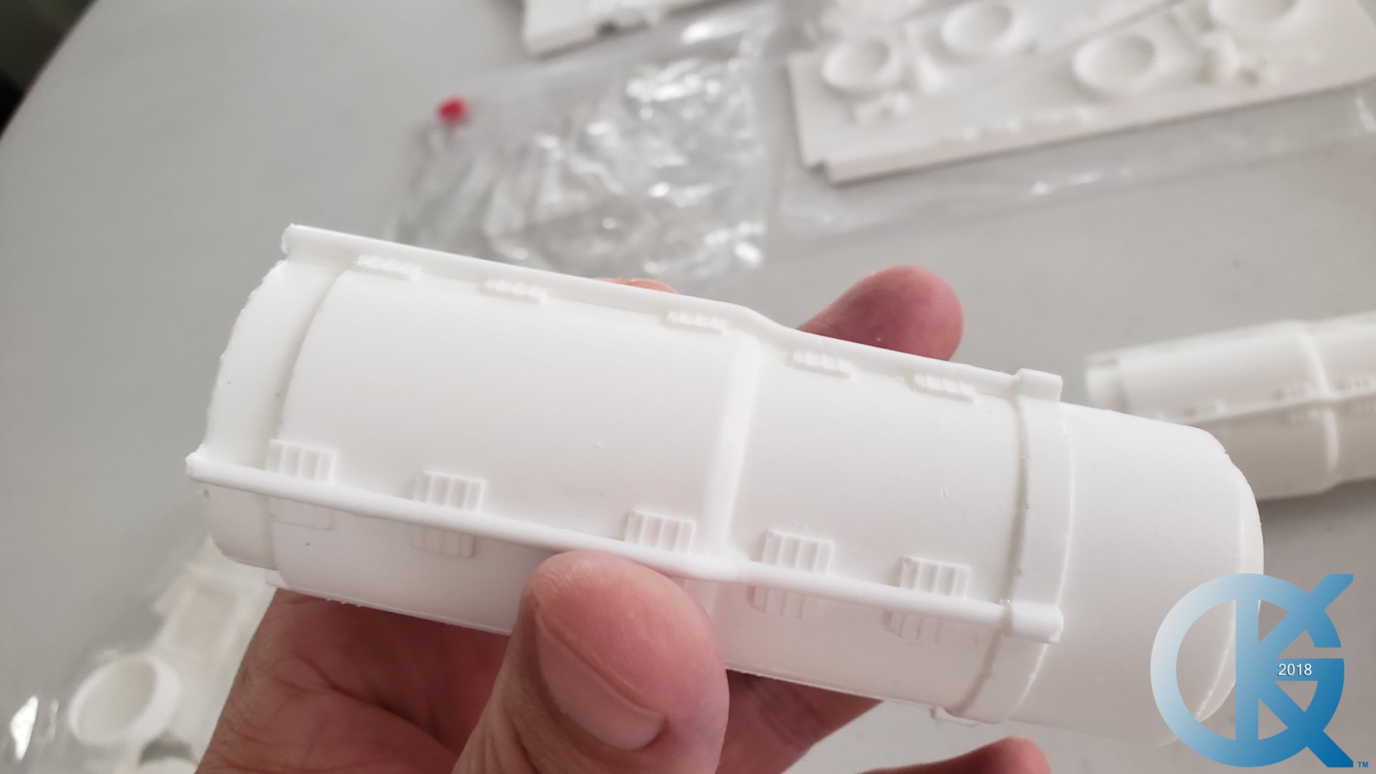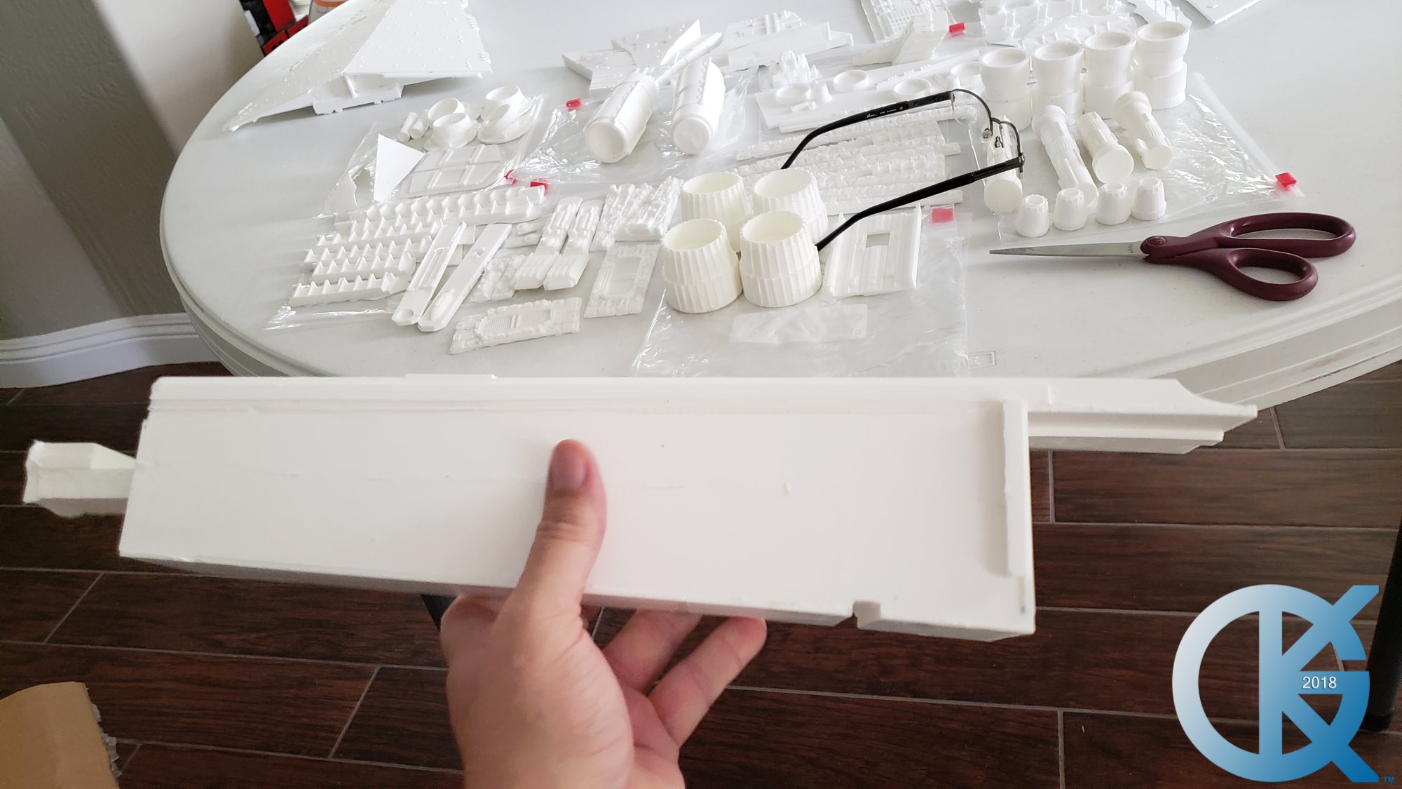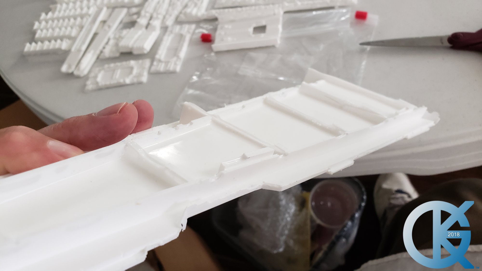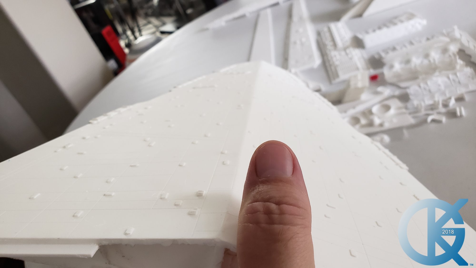 The box arrived with a small dent in the top from the shippers, but all in all, it was in good condition when it arrived. It had heft to it as well, and when I opened the box to reveal the well packed parts, I could see why. This one was packed so well that not one part was found broken when I finally finished unwrapping it all (a process that took me 1/2 hour). This is great news to me, as I have received kits before from many kit makers (that had been shipped in much smaller boxes) that were delivered to me with broken parts here and there. I take this as a great sign. The first thing noticeable is how many parts there are, and that some will need significant trimming of flash. That stated…. I found this kit to be quite crisp in cast, with the ‘sometimes’ found teeny tiny bits of rubber mold in tiny detail areas here and there. Not an issue for us at all. If I look really hard, with my aging eyes, and I take extreme close-up shots of the parts, you might see a micro-bubble once in a while… which has been common in this art form, and of which has lessened over this last decade with new technologies and skill. There is a large block of resin that is actually part of the kit… a kind of armature that enforces the overlaying panels. It is heavy for sure, and something we may end up replacing, while keeping it’s form and purpose in mind. There are many guns and long tubular shaped cast parts that we may replace as well, using brass in their stead. Over all… this kit is very build-able, and will display nicely when built. We shall see that review at that time. Alfred Wong did amazing work in creating these patterns. I am very happy to have one, let alone two (the second of which will be in one of those future shipments).