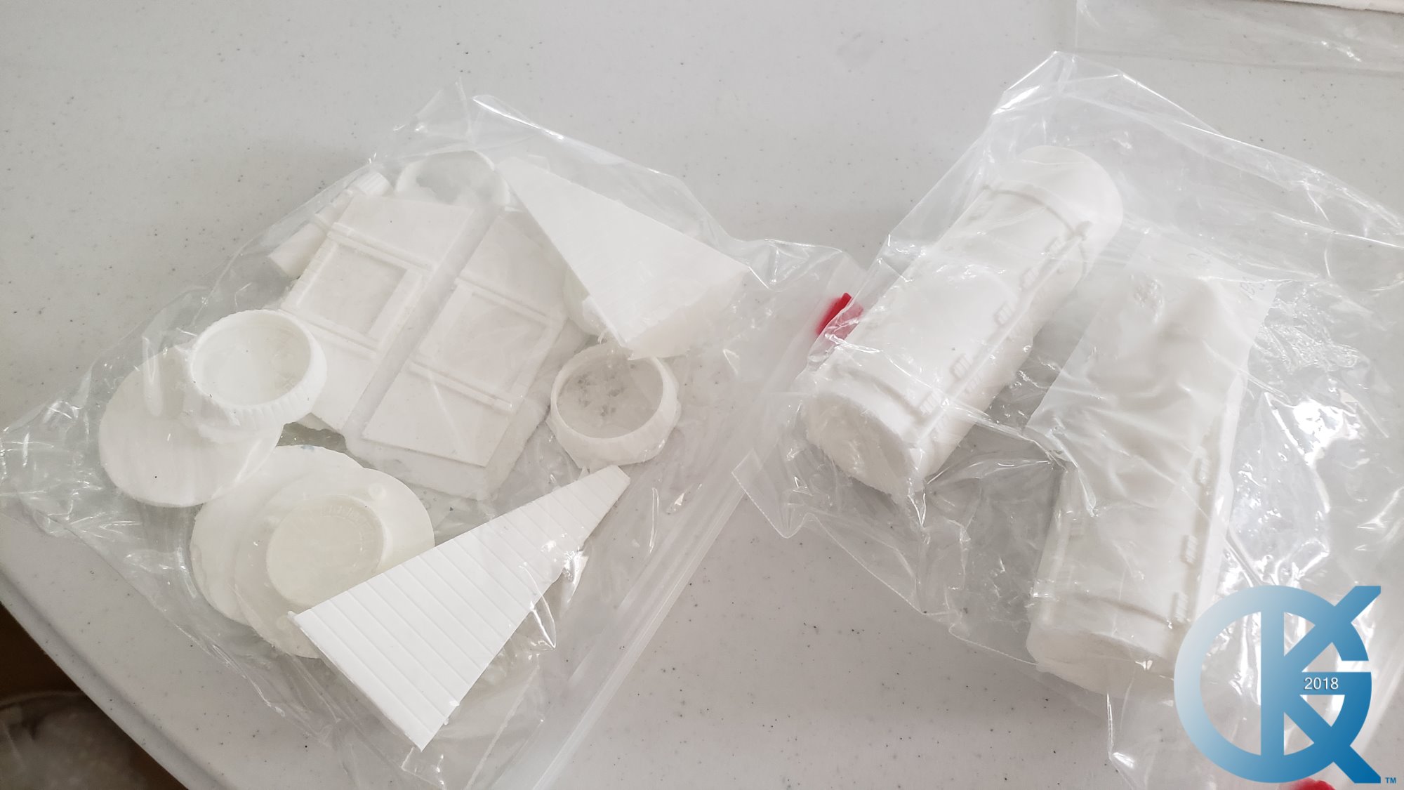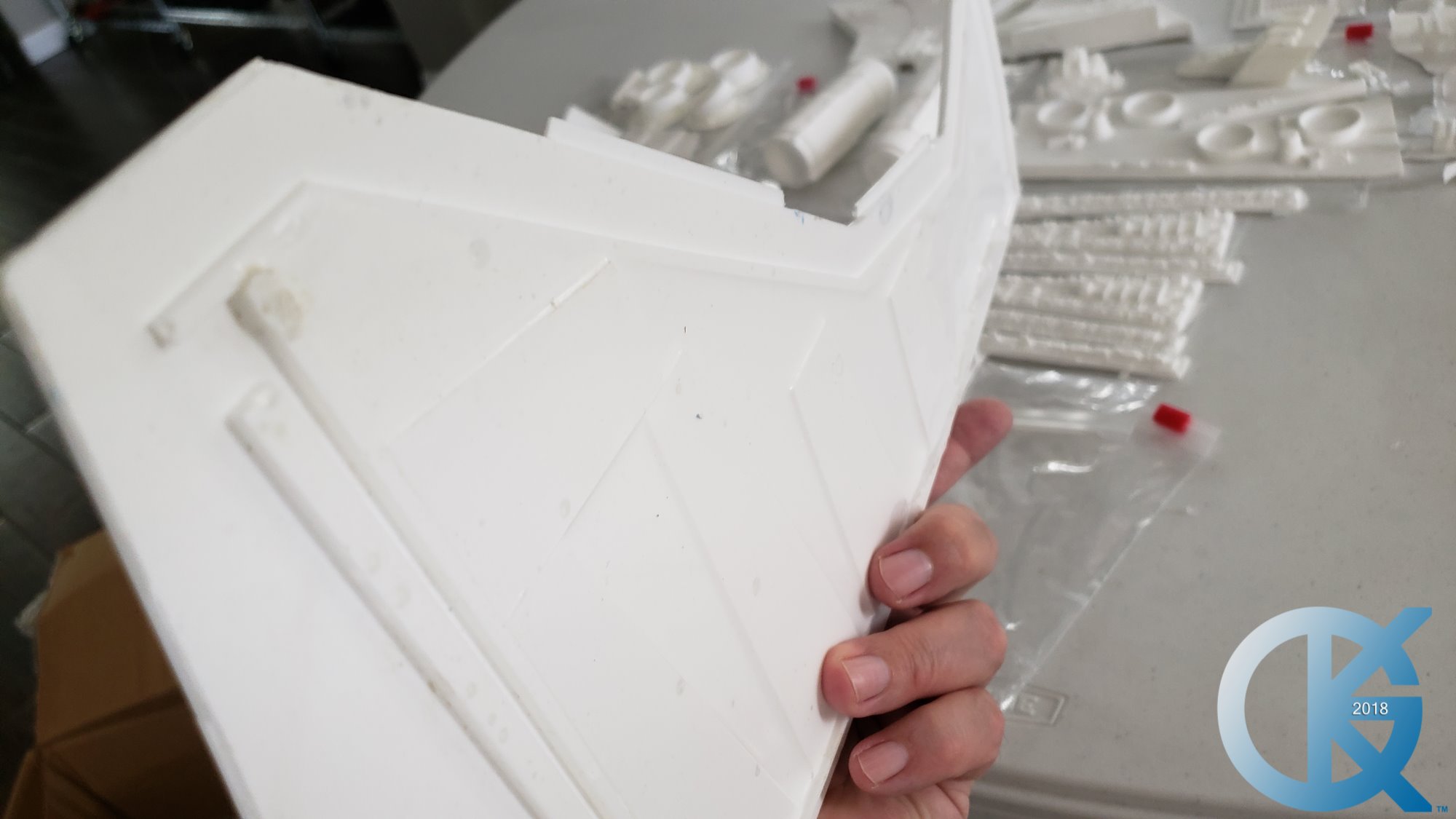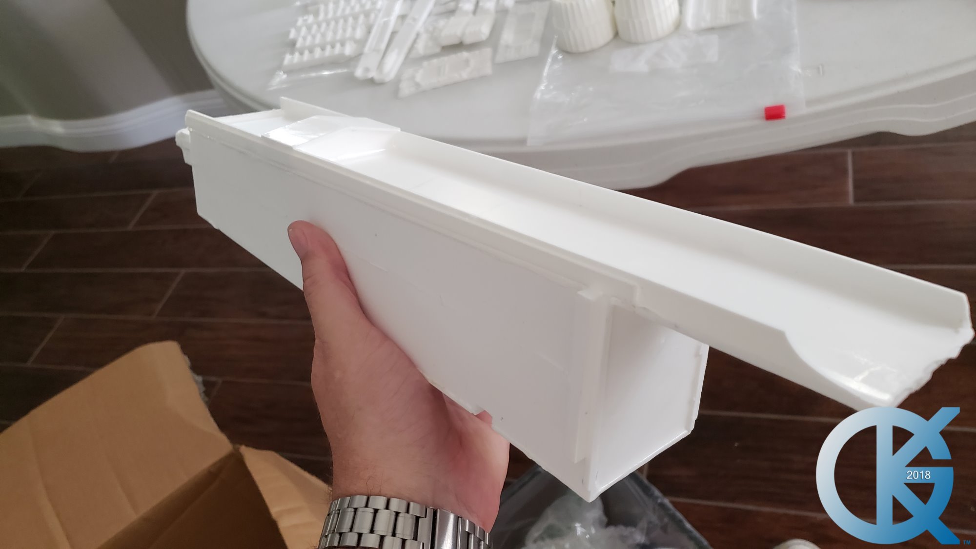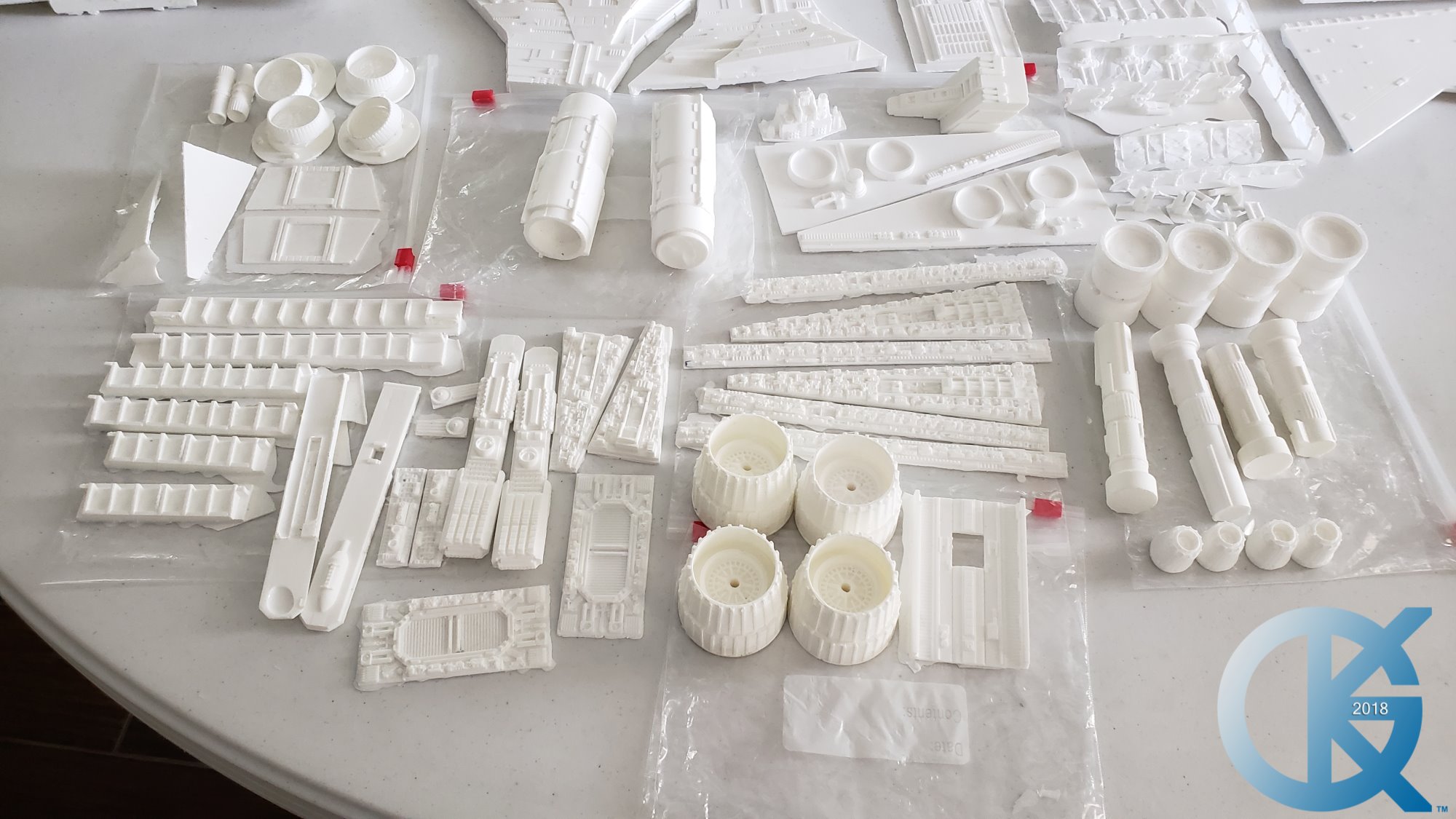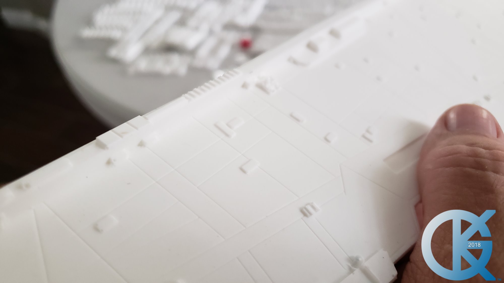 The box arrived with a small dent in the top from the shippers, but all in all, it was in good condition when it arrived. It had heft to it as well, and when I opened the box to reveal the well packed parts, I could see why. This one was packed so well that not one part was found broken when I finally finished unwrapping it all (a process that took me 1/2 hour). This is great news to me, as I have received kits before from many kit makers (that had been shipped in much smaller boxes) that were delivered to me with broken parts here and there. I take this as a great sign. The first thing noticeable is how many parts there are, and that some will need significant trimming of flash. That stated…. I found this kit to be quite crisp in cast, with the ‘sometimes’ found teeny tiny bits of rubber mold in tiny detail areas here and there. Not an issue for us at all. If I look really hard, with my aging eyes, and I take extreme close-up shots of the parts, you might see a micro-bubble once in a while… which has been common in this art form, and of which has lessened over this last decade with new technologies and skill. There is a large block of resin that is actually part of the kit… a kind of armature that enforces the overlaying panels. It is heavy for sure, and something we may end up replacing, while keeping it’s form and purpose in mind. There are many guns and long tubular shaped cast parts that we may replace as well, using brass in their stead. Over all… this kit is very build-able, and will display nicely when built. We shall see that review at that time. Alfred Wong did amazing work in creating these patterns. I am very happy to have one, let alone two (the second of which will be in one of those future shipments).