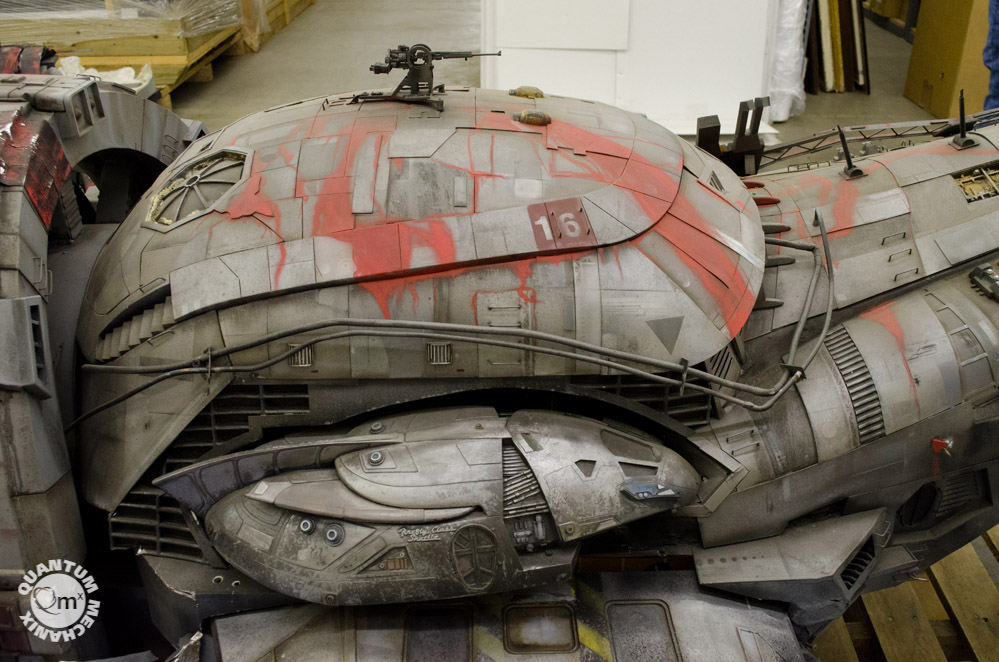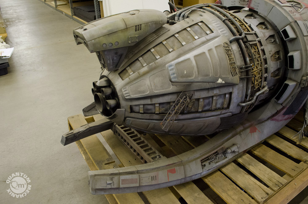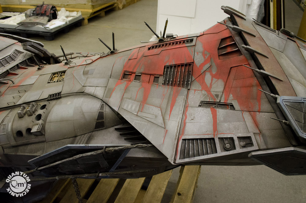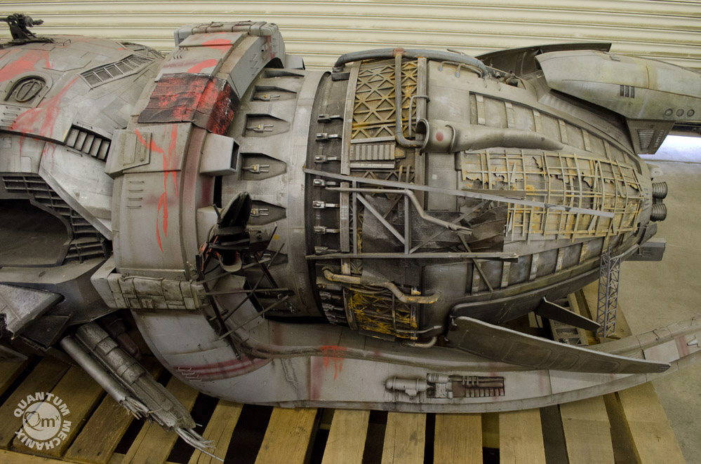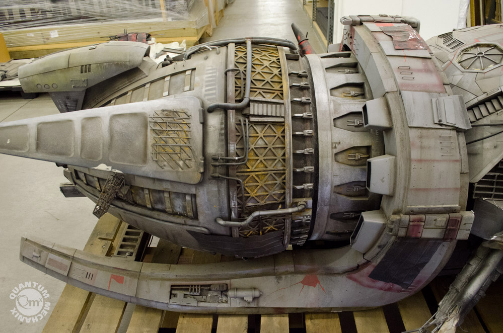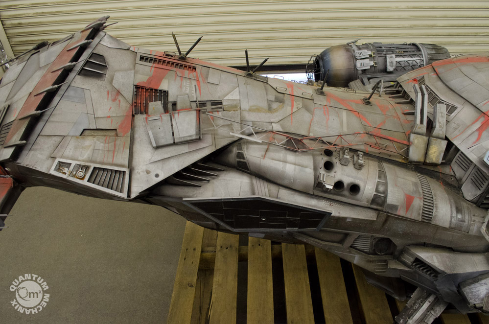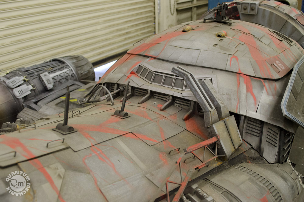 Looks like a year or so ago, the model makers at QMX were able to take these photos of the Serenity, the larger model built for the crash sequence in the same named film! Fantastic! Thank you QMX!!