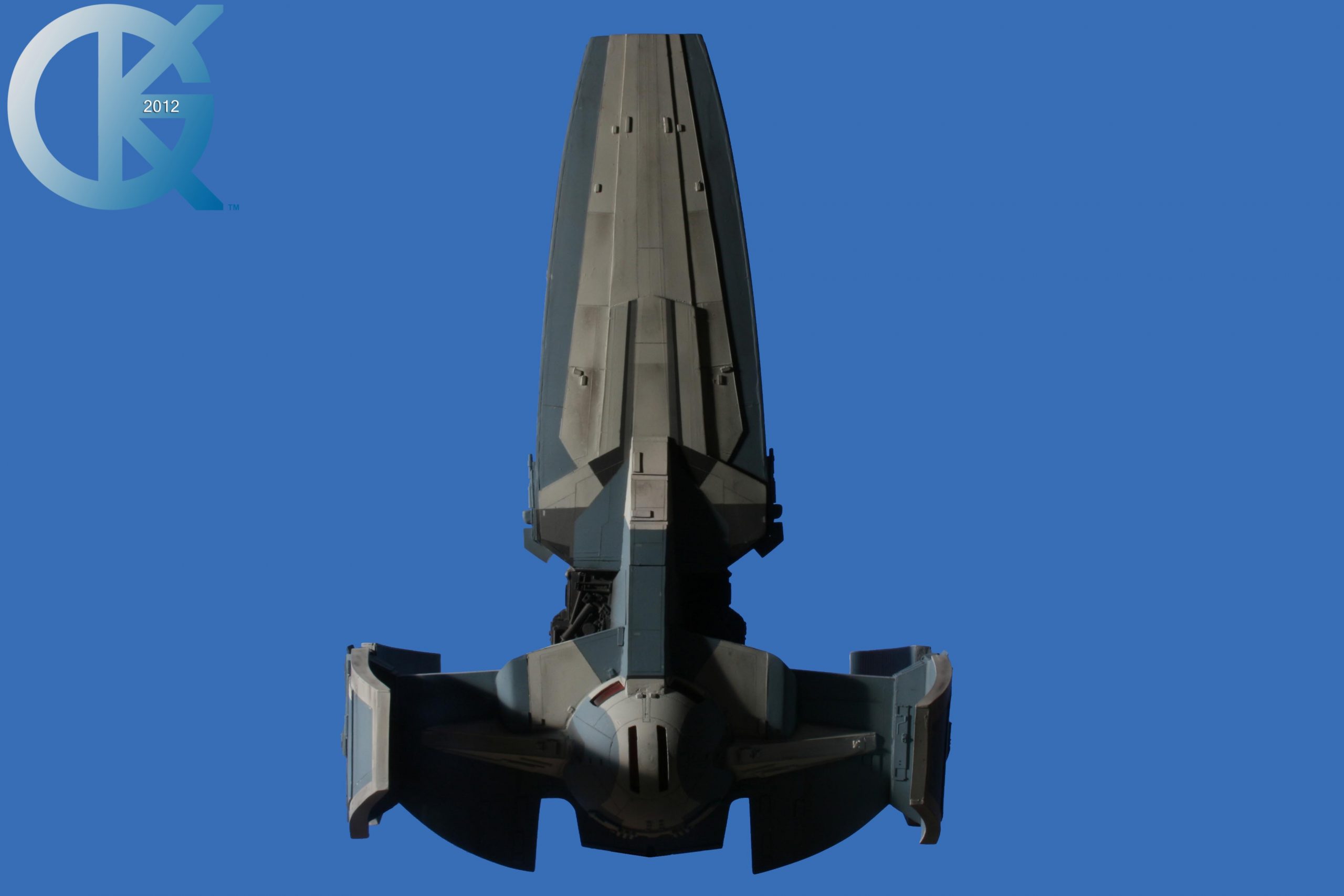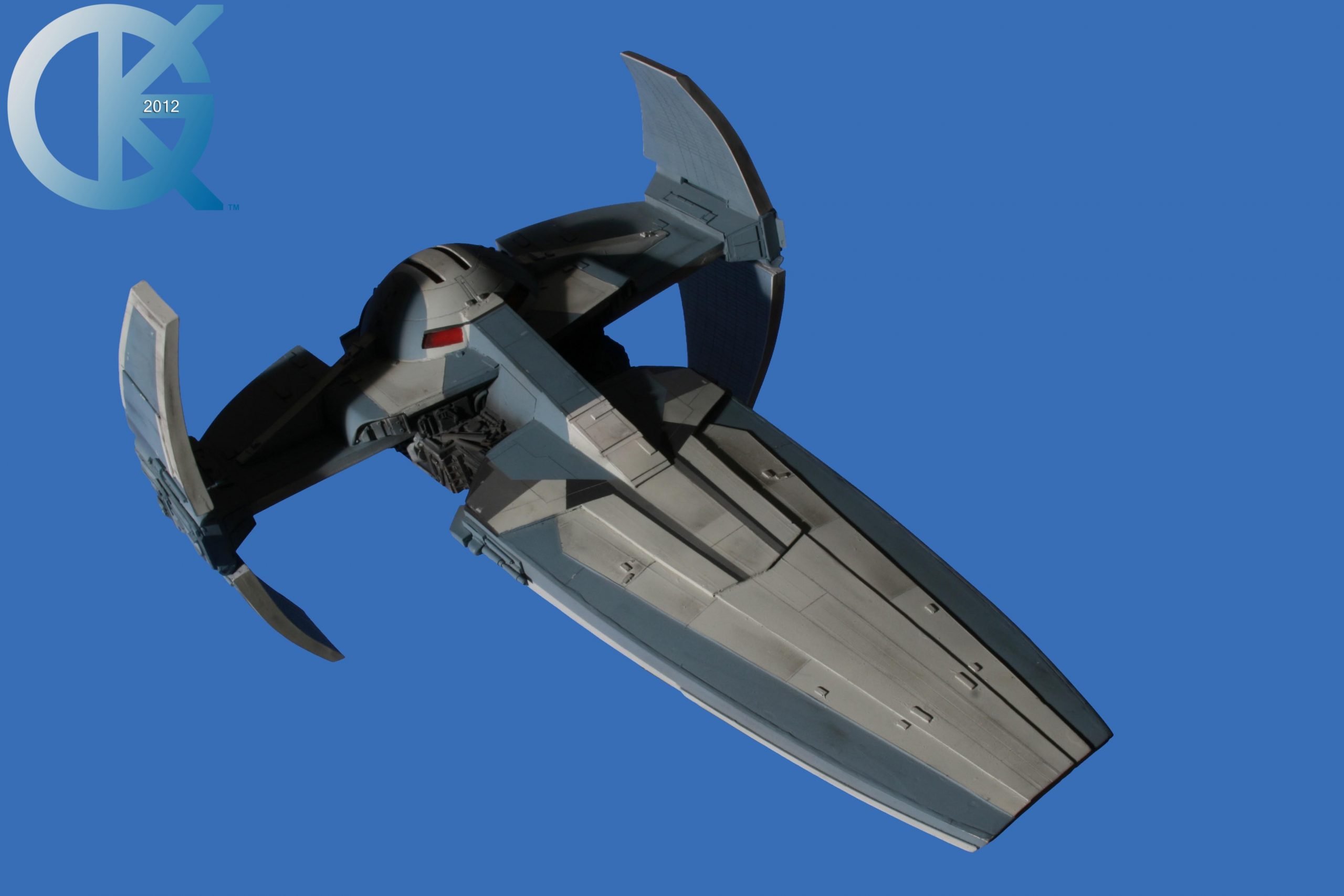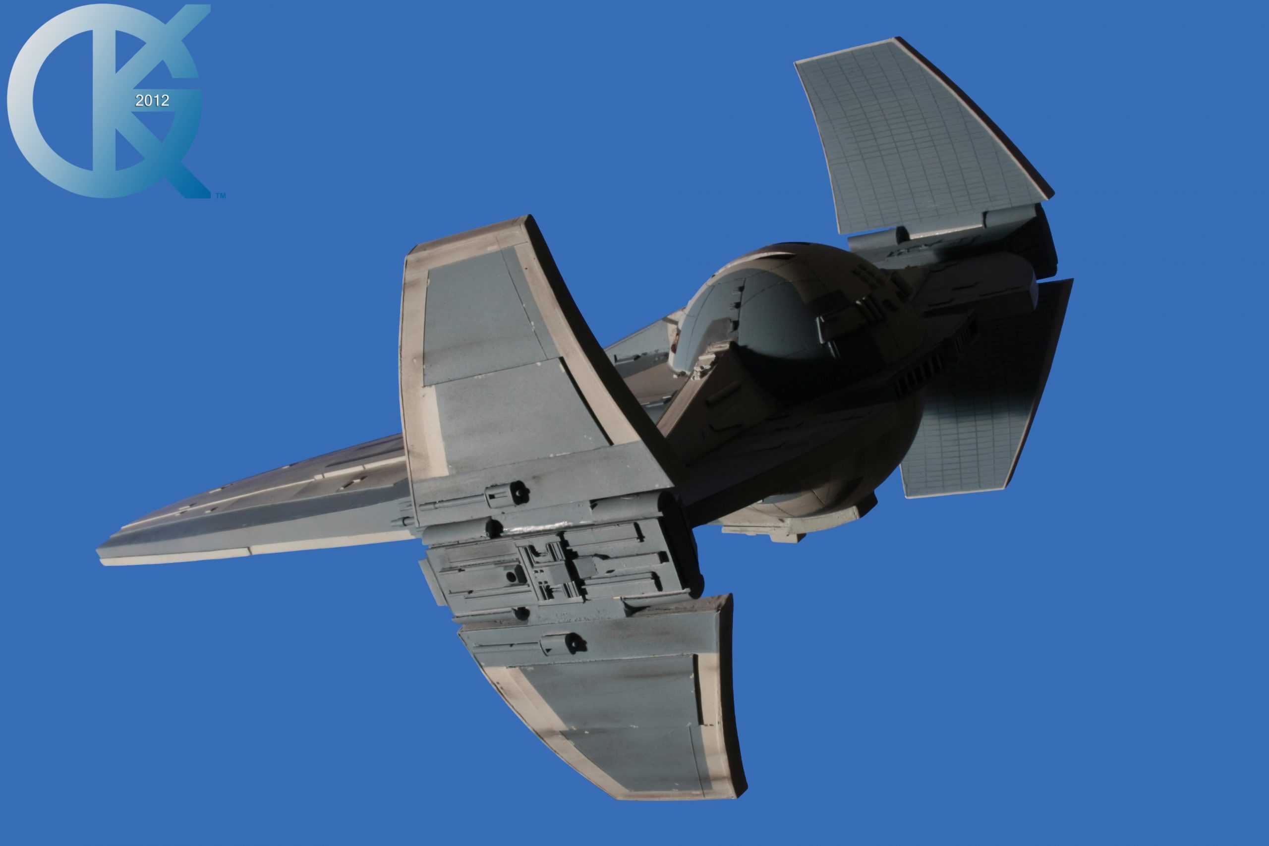 This piece’s story is over years! Darth Maul’s SITH Infiltrator! A model that is not seen in many builds around the world,… as it was not a very popular design at the time. For me, I love it! To give credit where it is due for it’s creation, this kit was made by controversial modeler Mike Tait back in 2008 and was released on March 2009. As I loved the design, I snatched one up right away. At that time, I had just opened up a new shop with a few artists involved… one of whom was Robert Bleecker (R.L. Bleecker).. who is a friend of mine. Robert had built many items for the collection and I wanted to see what he would do with this piece as well, so the project became his in April 2009. Unfortunately with the many, many projects already on the books, this model build ended up on the back burner for a time and finally came to the front burner to be completed in April of 2010. It turned out beautifully. Of course we now have better reference and know that the wings are too thick, but that is something that sits fine with me today. Robert did a first class job with this piece, just as he always does. Since “busy” is a word I am entangled with much in life, I was finally able to take these Blue Screen photos of it back in September of 2012. I wish I had taken a photo of this model with me to show it’s large size. It is impressive to view. Again, great job to Robert Bleecker on this build.