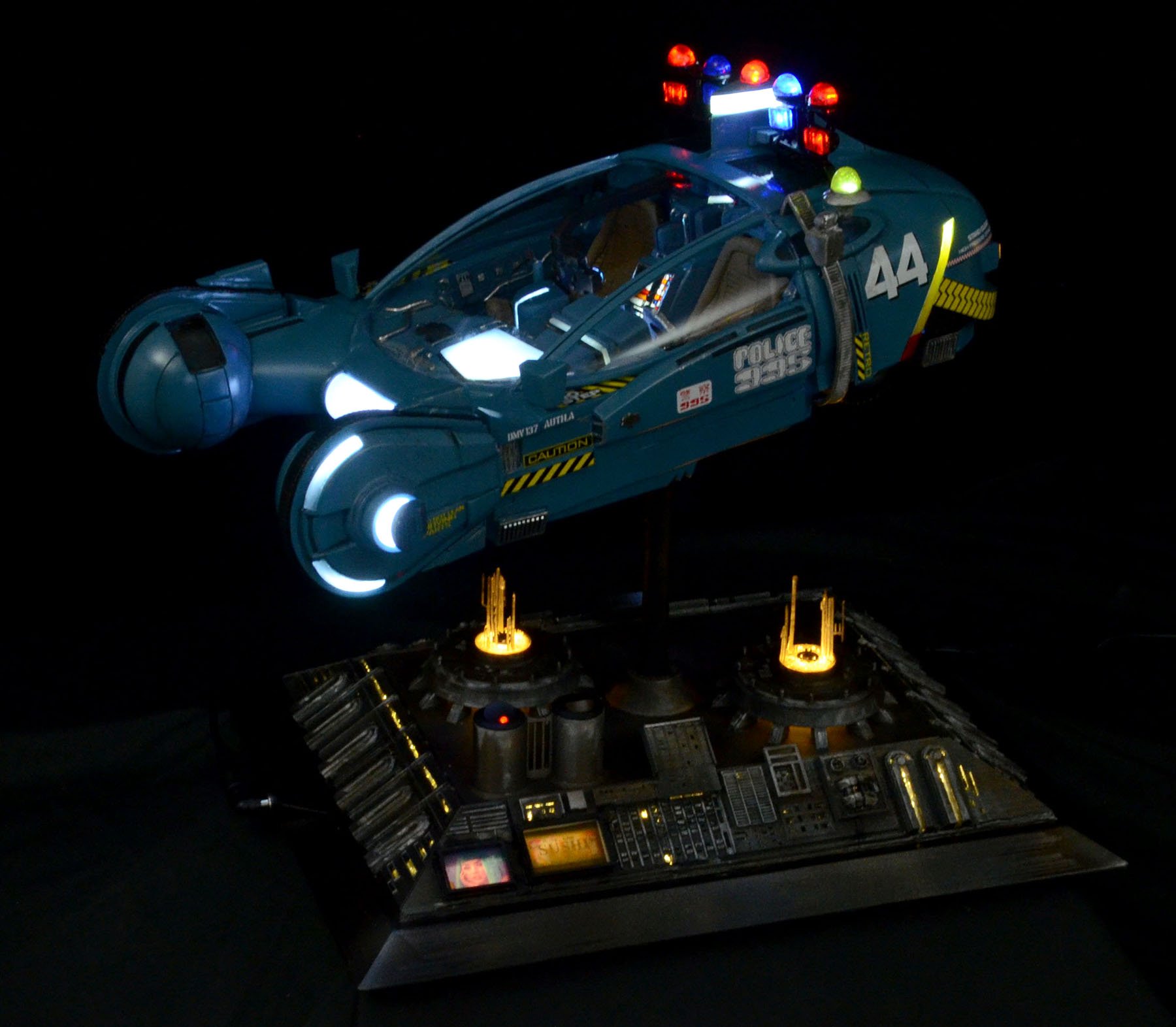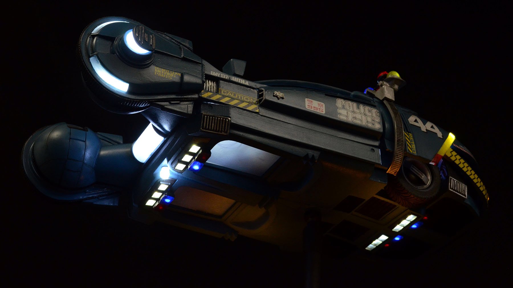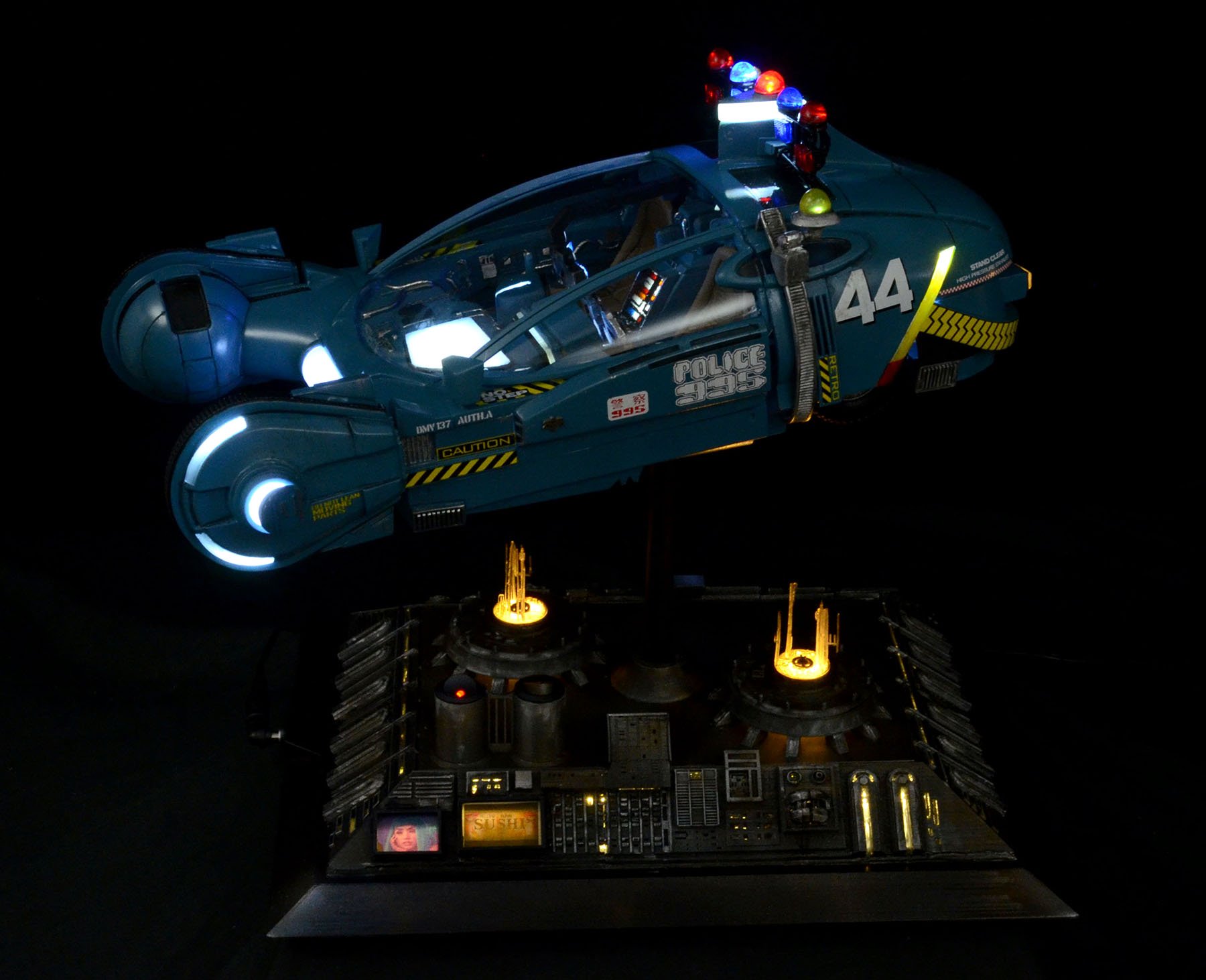 I just finished a Randy Cooper Blade Runner Spinner resin kit, which I believe is 1:12 scale. I used a Voodoo FX lighting kit so the lights on top/bottom all flash slowly. The city-scape was my own design, but I took all of the features from some original BR model reference photos. I had to include the girl from Blade Runner 2049 on one of the billboards!