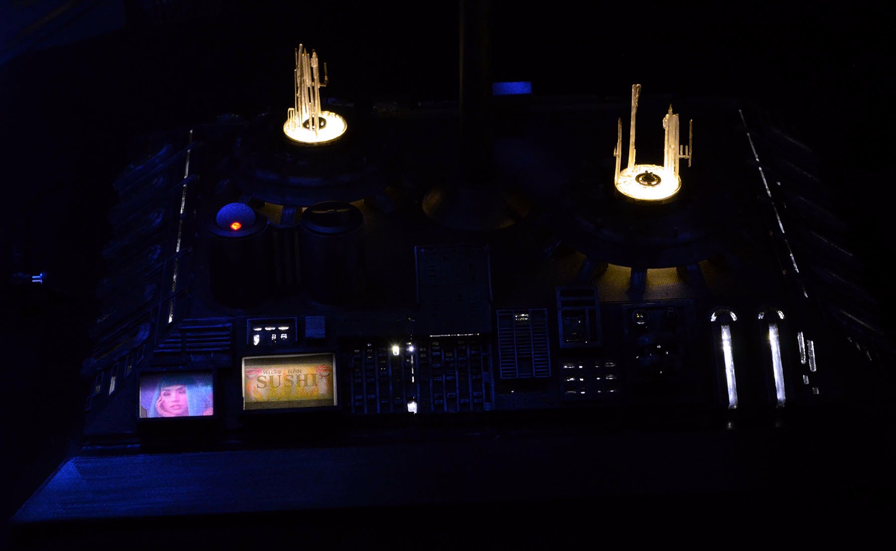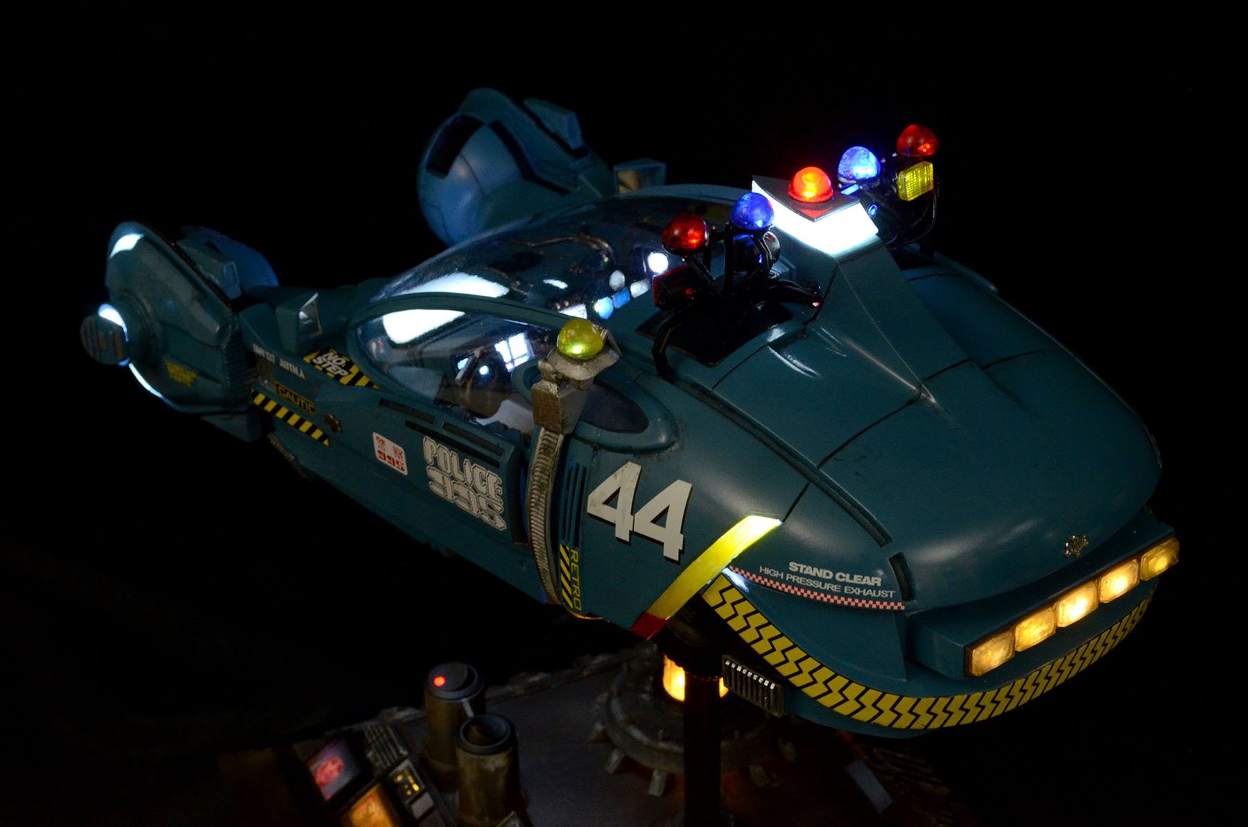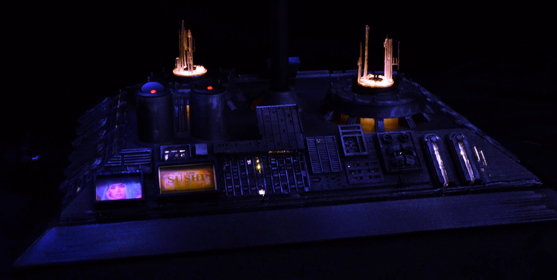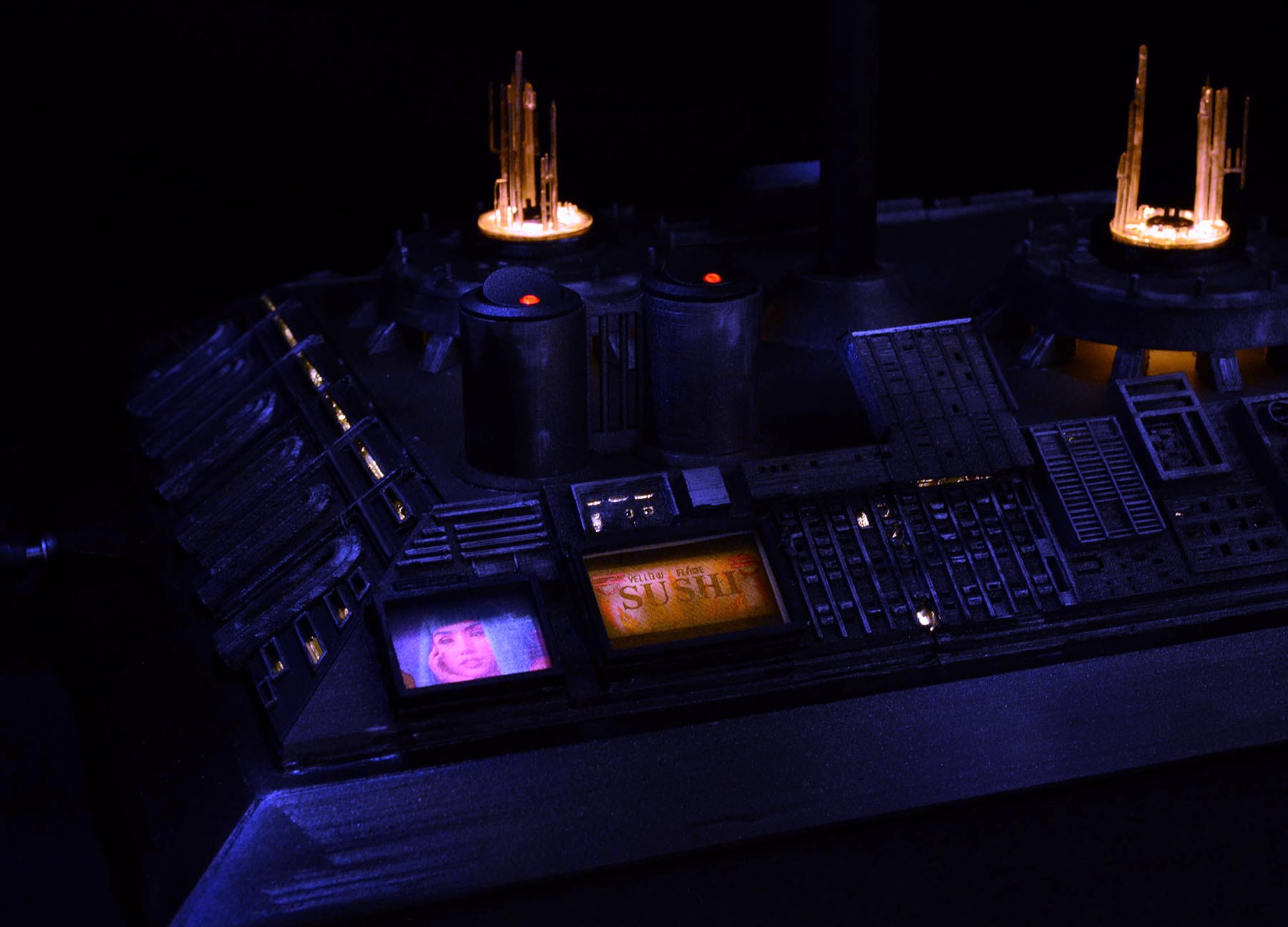 I just finished a Randy Cooper Blade Runner Spinner resin kit, which I believe is 1:12 scale. I used a Voodoo FX lighting kit so the lights on top/bottom all flash slowly. The city-scape was my own design, but I took all of the features from some original BR model reference photos. I had to include the girl from Blade Runner 2049 on one of the billboards!