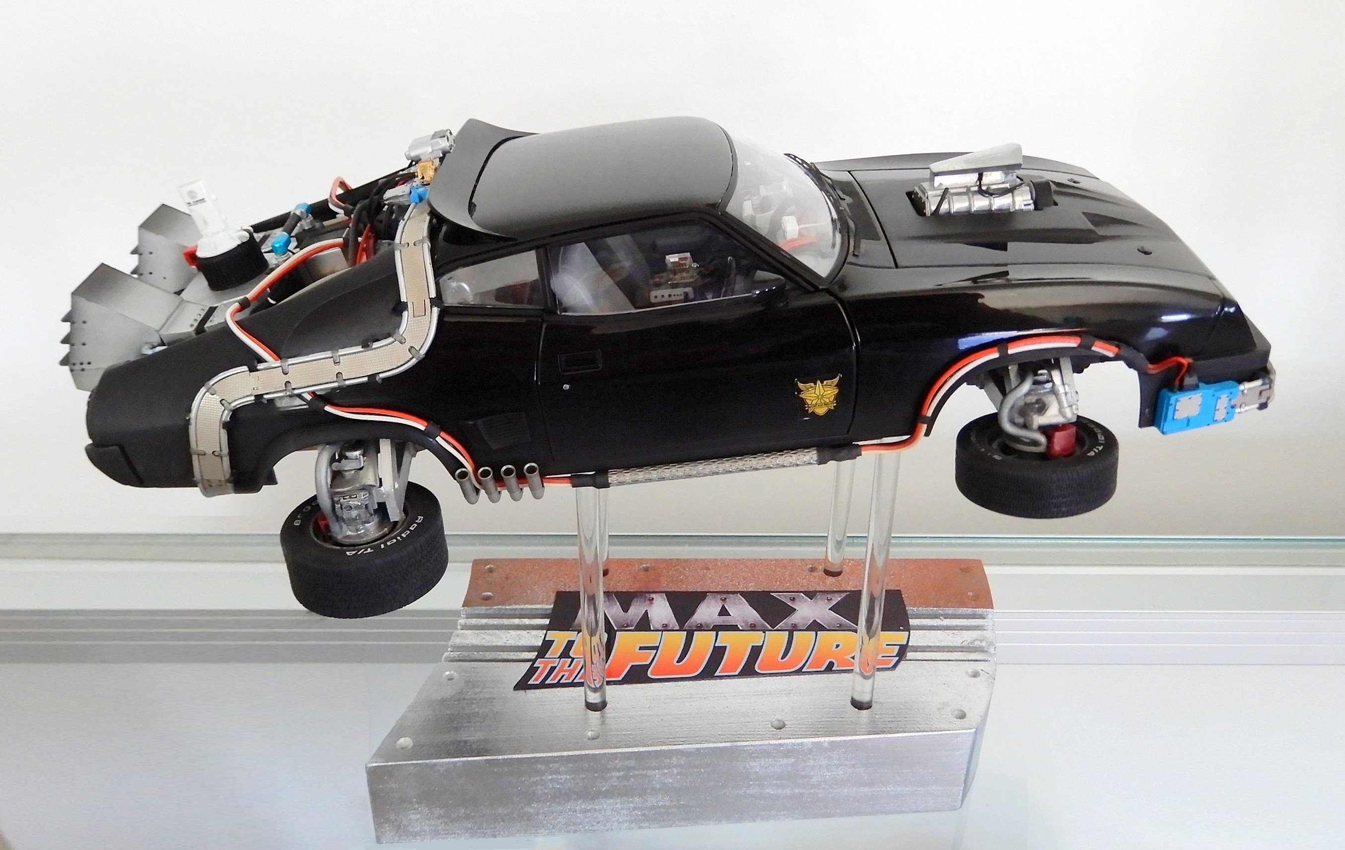 Here is my 1/18 scale Max to the Future,.. Finished! I don’t usually like mashups, but I couldn’t resist doing this one. Something I decided to do when I saw someone do a ground version of this on FB. I already had damaged Mad Max car ( I dropped it, so I replaced it). So I bought the Hot Wheels Delorian on Ebay. It took me 3 days to make this concoction.