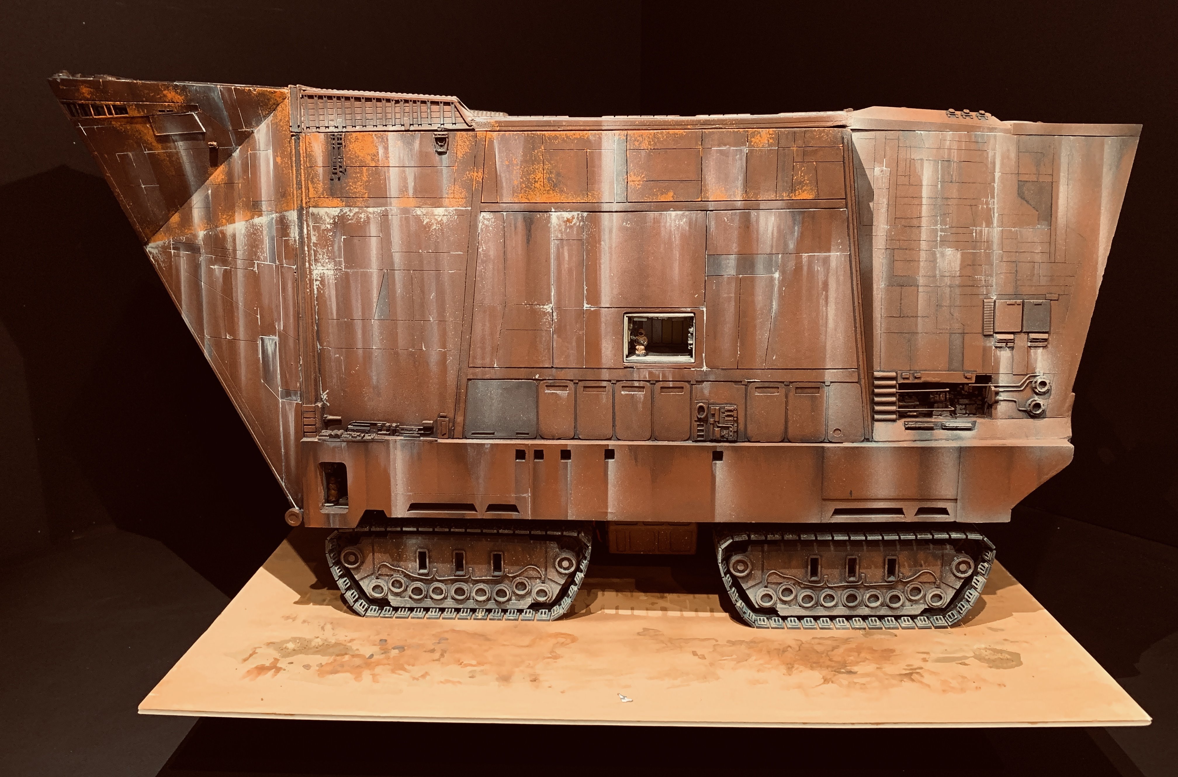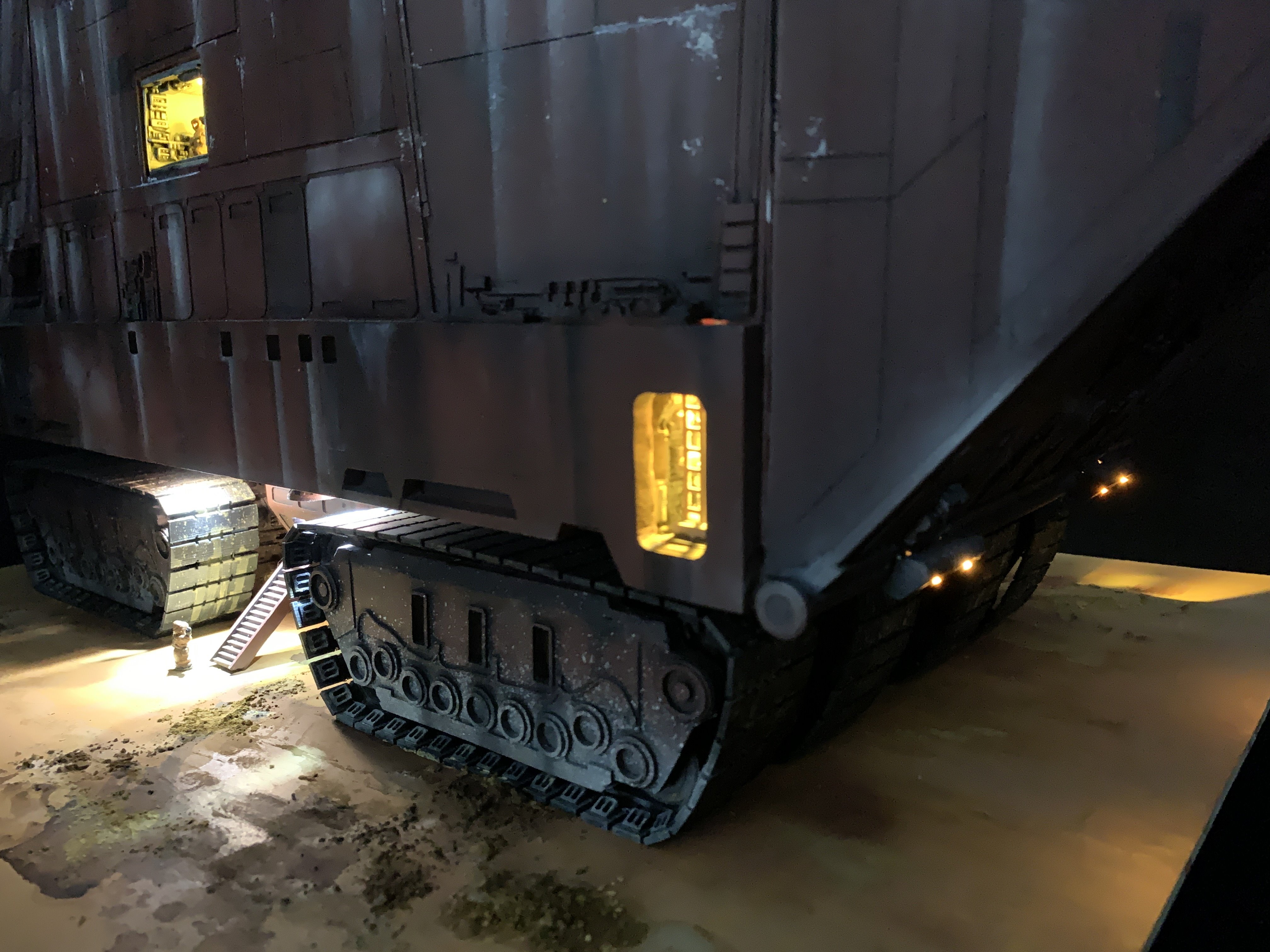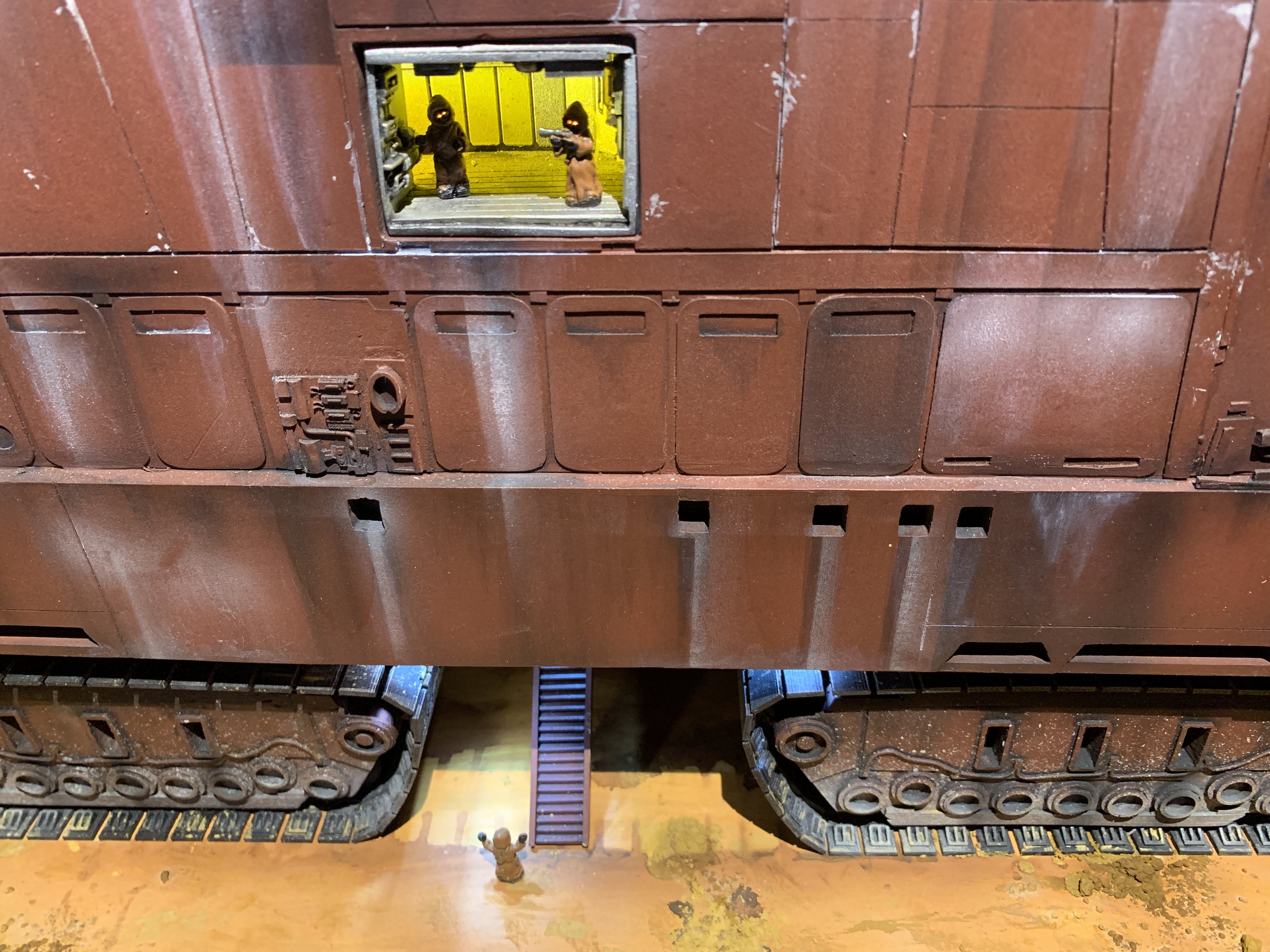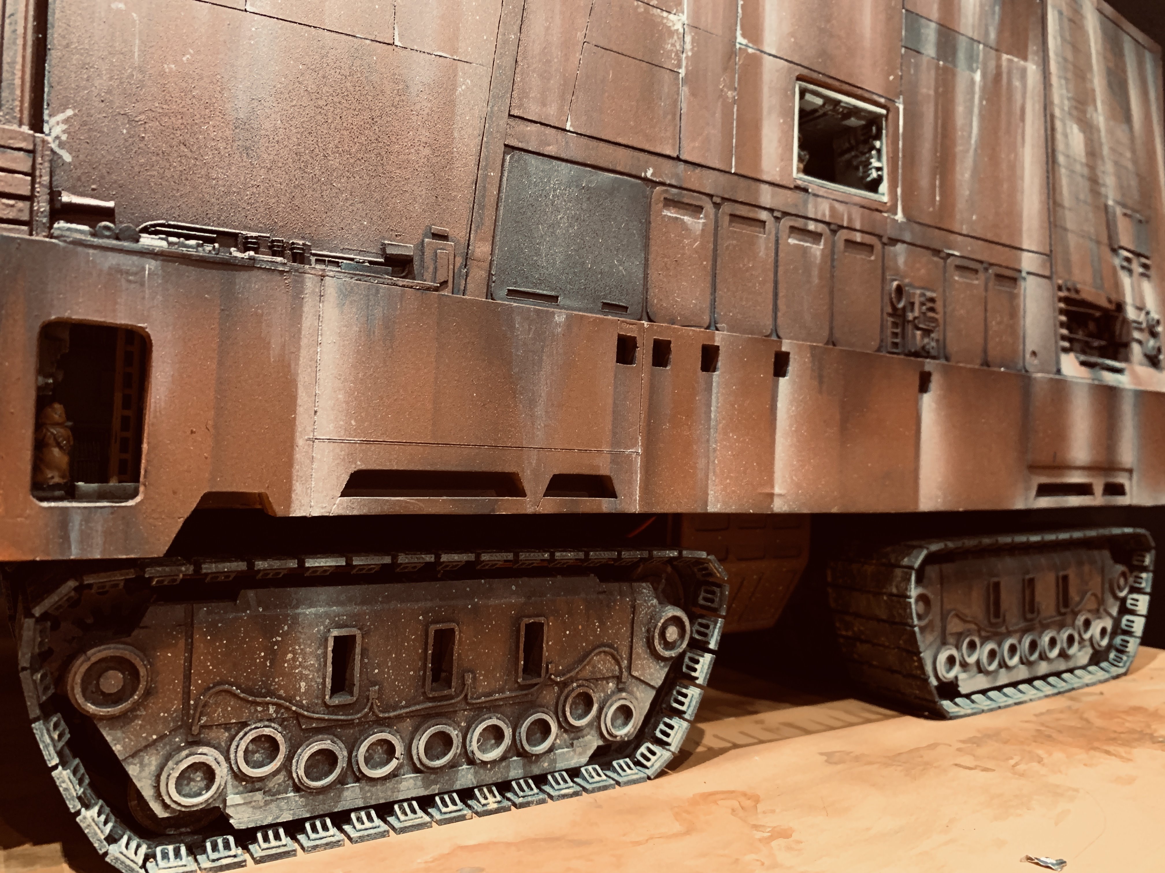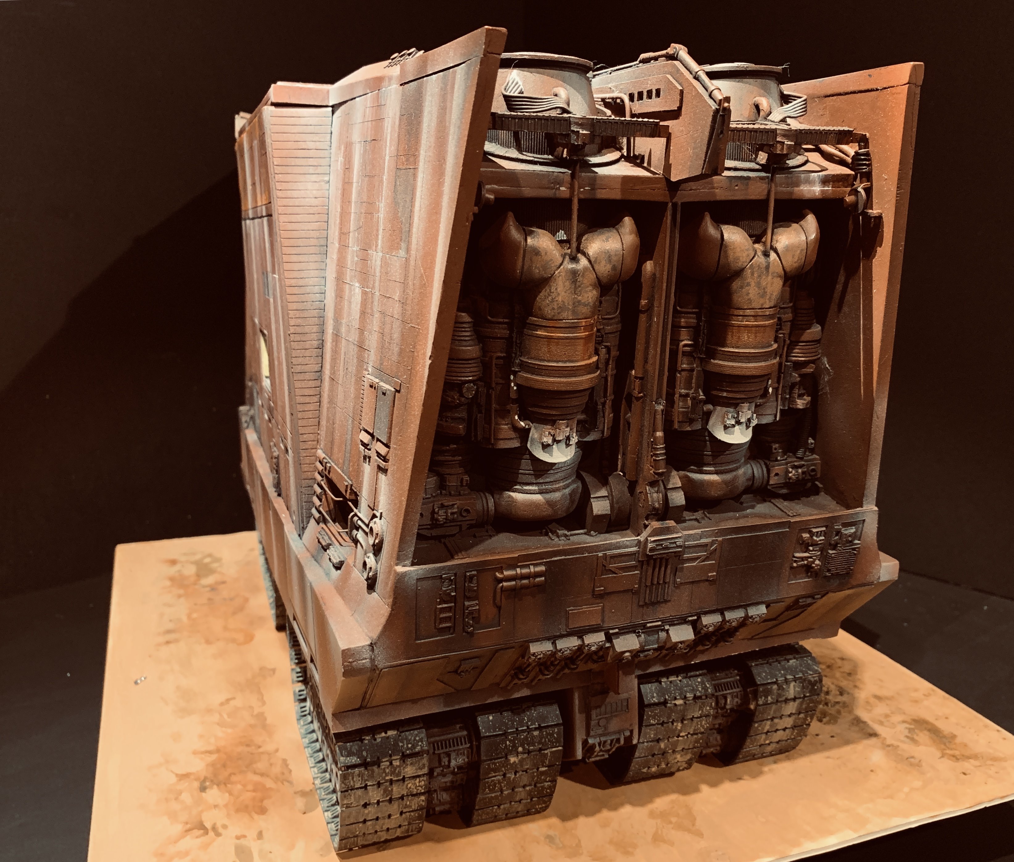 I just finalized my Randy Cooper’s Jawa Sandcrawler 1/96. The model has been transformed and some parts scratch-built in some areas. Also 3D parts from Rossi Replicas have been installed (treads, canopy, tread supports to enlarge the surface of contact with super glue). I used my own range of washes « Shades of Filth » and I’ve done all my weathering effects with them.
