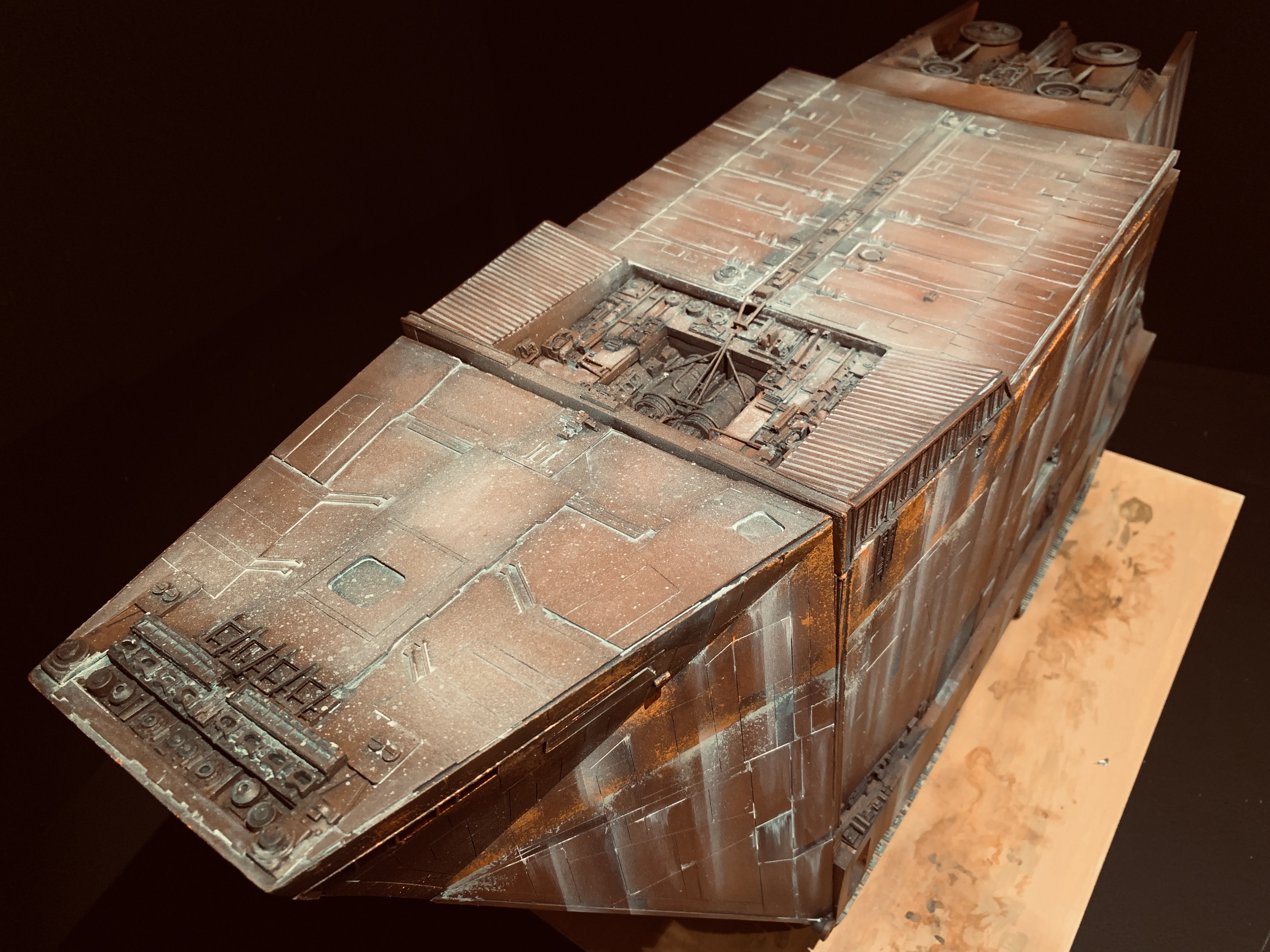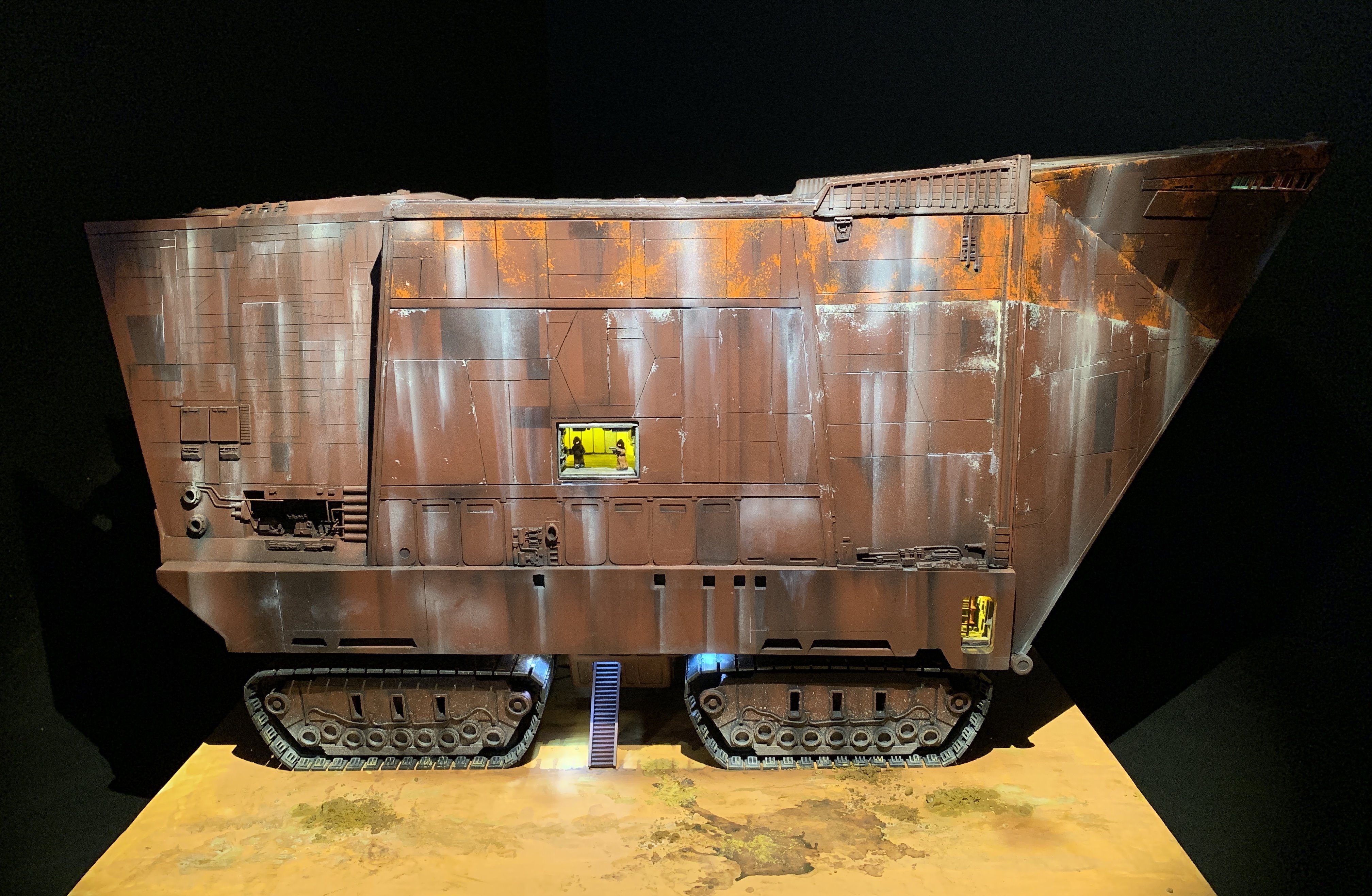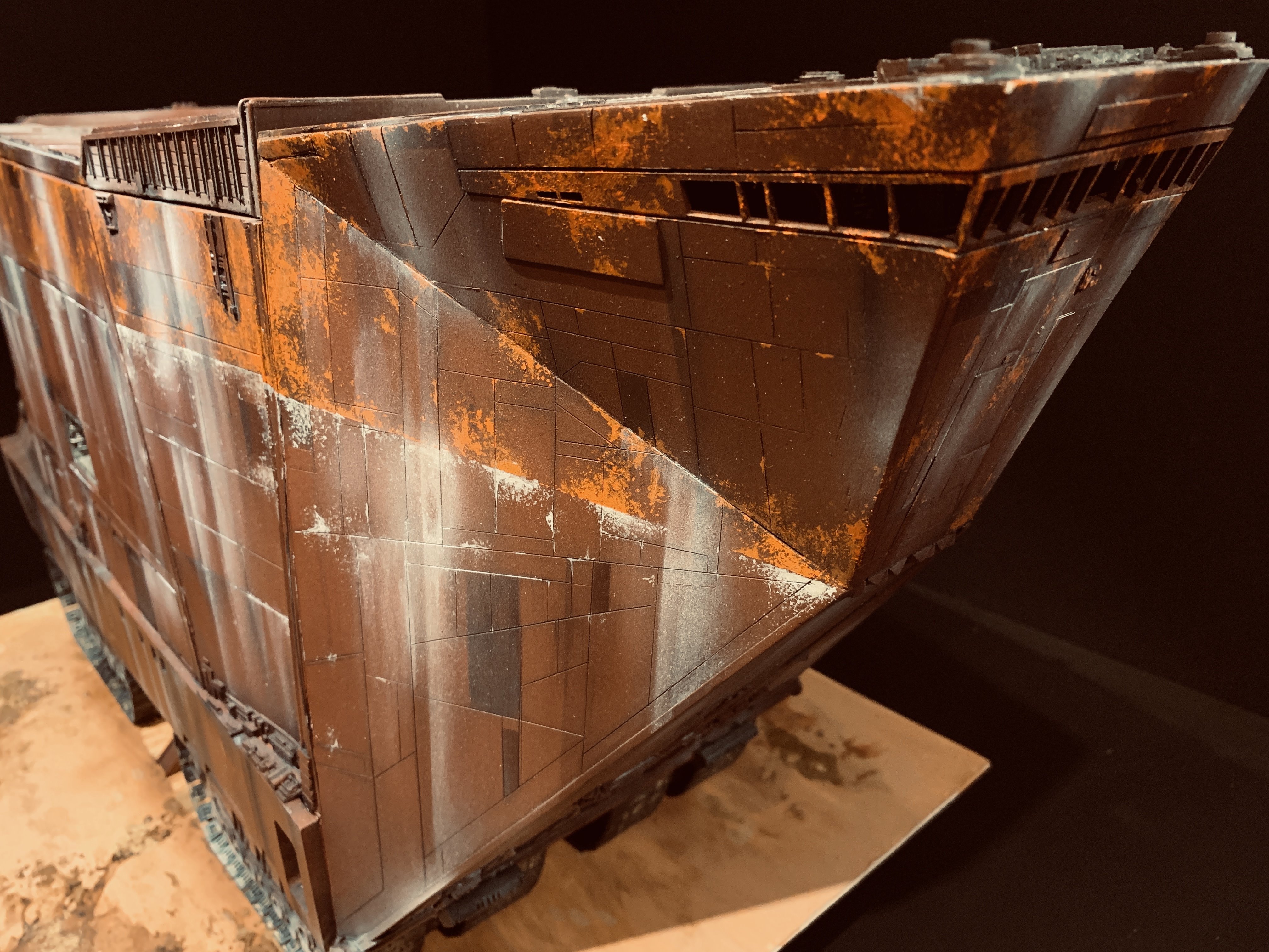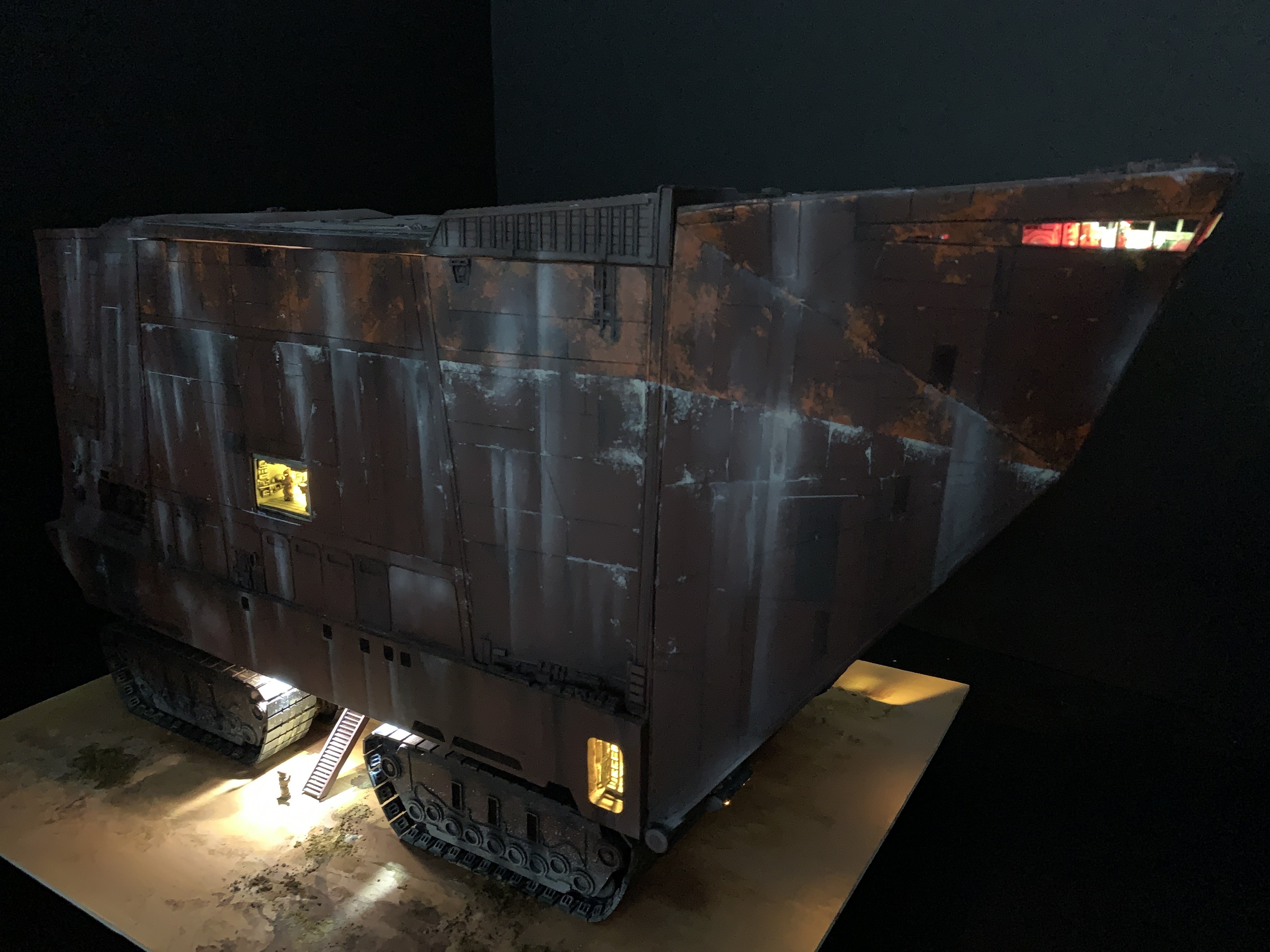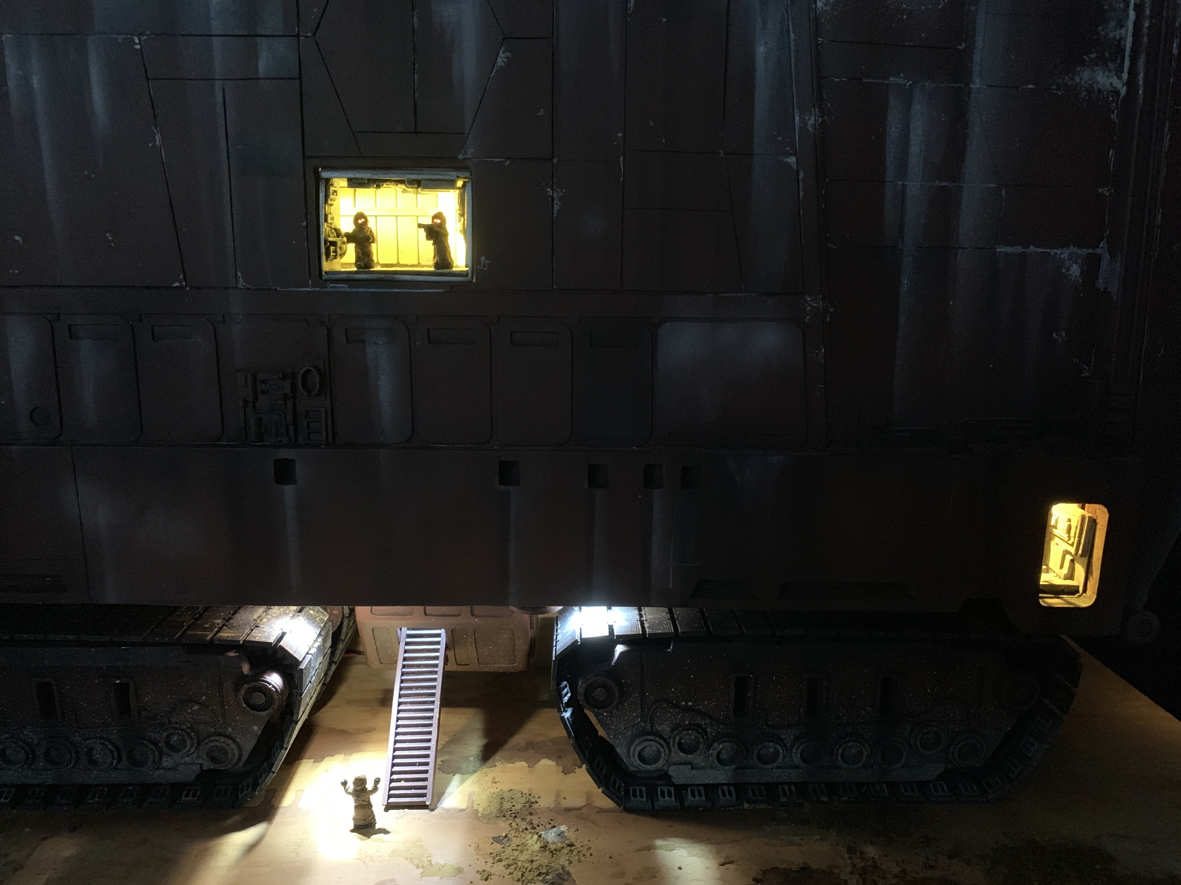 I just finalized my Randy Cooper’s Jawa Sandcrawler 1/96. The model has been transformed and some parts scratch-built in some areas. Also 3D parts from Rossi Replicas have been installed (treads, canopy, tread supports to enlarge the surface of contact with super glue). I used my own range of washes « Shades of Filth » and I’ve done all my weathering effects with them.