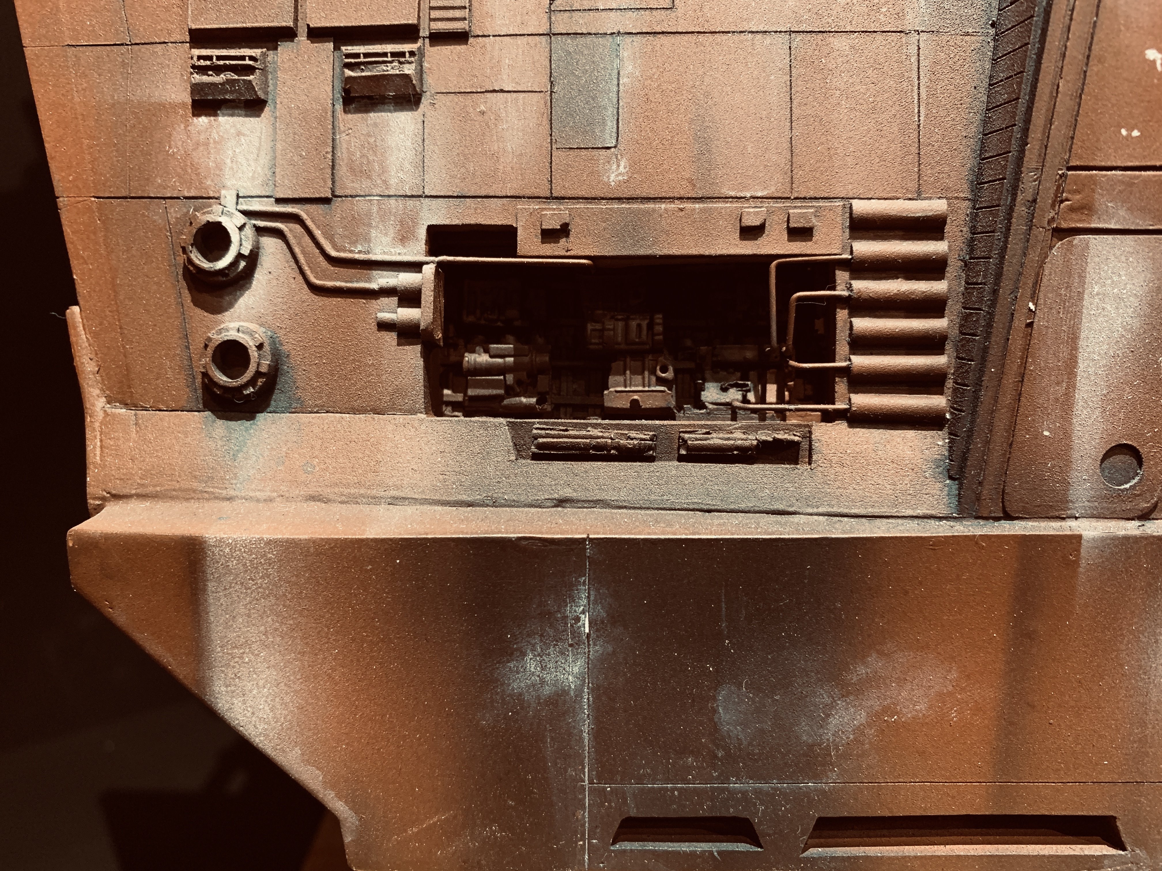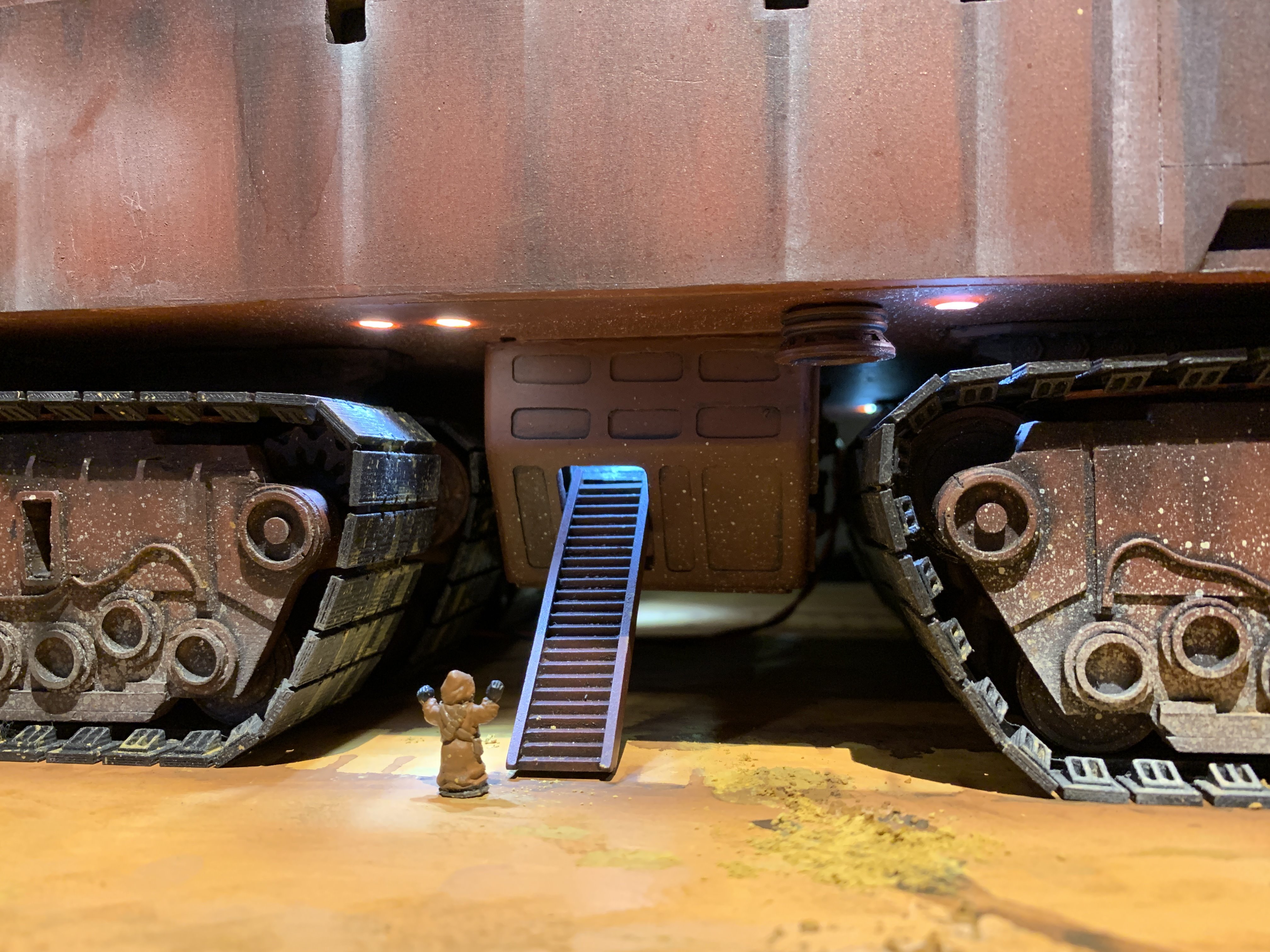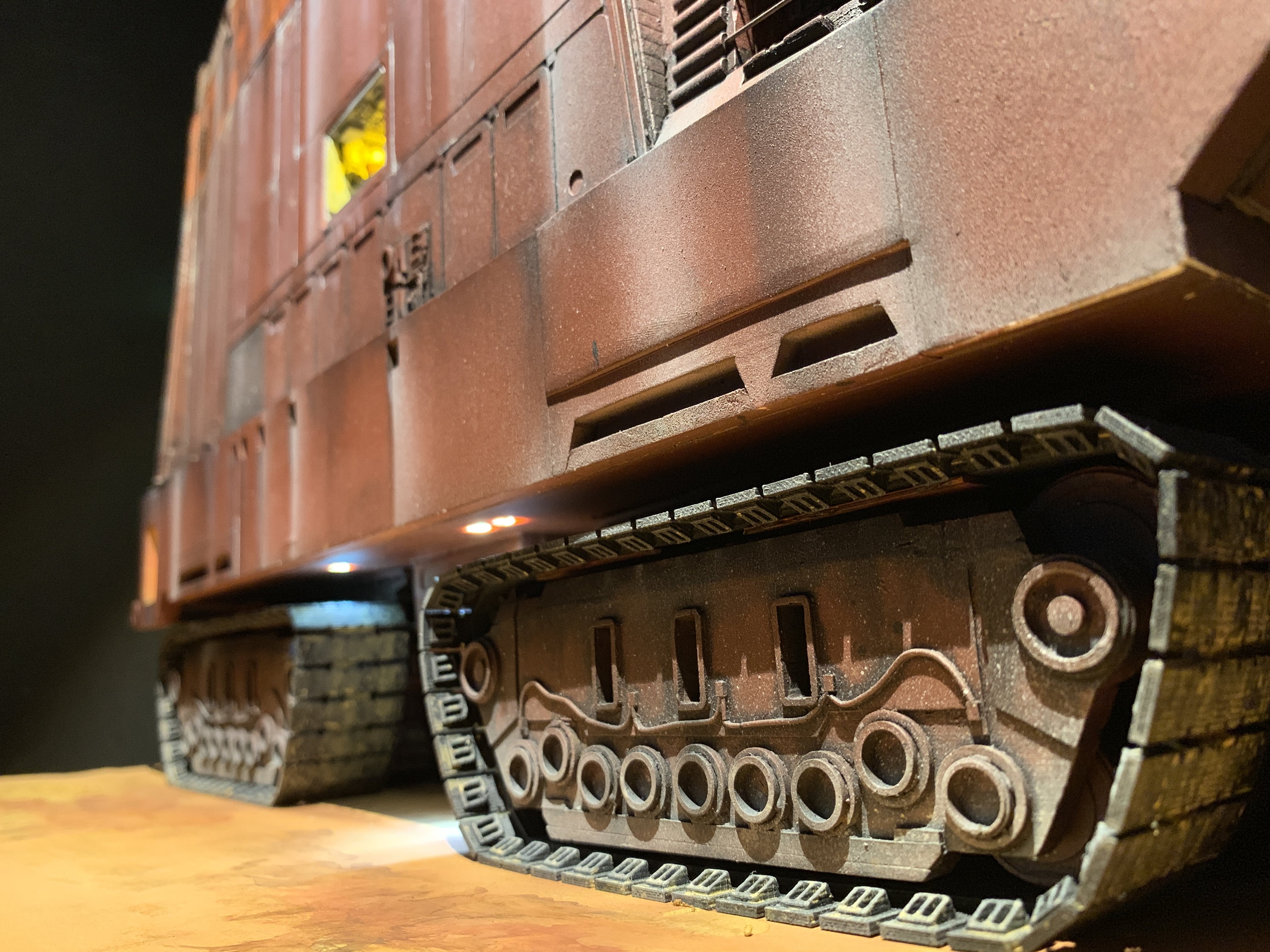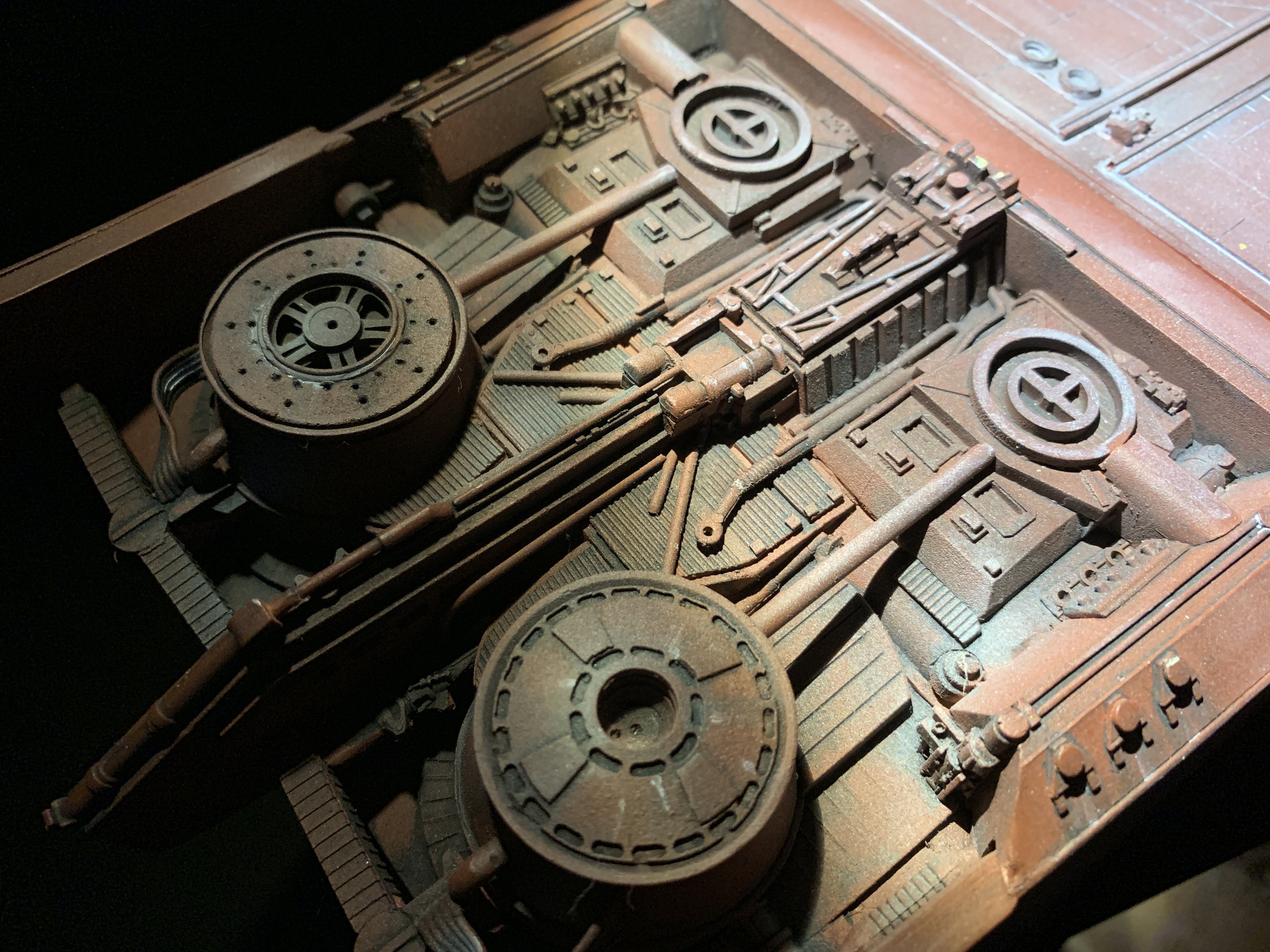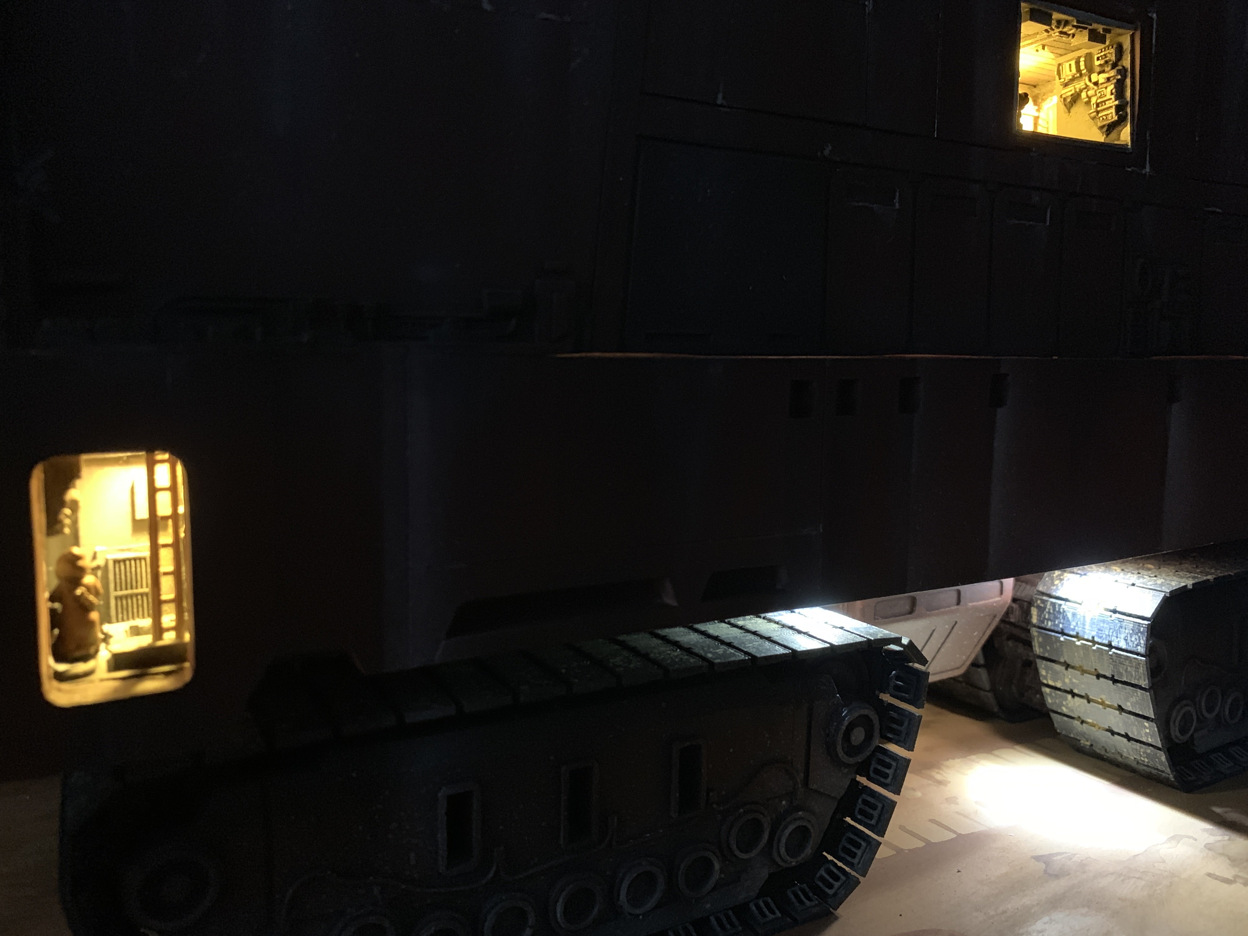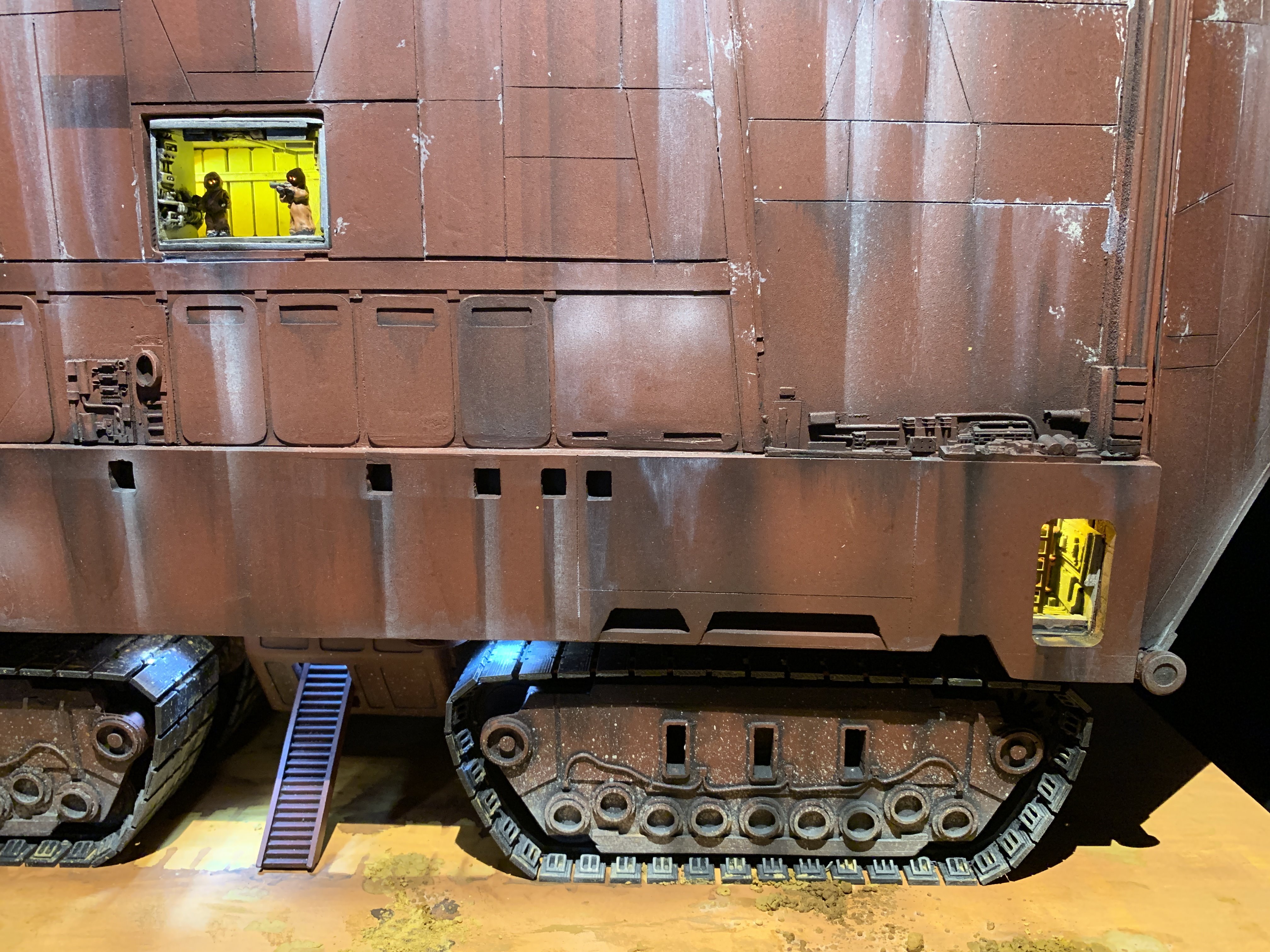I just finalized my Randy Cooper’s Jawa Sandcrawler 1/96. The model has been transformed and some parts scratch-built in some areas. Also 3D parts from Rossi Replicas have been installed (treads, canopy, tread supports to enlarge the surface of contact with super glue). I used my own range of washes « Shades of Filth » and I’ve done all my weathering effects with them.