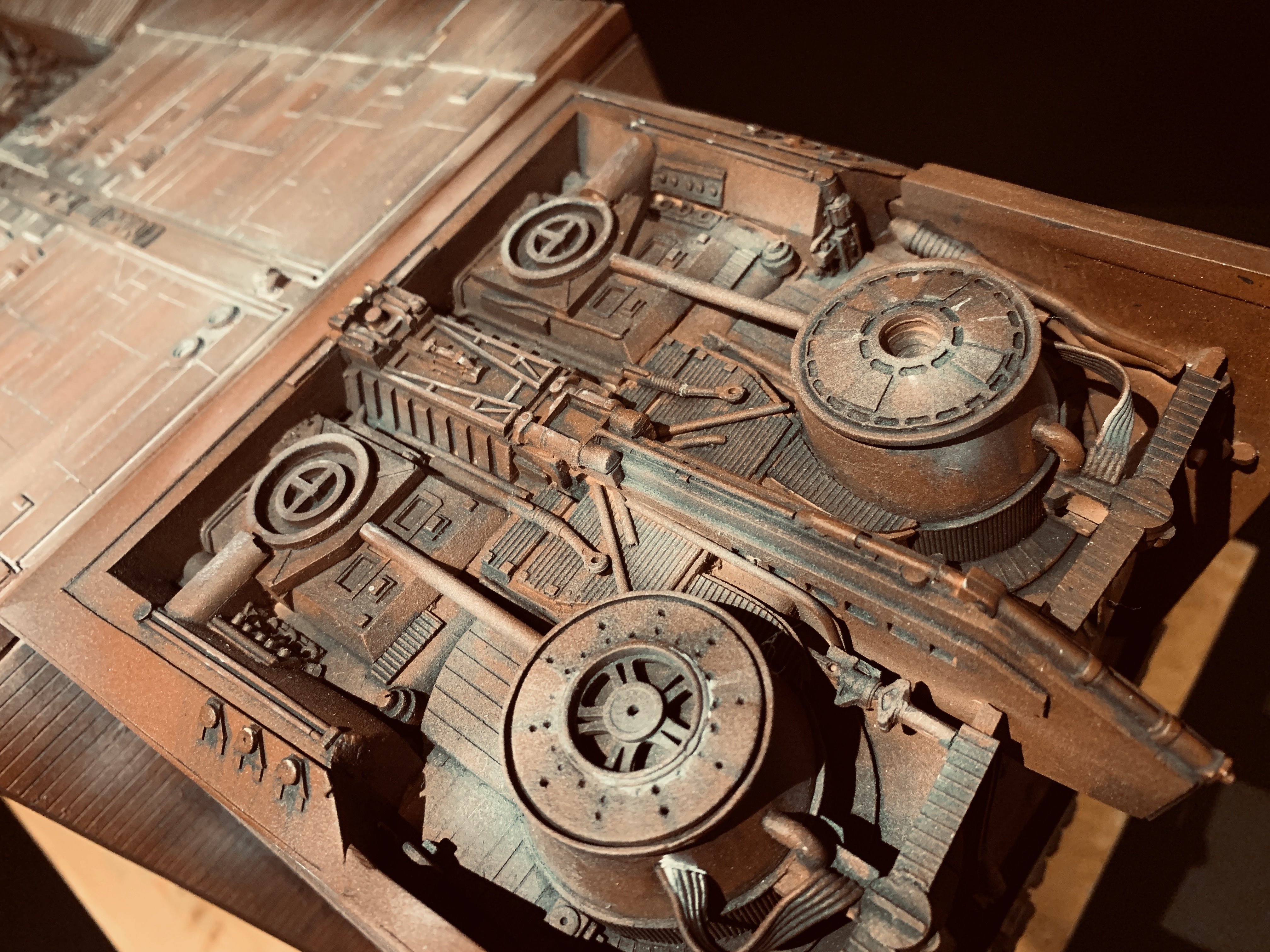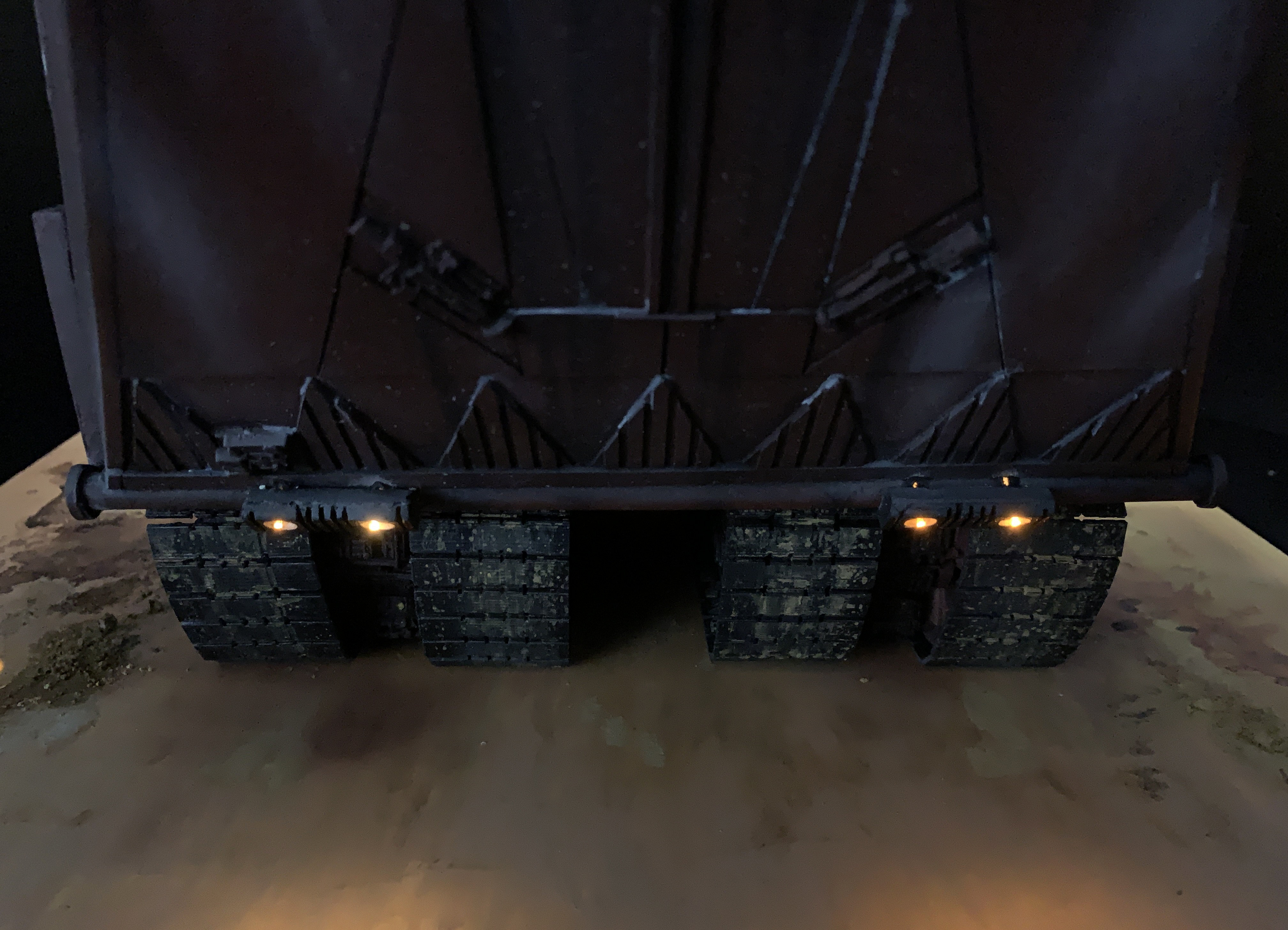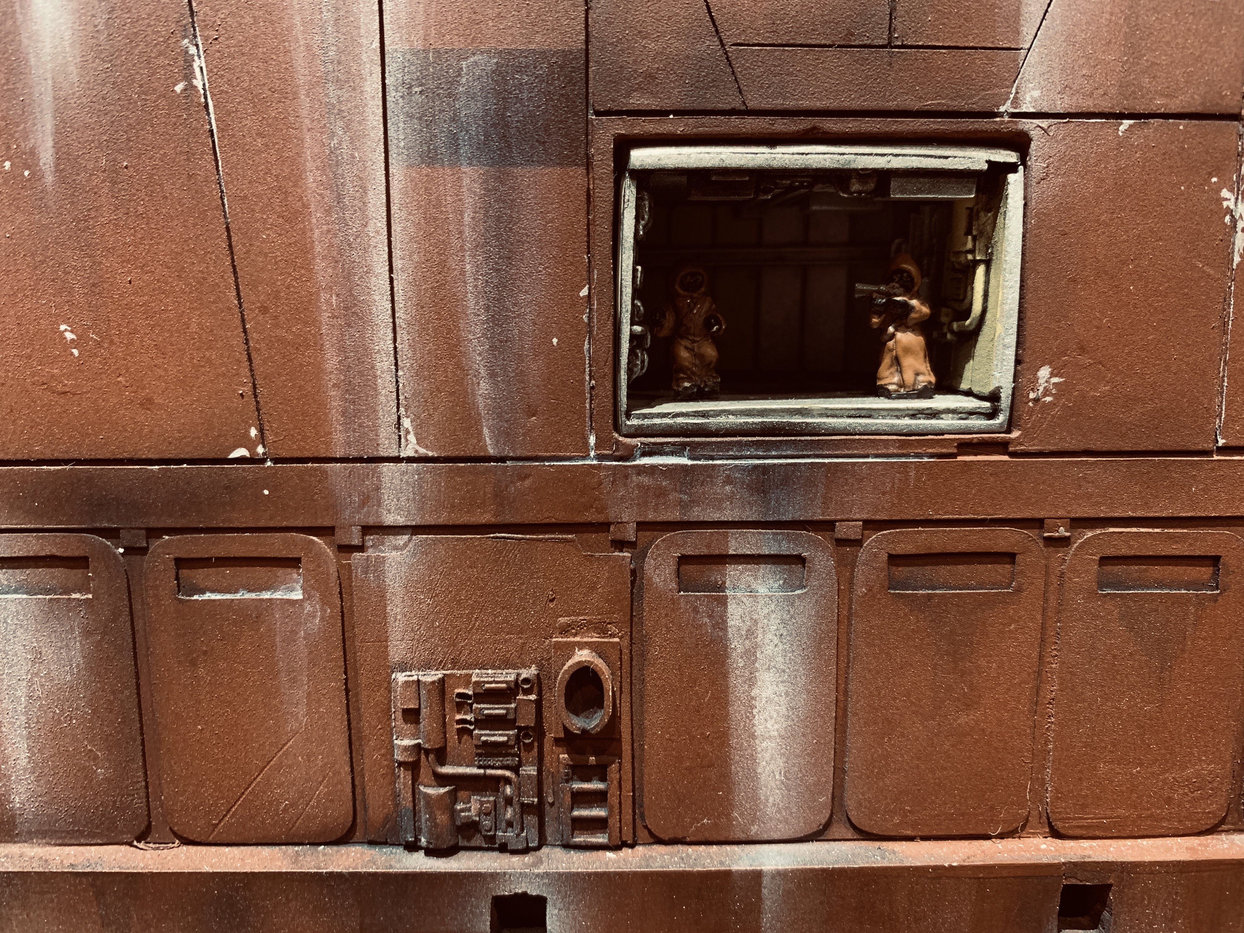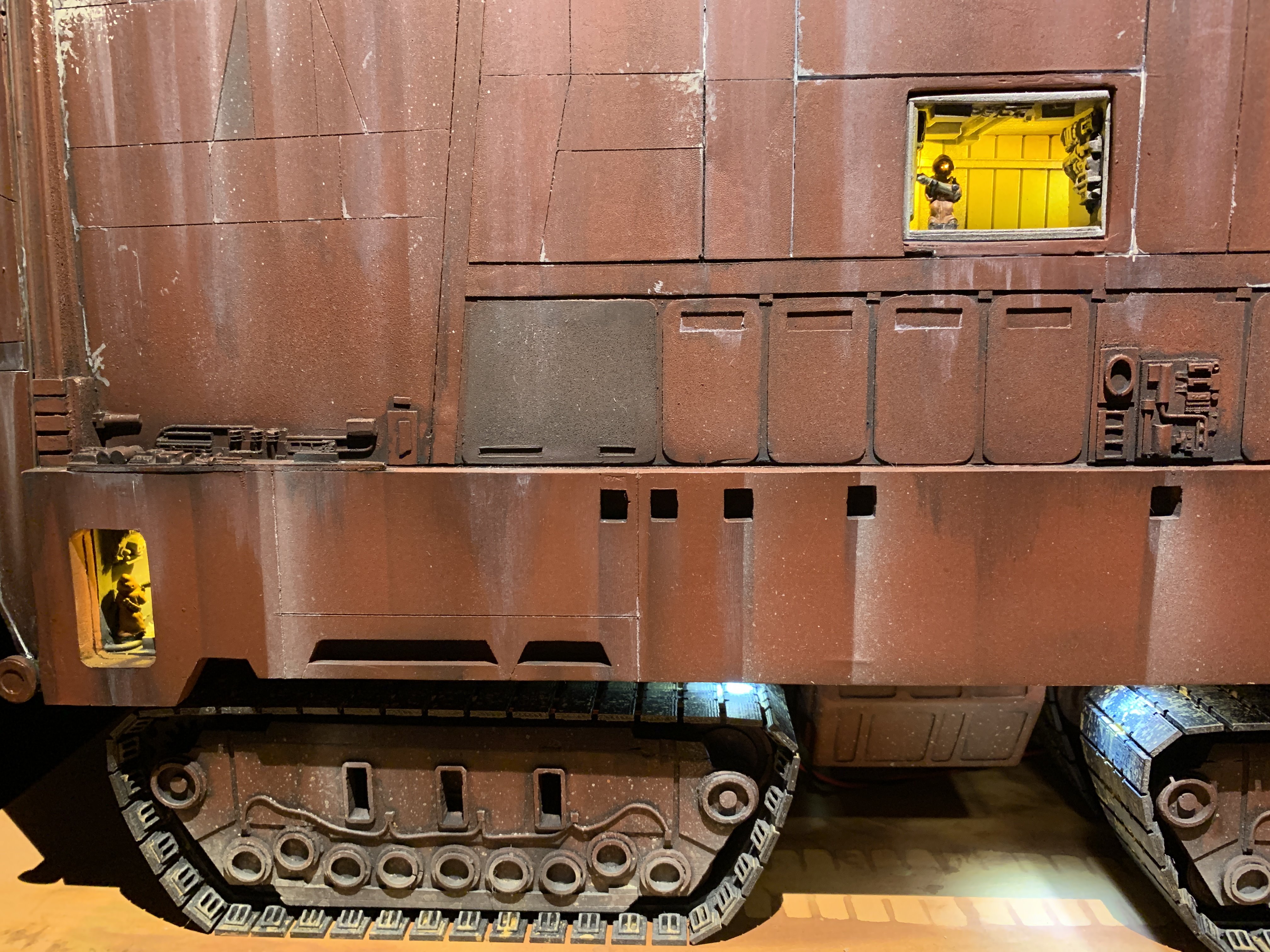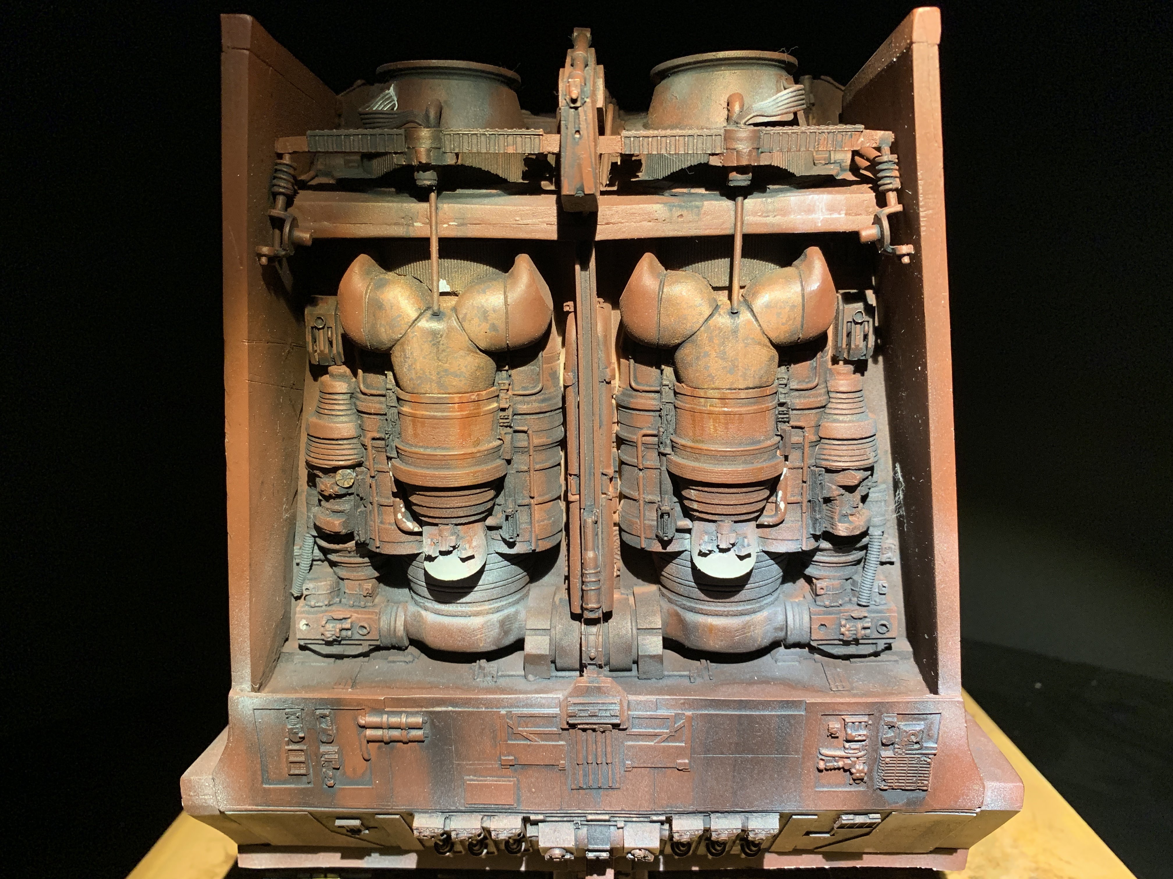 I just finalized my Randy Cooper’s Jawa Sandcrawler 1/96. The model has been transformed and some parts scratch-built in some areas. Also 3D parts from Rossi Replicas have been installed (treads, canopy, tread supports to enlarge the surface of contact with super glue). I used my own range of washes « Shades of Filth » and I’ve done all my weathering effects with them.