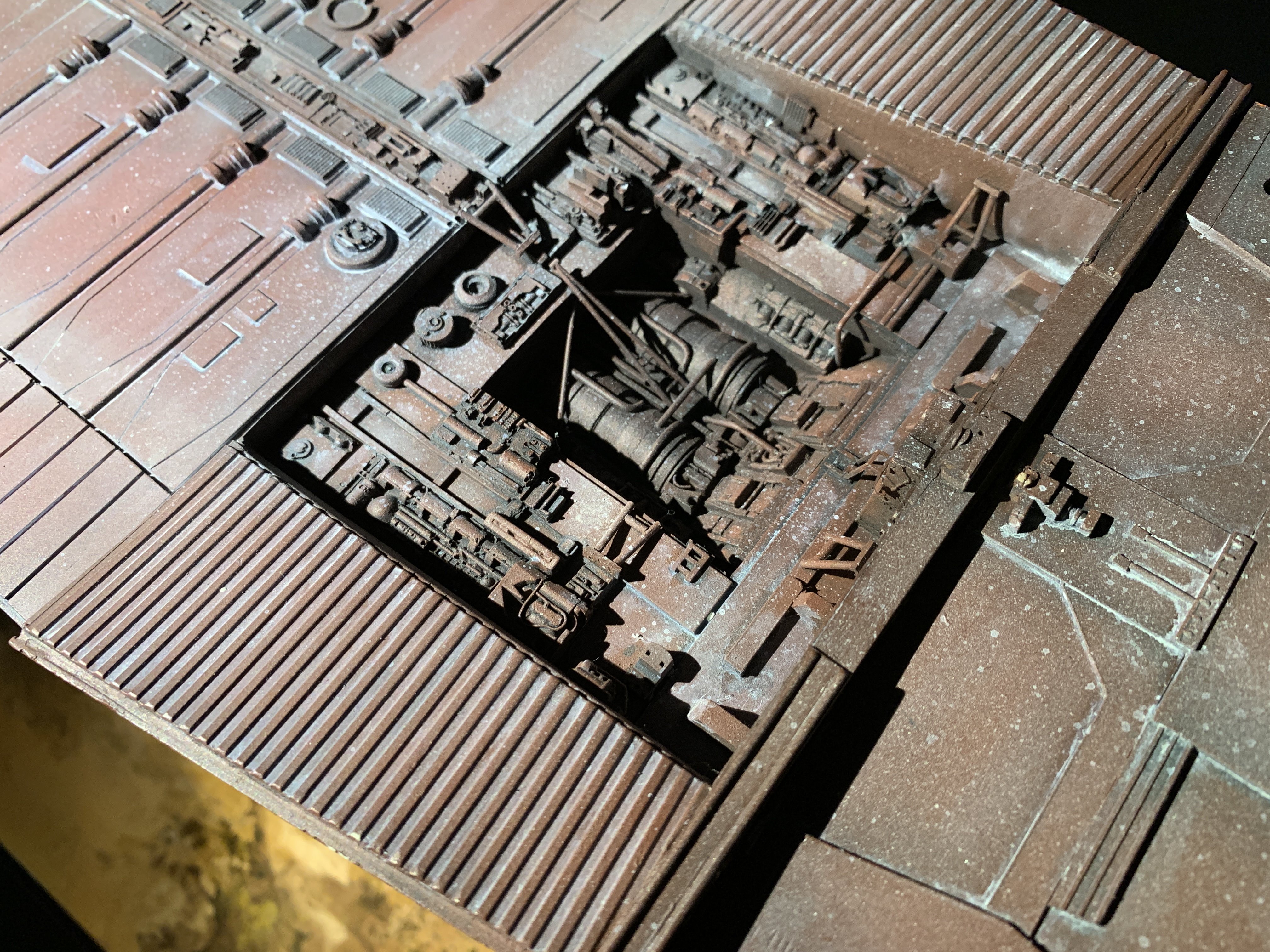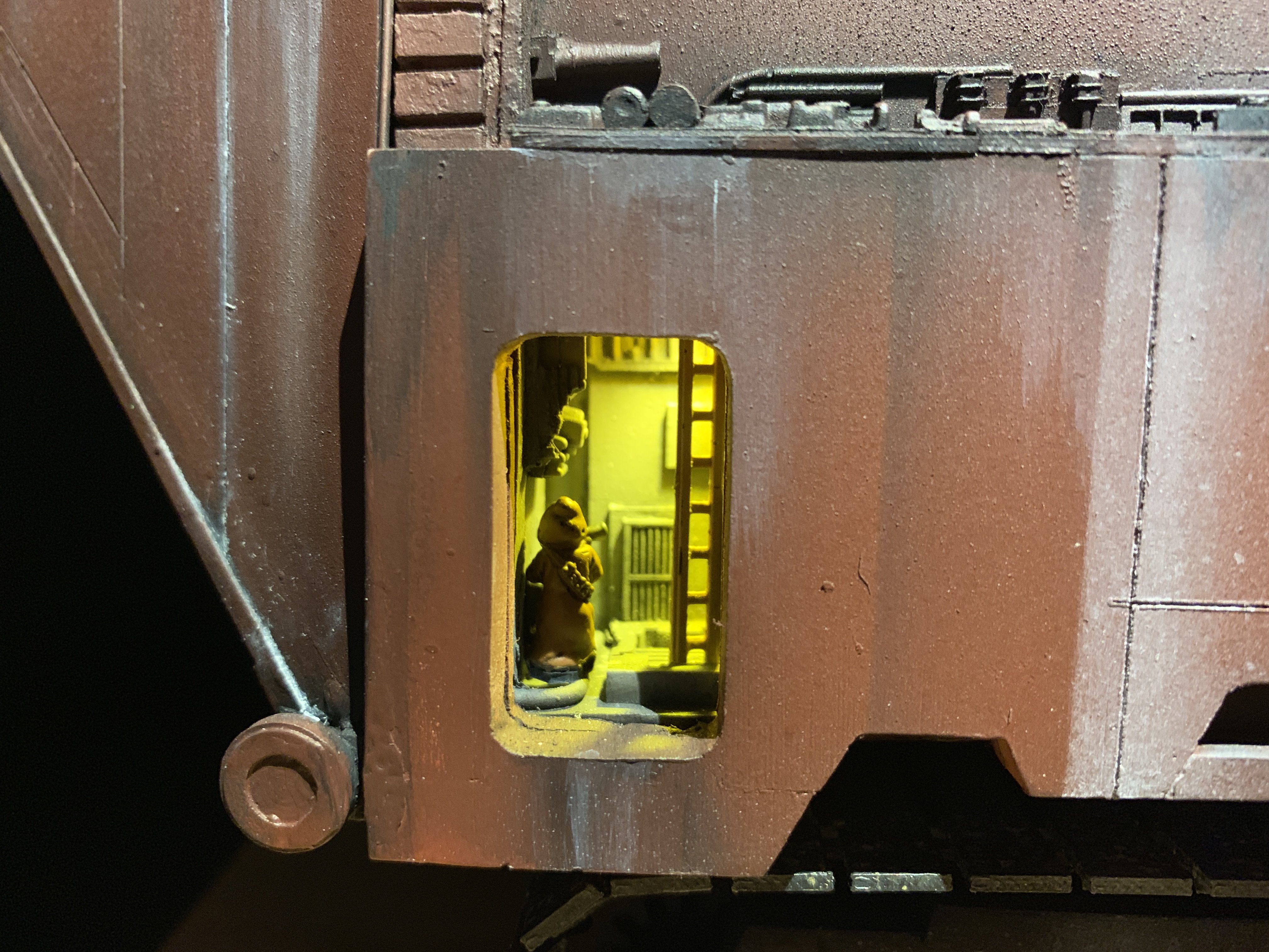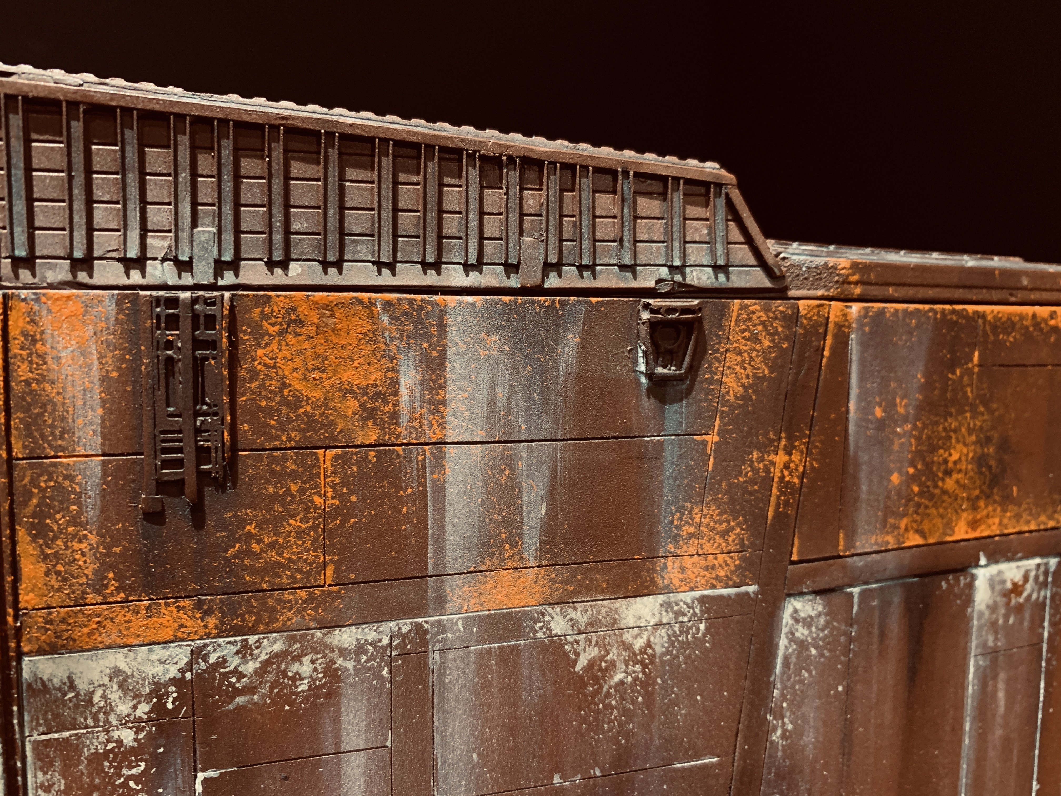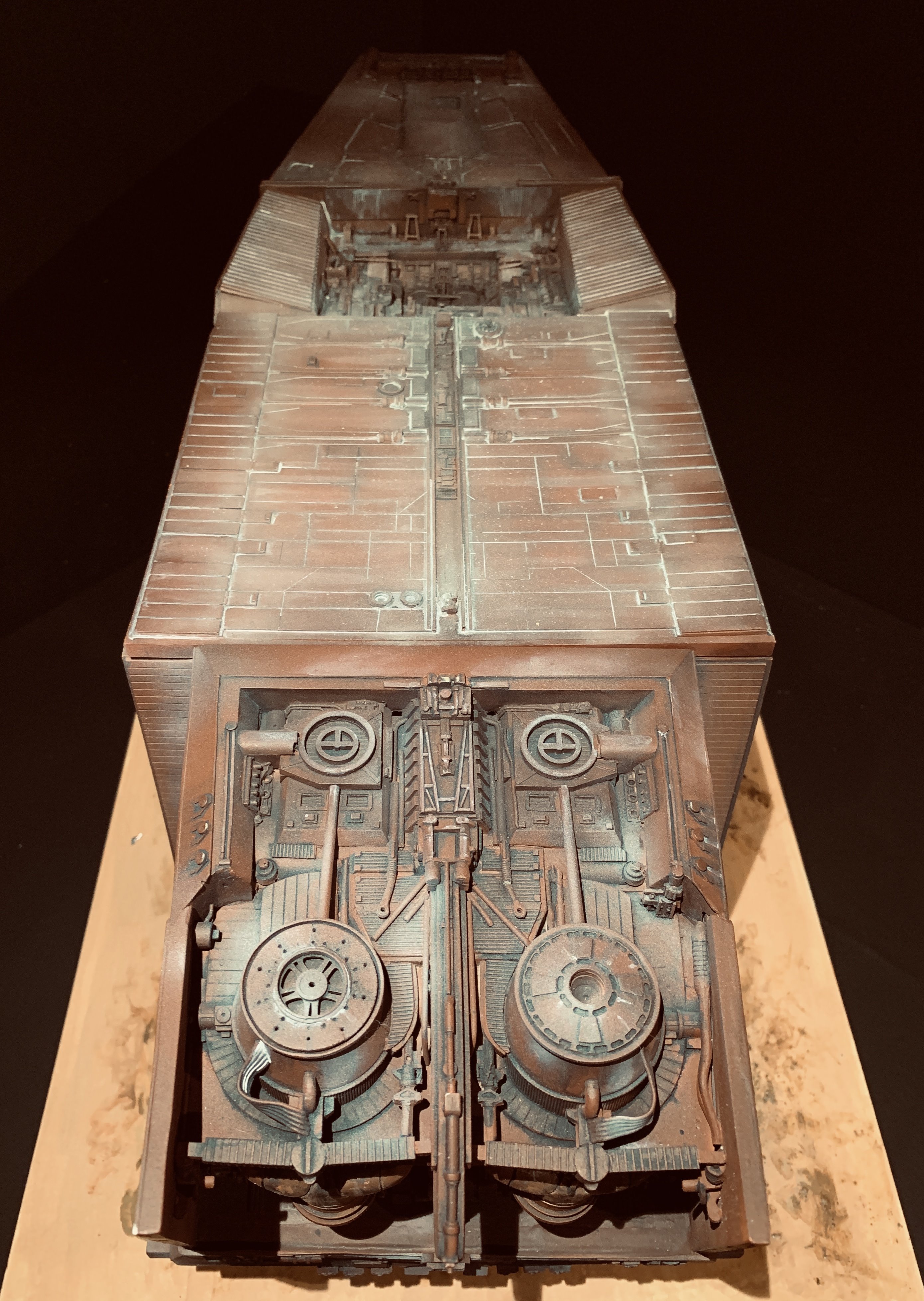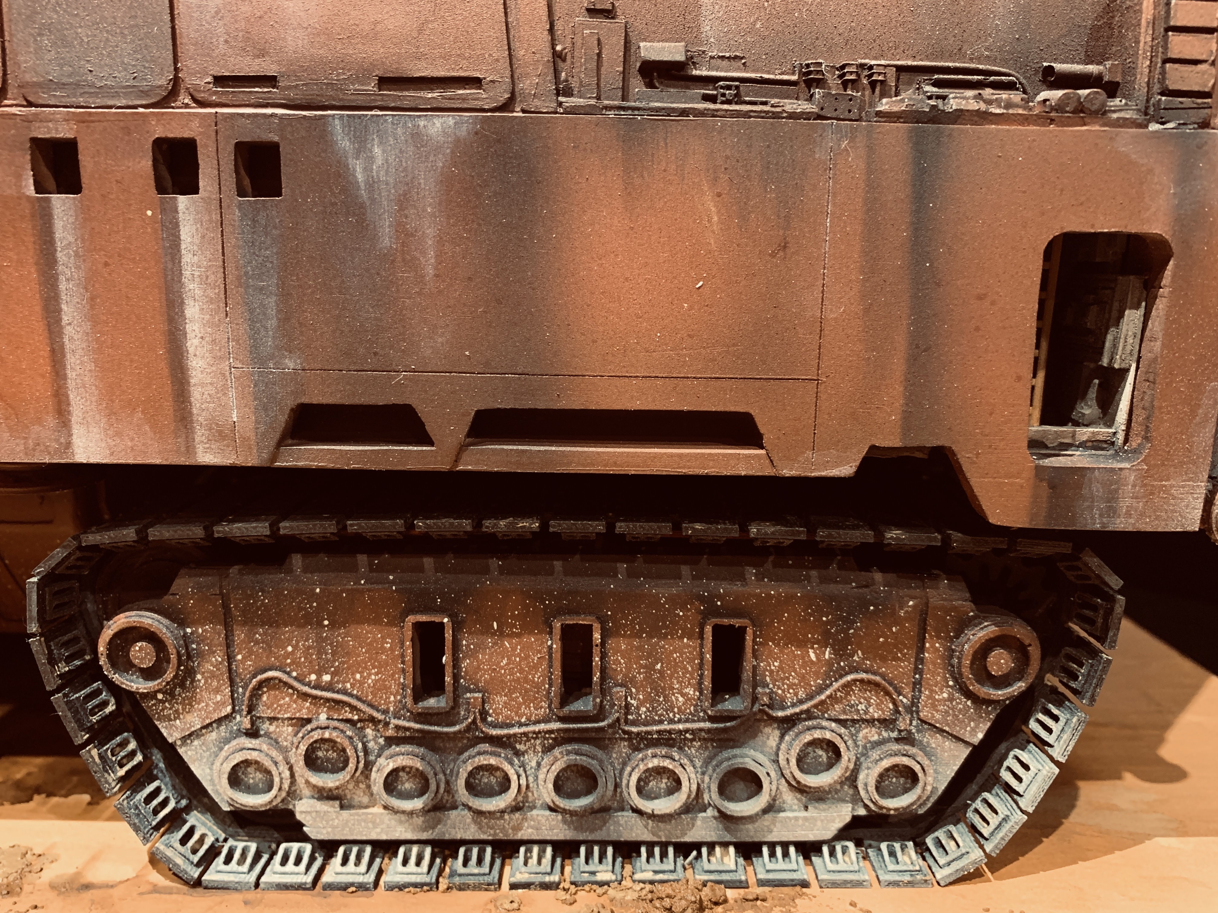 I just finalized my Randy Cooper’s Jawa Sandcrawler 1/96. The model has been transformed and some parts scratch-built in some areas. Also 3D parts from Rossi Replicas have been installed (treads, canopy, tread supports to enlarge the surface of contact with super glue). I used my own range of washes « Shades of Filth » and I’ve done all my weathering effects with them.