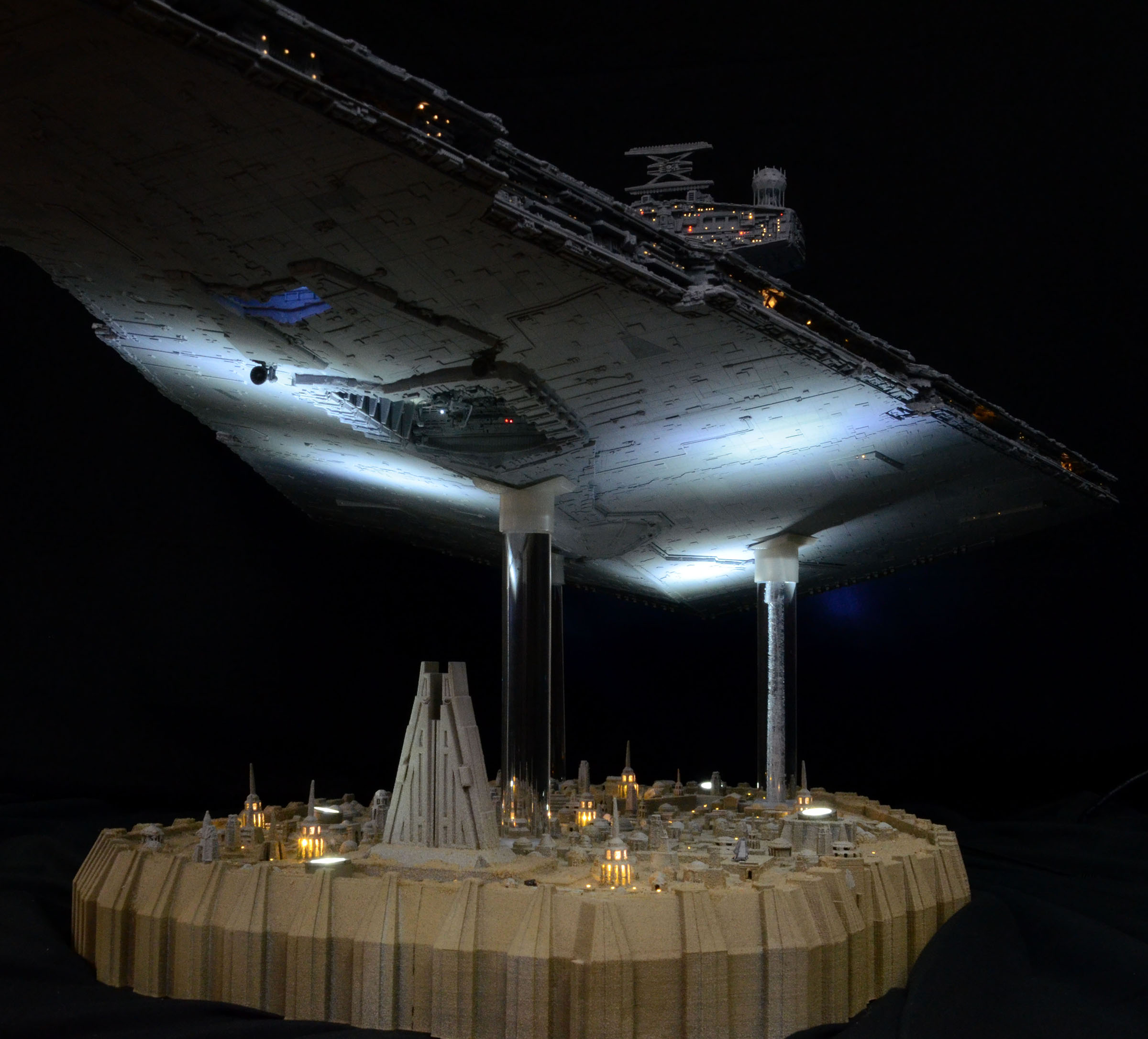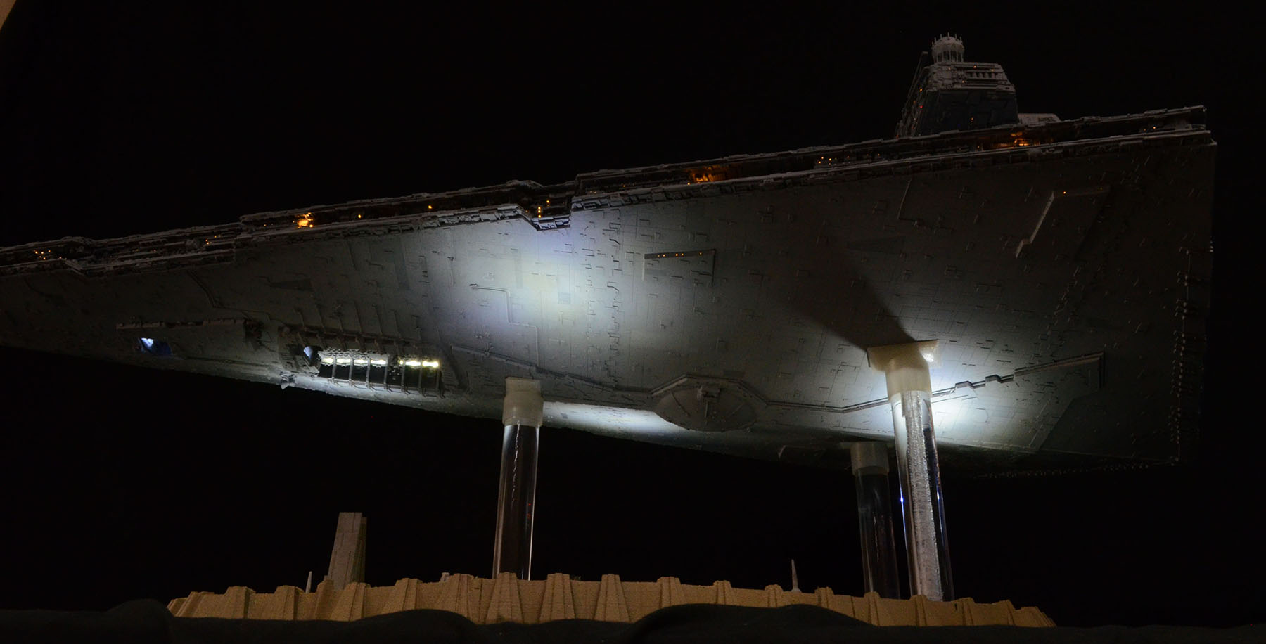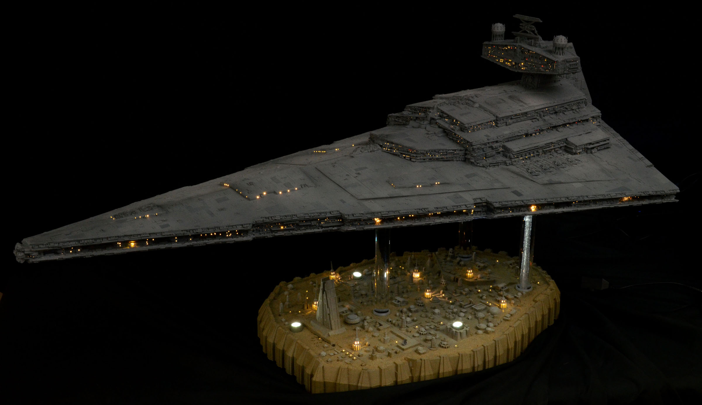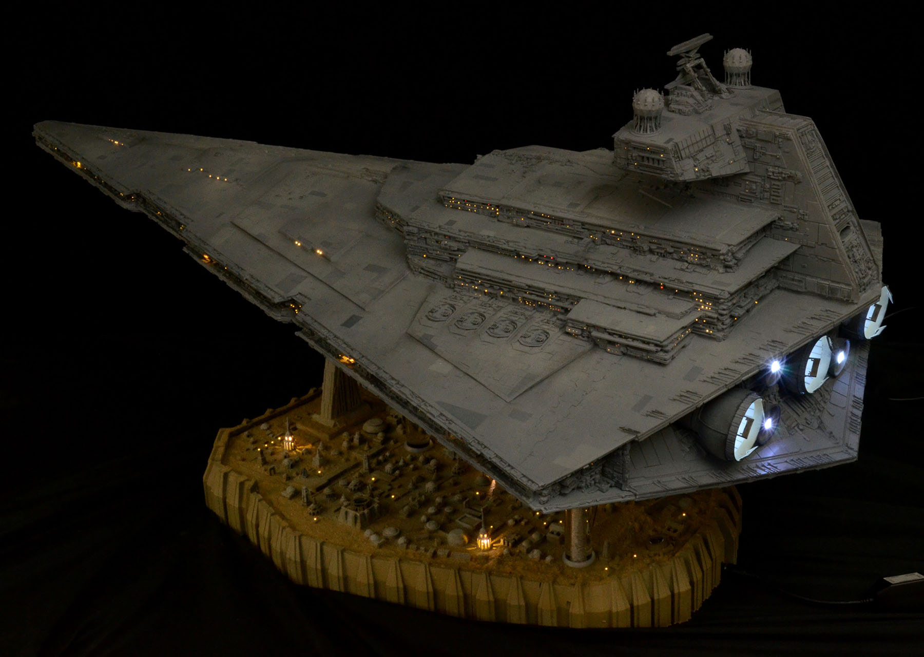 I just finished a project with the new 42” Randy Cooper Imperial Star Destroyer. I built a custom Jedha City base for it.