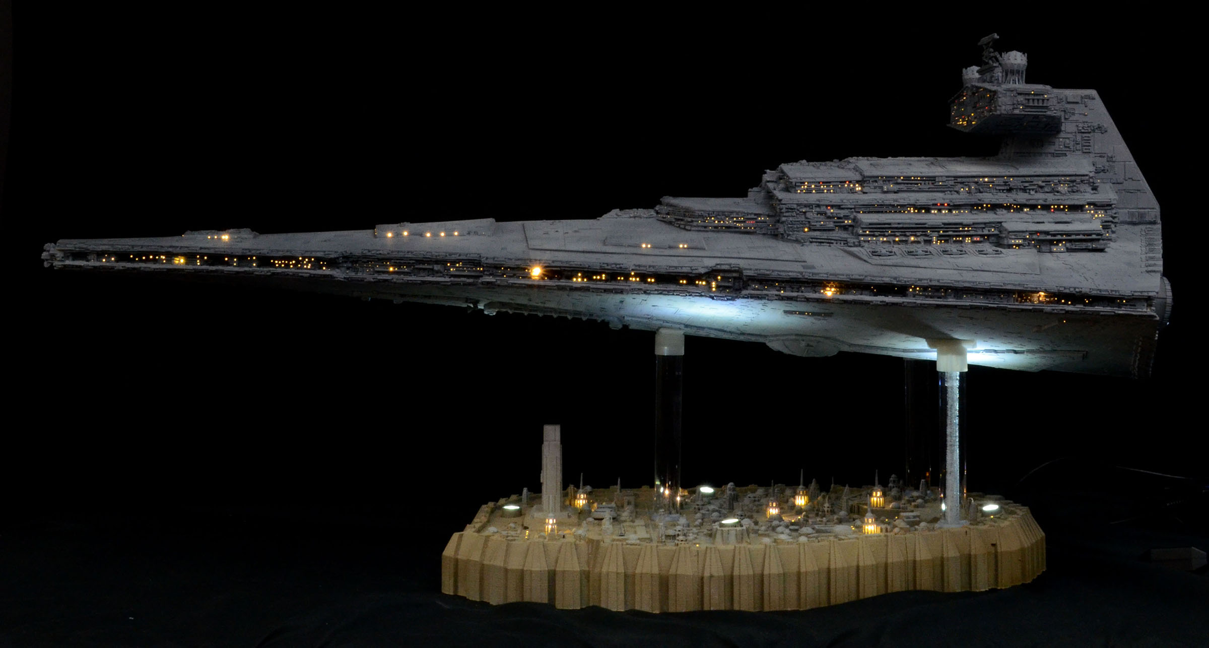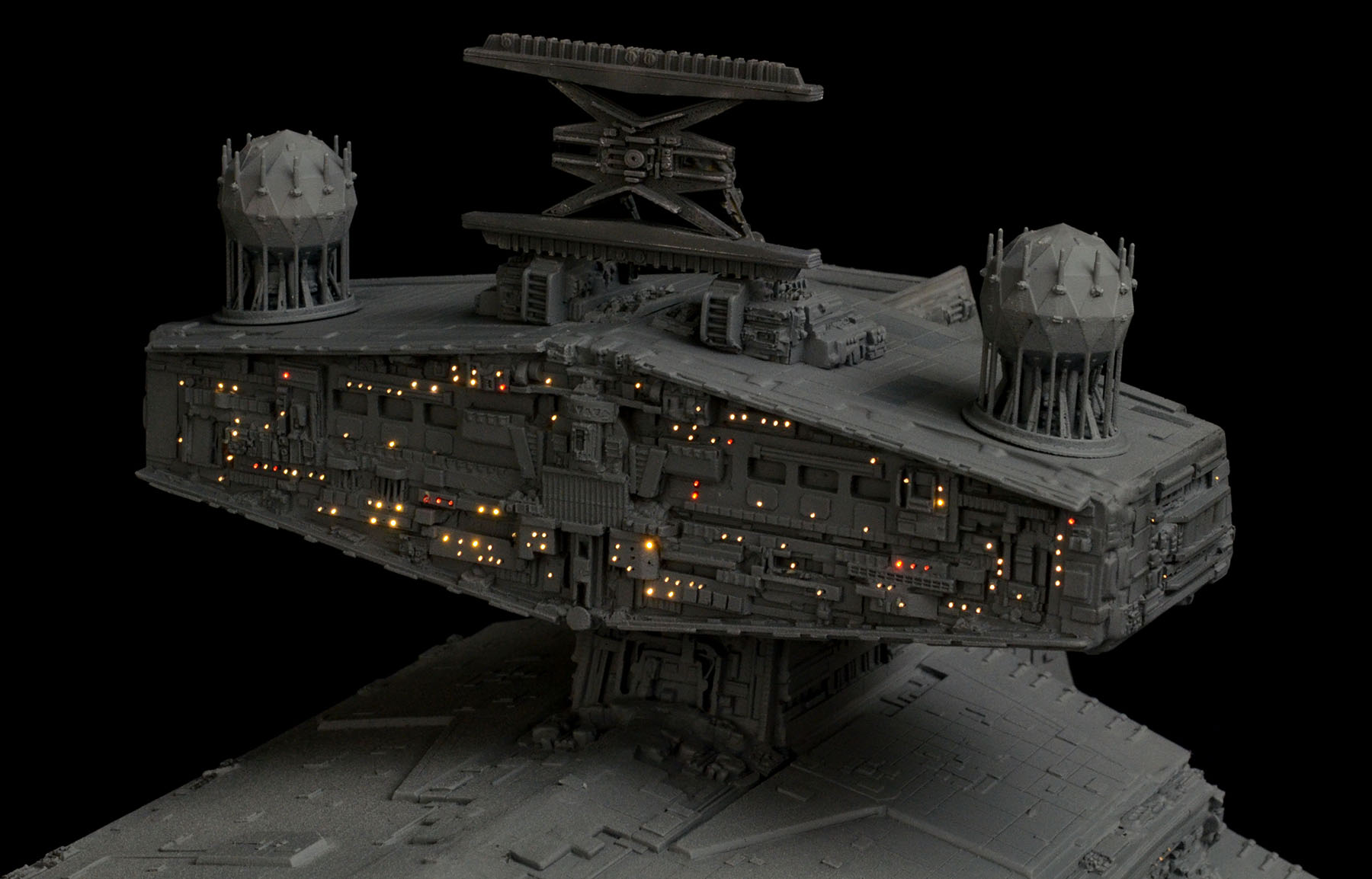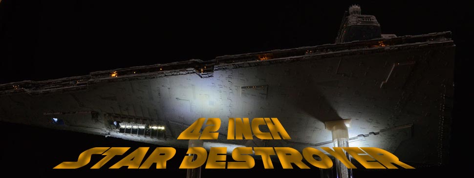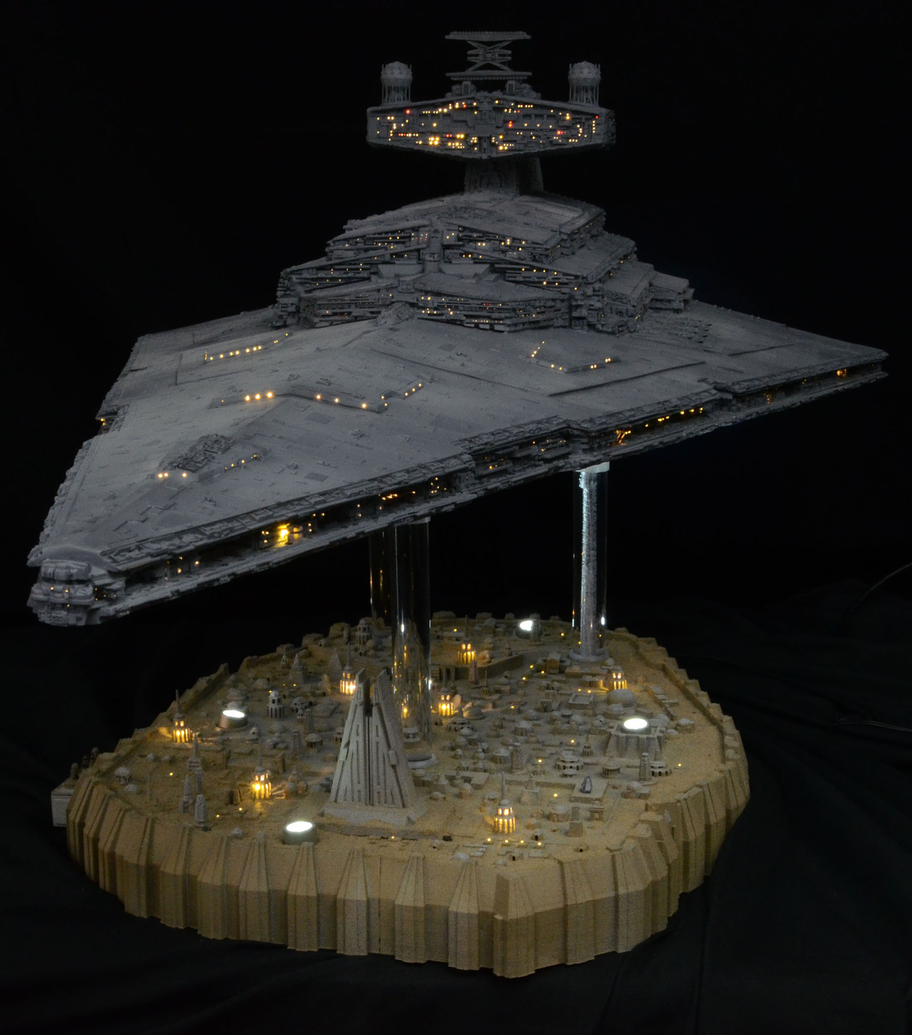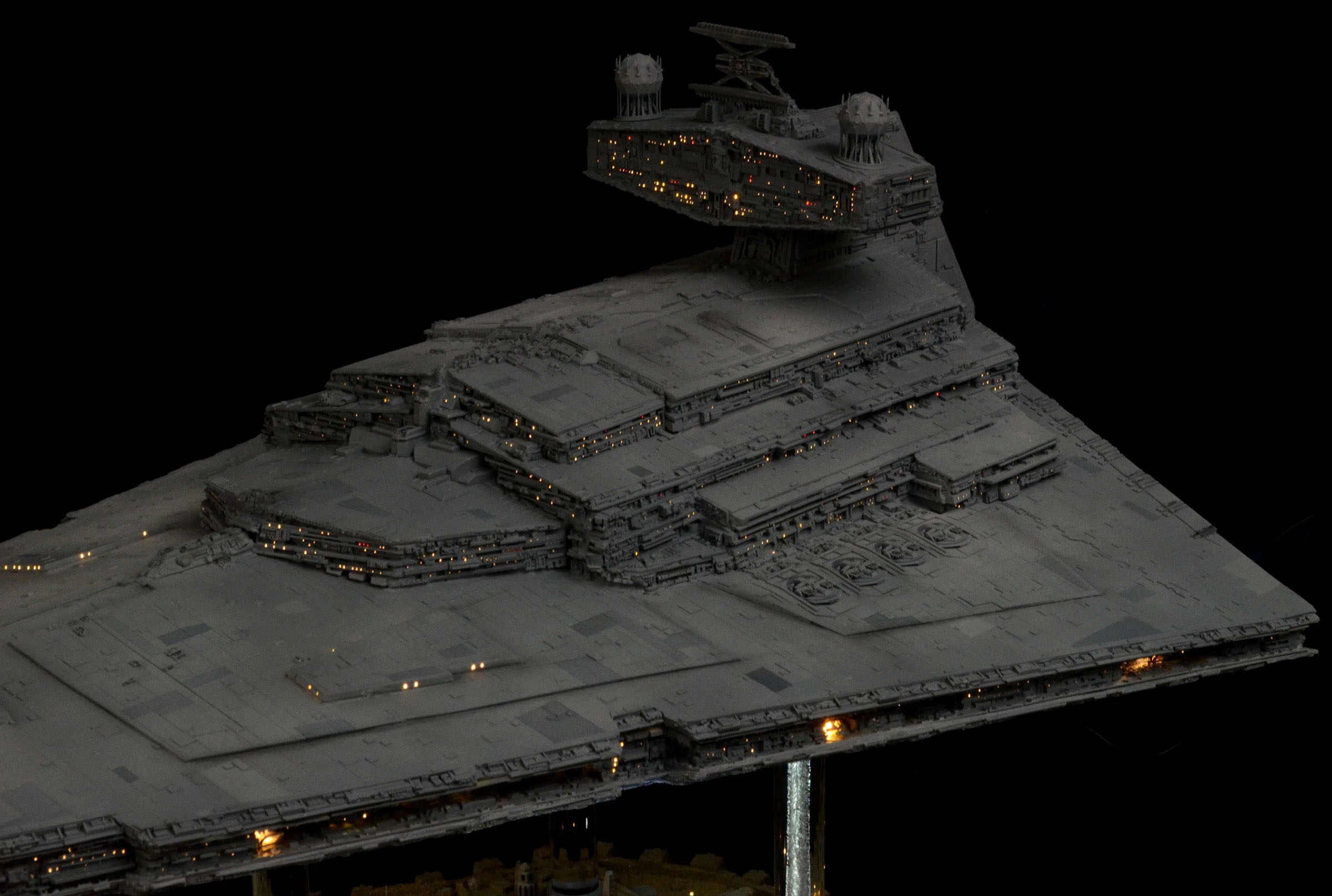 I just finished a project with the new 42” Randy Cooper Imperial Star Destroyer. I built a custom Jedha City base for it.