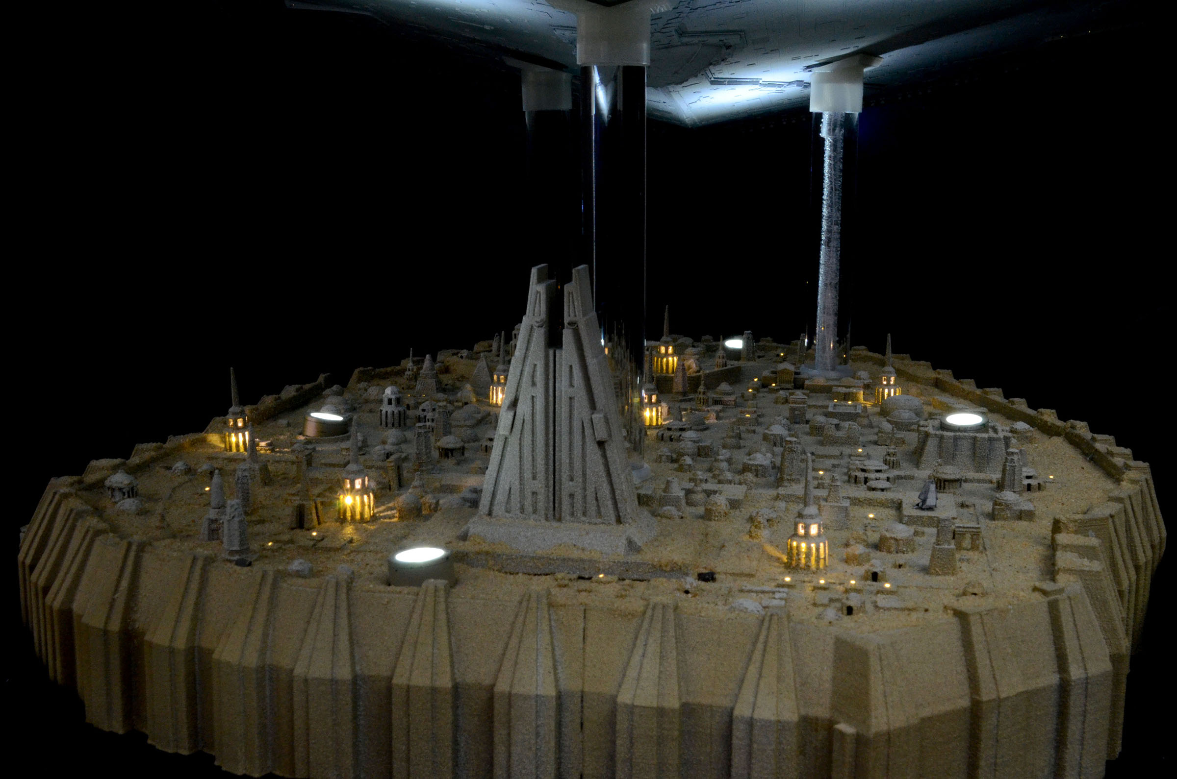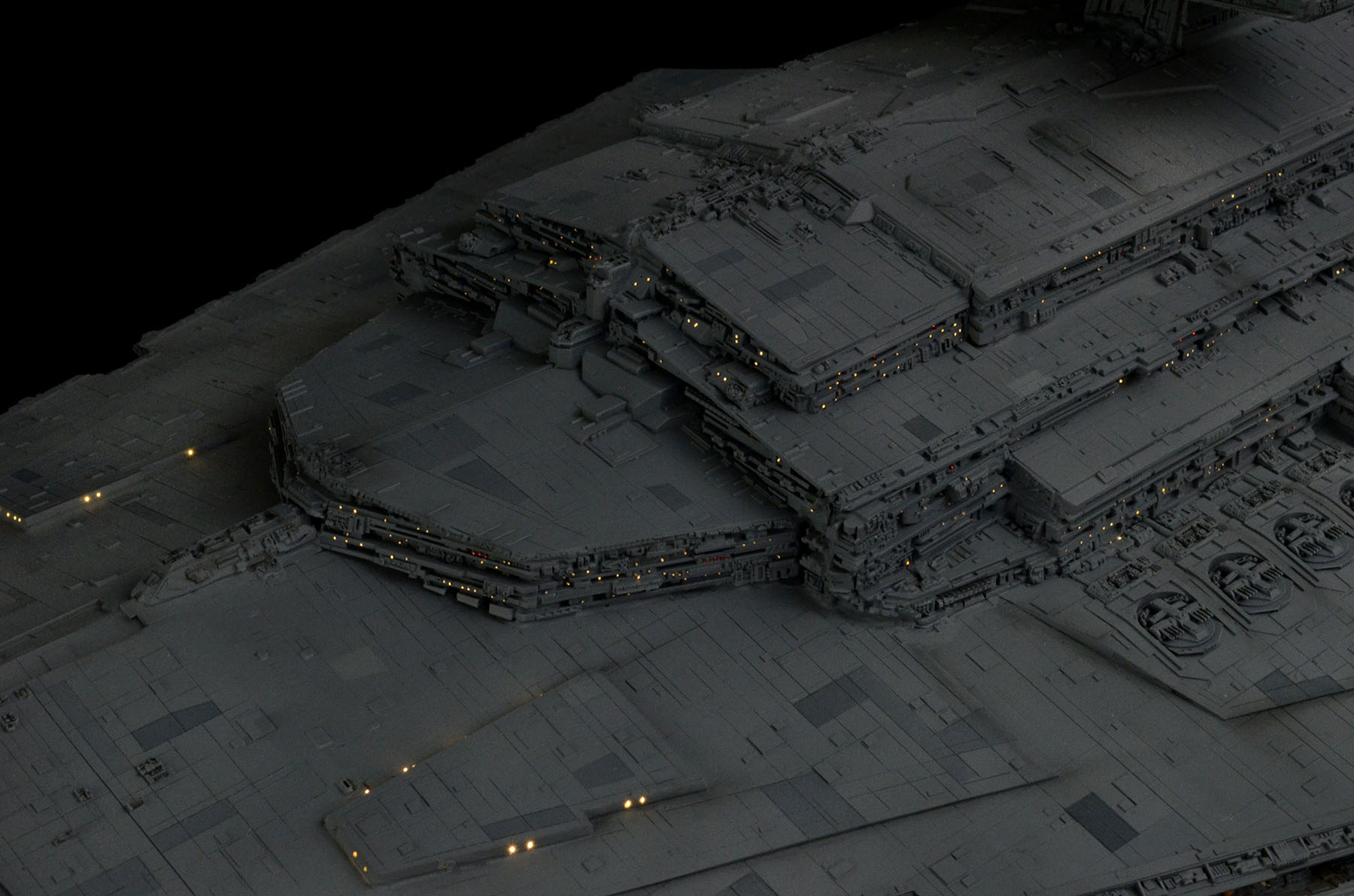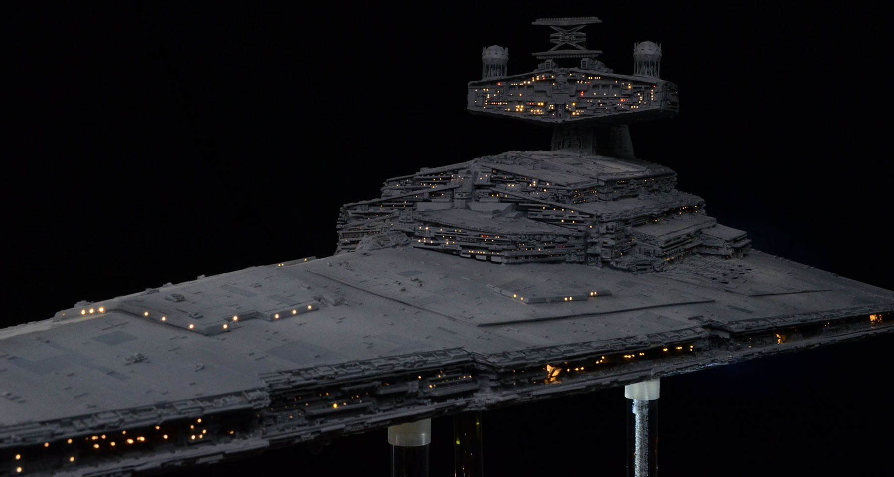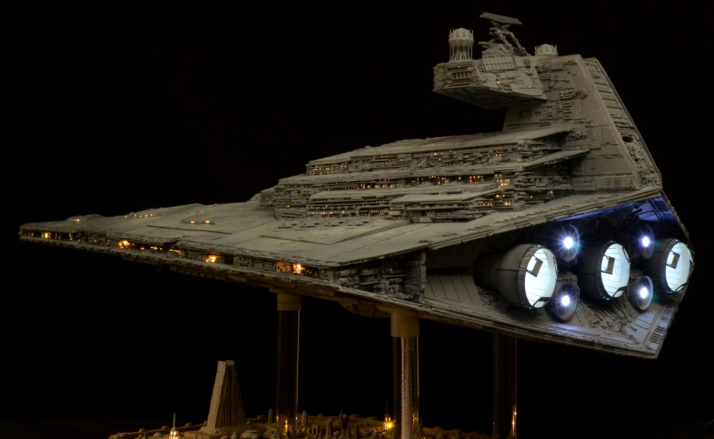 I just finished a project with the new 42” Randy Cooper Imperial Star Destroyer. I built a custom Jedha City base for it.