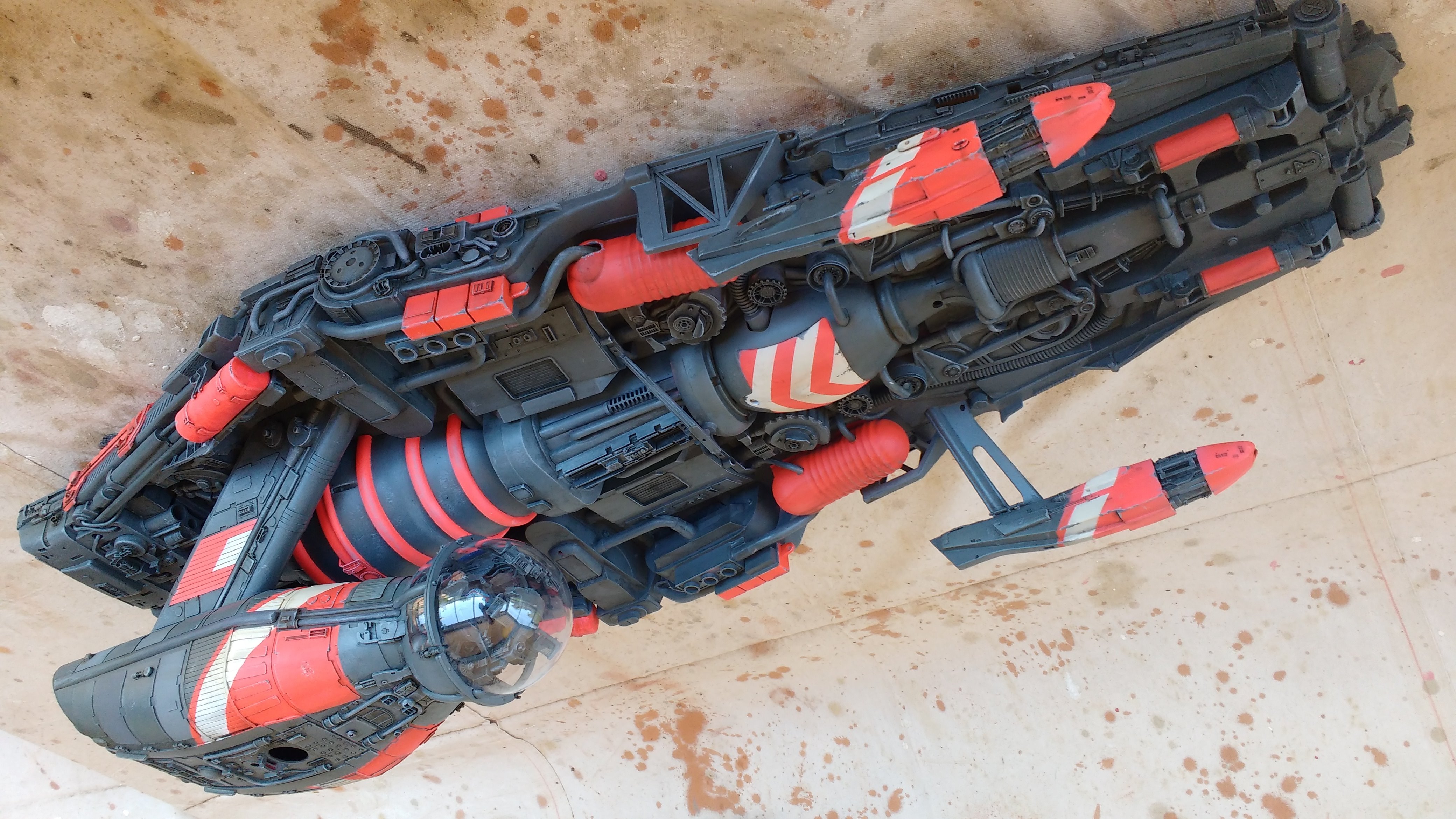 The model is my interpretation of concept art done for Battlestar Galactica in 1978. That concept art was itself heavily inspired by a Moebius design in a comic.The model built for the series was the Flat Top part of the Rag Tag Fleet. I have re-imagined the Battlestar Galactica concept incorporating some of the design elements of the original Moebius design, namely the two seat bubble cockpit.