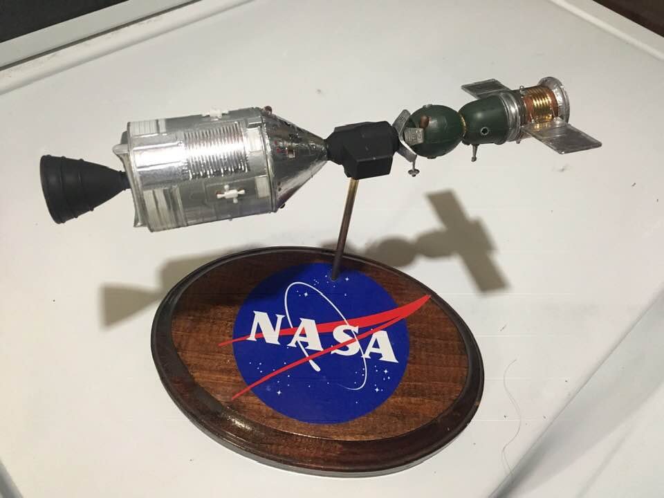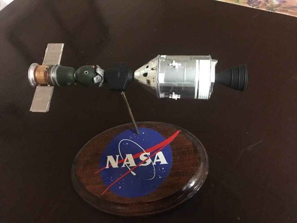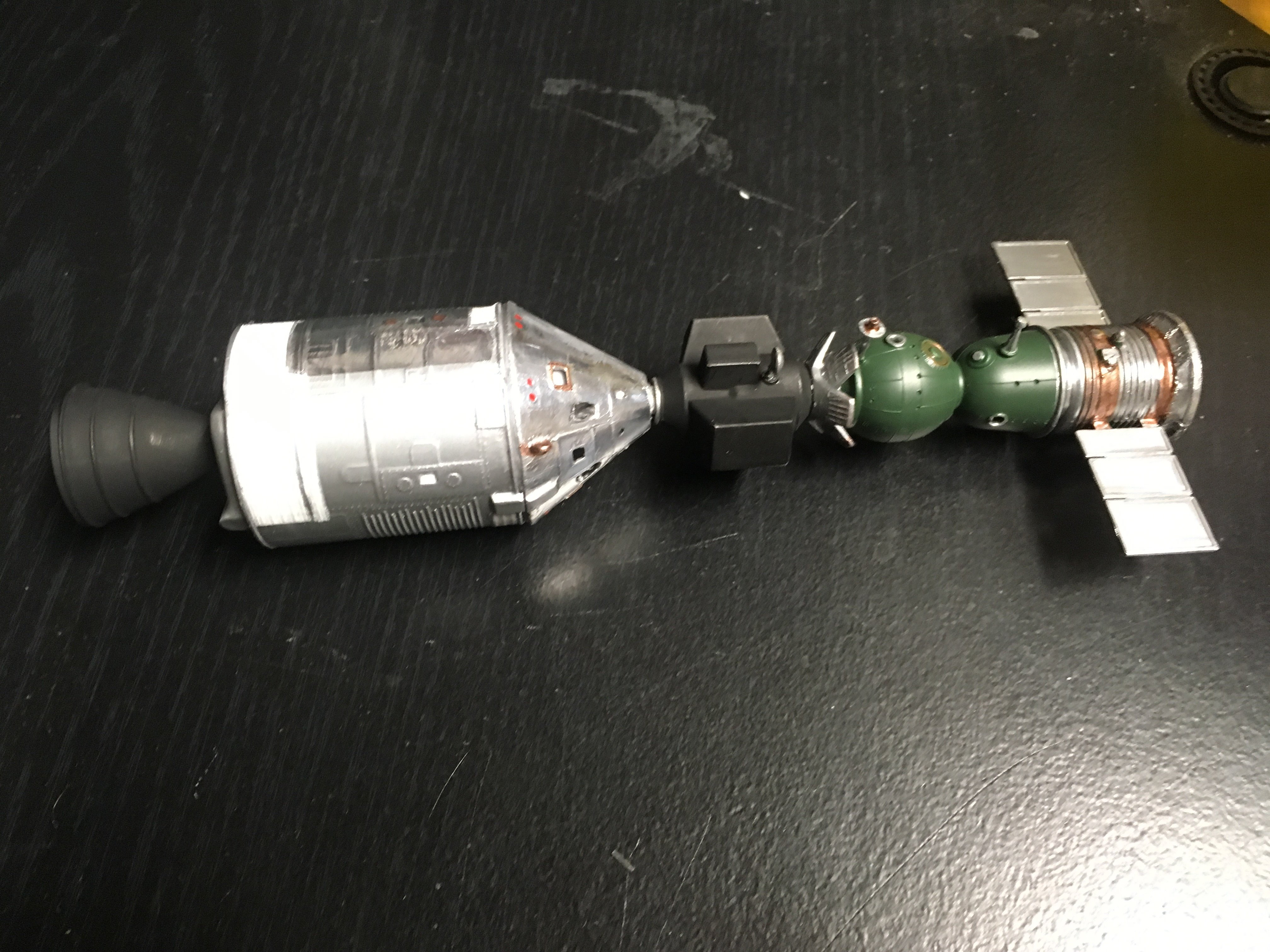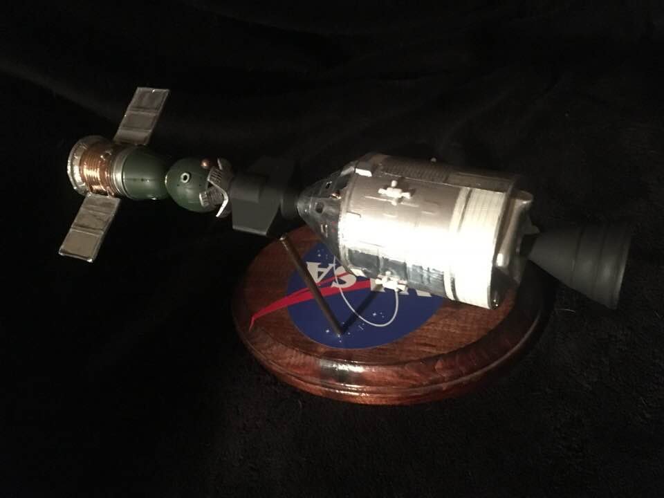 The Apollo–Soyuz Test Project, conducted in July 1975, was the first joint U.S.–Soviet space flight, as a symbol of the policy of détente that the two superpowers were pursuing at the time. It involved the docking of an Apollo Command/Service Module with the Soviet Soyuz 19. Artist Steve Carricato captured this historic event with this magnificent Revell kit build!