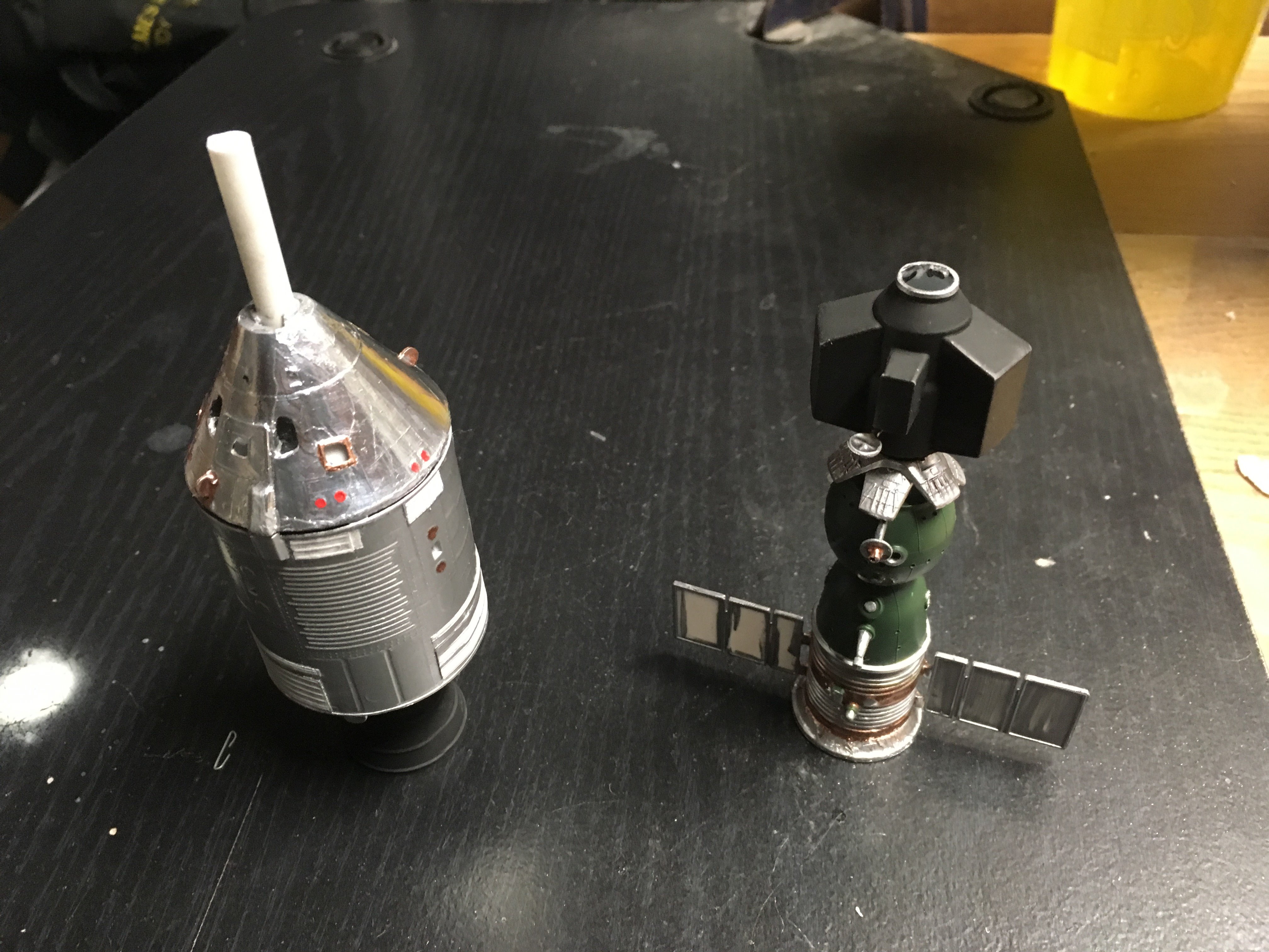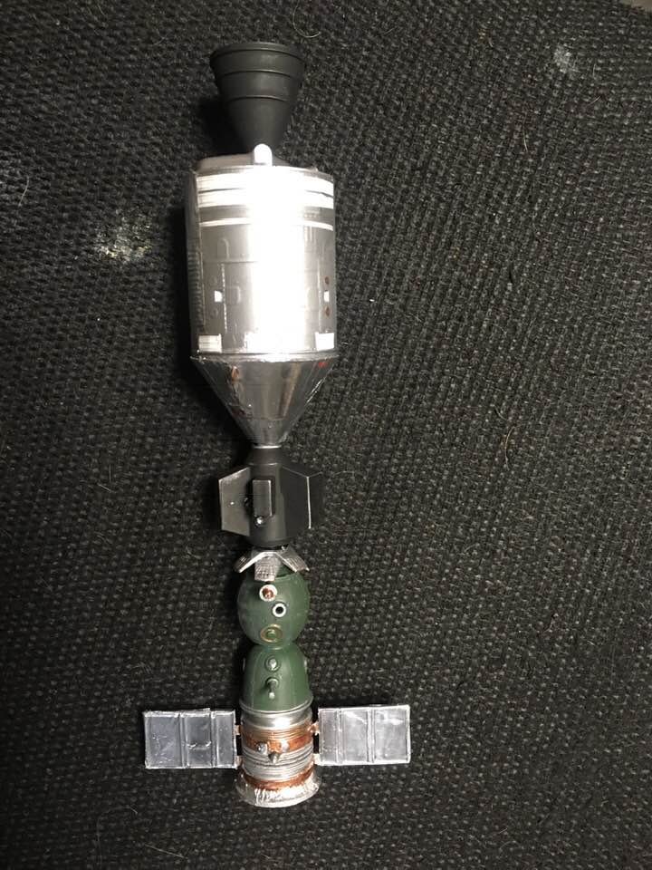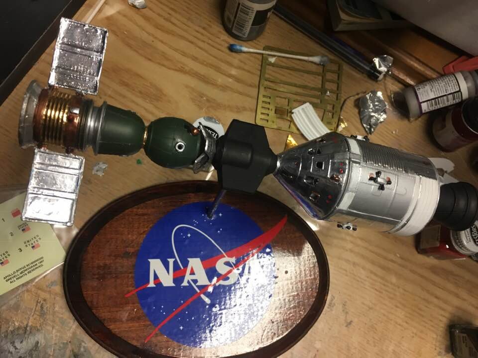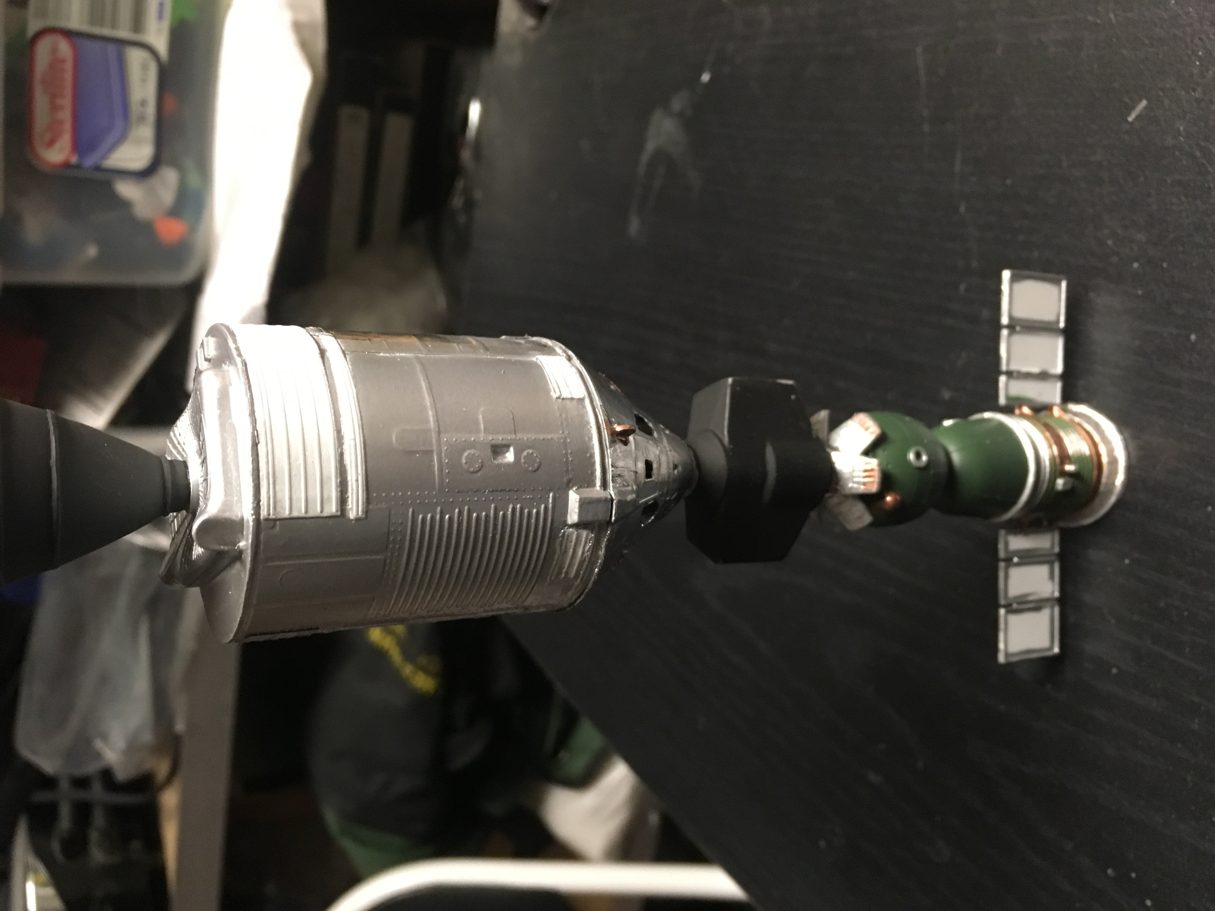 The Apollo–Soyuz Test Project, conducted in July 1975, was the first joint U.S.–Soviet space flight, as a symbol of the policy of détente that the two superpowers were pursuing at the time. It involved the docking of an Apollo Command/Service Module with the Soviet Soyuz 19. Artist Steve Carricato captured this historic event with this magnificent Revell kit build!