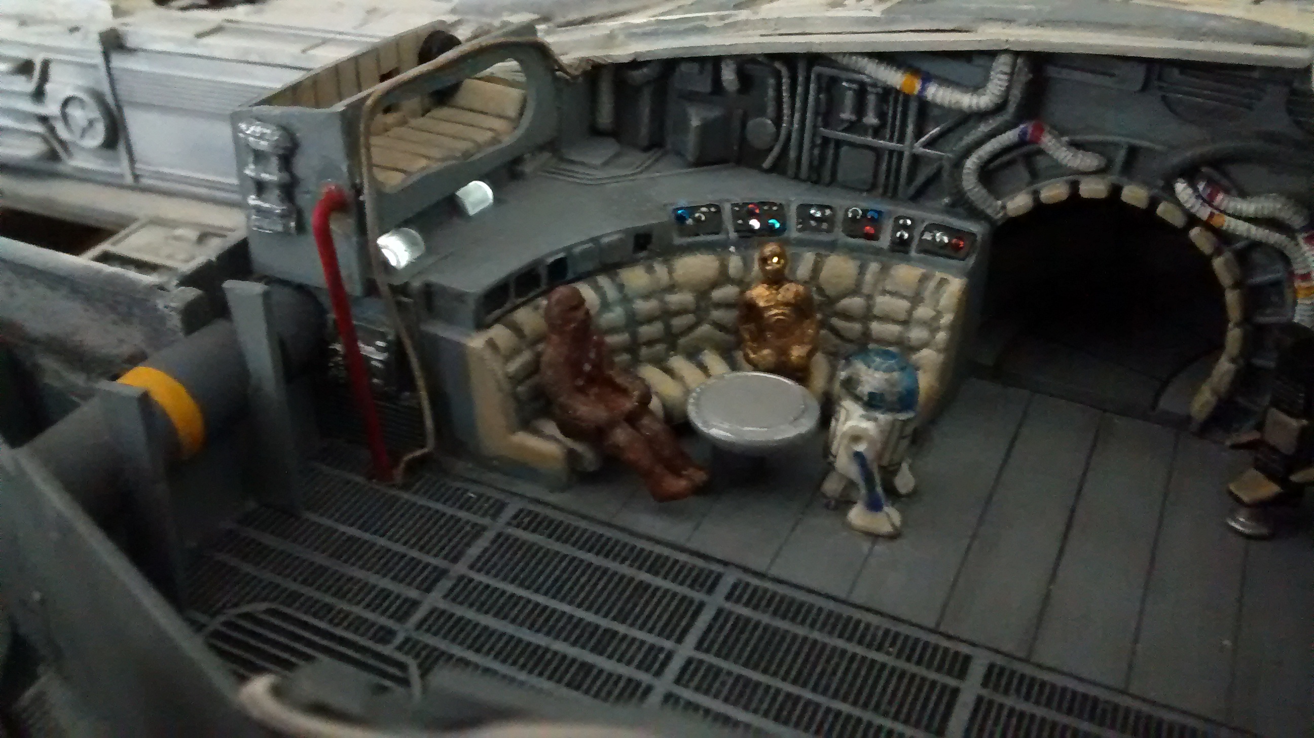 This is the Millennium Falcon with interior that I made for the collection of Fernando Lopez. It is a Revell Millennium Falcon easy kit. Custom features added and adapted the interior of a old Millennium Falcon cutaway AMT.