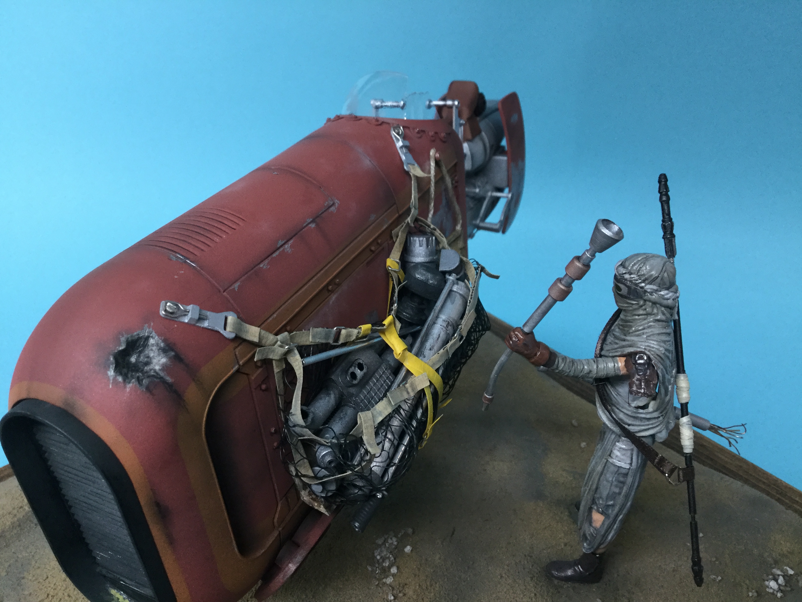 This is a diorama I completed using the Hasbro toy speeder and Rey figure. The speeder was completely taken apart and reconstructed into a contest quality model. (This will be shown at 2017 JerseyFest in September).