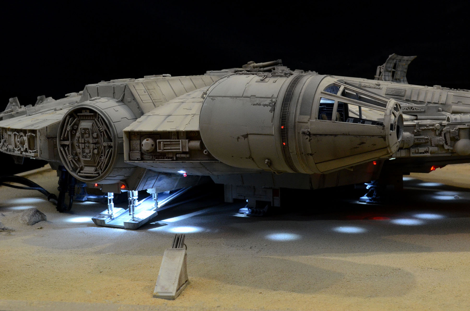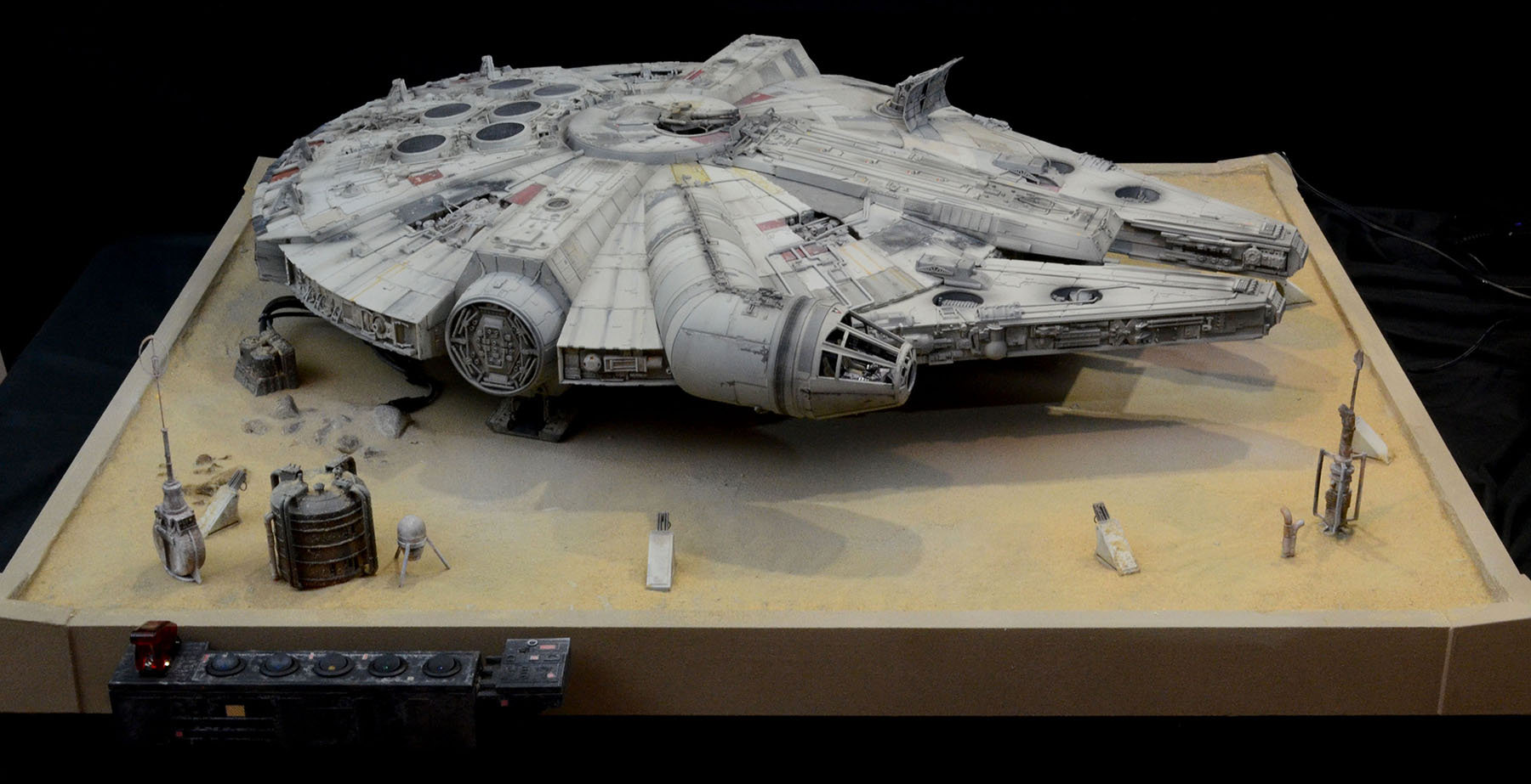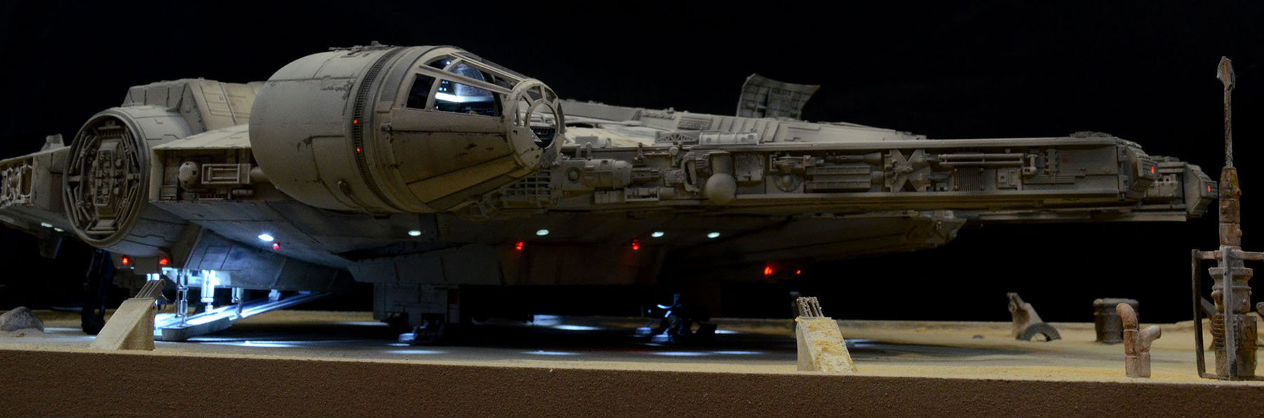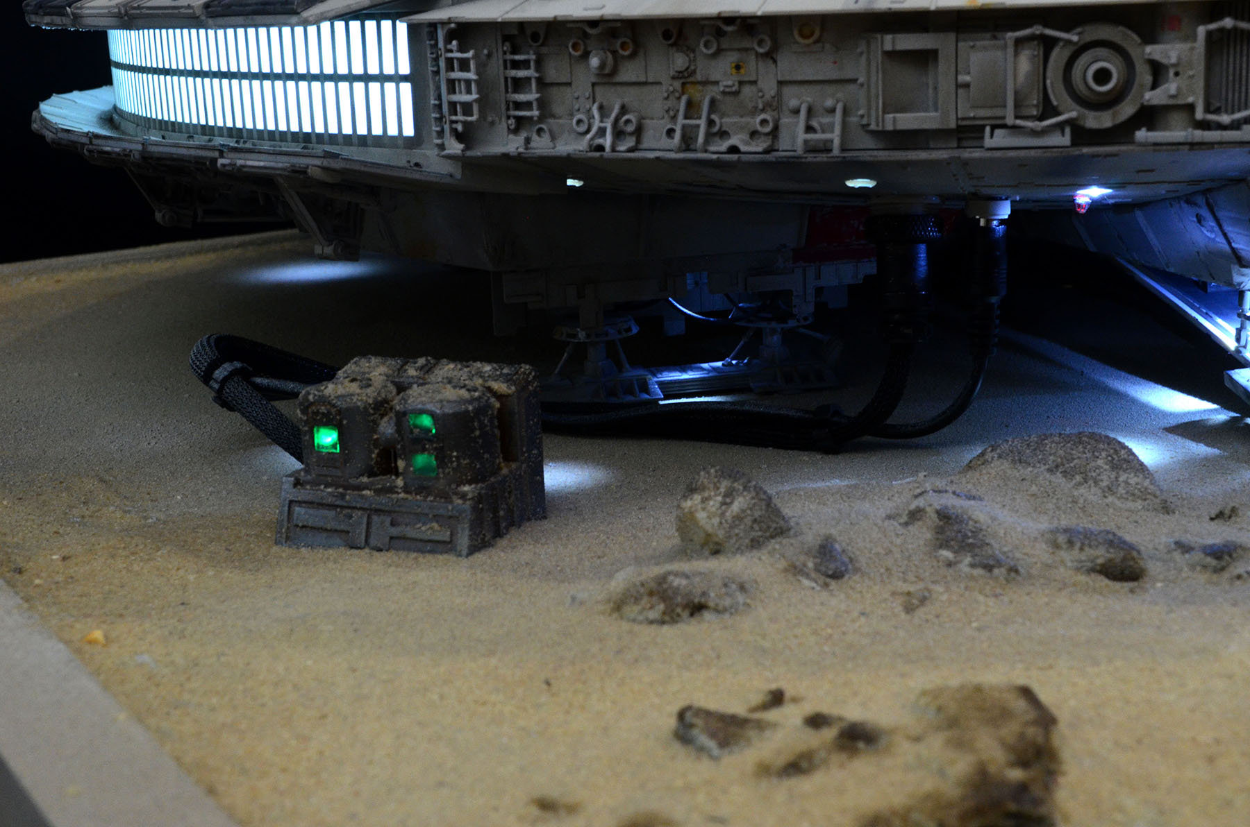 I just finished up a build of another DeAgostini Millennium Falcon on a Jakku desert base. I designed and printed a lot of the parts on the base. All of the paint used on the Falcon was Archive-X. The control panel allows separate lighting of all of the major components such as interior lighting, flood lighting, caution lights, engines.