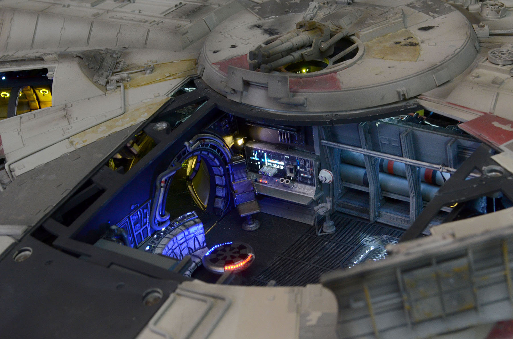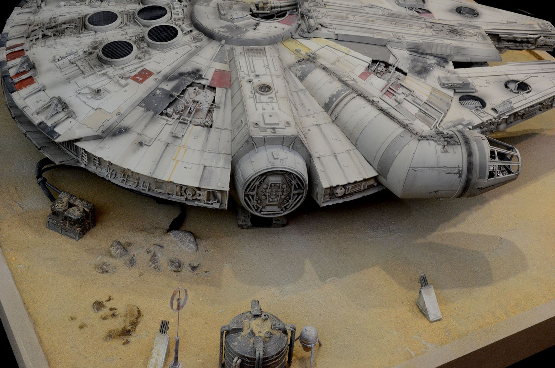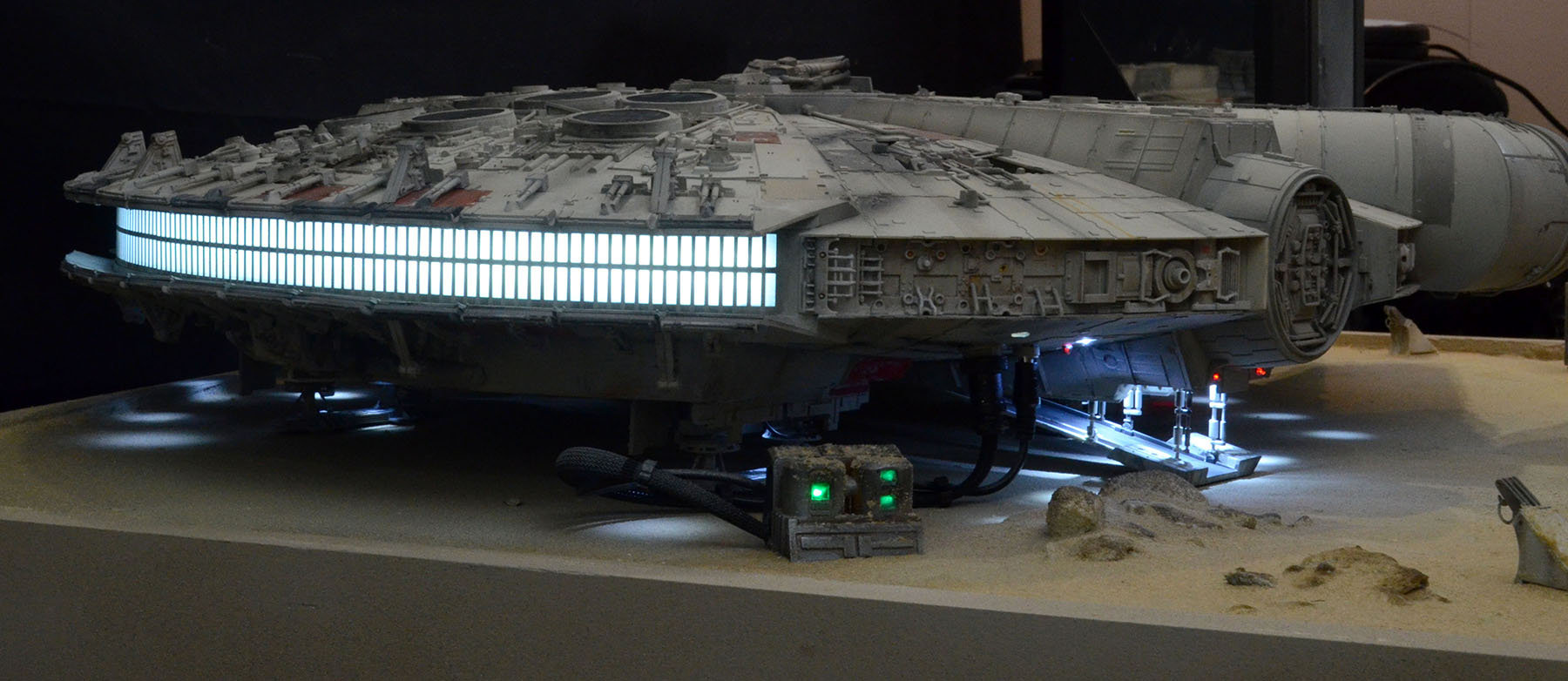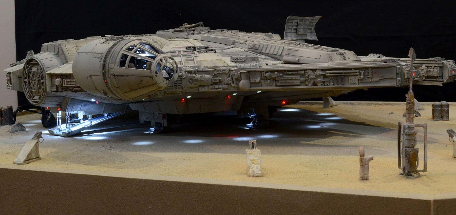 I just finished up a build of another DeAgostini Millennium Falcon on a Jakku desert base. I designed and printed a lot of the parts on the base. All of the paint used on the Falcon was Archive-X. The control panel allows separate lighting of all of the major components such as interior lighting, flood lighting, caution lights, engines.