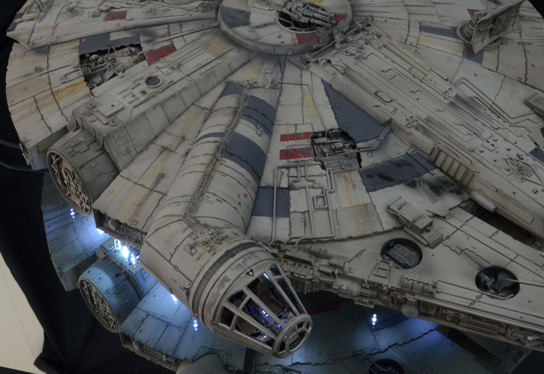 I just completed this DeAgostini Millennium Falcon which was converted to a TFA/TLJ version as best I could. The interior hold includes some additions or adjustments to some details to match TFA such as the wall sconce lighting color, various hanging lamp lighting, and a sick bay area. Since I was trying to replicate a digital model, I had a very difficult time getting the panel colors and markings to match, but I think ultimately it’s a decent blend of the digital Falcons and set props seen in both newer films. The control panel was added to the base to control lighting to various components of the ship, and I incorporated the remote to control the boarding ramp up/down.