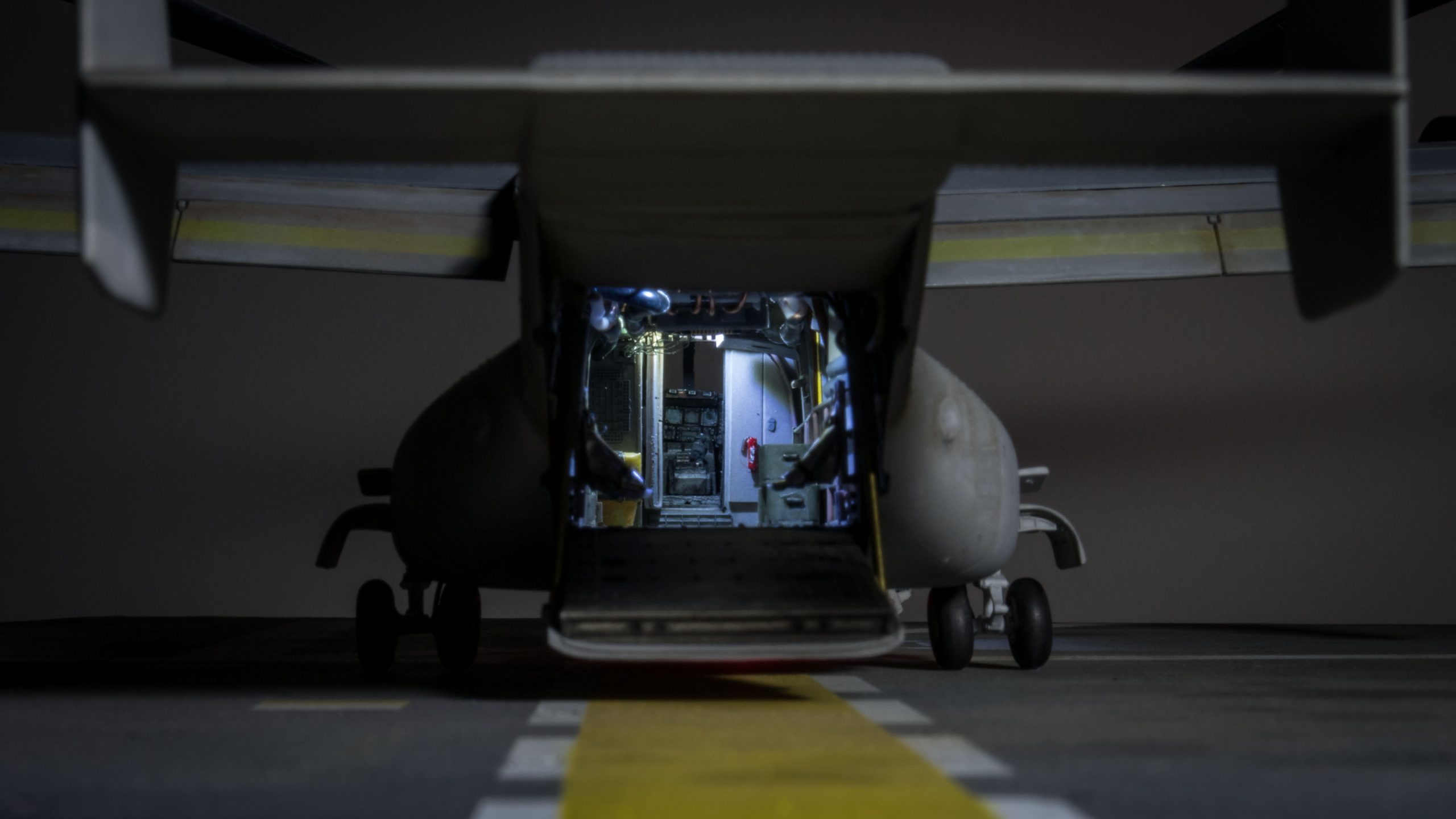 I made some major modifications which took about 300 manhours over 15 months to complete including a detailed interior, internal and external lighting, motorized propellers and additions and changes to the exterior to more closely resemble the actual production aircraft instead of the prototype.