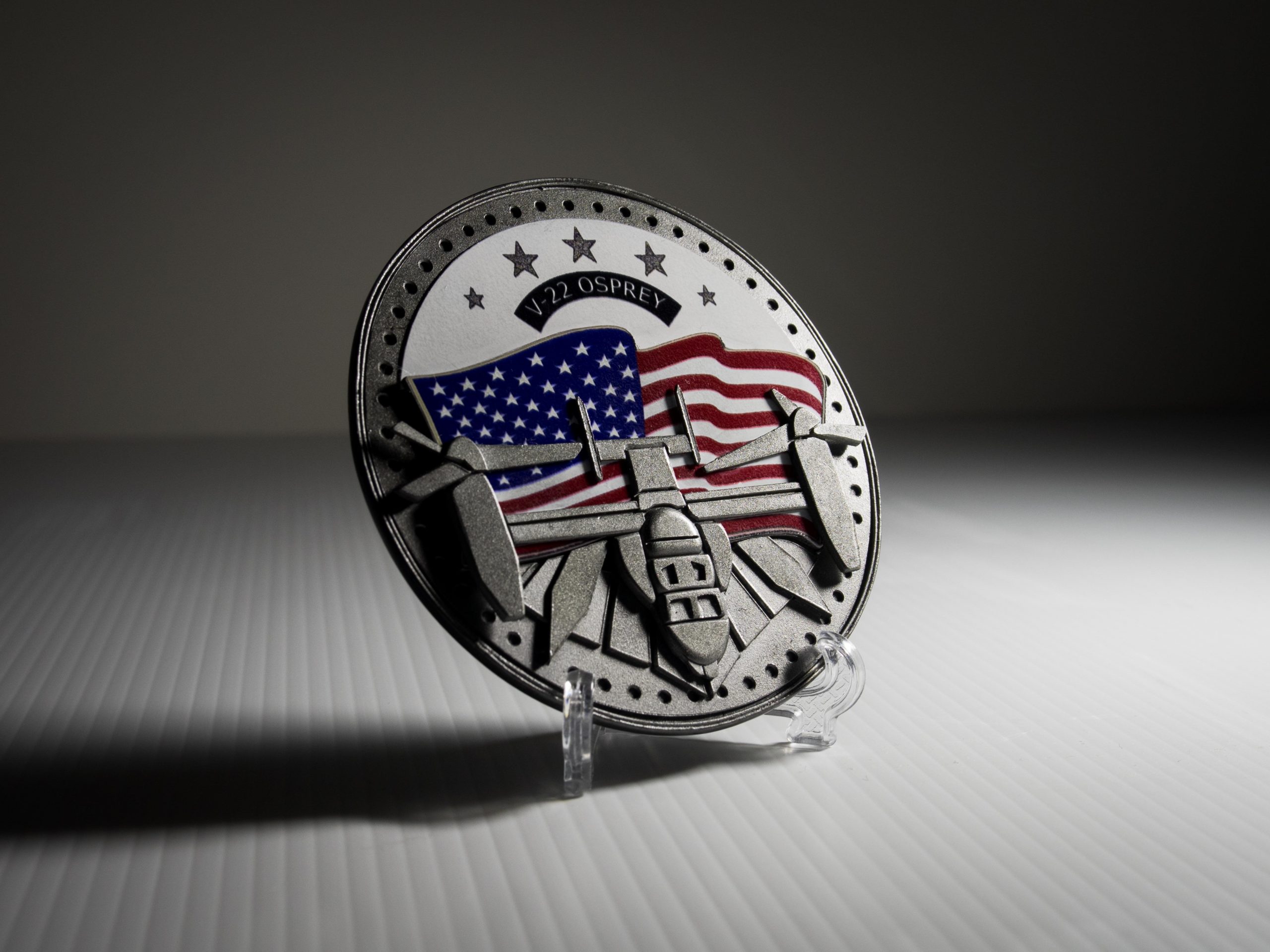 As a finishing touch I created a “challenge coin” out of sheet plastic to accompany the model display.
