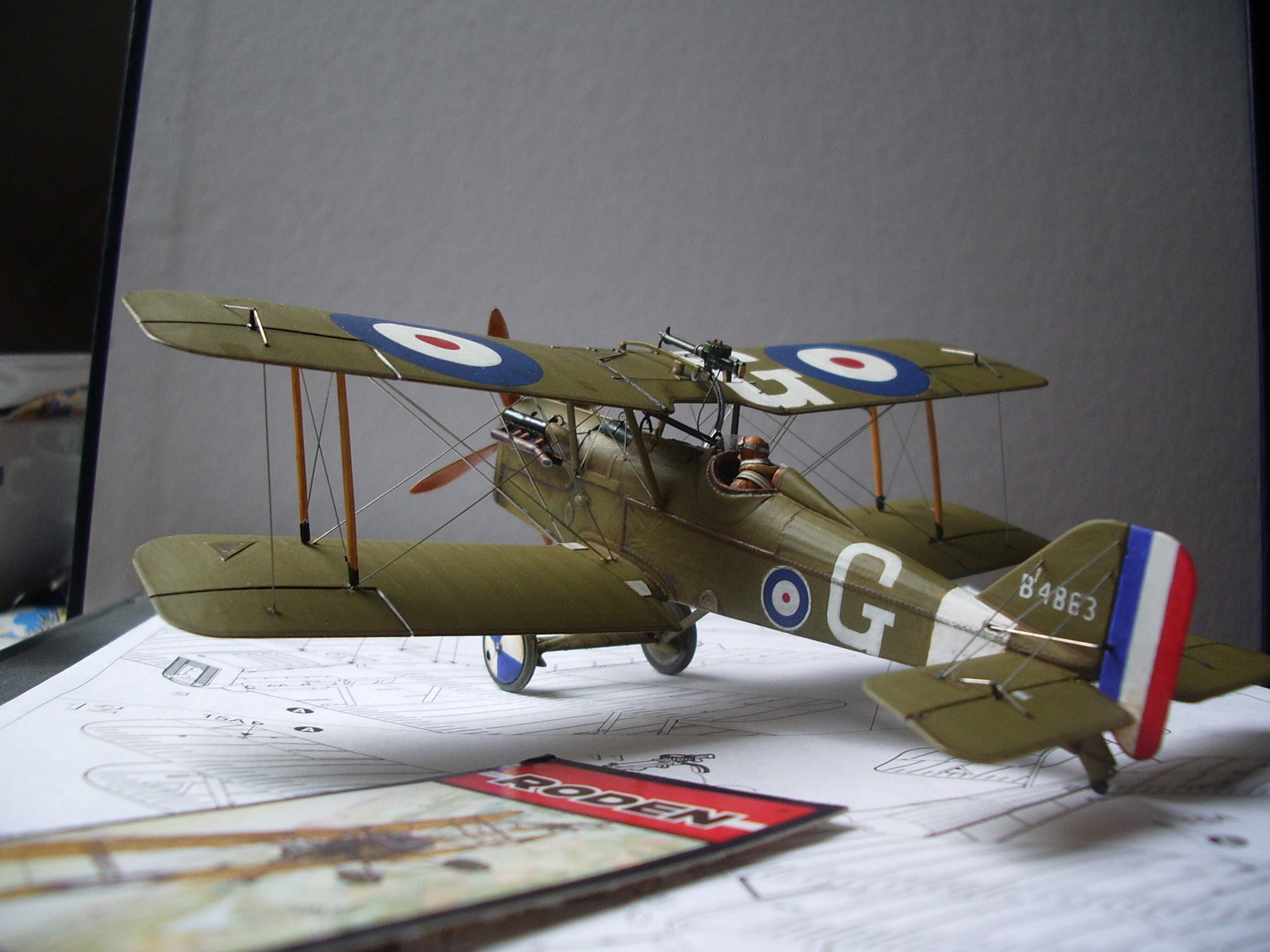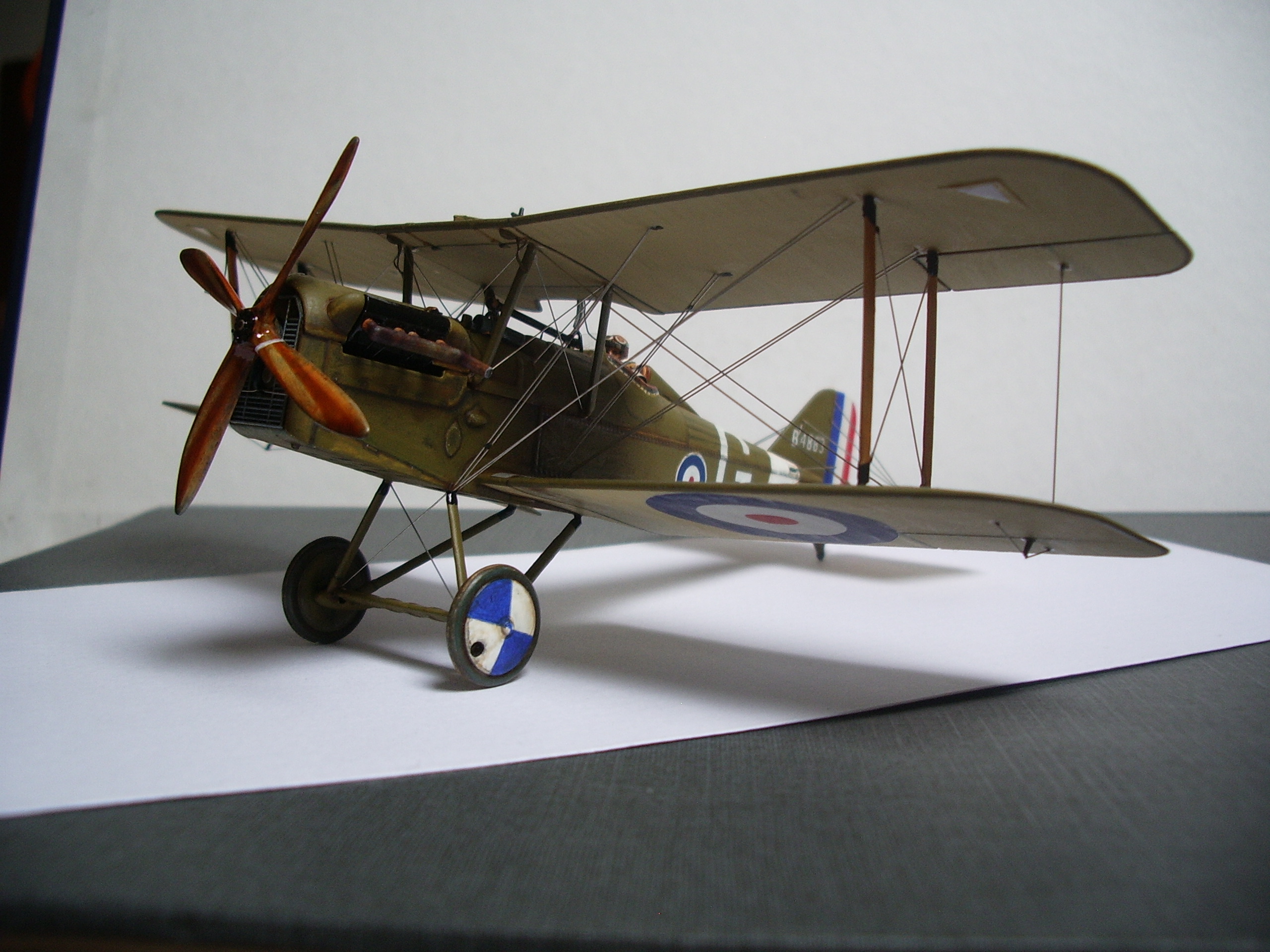 Below are some more photo’s of the SE5a (Roden 1/48) model. If you click on the image and magnify, you can see the small pulley wheels, under the cellon windows on the tail plane, I opened up these areas with a mini-drill, cleaned up and patched with cigarette paper. Also I added the fuel lines coming from the tank in the upper wing section running down the struts and crossing over to the engine cowl. Replacement brass plumbing, scratch-built “Aldiss sight”, and brackets to hold Lewis. I also pinched a Cross and Ring sight, for the Vickers, from another kit.