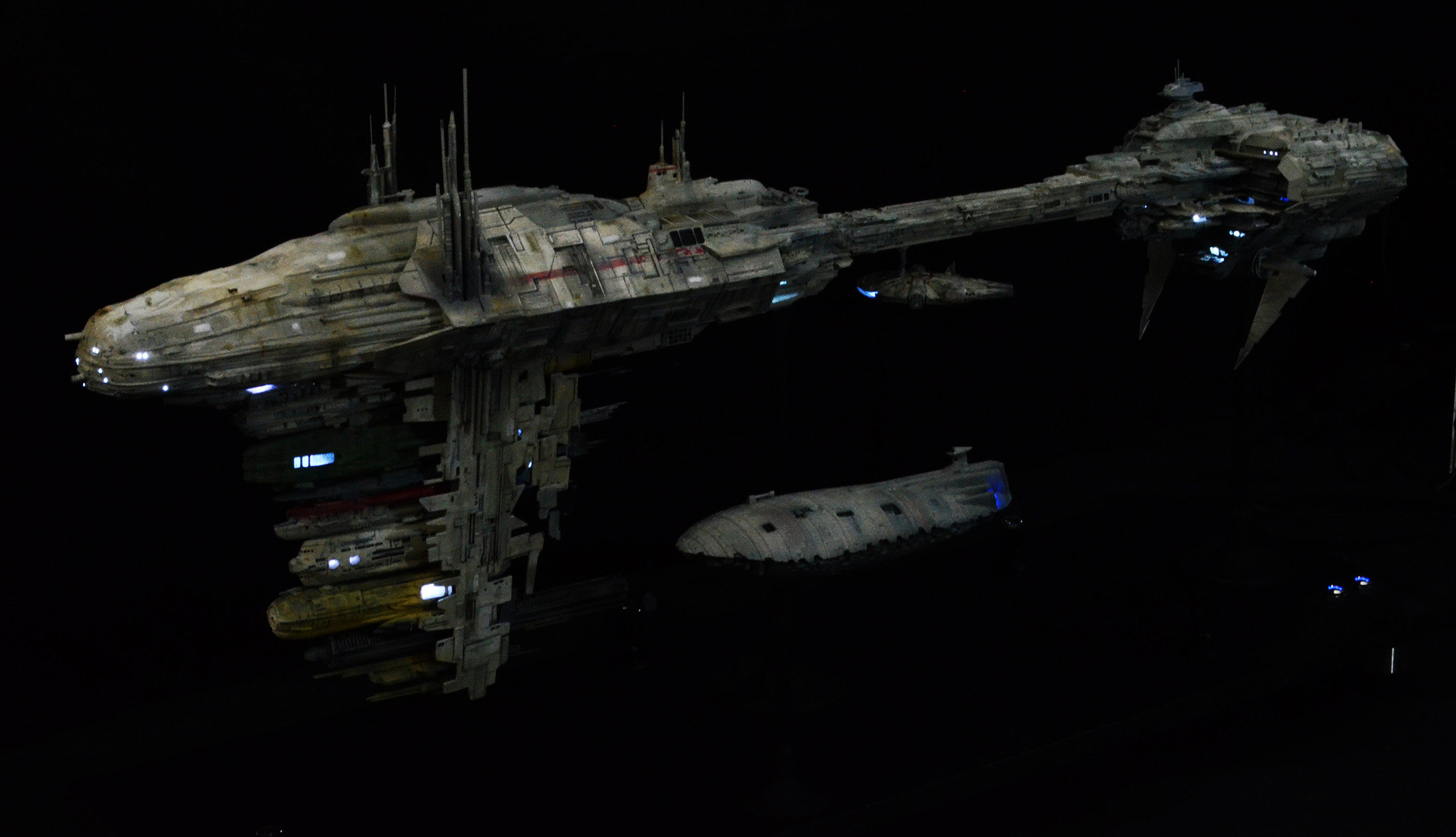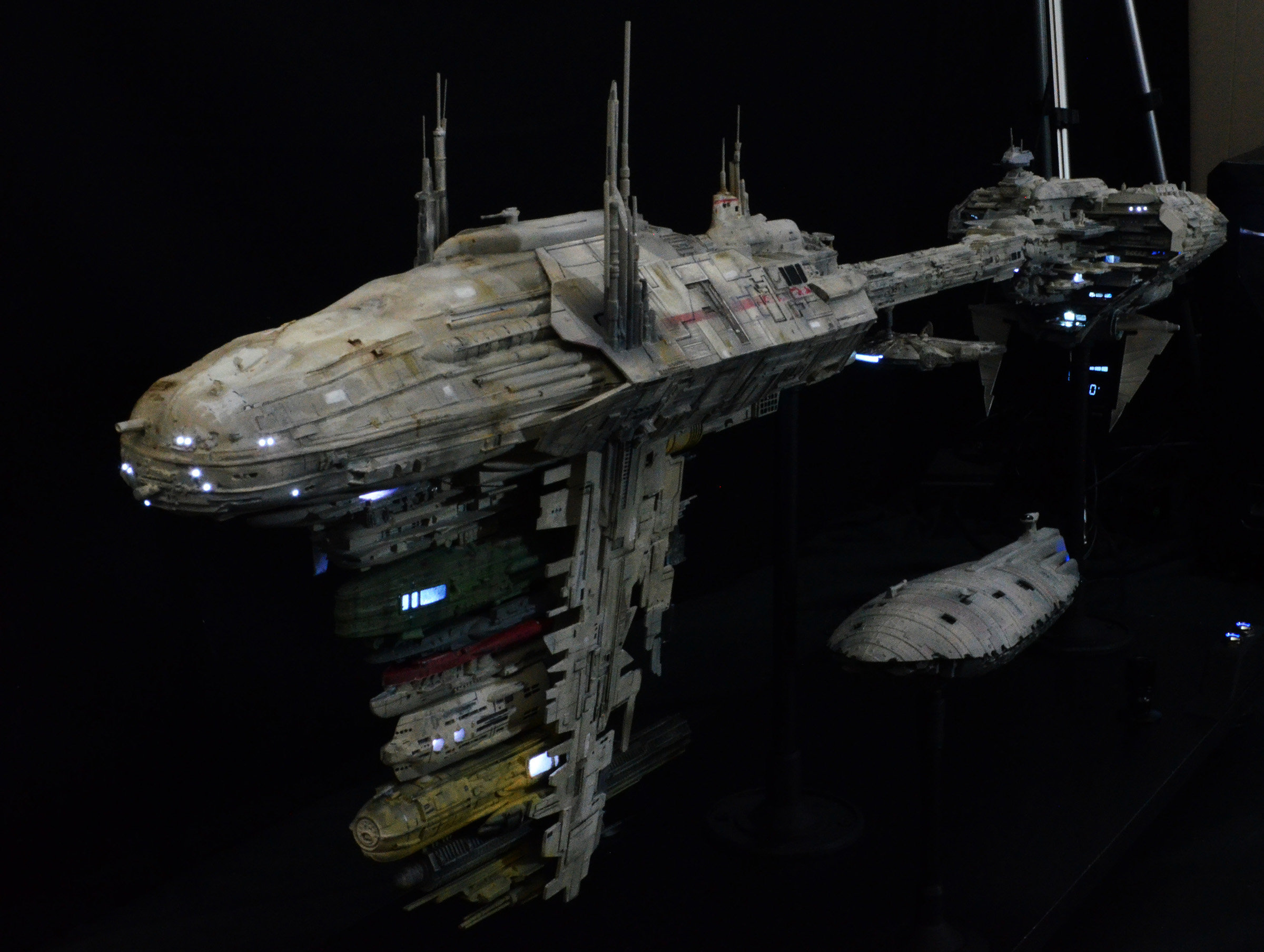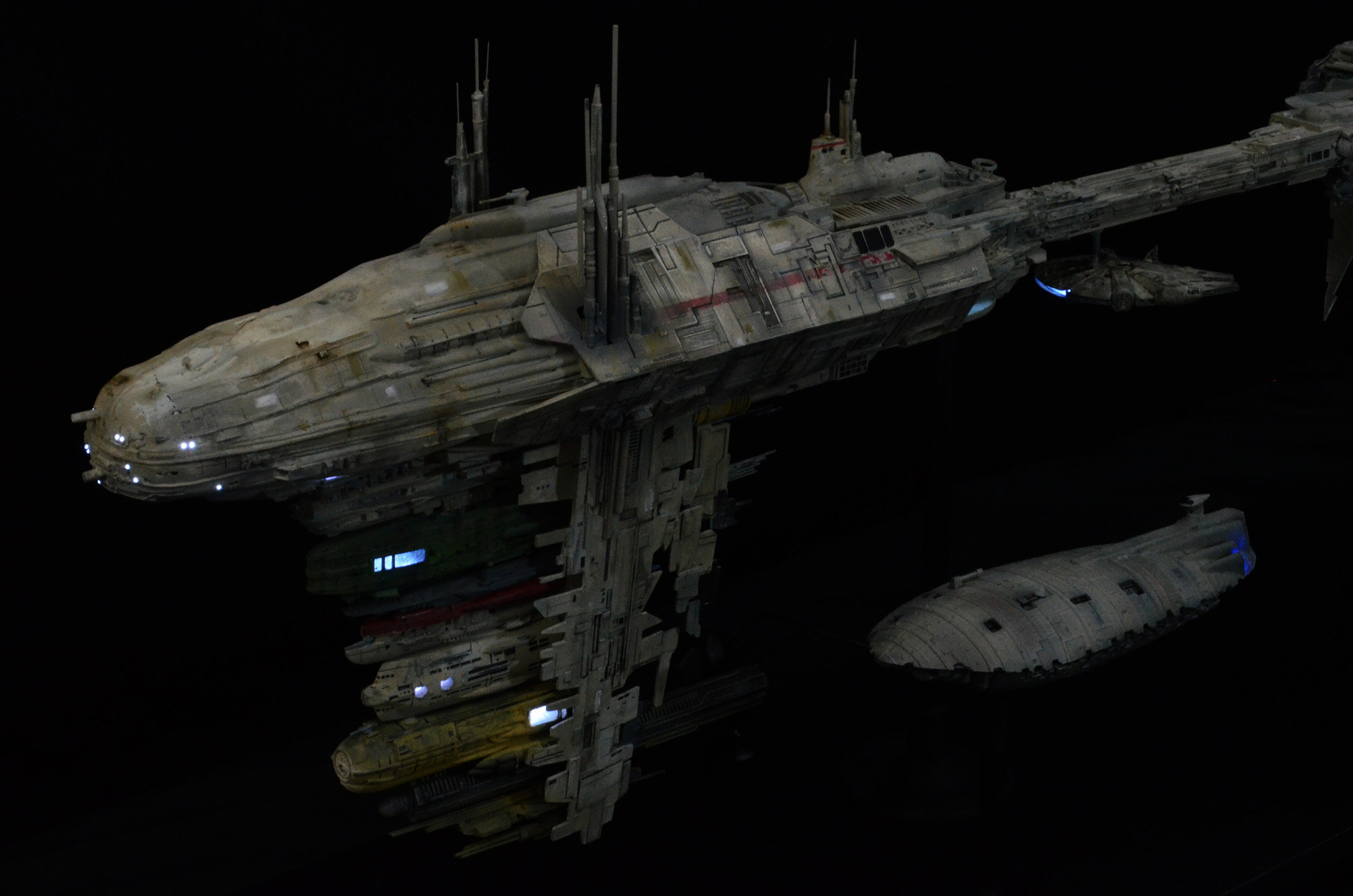 I recently completed a 1/350 scale JPG Productions Nebulon-B Medical Frigate build. This is not for sale as it is already promised to a client I built it for. The Rebel Transport is a modified version from an old MPC kit for the “Rebel Base” kit from the 80s.