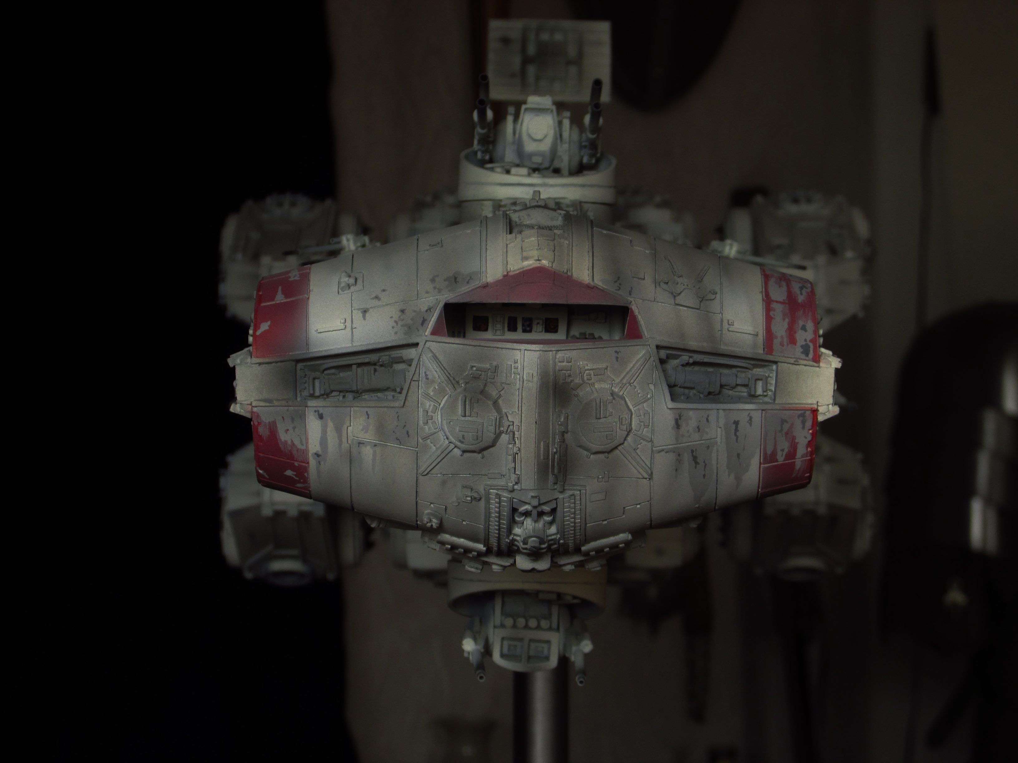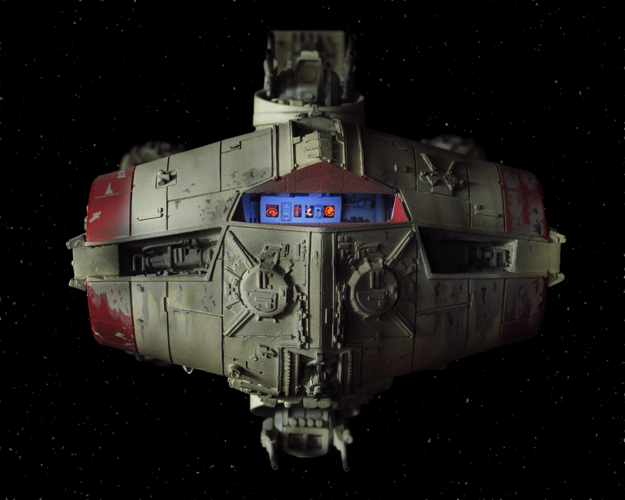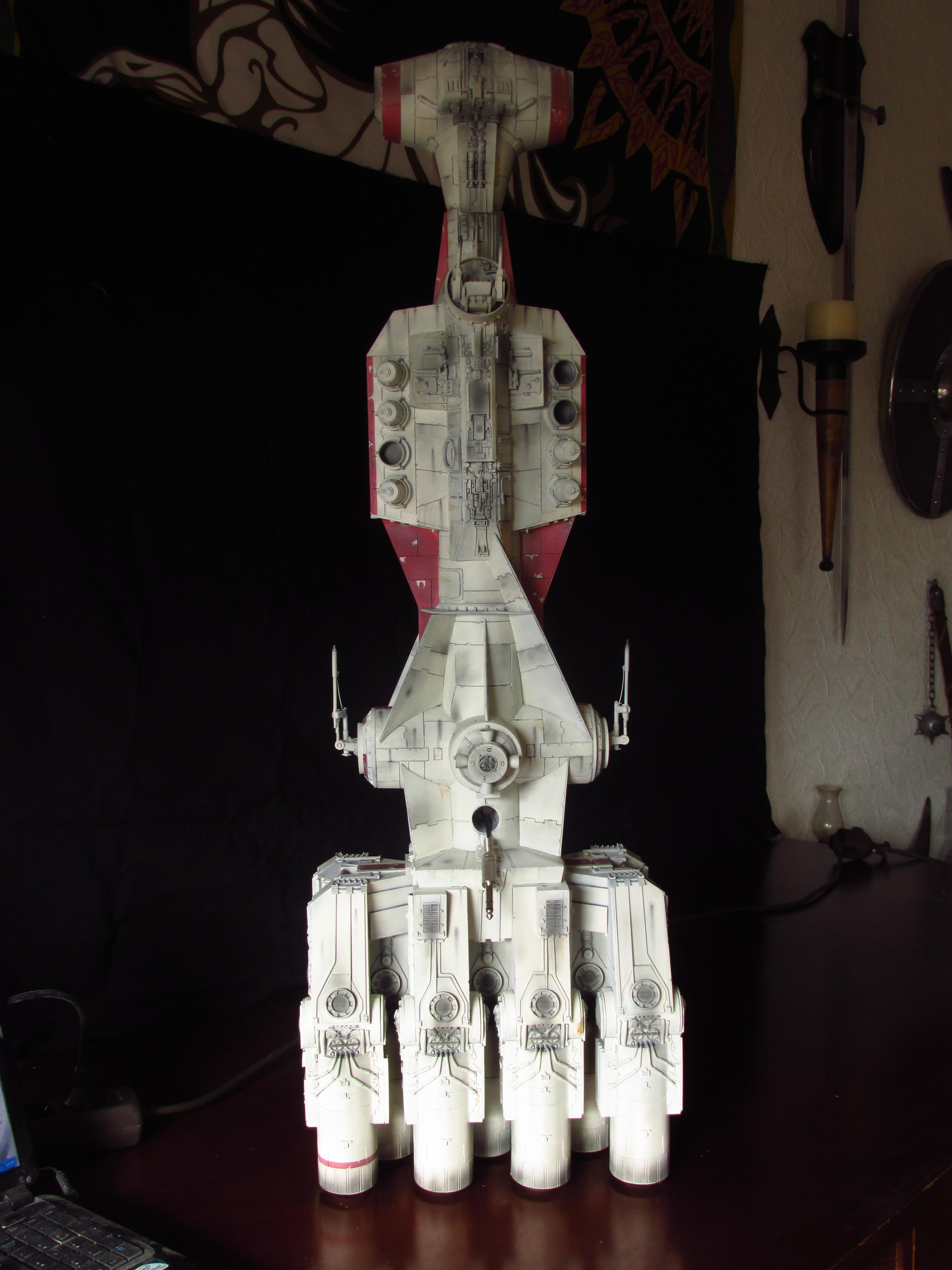 Artist Daniel Beck has been busy building this beautiful Chris Kelley kit of the Return of the Jedi Blockade Runner! This piece is absolutely beautiful with full interiors scratch built for this piece, and fantastic lighting to boot! Nicely done Daniel!