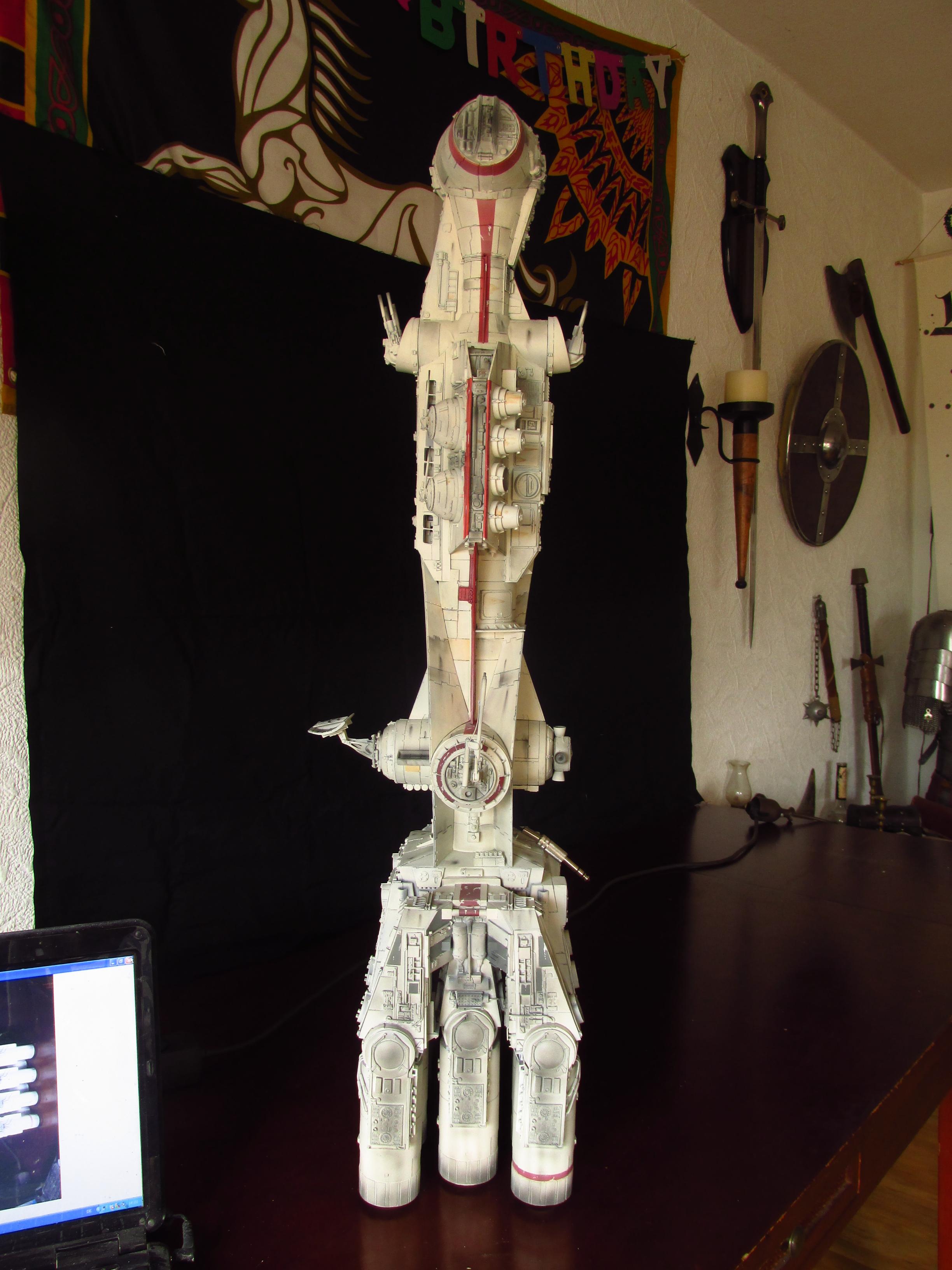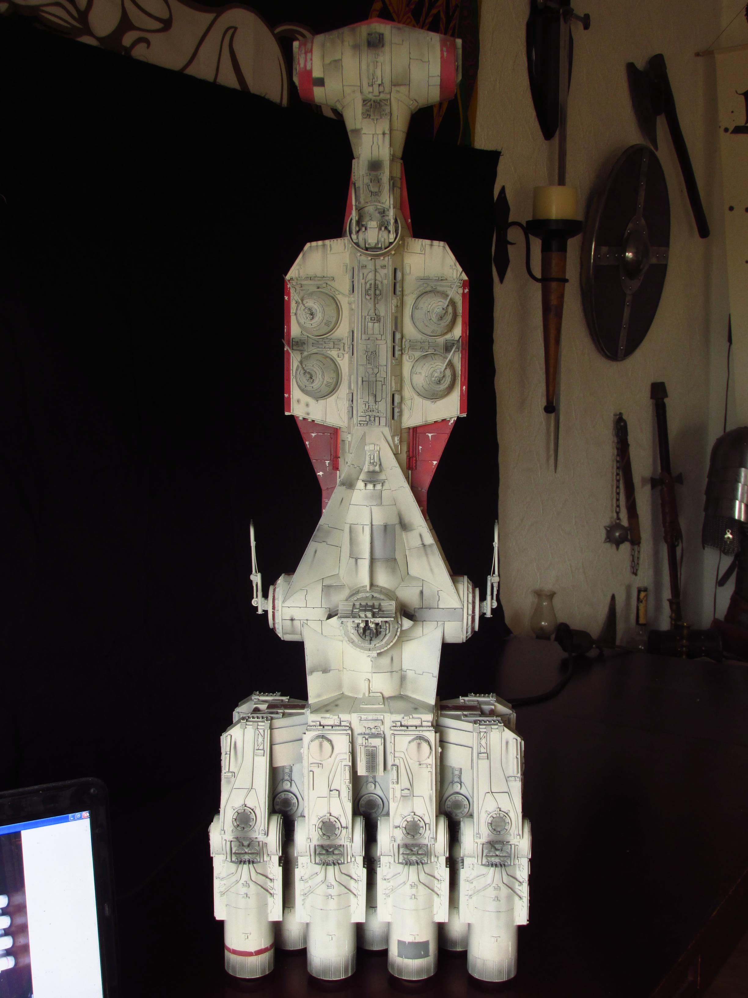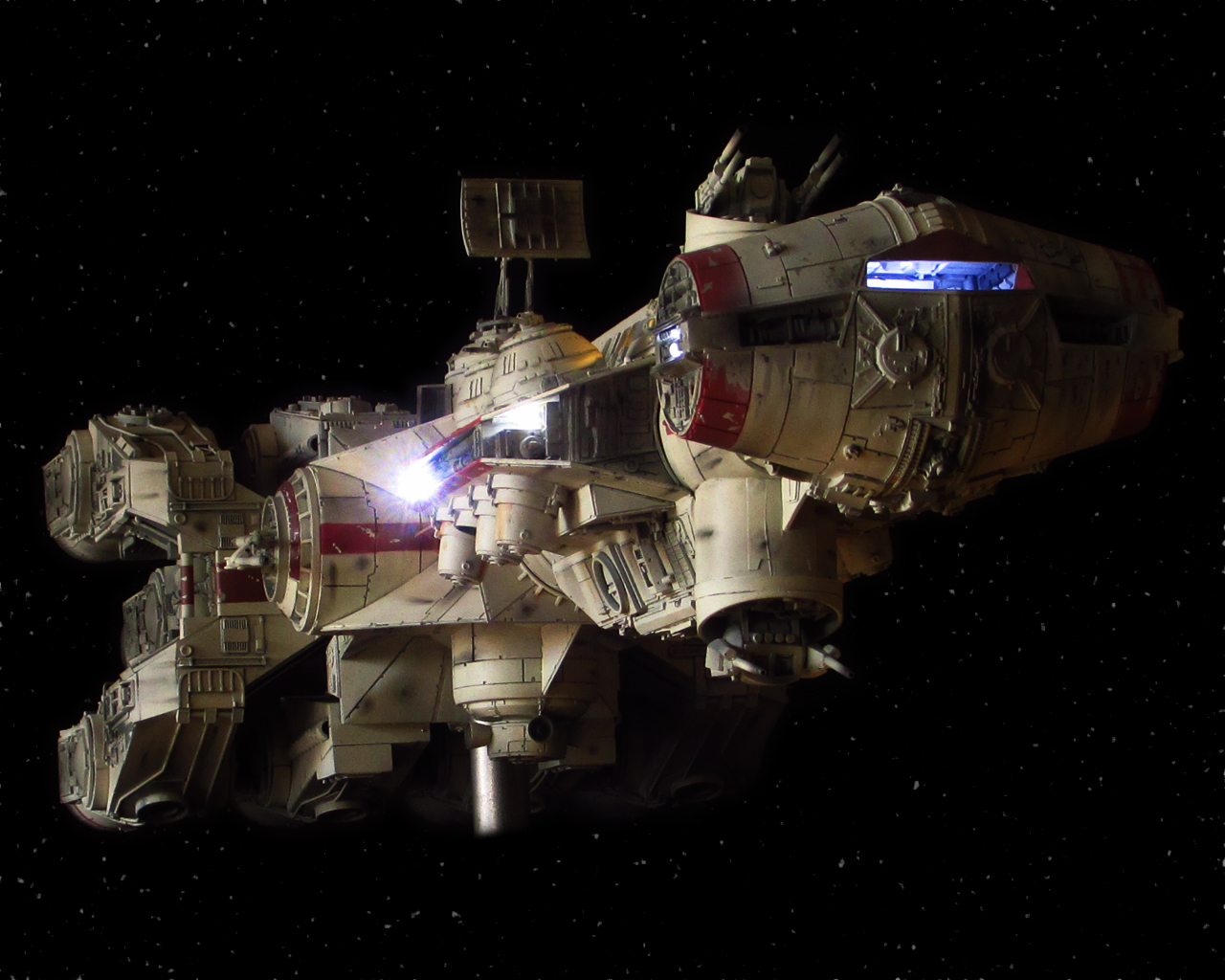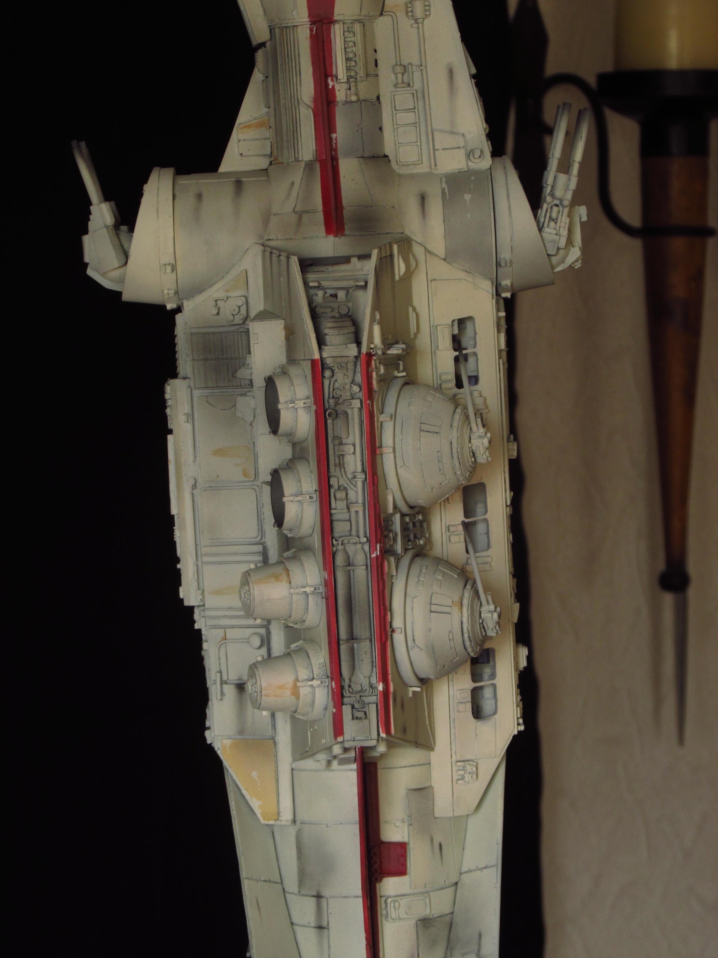 Artist Daniel Beck has been busy building this beautiful Chris Kelley kit of the Return of the Jedi Blockade Runner! This piece is absolutely beautiful with full interiors scratch built for this piece, and fantastic lighting to boot! Nicely done Daniel!