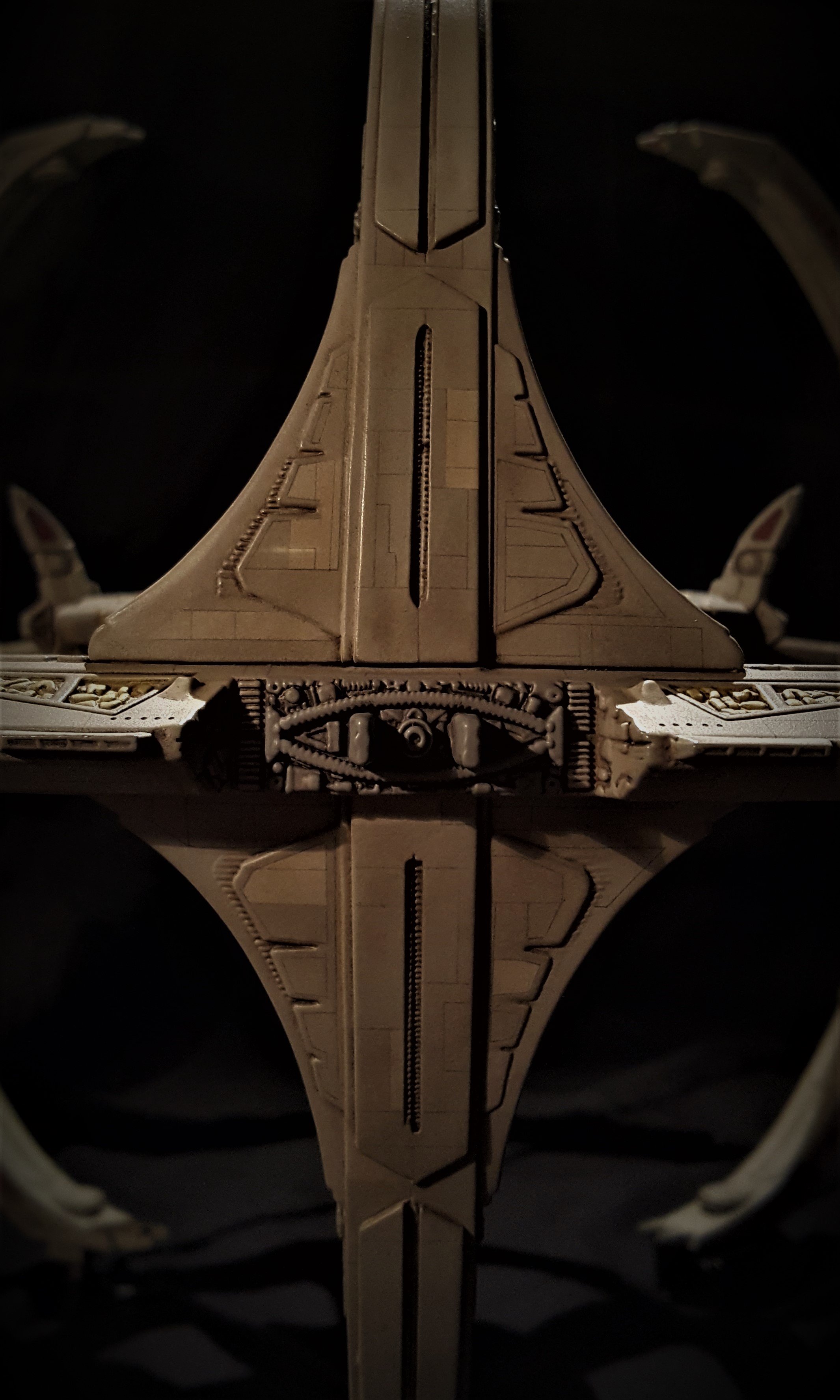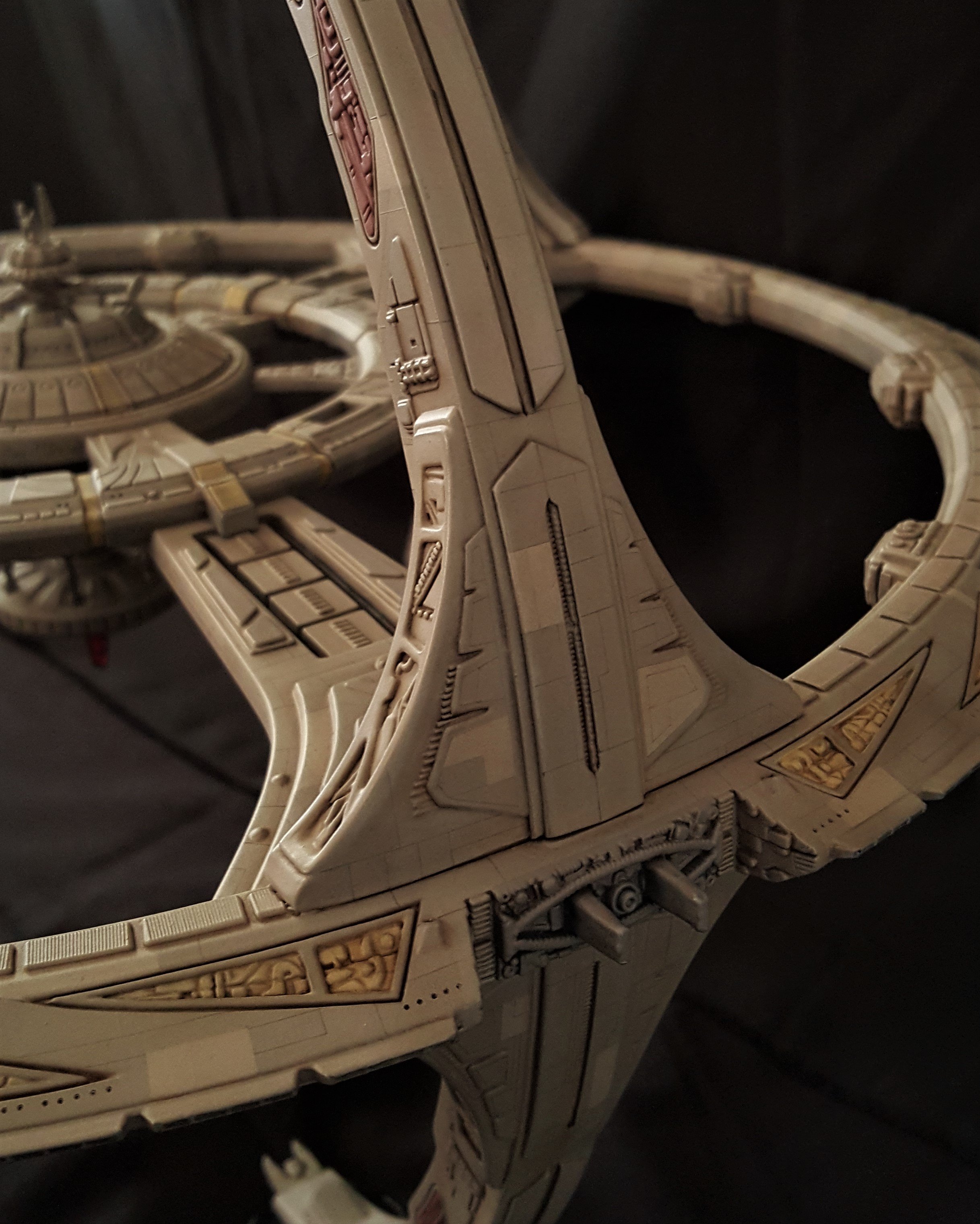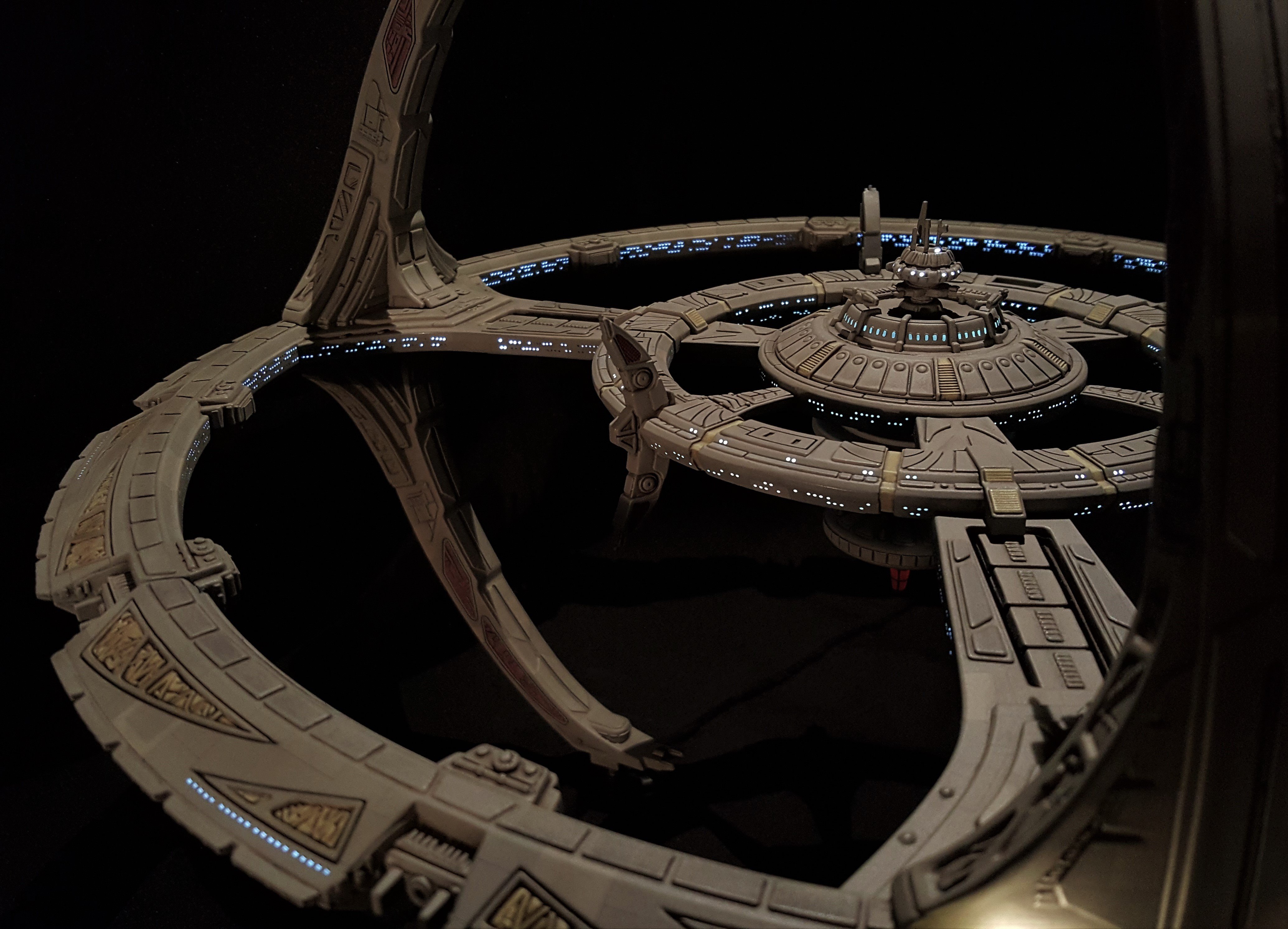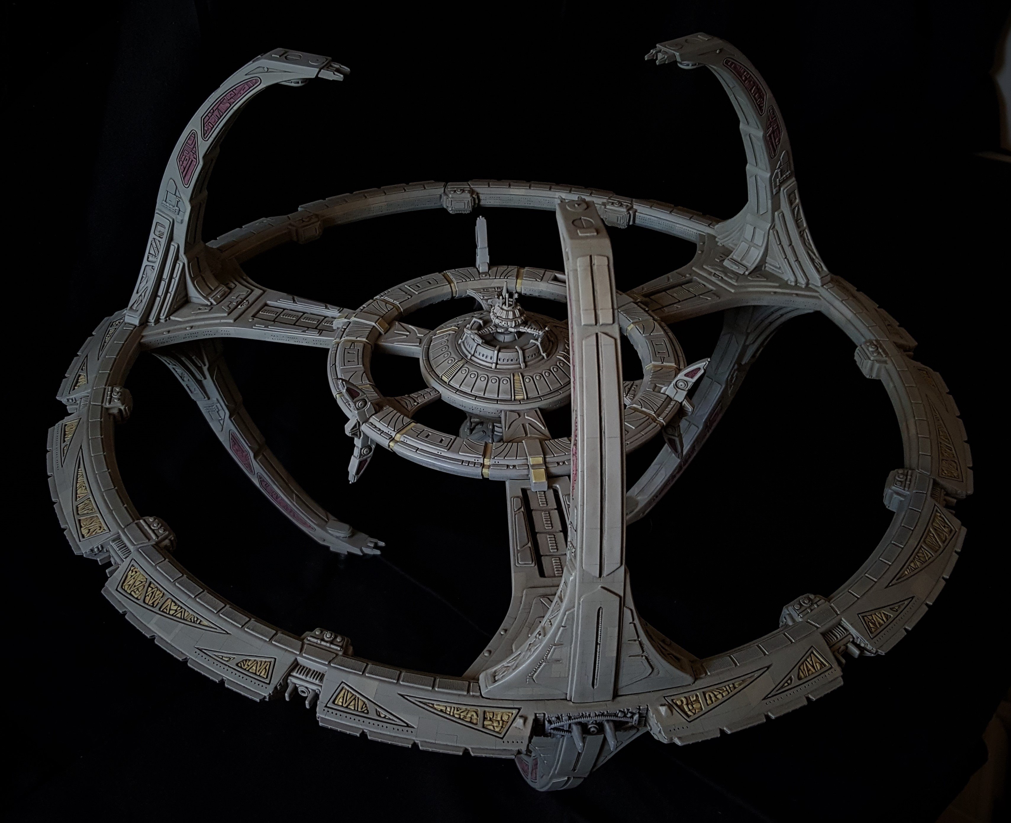 I was commissioned by a collector in Germany to build a new Deep Space Nine space station model to replace the current one being displayed in his private Star Trek museum. This new version was to be fully lighted, including flood lighting on the docking pylons, lit cabin windows, flashing anti-collision markers and a pulsating reactor core.