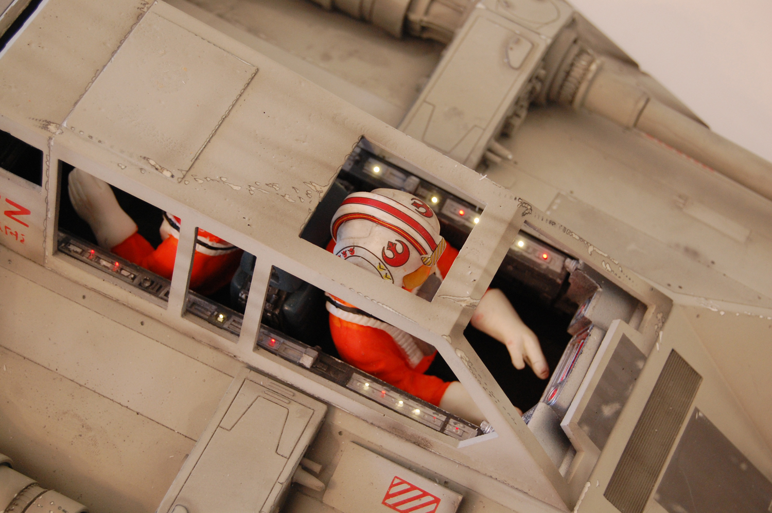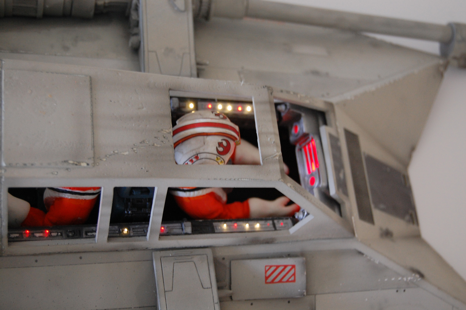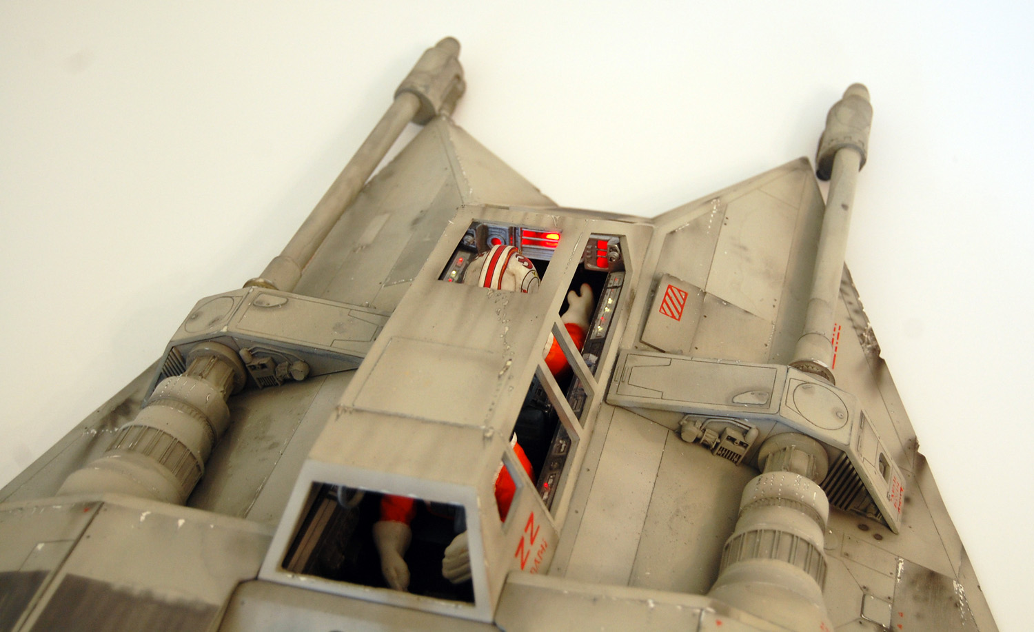 This piece is Studio Scale size at nearly 20 inches long, and almost as wide! This is one of the ORIGINAL casts from artist Nick Sainton-Clark. There were only a few made by Nick before they were taken over by NICE-N Model Designs… which were cast by MSLZ22 Models own Mike Salzo. This piece is fully lit with the cockpit lighting! You can even see the metal under the worn off paint from battle!