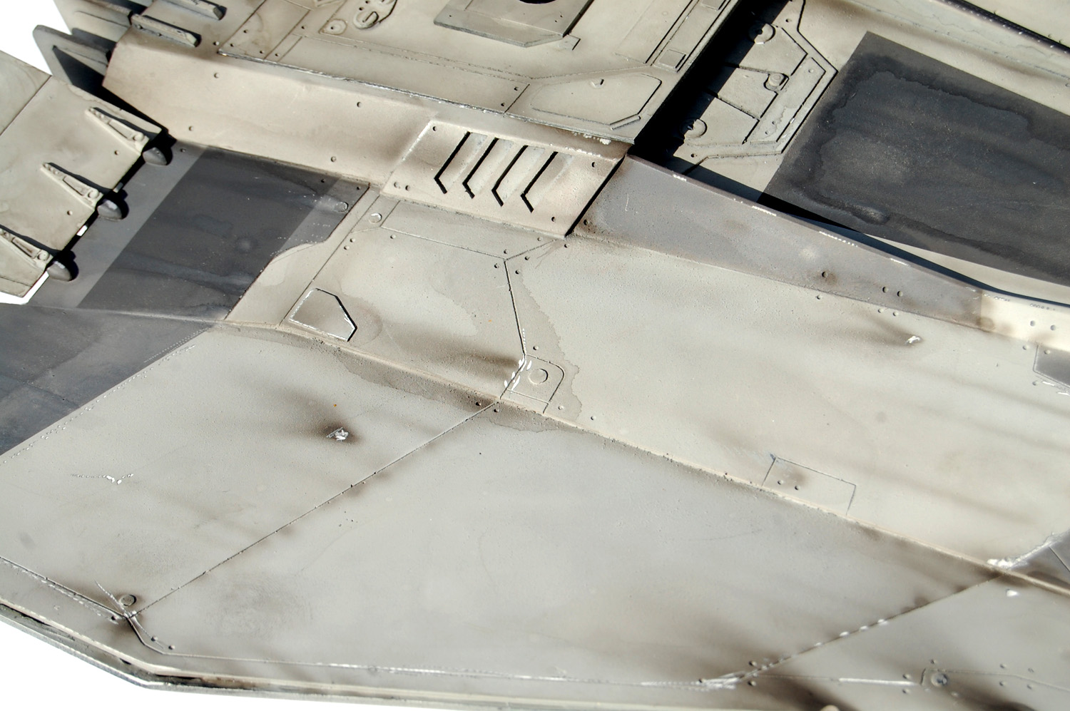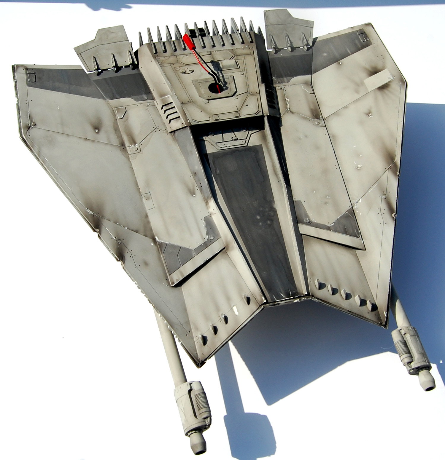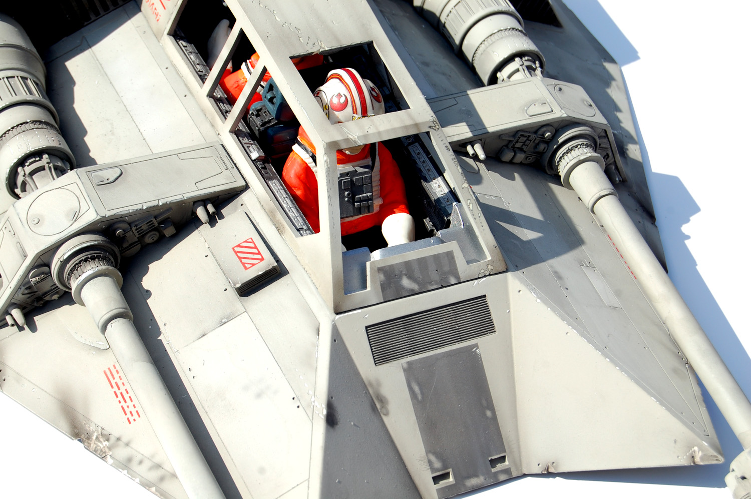 This piece is Studio Scale size at nearly 20 inches long, and almost as wide! This is one of the ORIGINAL casts from artist Nick Sainton-Clark. There were only a few made by Nick before they were taken over by NICE-N Model Designs… which were cast by MSLZ22 Models own Mike Salzo. This piece is fully lit with the cockpit lighting! You can even see the metal under the worn off paint from battle!
