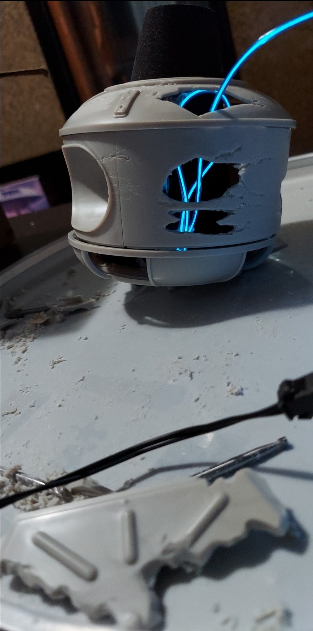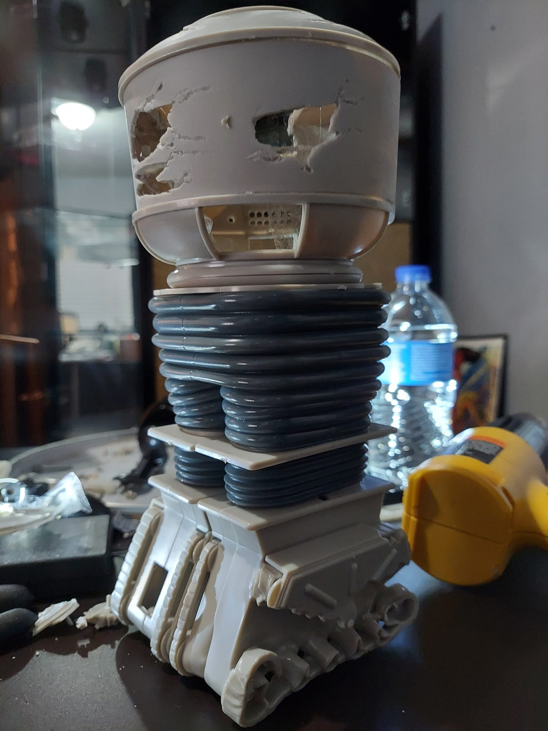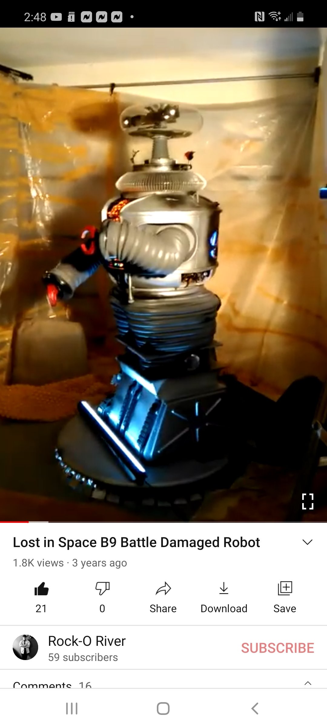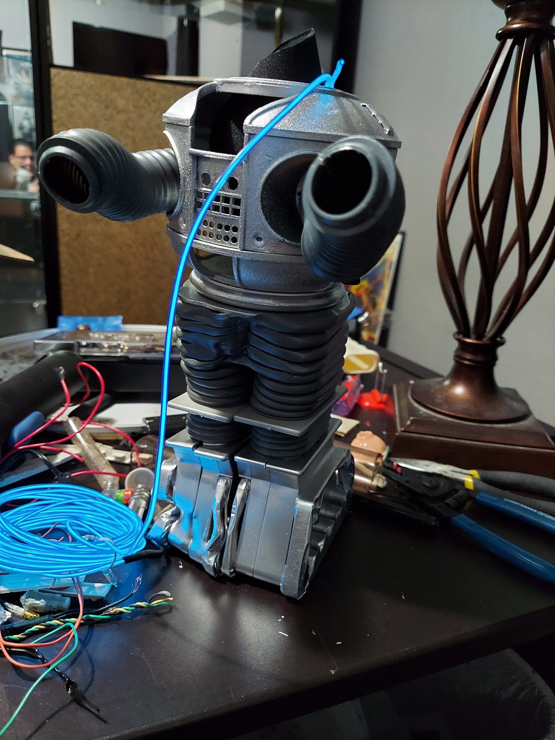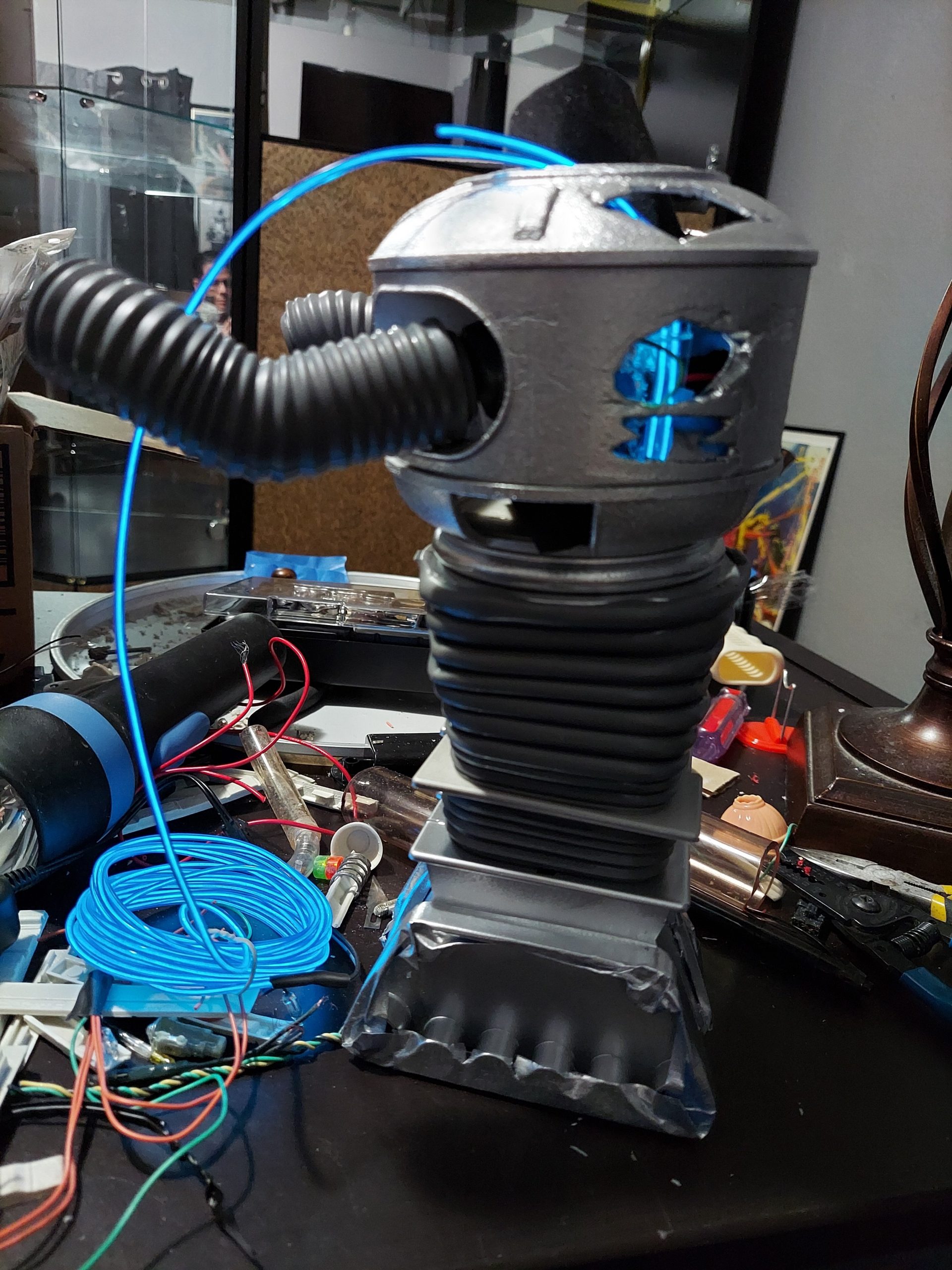 I am currently working on a mini 1/6 scale copy of my battle damaged Lost in Space B9 Robot. It’s going to look really good. I’m rigging up the animation, lights, etc.. It will look exactly alike to full size version. Check out the work in progress.