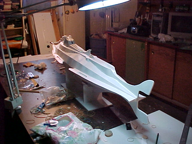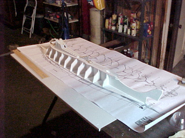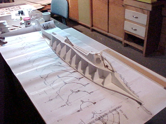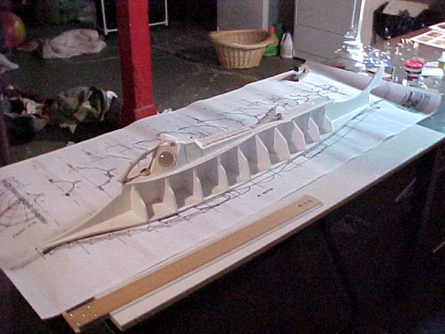 I began by downloading the readily available on-line original blueprints and tile-printed them at my office. I ended up with 3 sets of pieced together blueprints, the subject of which measured 57” from tip to tail. I eagerly carried my rolled up blueprints home and set up a make-shift work area in my basement.