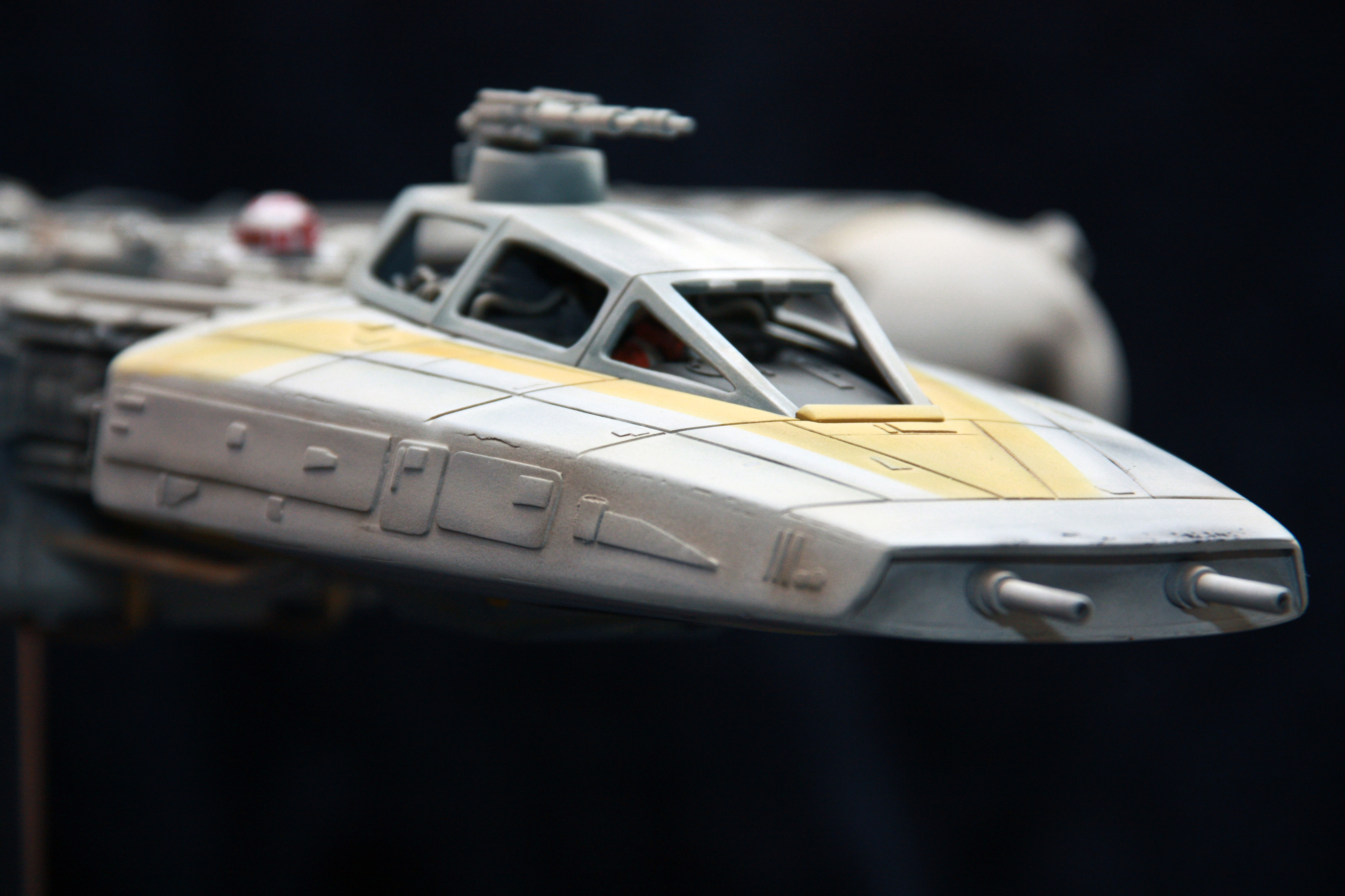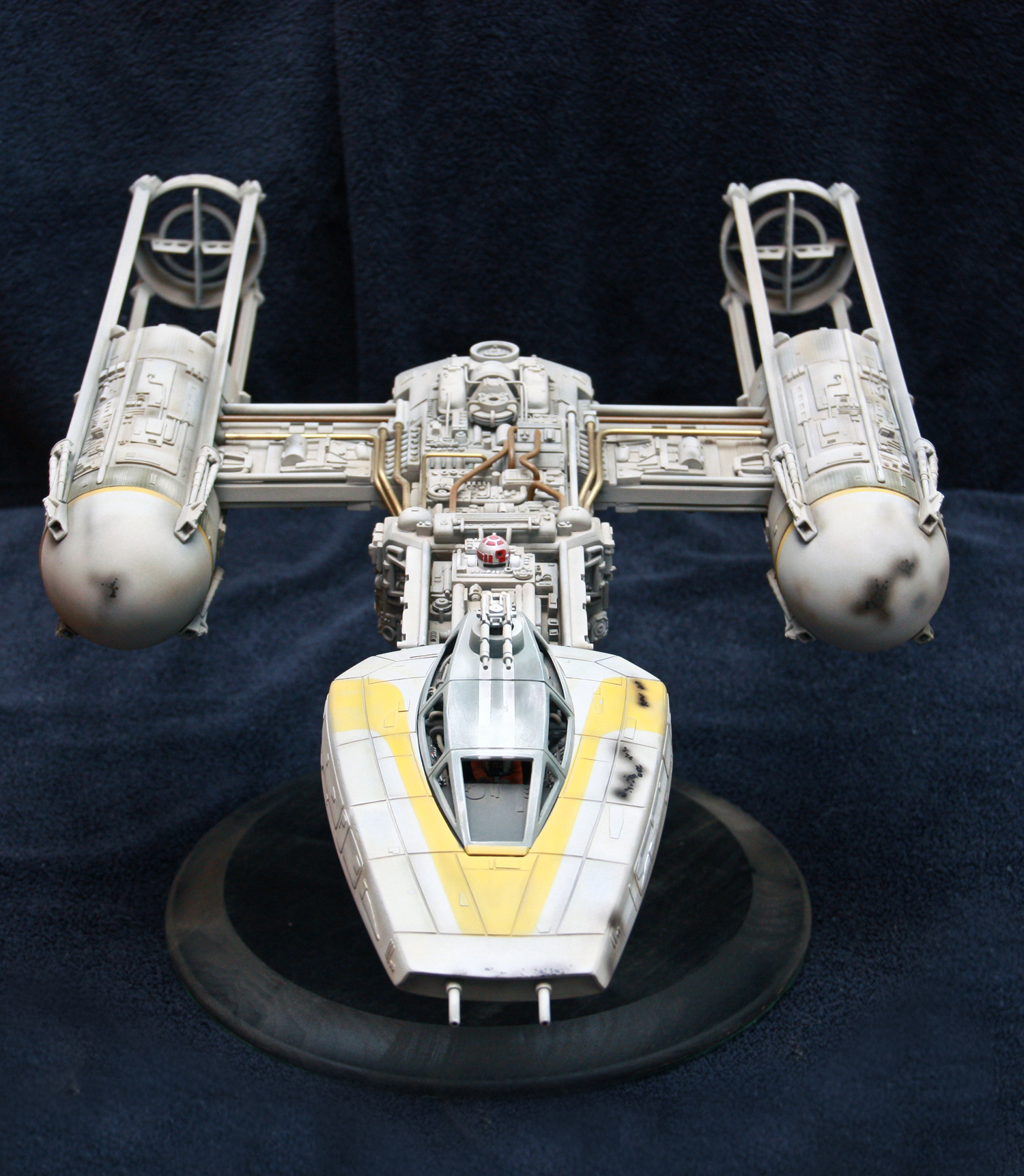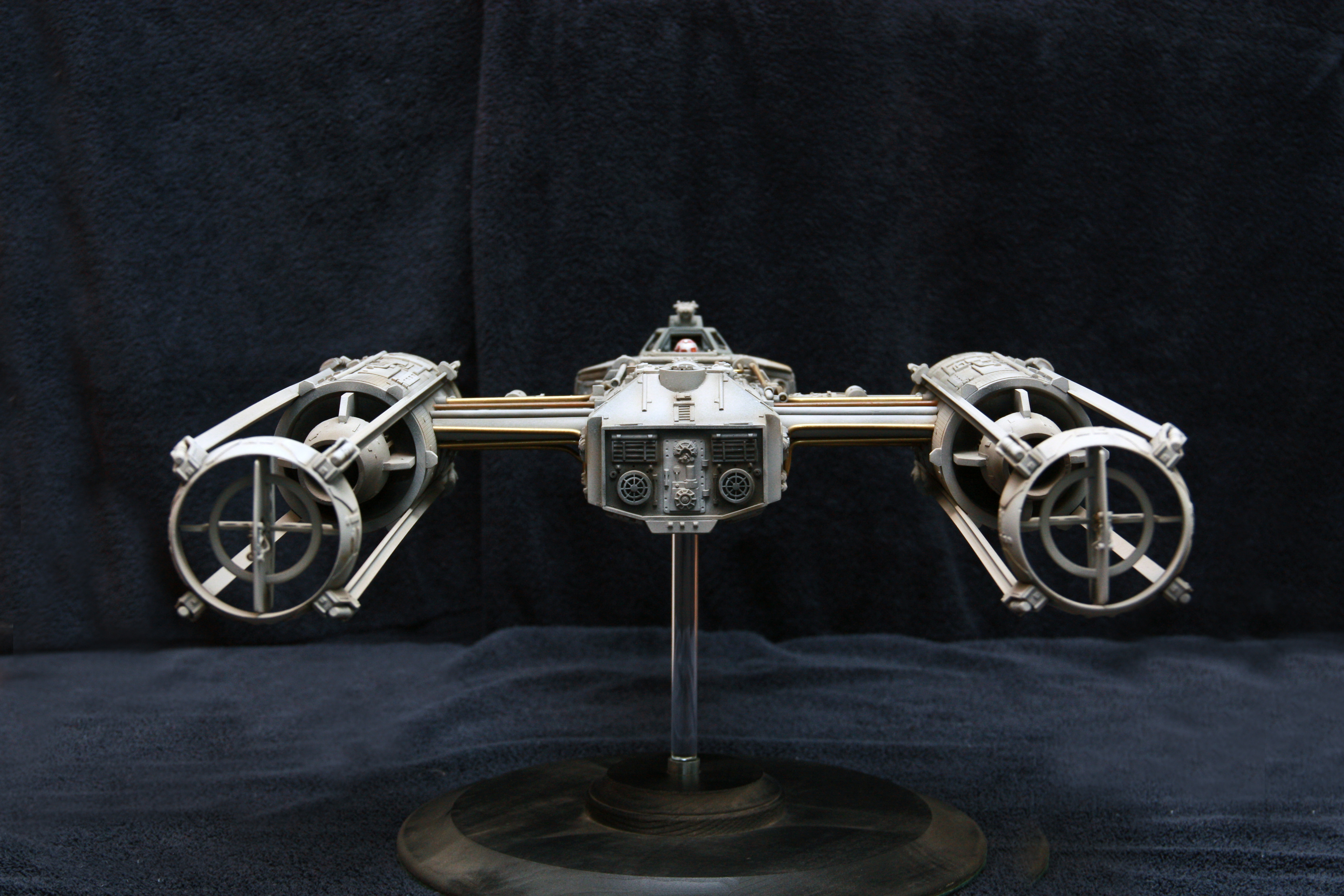 Once again photographed by Kimber Collins, this studio scale Y-Wing was SCRATCH BUILT by Michael Blaisdell! Of course I am thinking back to the good ol’ days where the equation was…. scratch build + Y-Wing = Bill George, but in this case it is Michael that did so in modern day as opposed to well over 30 years ago. I believe there may be only a handful of artists (well maybe two handfuls) that have done such a thing. And, if I remember Michael’s email to me correctly, this scratch build was done BEFORE the MR studio release as well as the NICE-N Models kit release years ago now. This looks remarkable! Very nicely done!