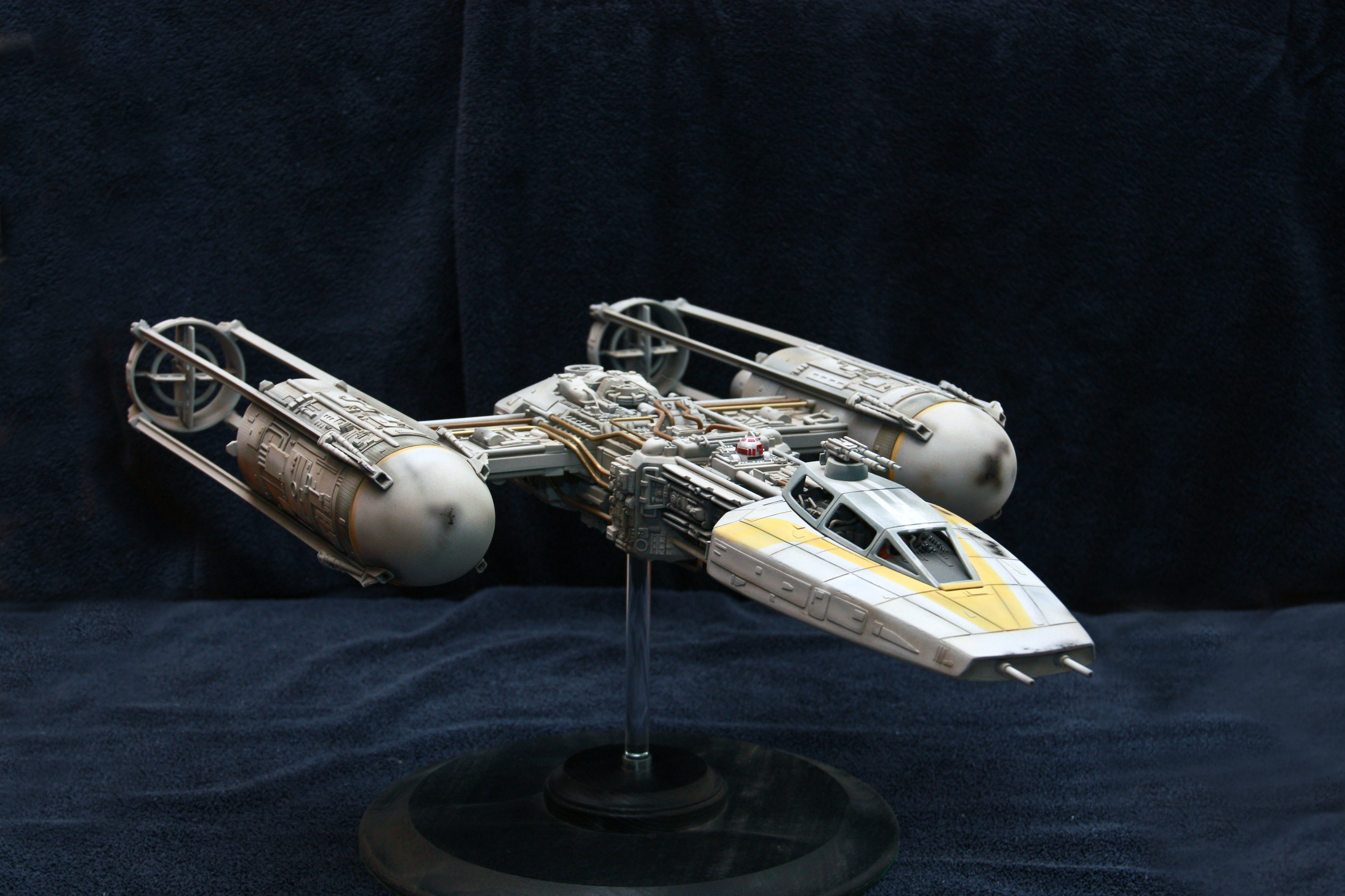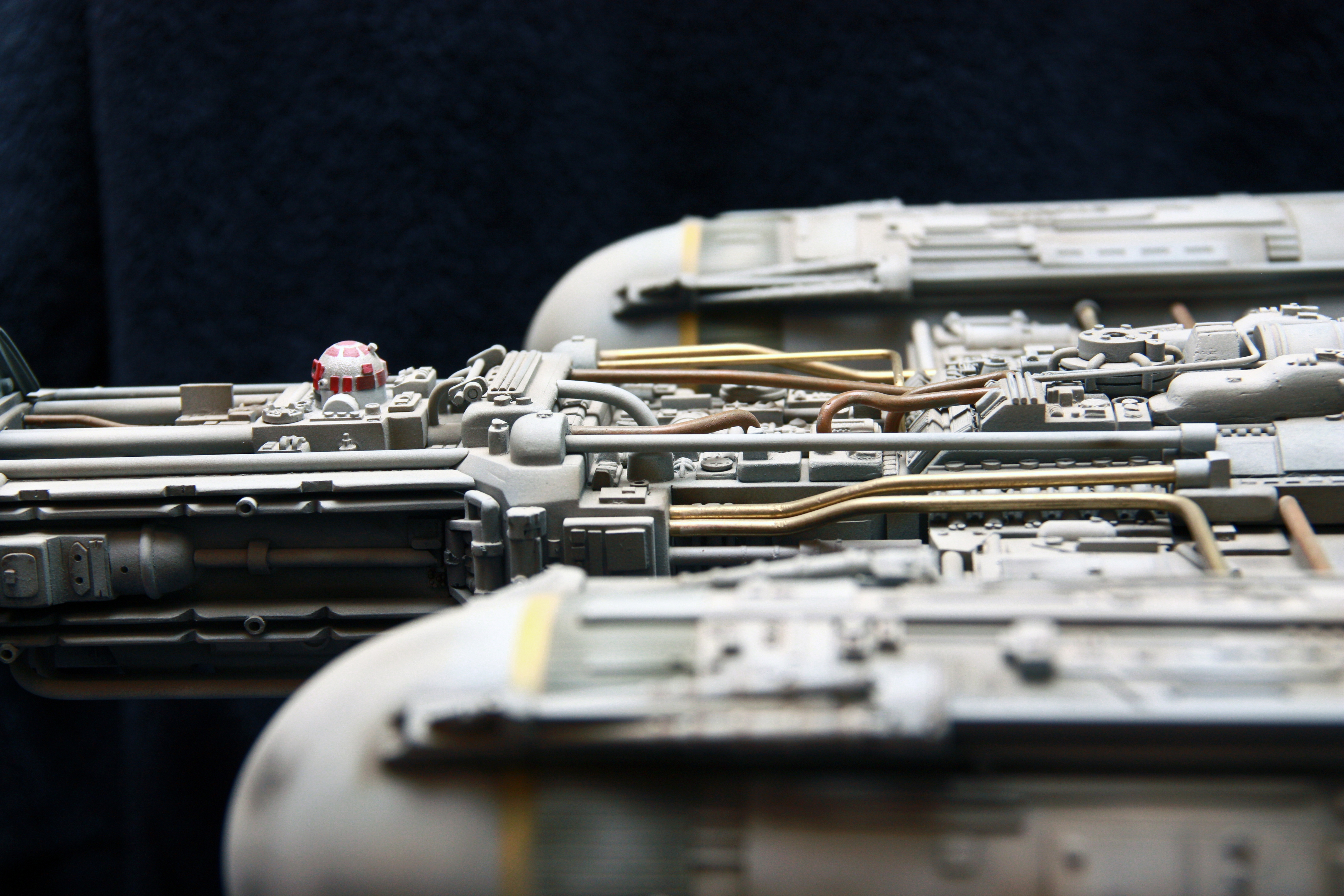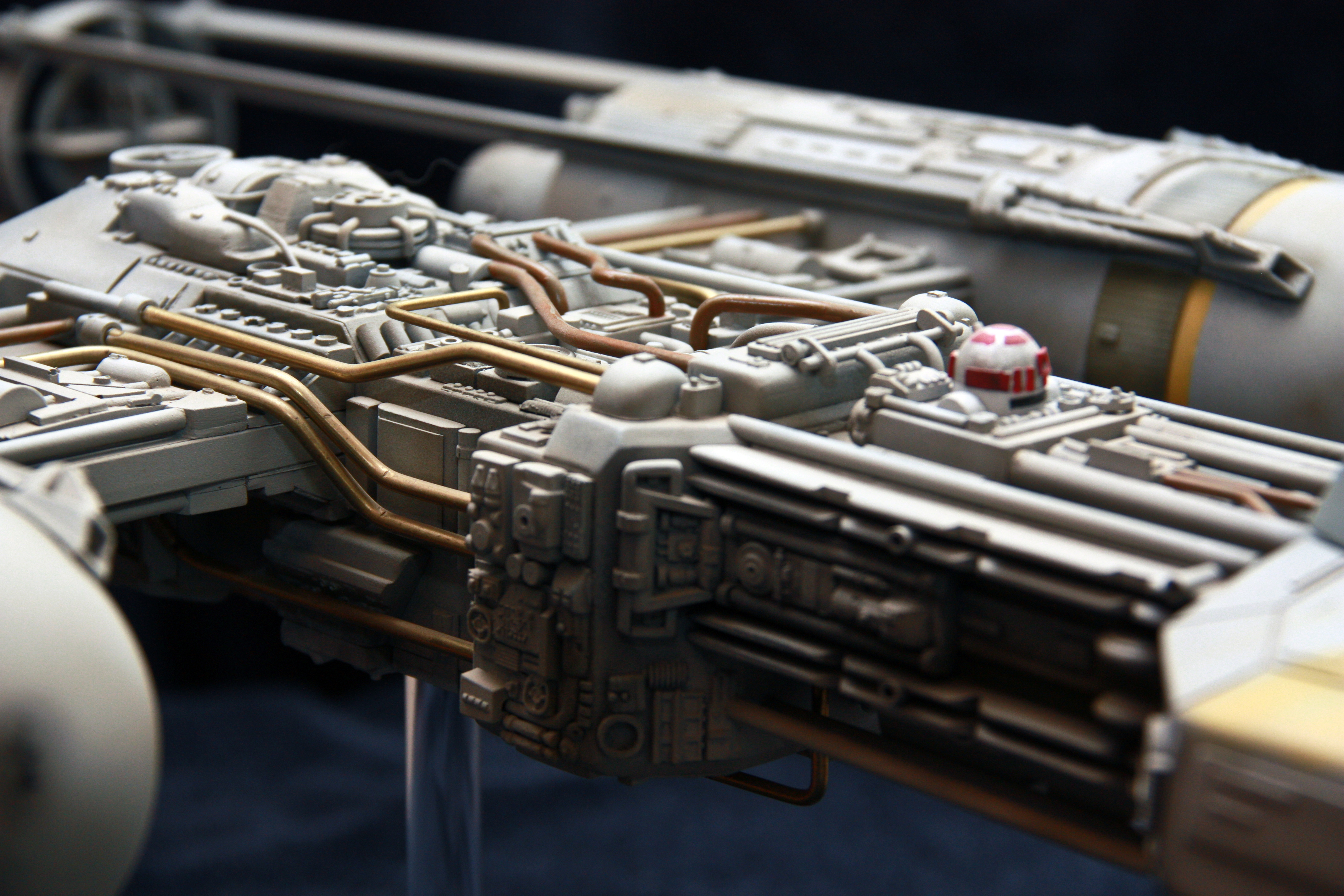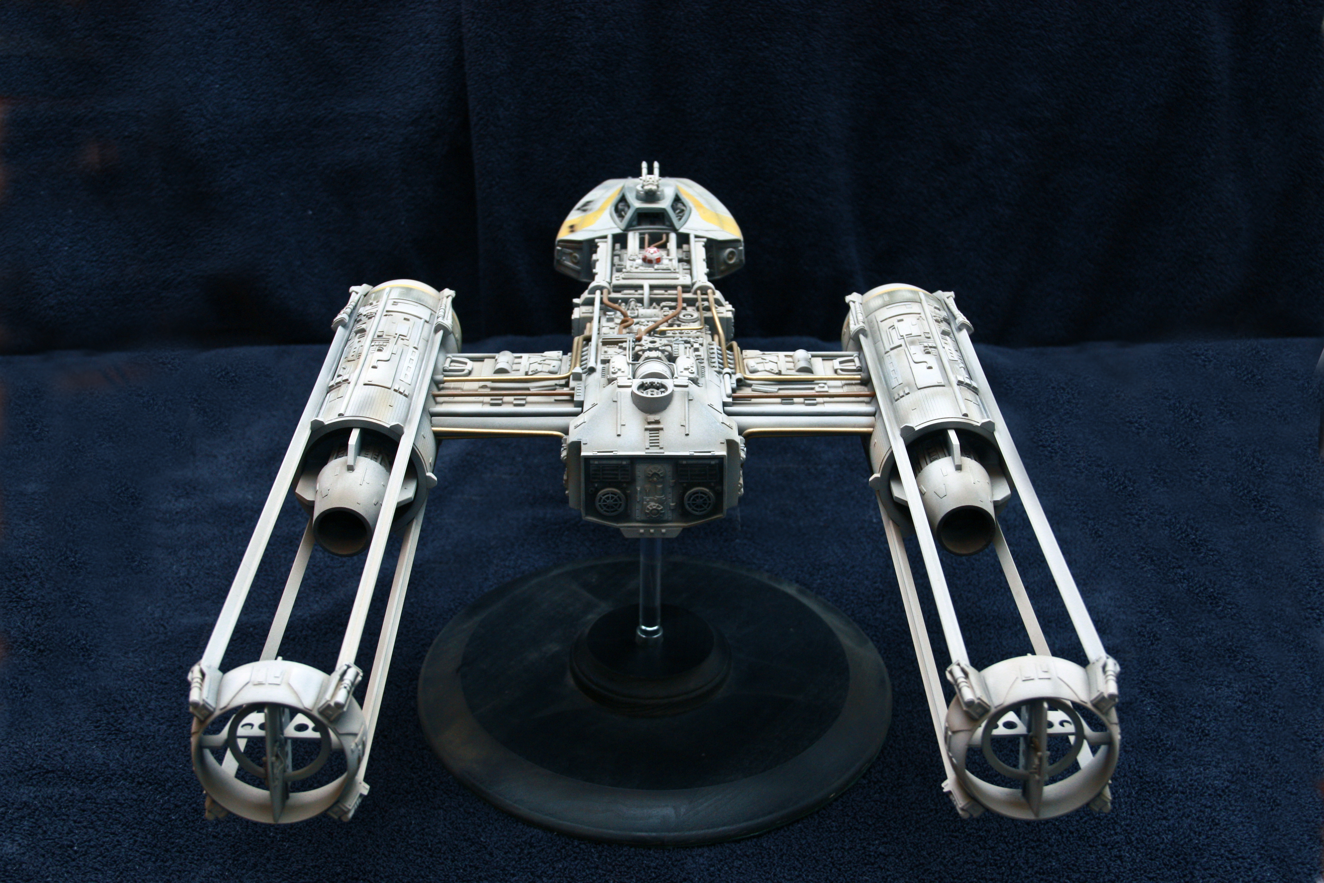 Once again photographed by Kimber Collins, this studio scale Y-Wing was SCRATCH BUILT by Michael Blaisdell! Of course I am thinking back to the good ol’ days where the equation was…. scratch build + Y-Wing = Bill George, but in this case it is Michael that did so in modern day as opposed to well over 30 years ago. I believe there may be only a handful of artists (well maybe two handfuls) that have done such a thing. And, if I remember Michael’s email to me correctly, this scratch build was done BEFORE the MR studio release as well as the NICE-N Models kit release years ago now. This looks remarkable! Very nicely done!
