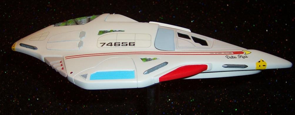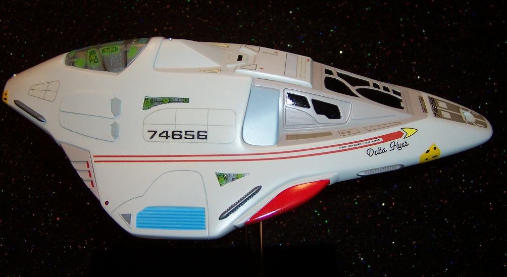 This piece was originally shown here on Modelers Miniatures & Magic back on February 19, 2009 and now updated to today’s showing standard for artist Sean Sides! He built this beautiful Delta Flyer, of Star Trek Voyager, from the Alliance Models Kit.