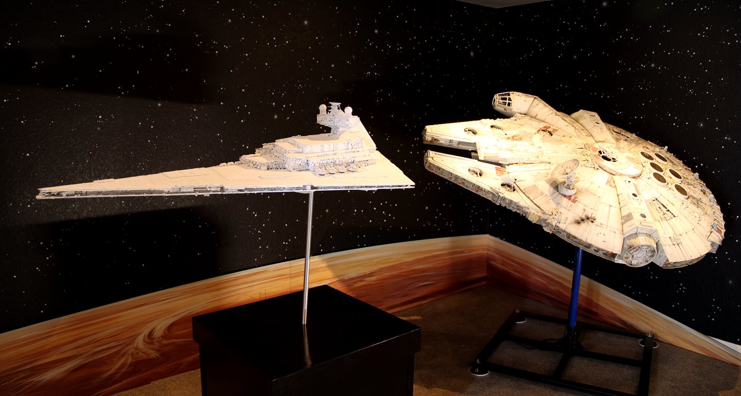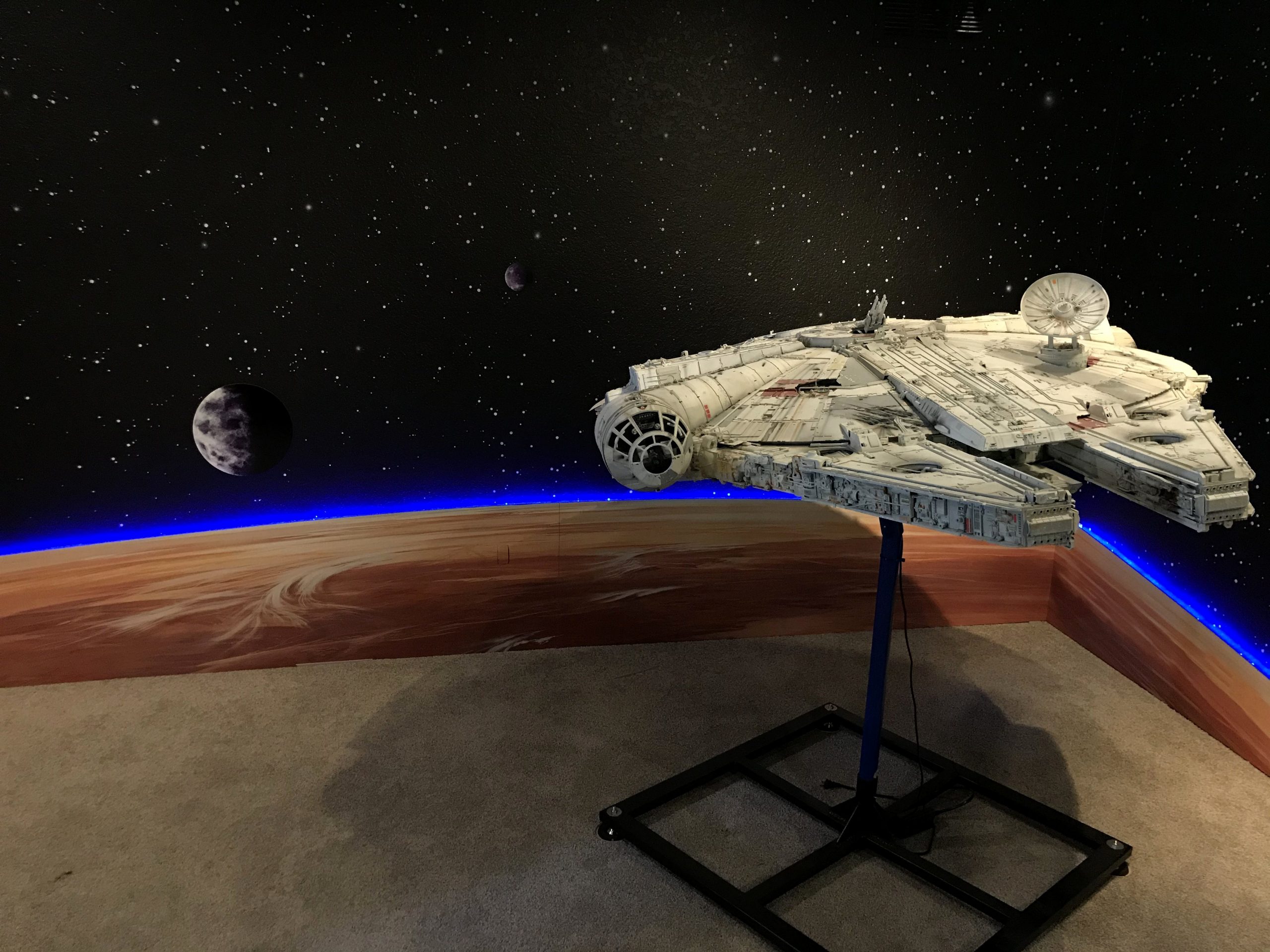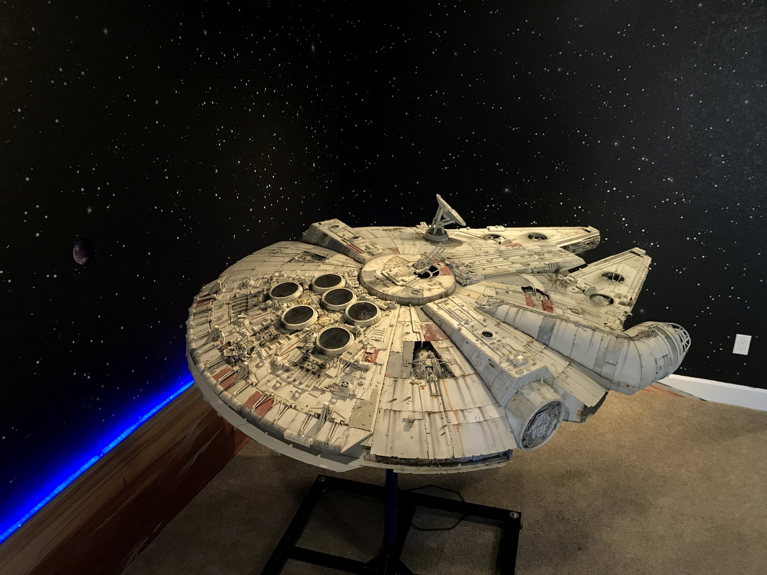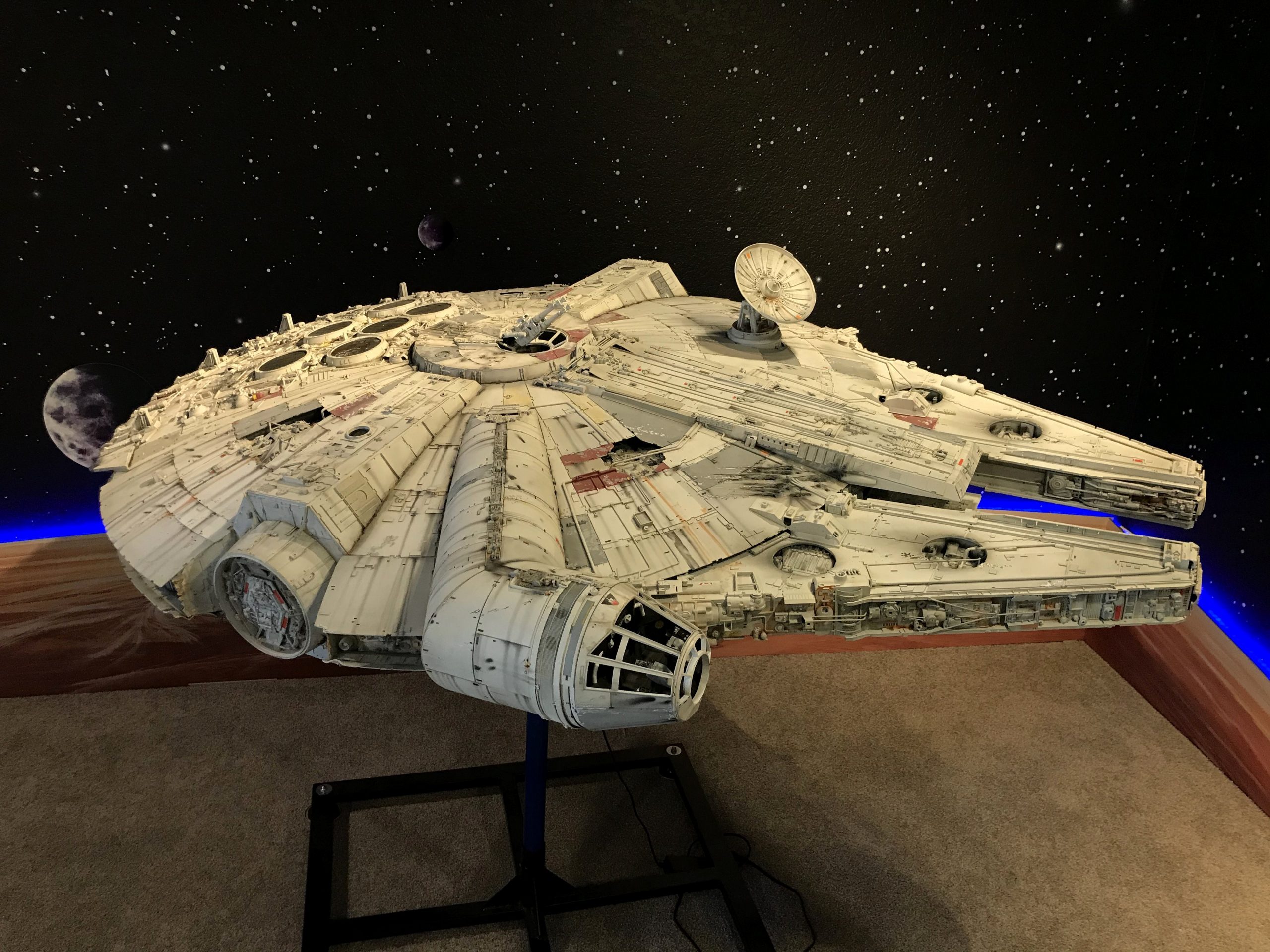 Anyone who is among this art form, and even some outside of it, well know the work of artist Sean Sides of Square Models. From the studio scale Battlestar Galactica fleet, to a studio scale Star Destroyer DEVASTATOR replica,.. to this magnificent 5 foot studio scale Millennium Falcon replica, his work stands out among a handful of amazing artists in the world today.