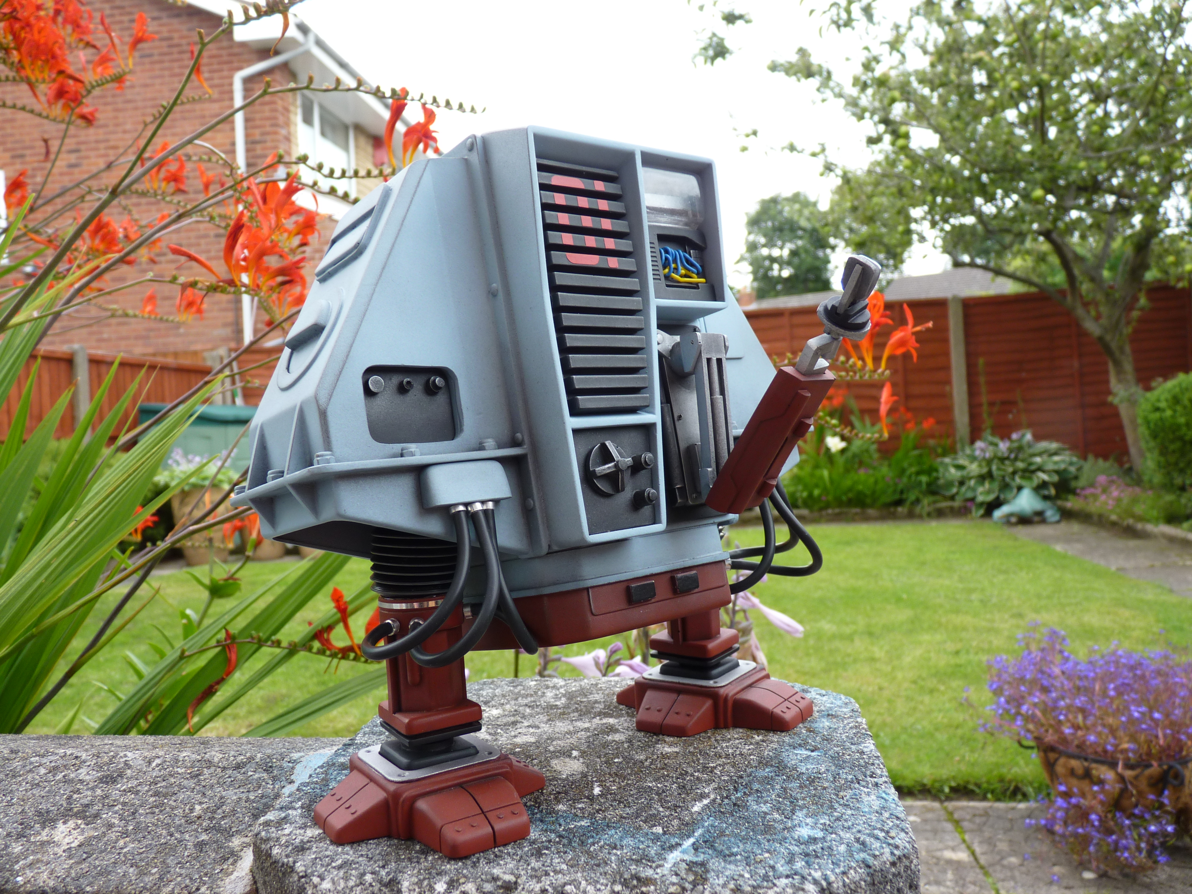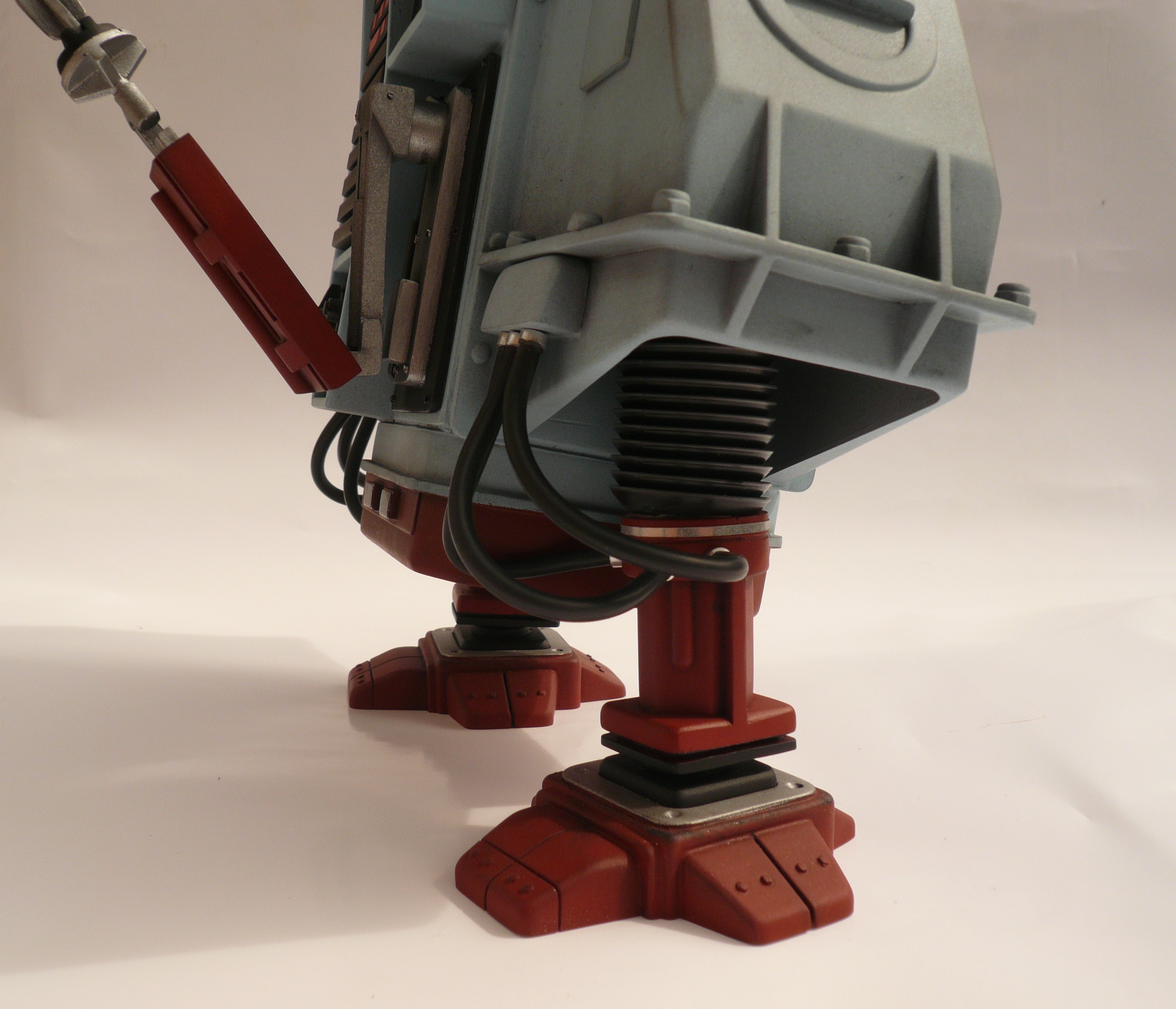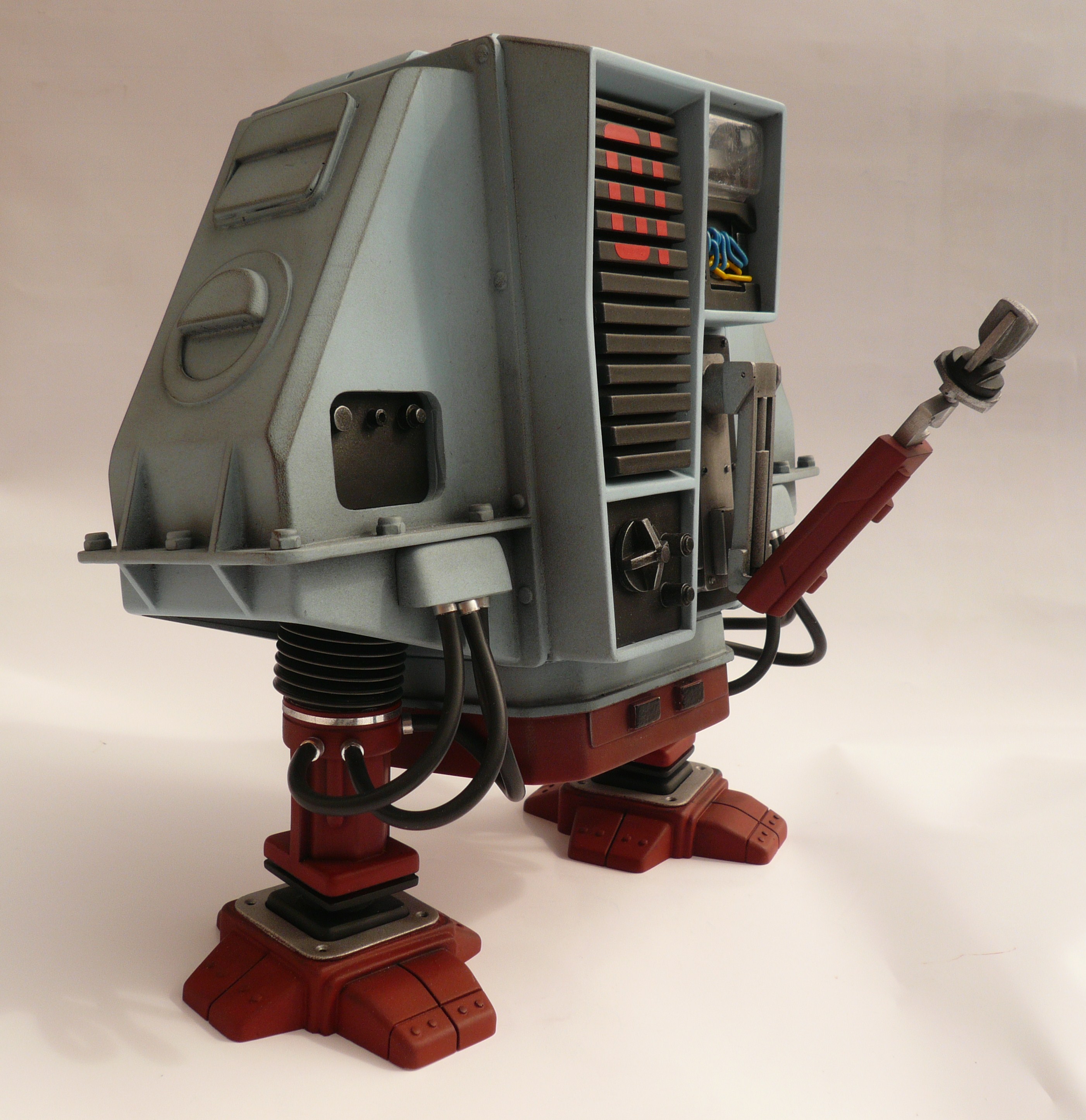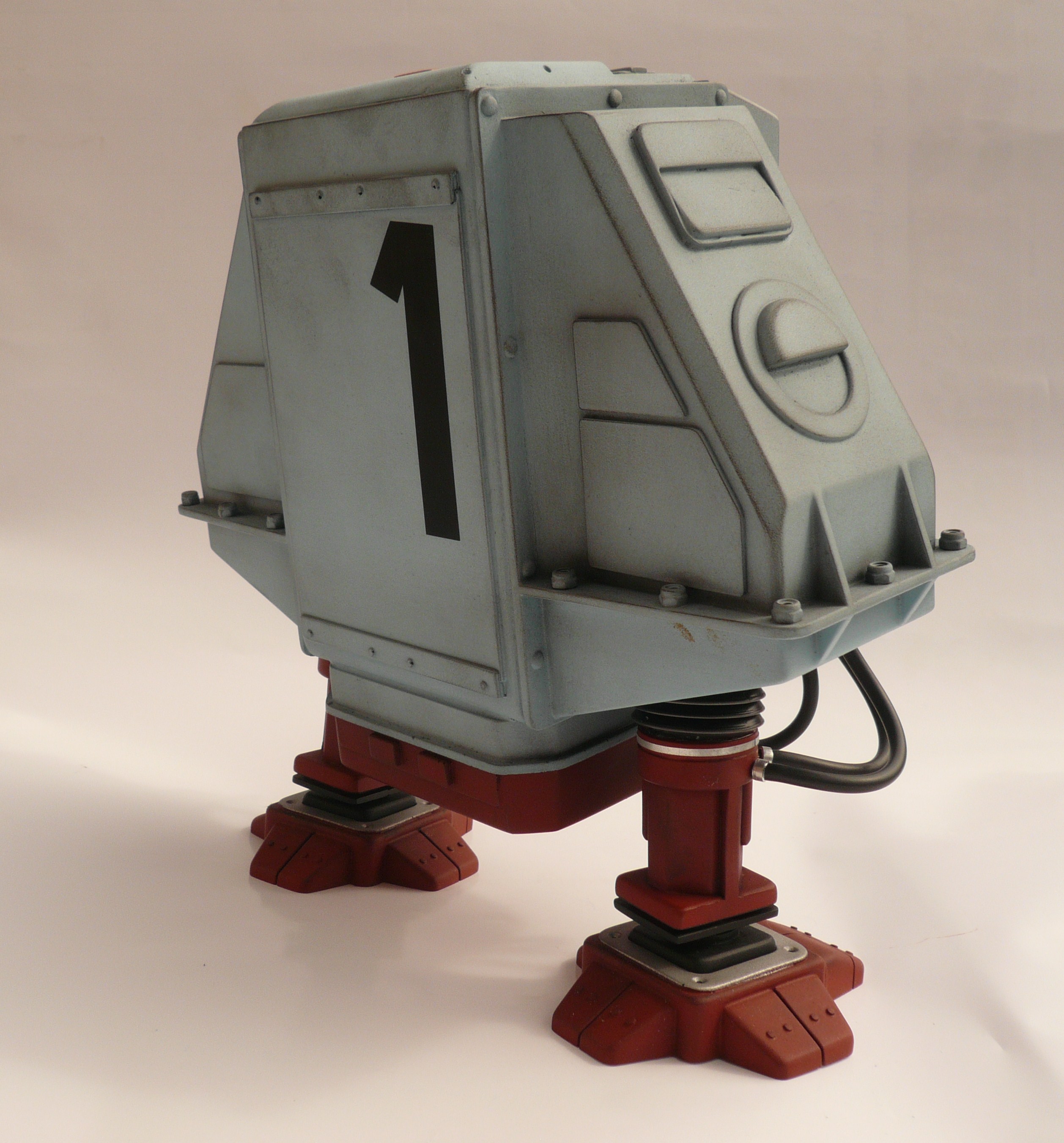July 28, 2010 – This amazing DESTINY MODELS replica is as close as you’ll get to the original filming prop. All resin parts with decals and clear parts for the light. I added hose collets and got a very close match to the original paint. 1970 Ford Bermuda Blue. Changed the flexible leg hose supports for a stronger version and filled them with silicone rubber to maintain movement.