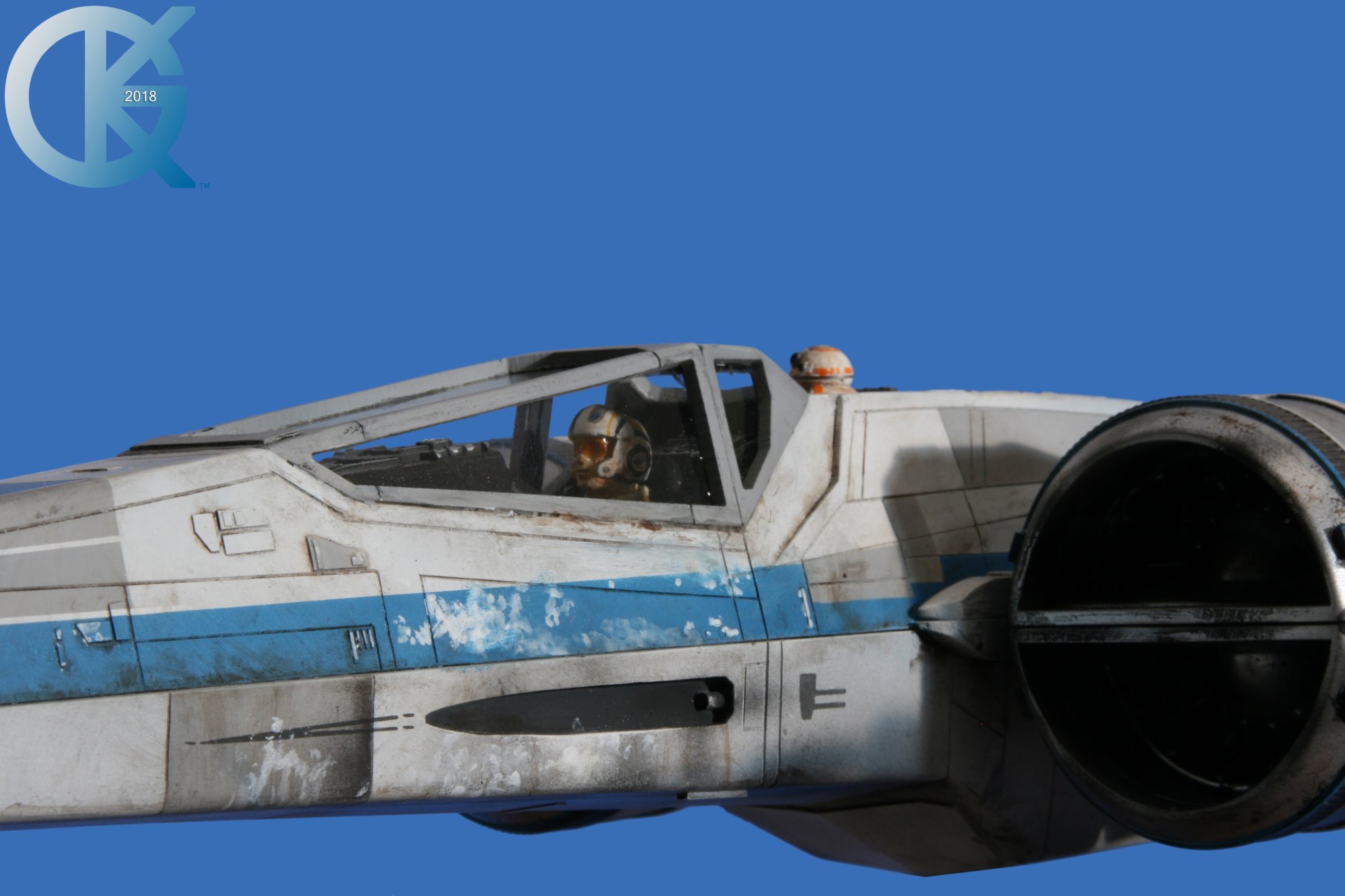 After a few years of not doing so, I am getting back into the groove of doing these blue screen studio model photos again. I am very much enjoying myself in doing so. This build of the 1/24 KORBANTH Closed Wing T-70 X-Wing seen with the character Poe Dameron in The Force Awakens film is magnificent! Dan did a wonderful job recreating the large set piece, even placing Poe with his proper helmet and clothing! This model was a joy to photograph. You may view the Dan Grumeretz Build by CLICKING HERE! Or you may order one for yourself by CLICKING HERE! I hope you enjoy the photos.