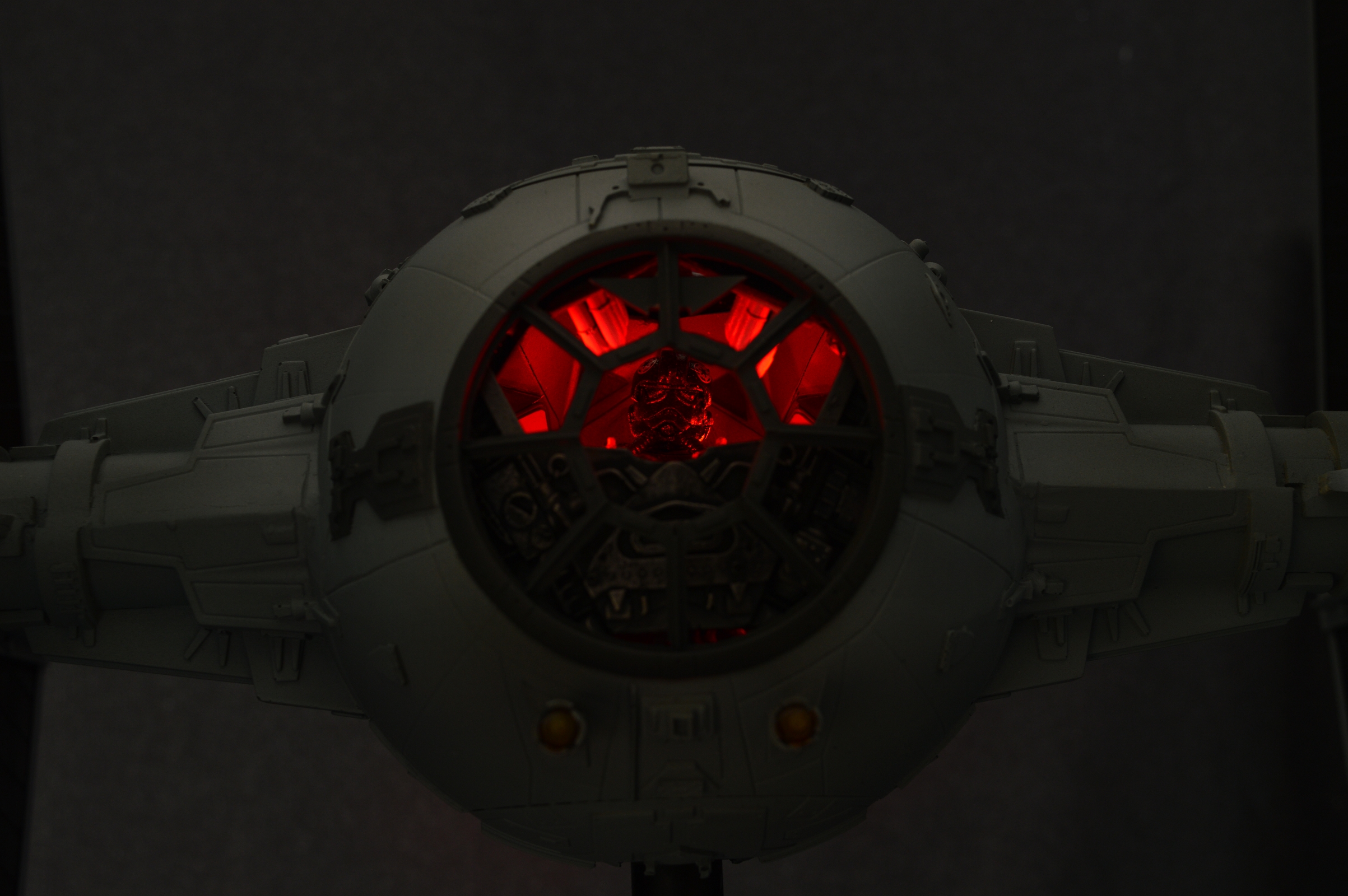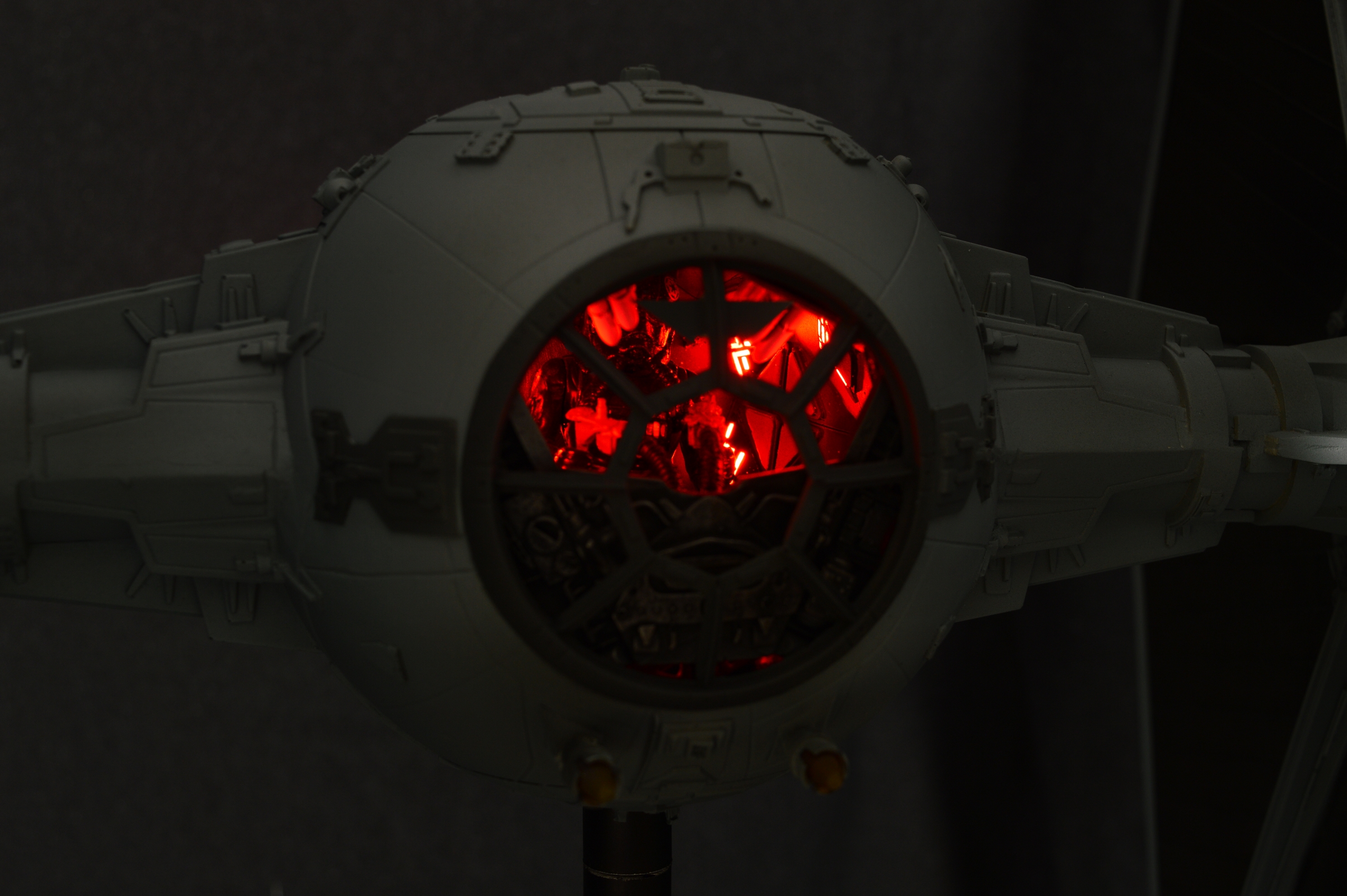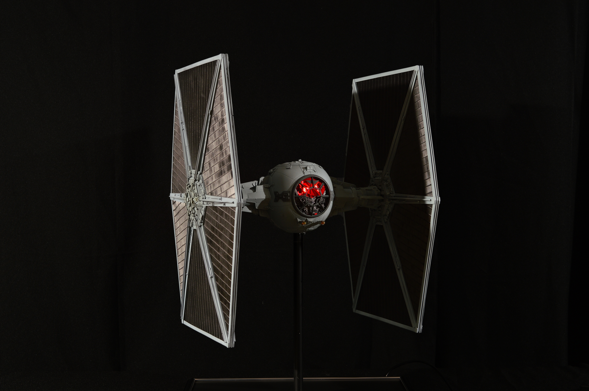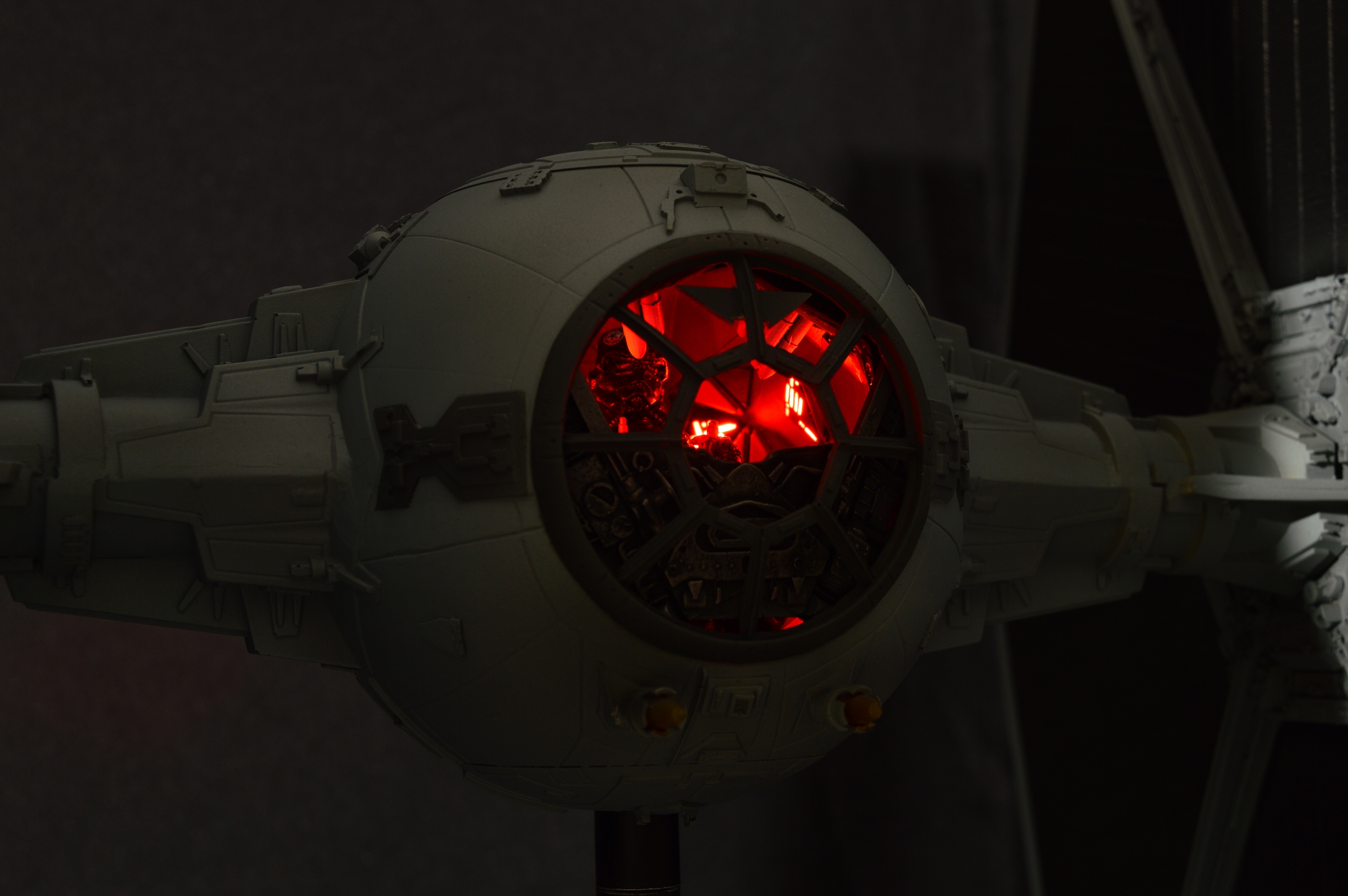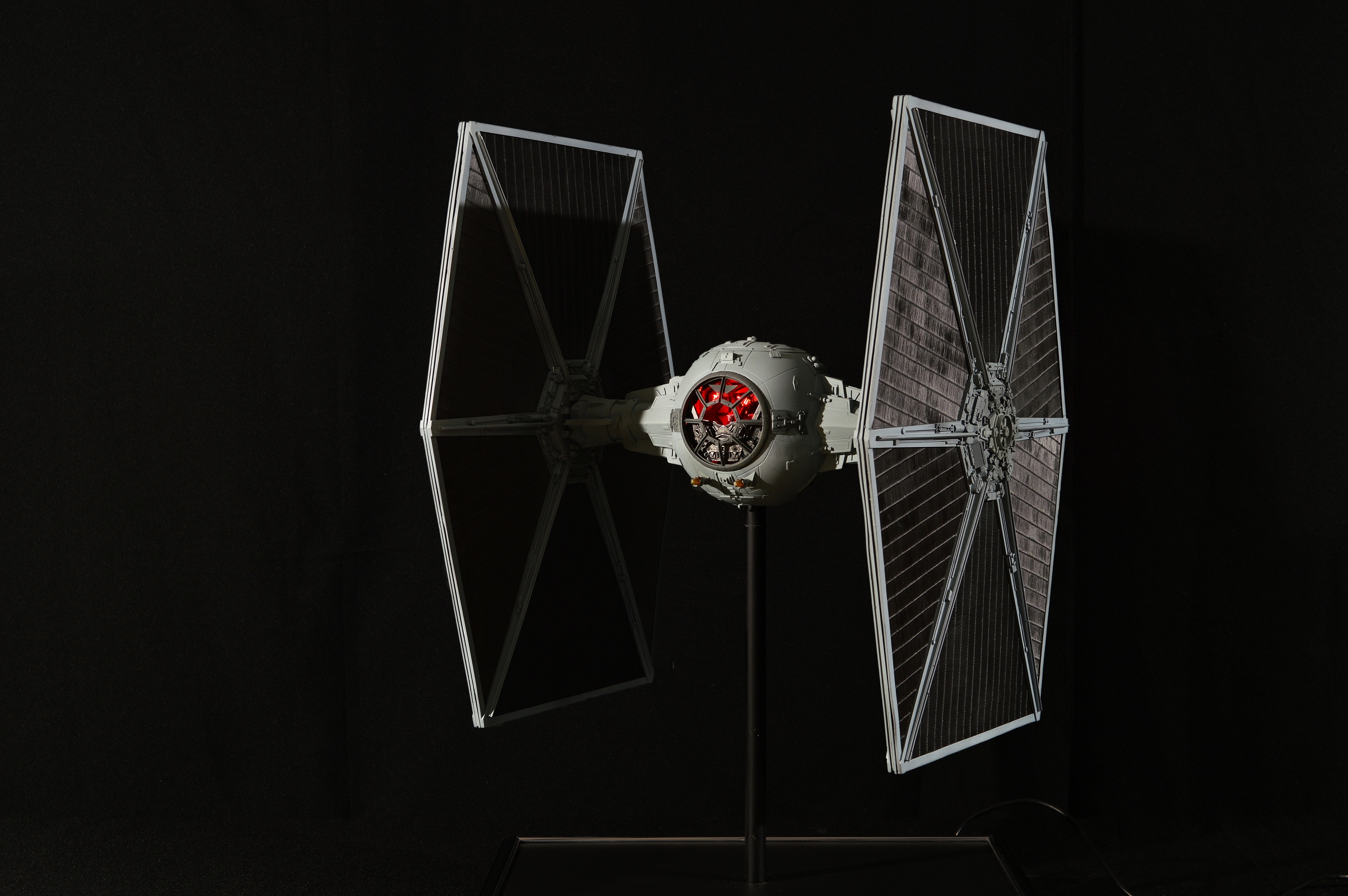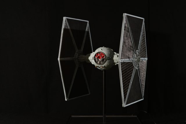 The Tie Fighter in 1/18 its a mashup of different kits and scratch build parts. The Cockpit is very special on that peace. I scratch built the design of the life size cockpit instead of the studio models cockpit. This piece sold before we could even show it here on Modeler Magic!